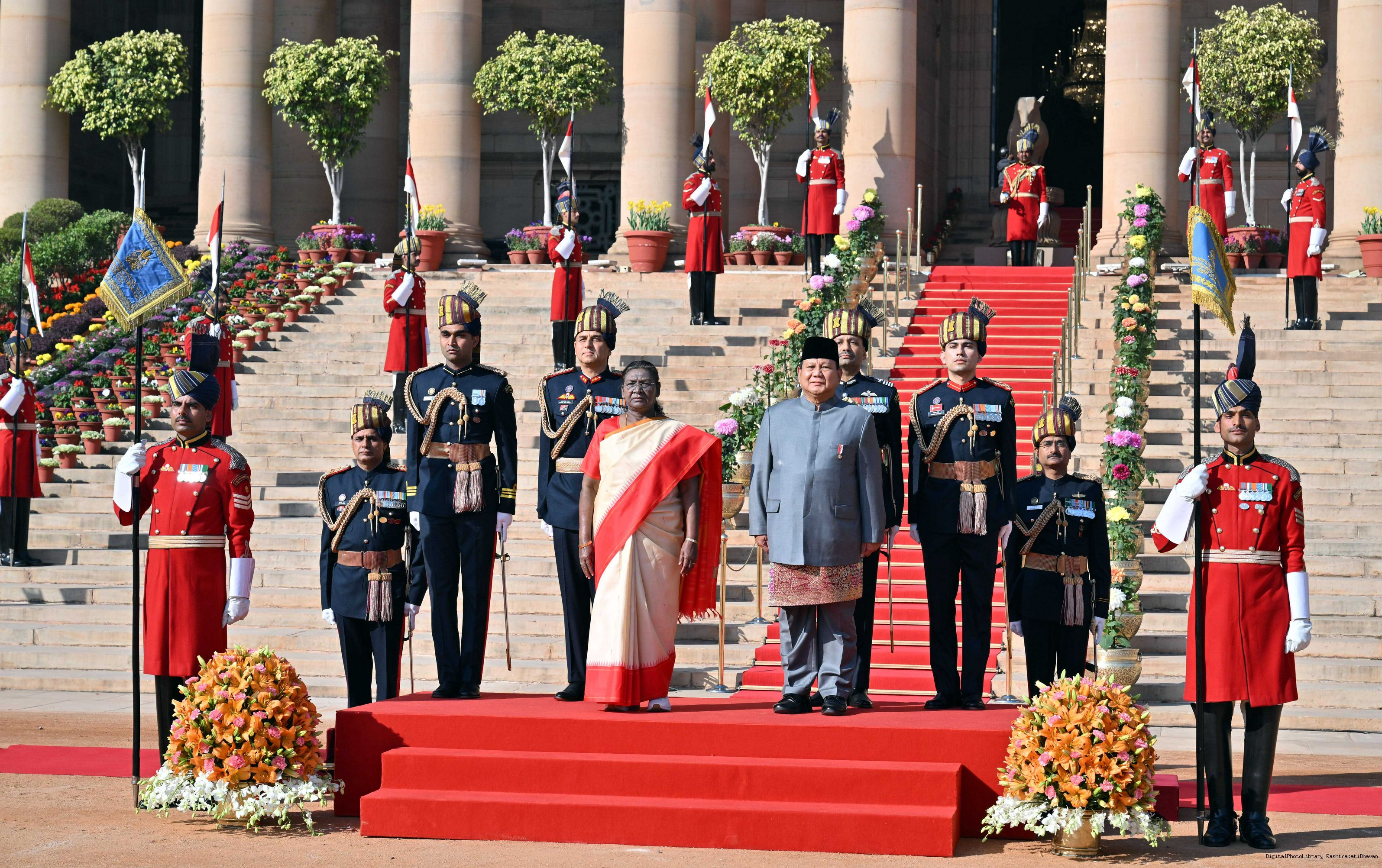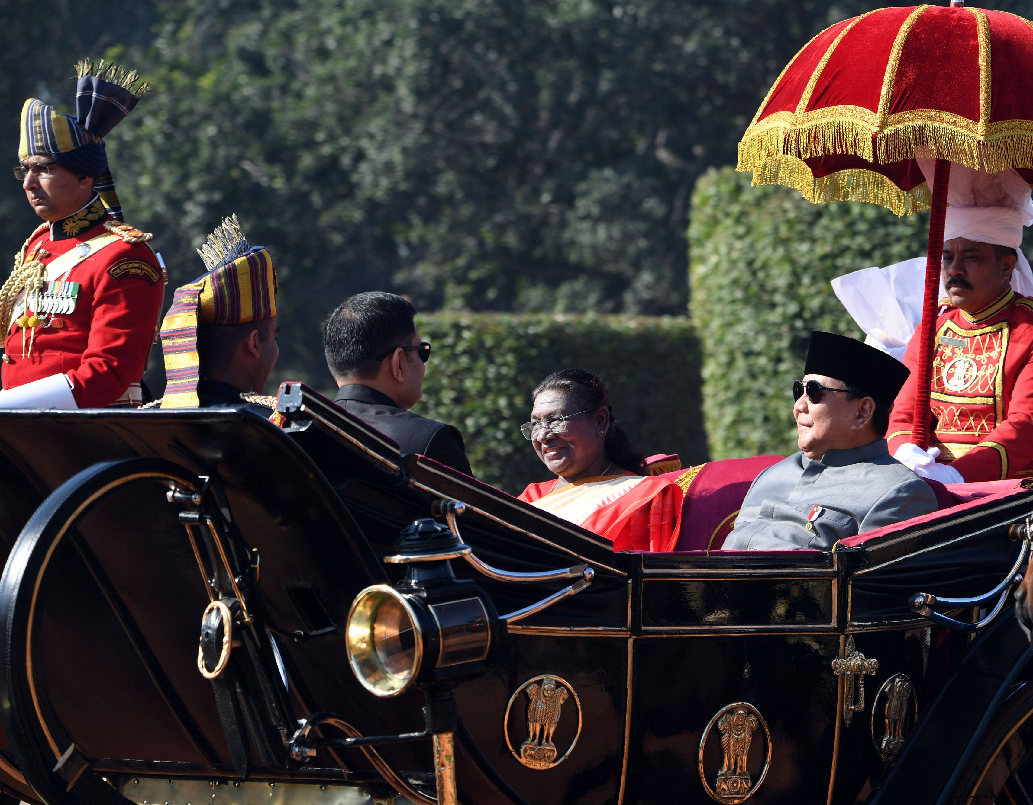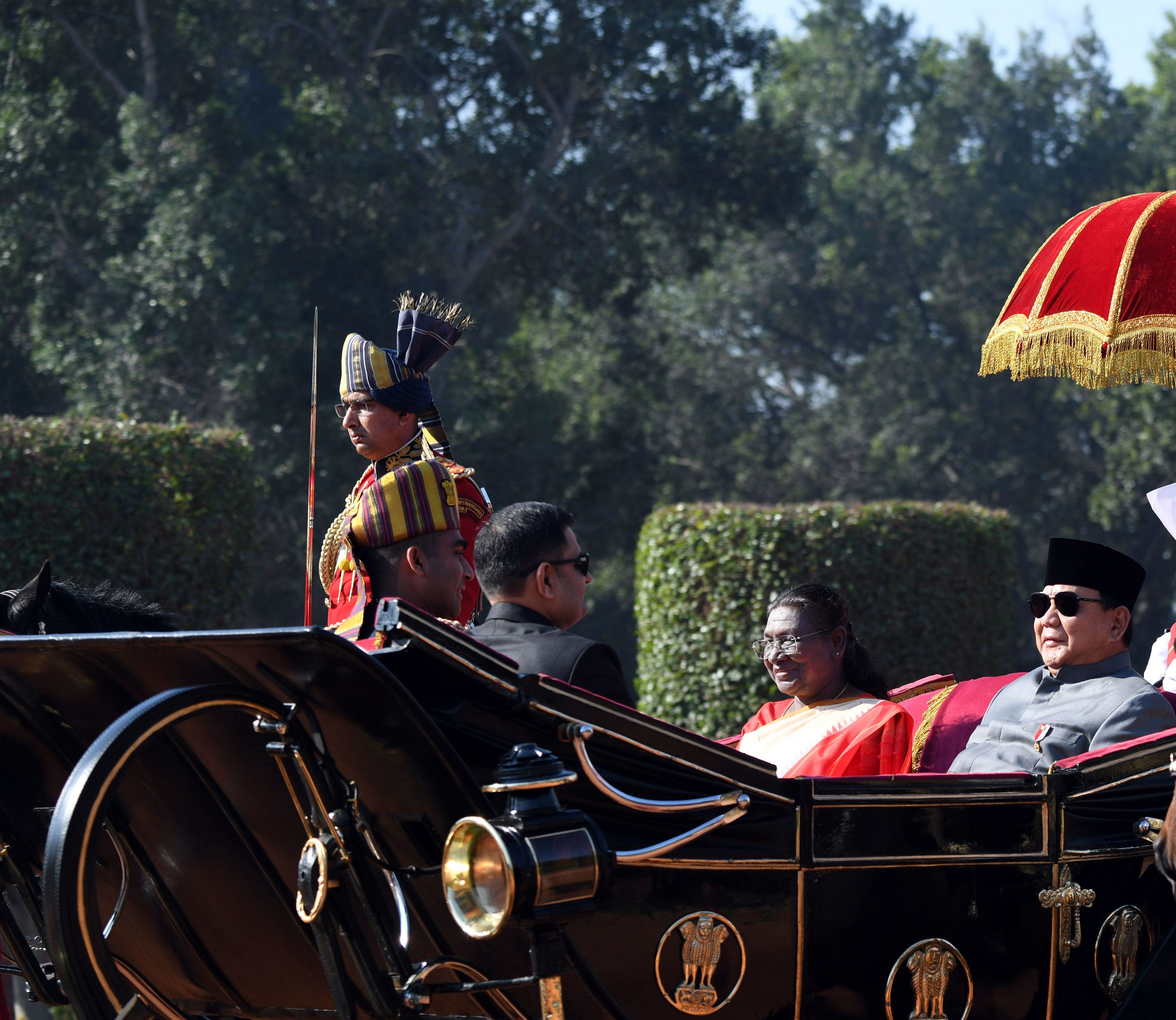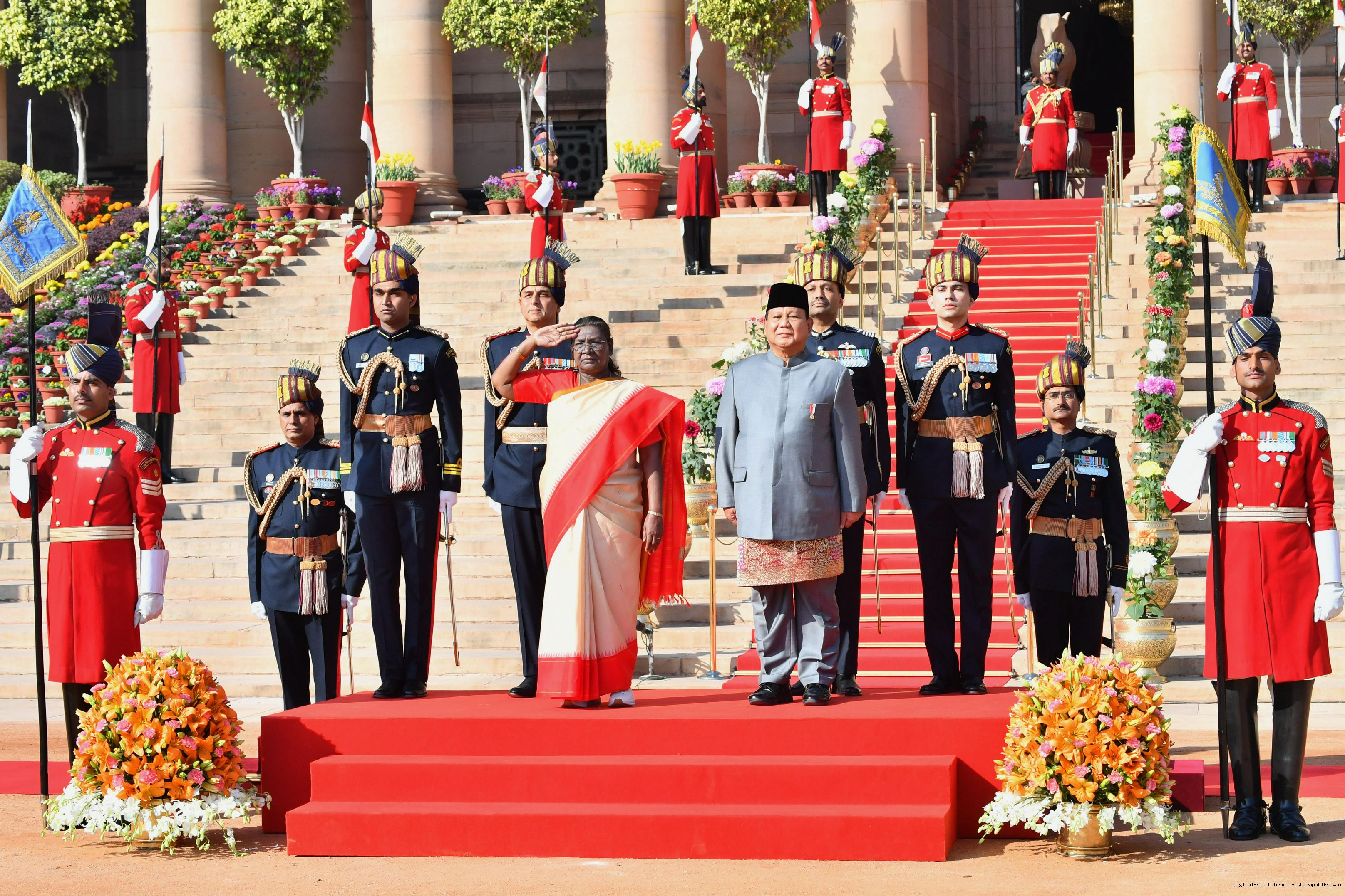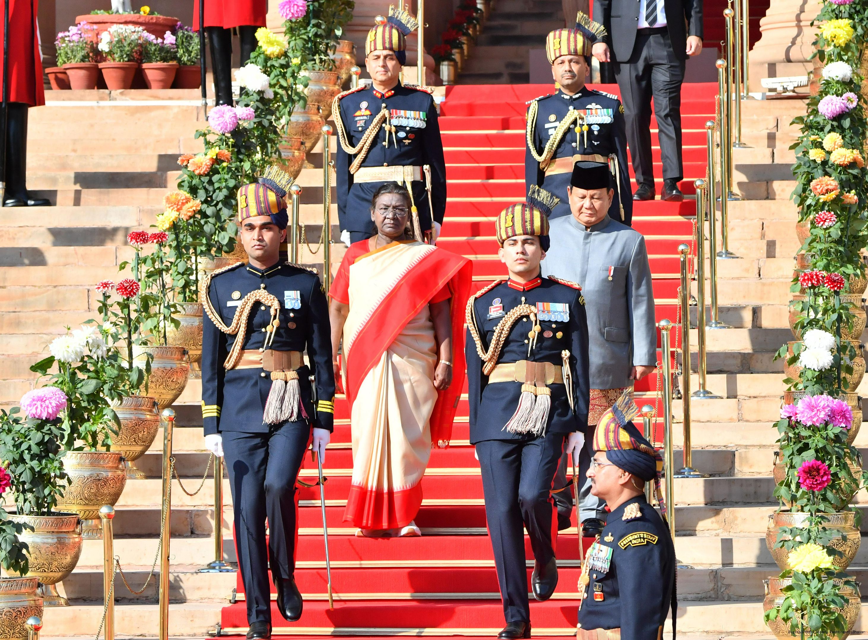 | Caption: | The PBG presenting the National Salute to the President of India, Smt. Droupadi Murmu at Rashtrapati Bhavan in New Delhi on January 26, 2025. |