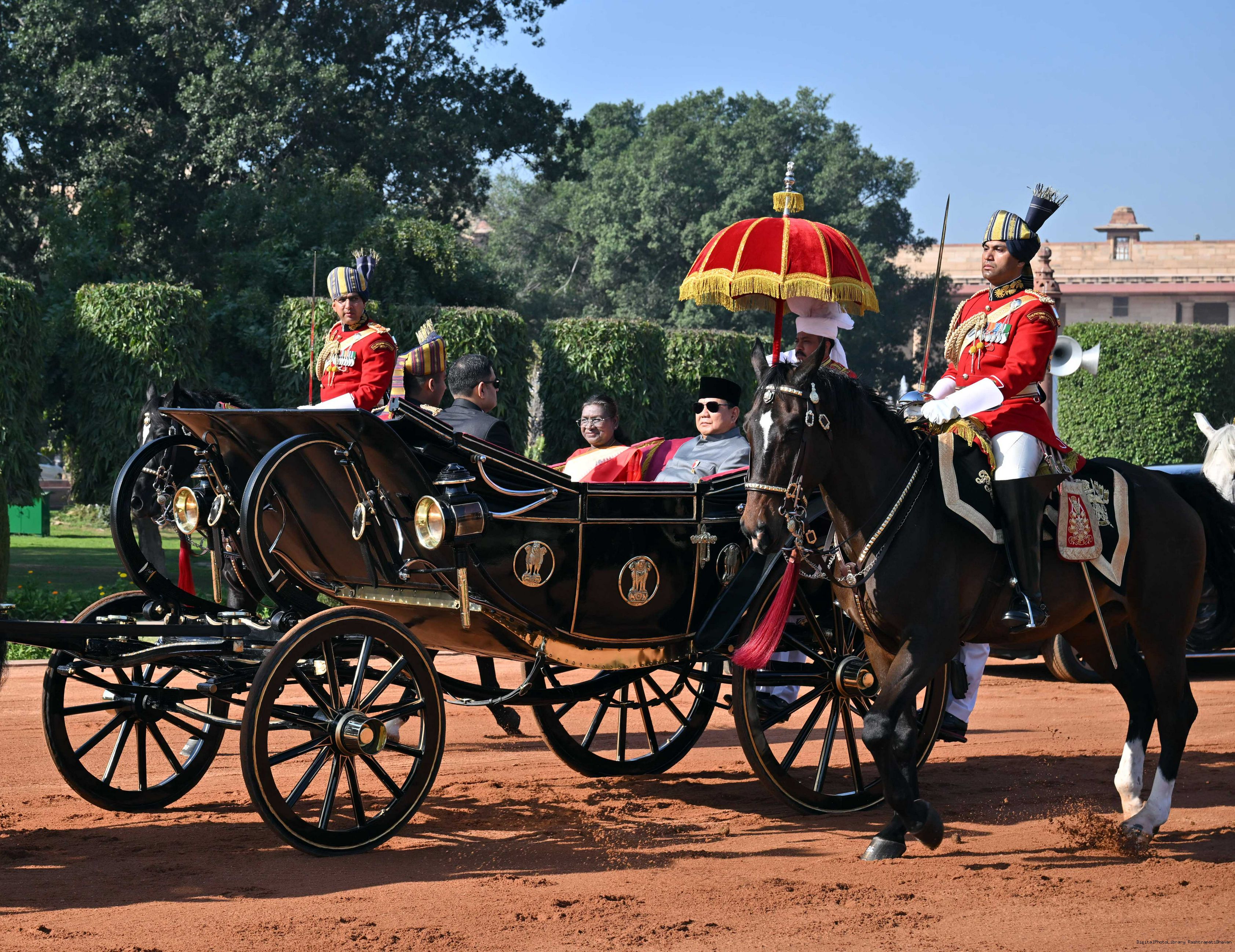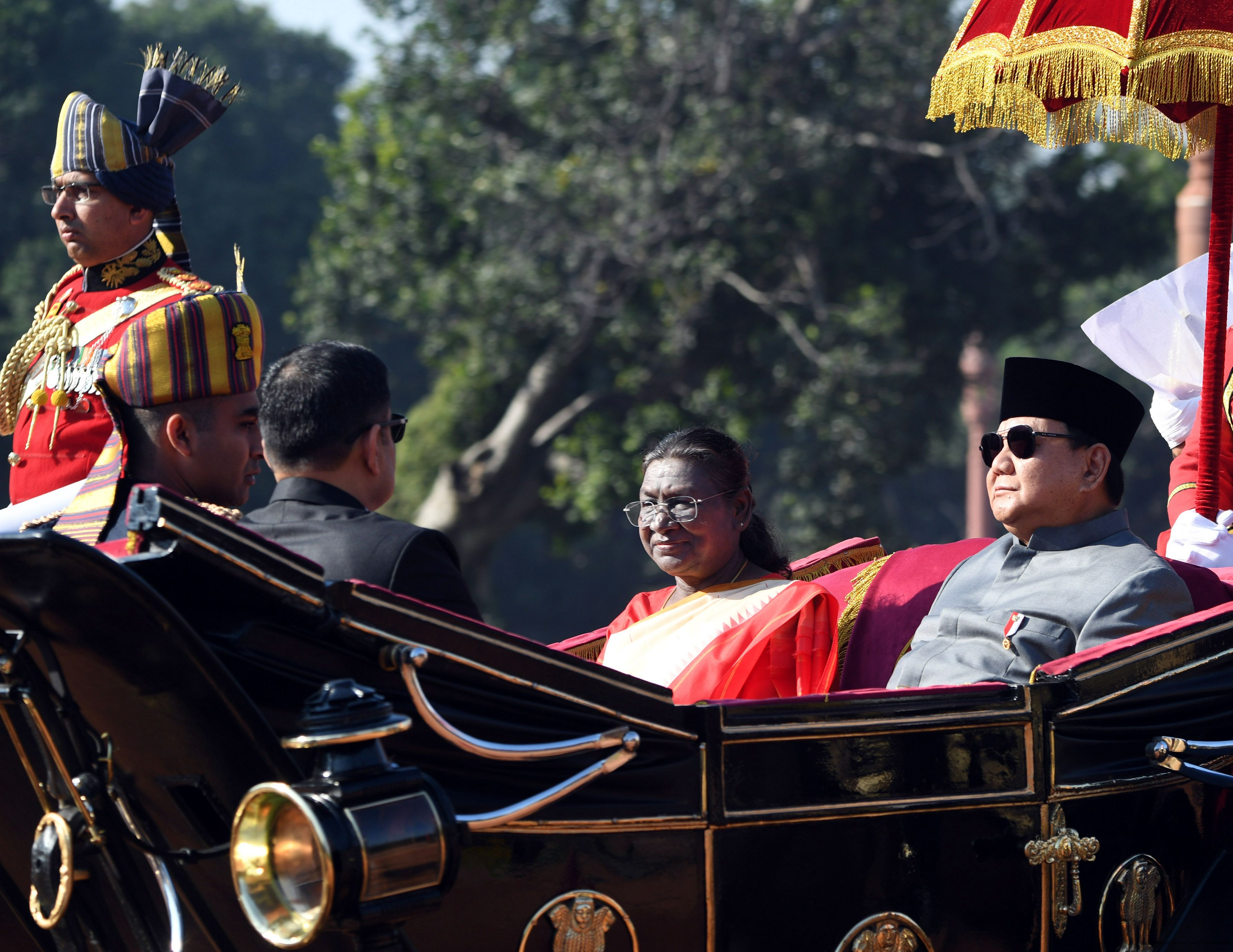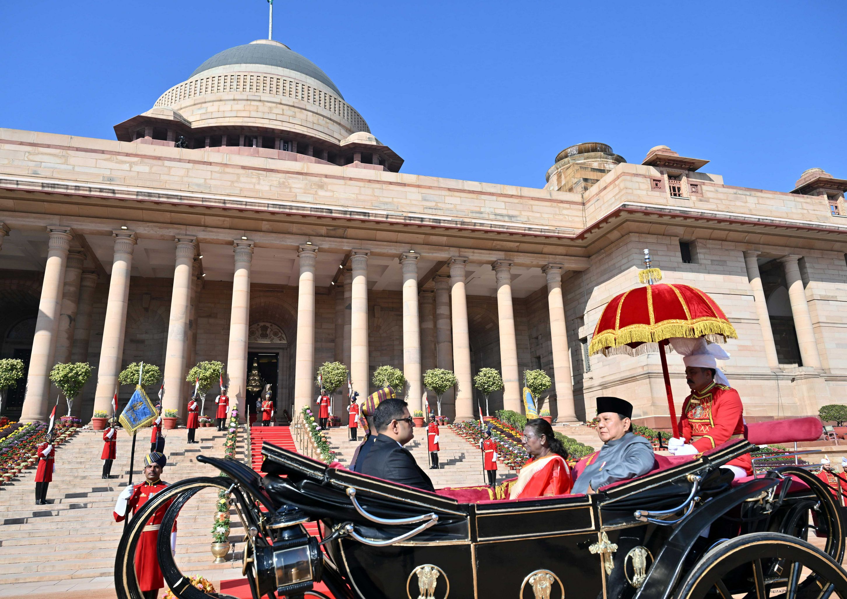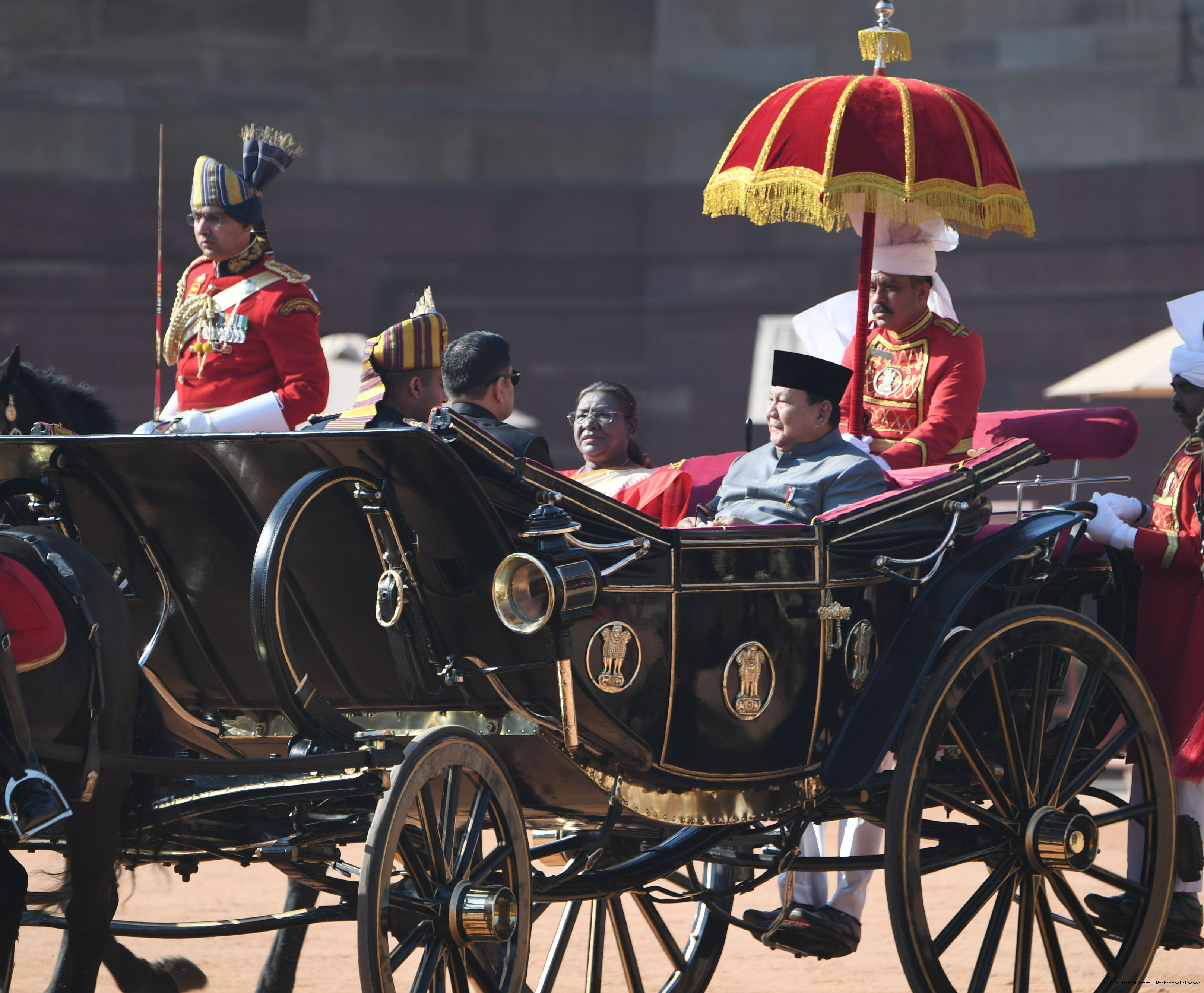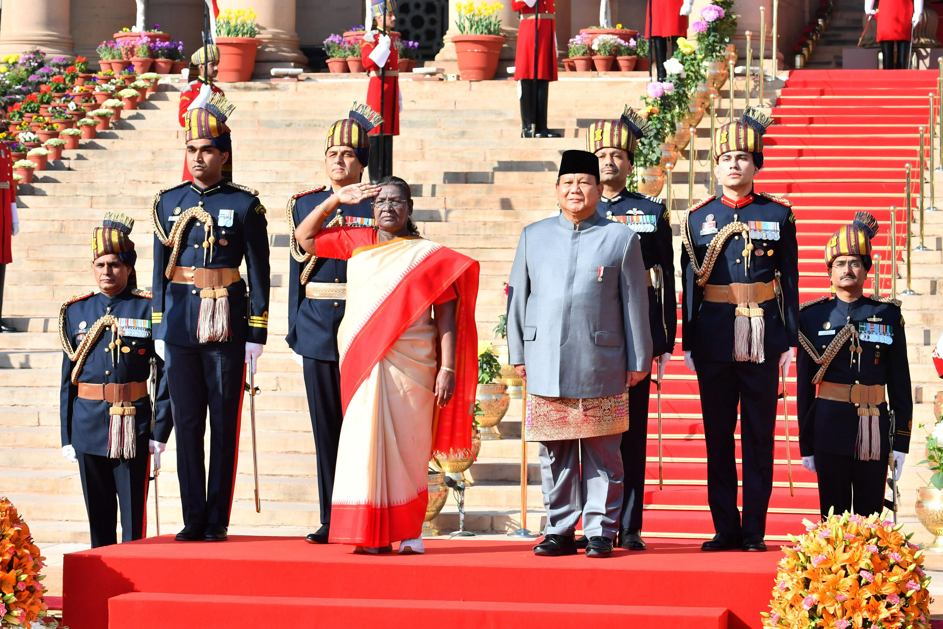 | Caption: | The PBG presenting the National Salute to the President of India, Smt. Droupadi Murmu at Rashtrapati Bhavan in New Delhi on January 26, 2025. |