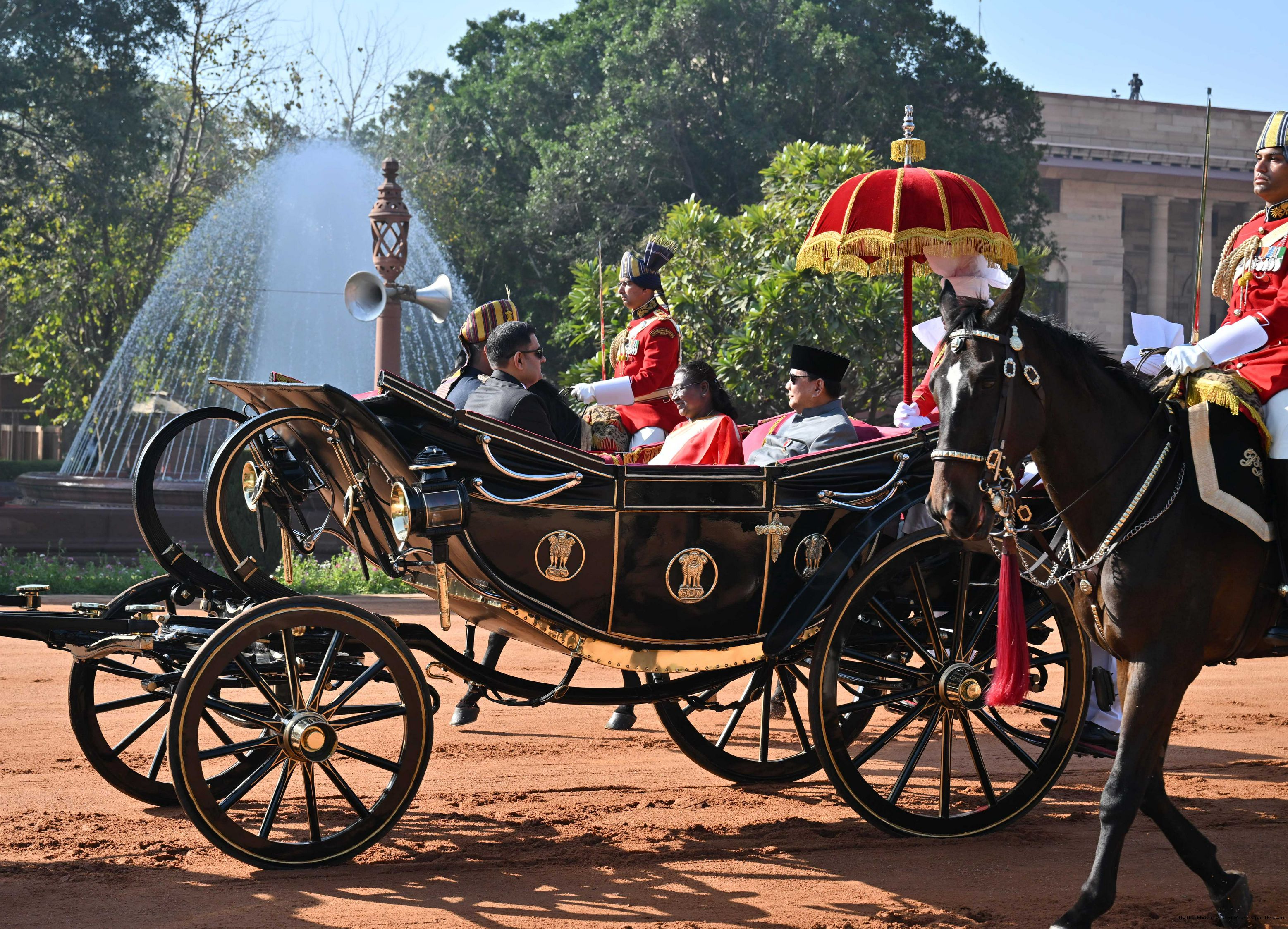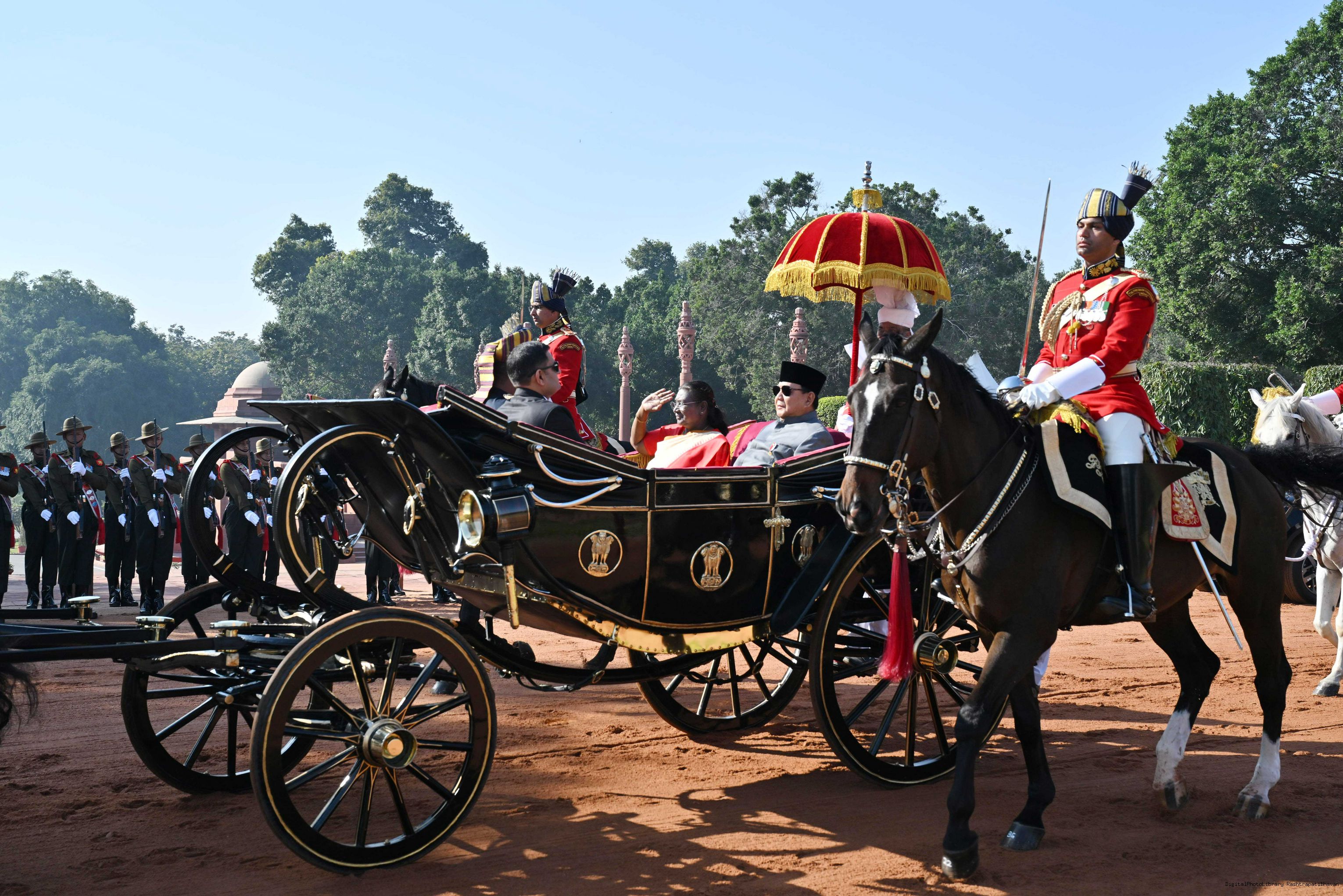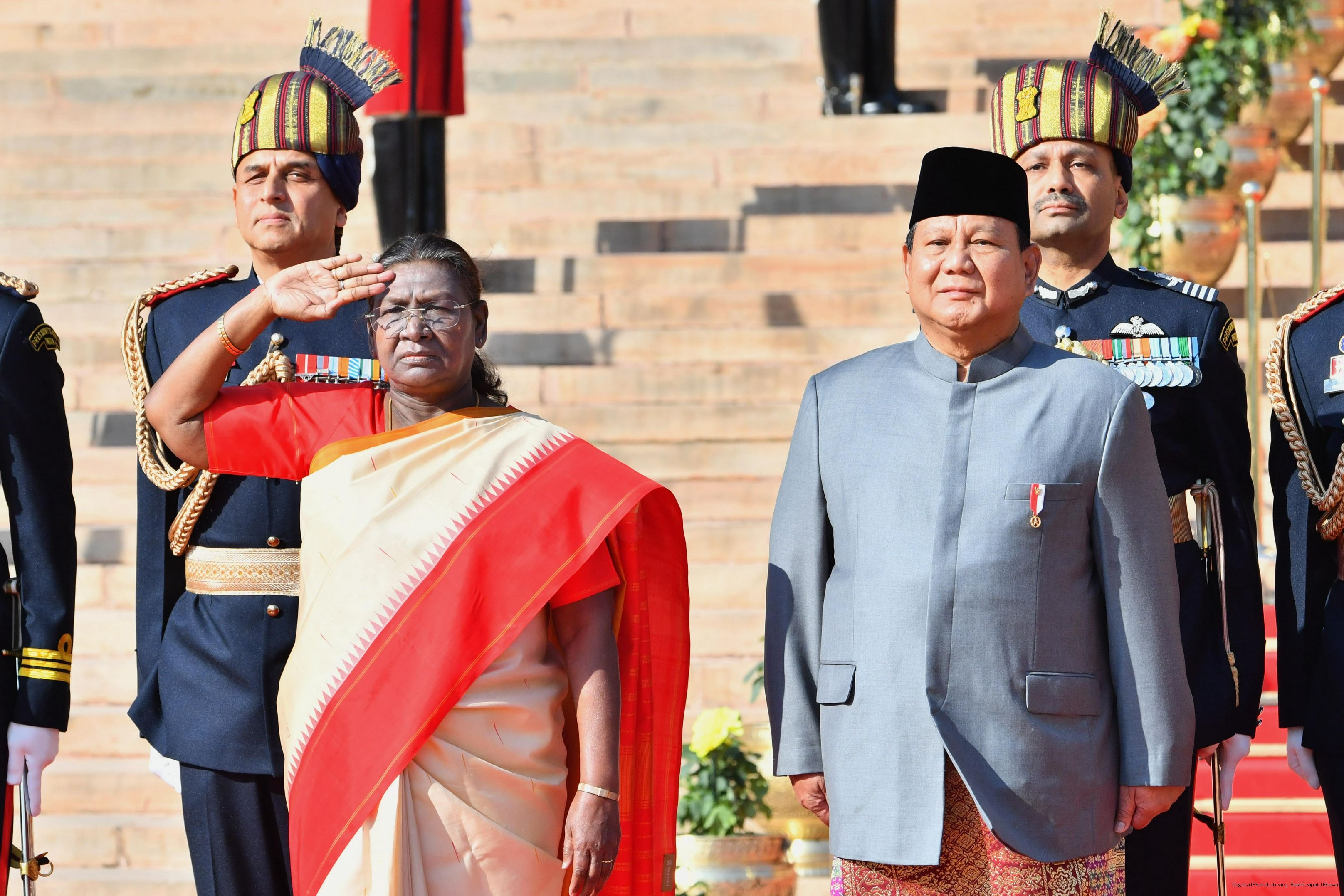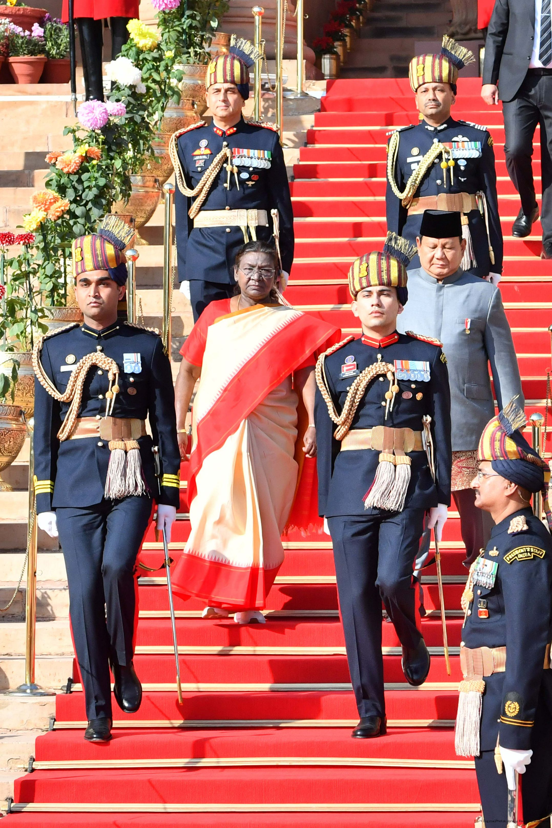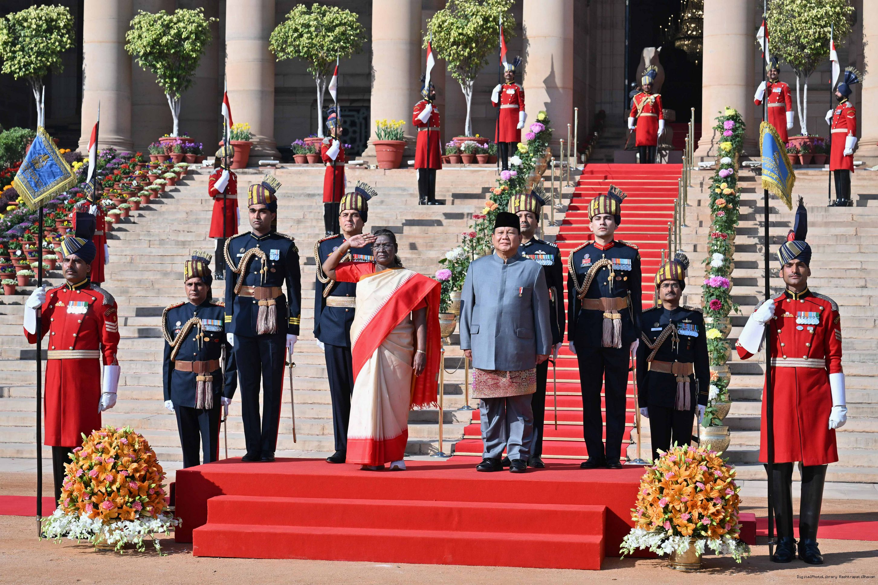 | Caption: | The PBG presenting the National Salute to the President of India, Smt. Droupadi Murmu at Rashtrapati Bhavan in New Delhi on January 26, 2025. |