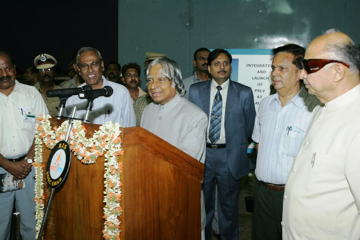 | Caption: | The President of India, Dr A P J Abdul Kalam dedicating the Second Launch Pad to the Nation, witnessing the Vehicle at SLP and at the Presentation on PSLV-C6 at Sriharikota, Chennai in Tamil Nadu on May 04, 2005 |