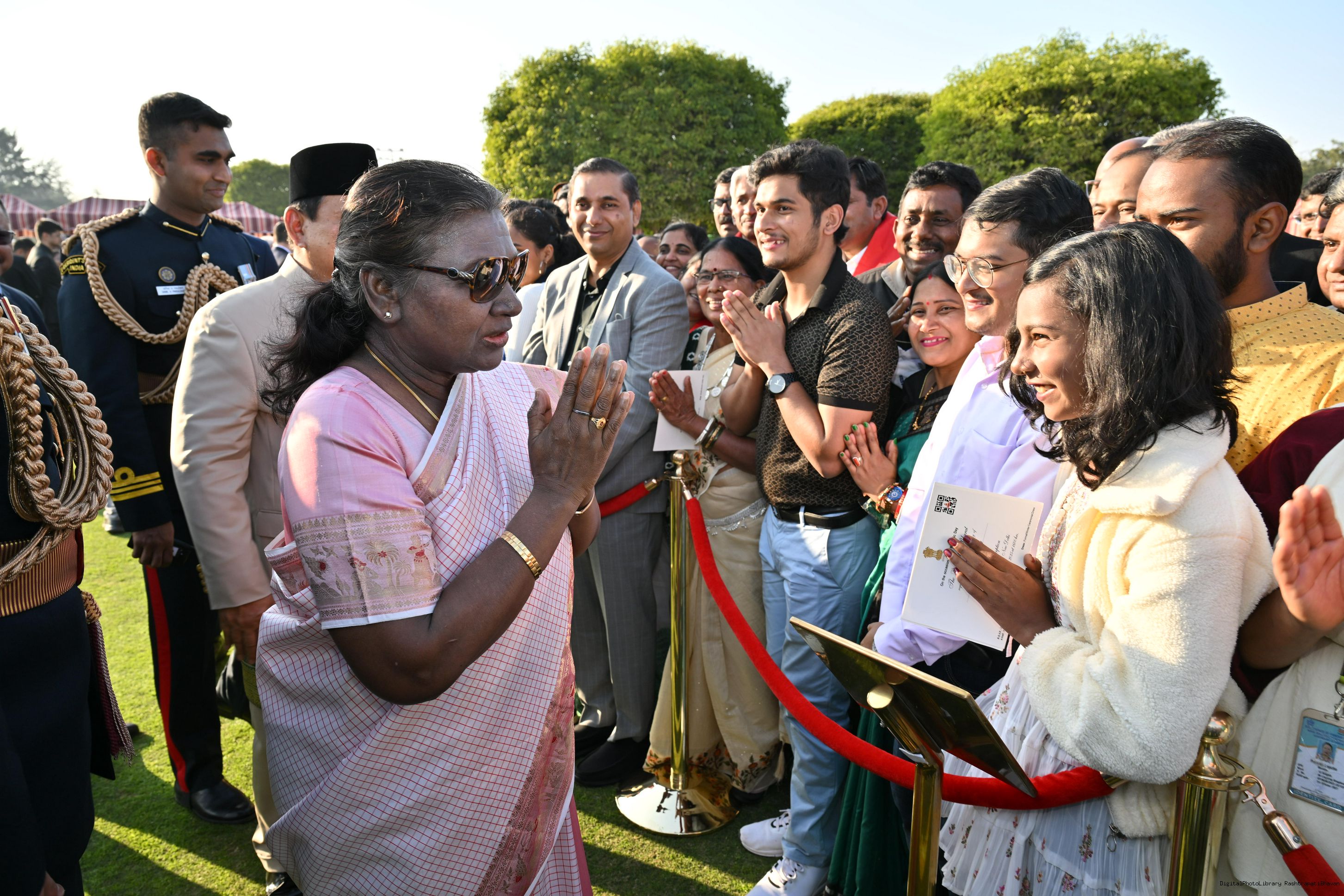 | Caption: | The President of India, Smt. Droupadi Murmu on ‘At Home’ on the occasion of Republic Day 26-01-2025. |