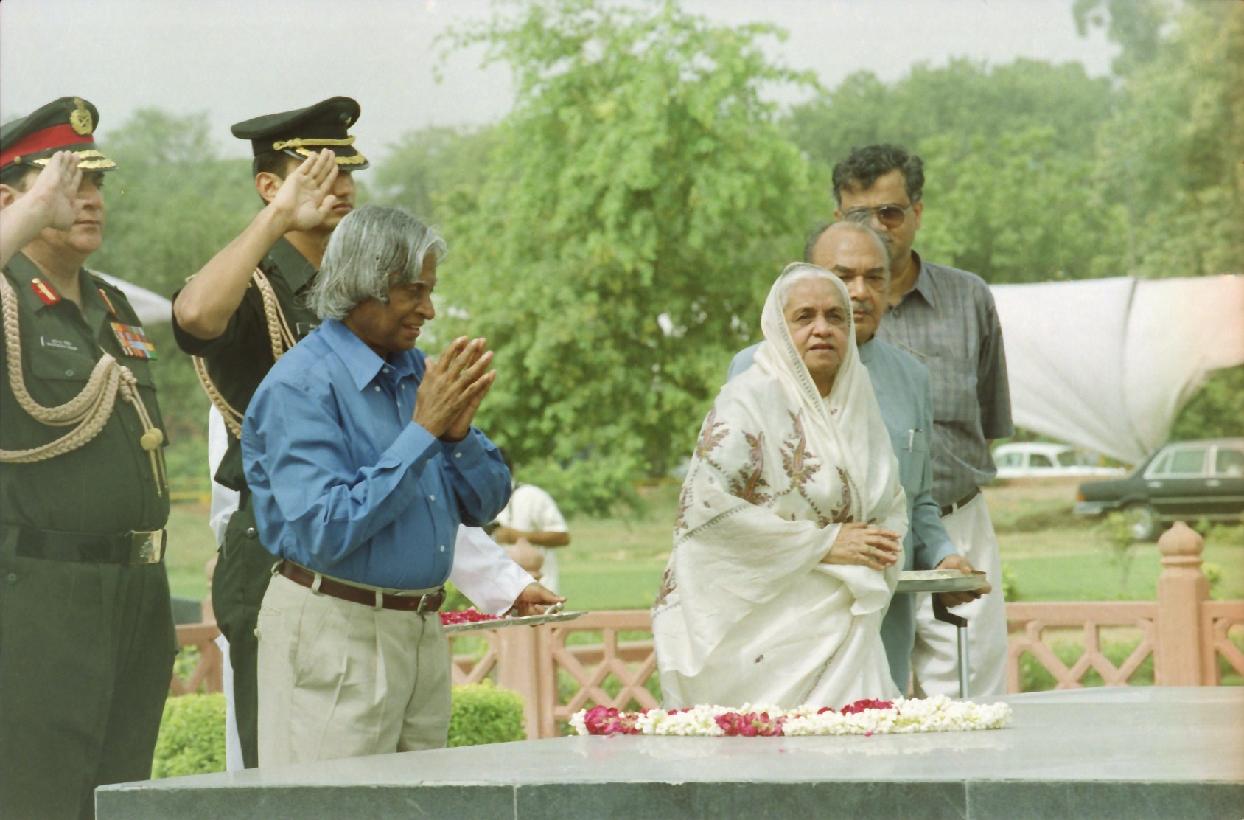 | Caption: | The President of India, Dr A P J Abdul Kalam paying homage at Shanker Dham in New Delhi on July 26, 2002 |