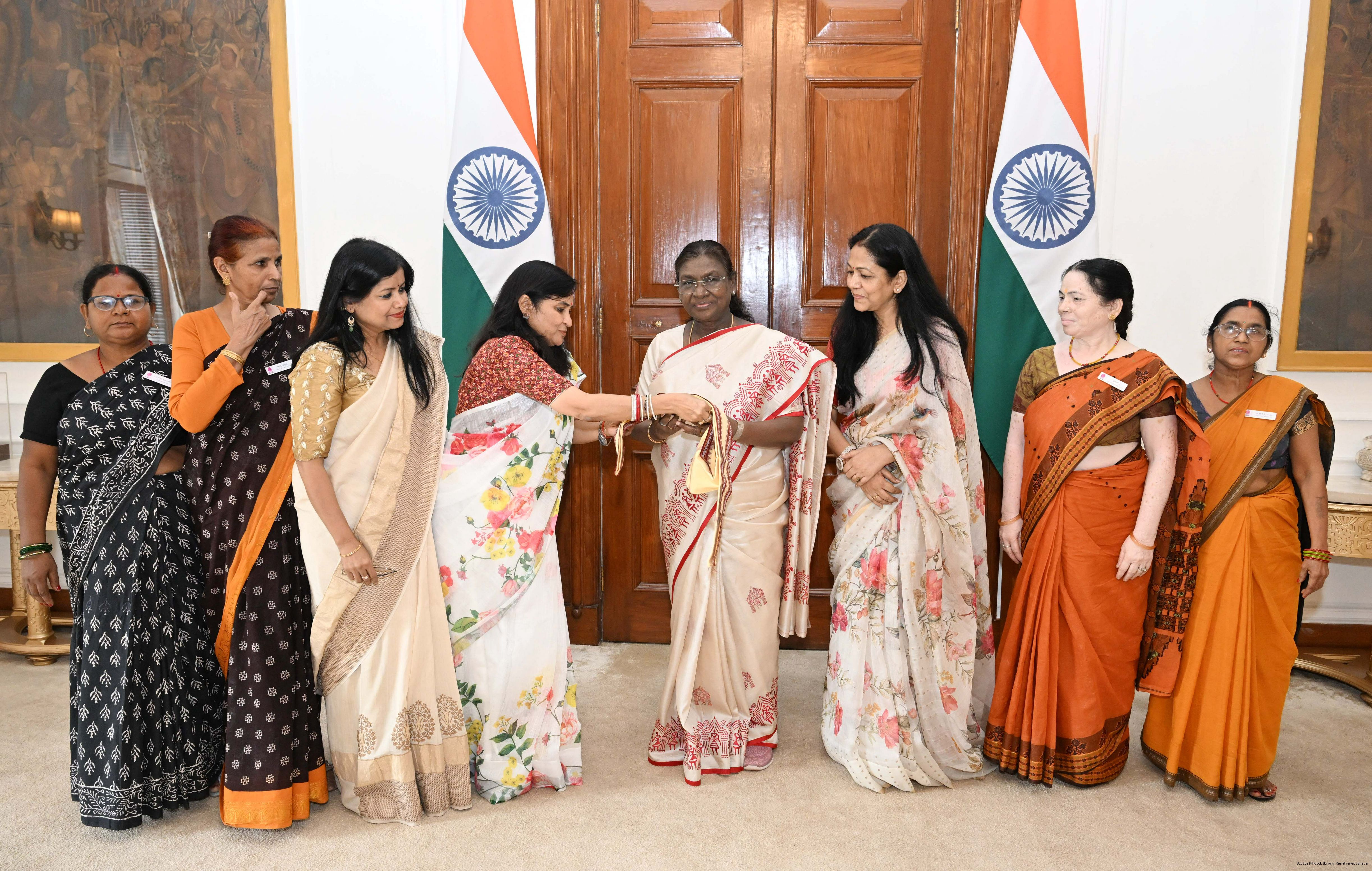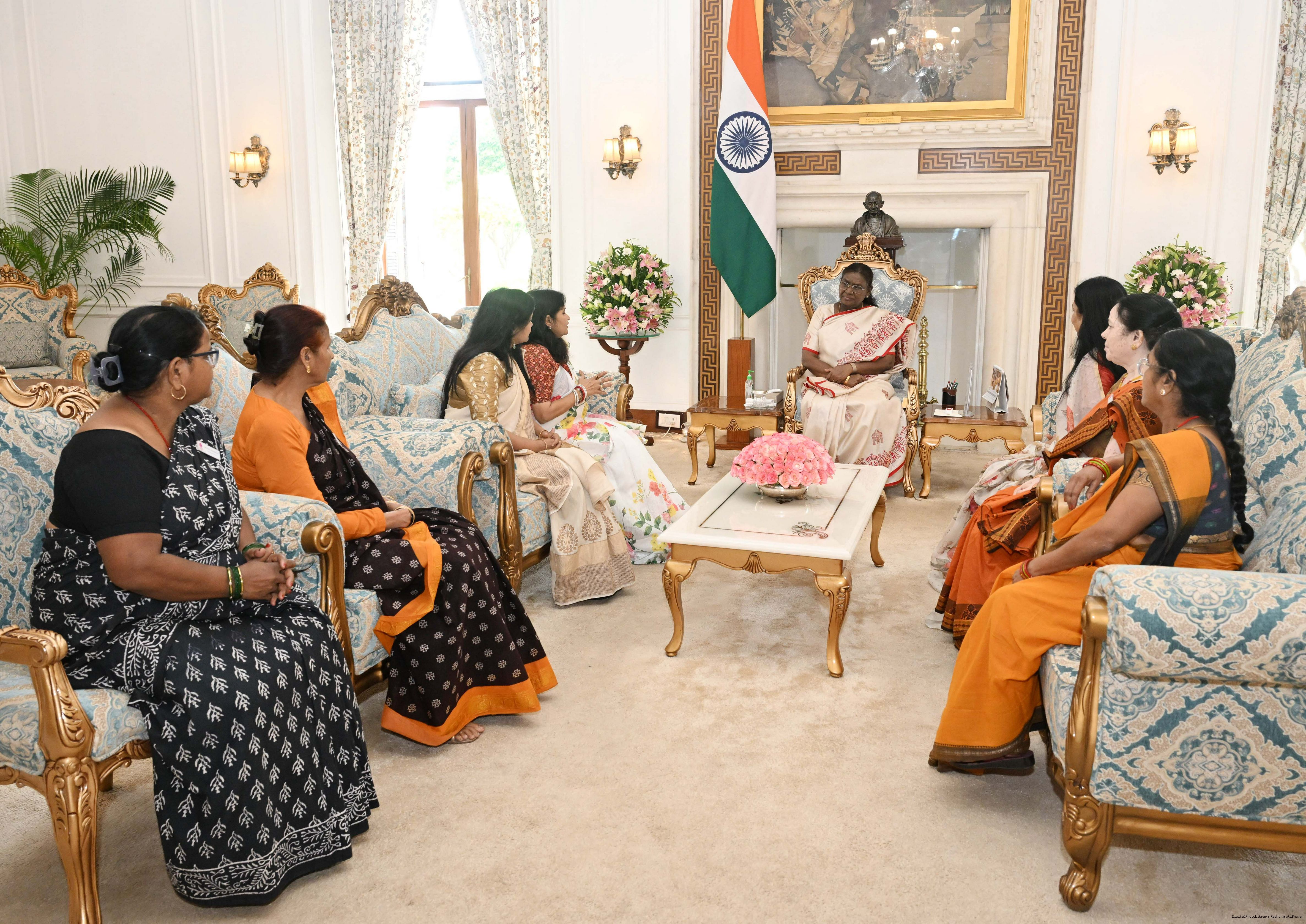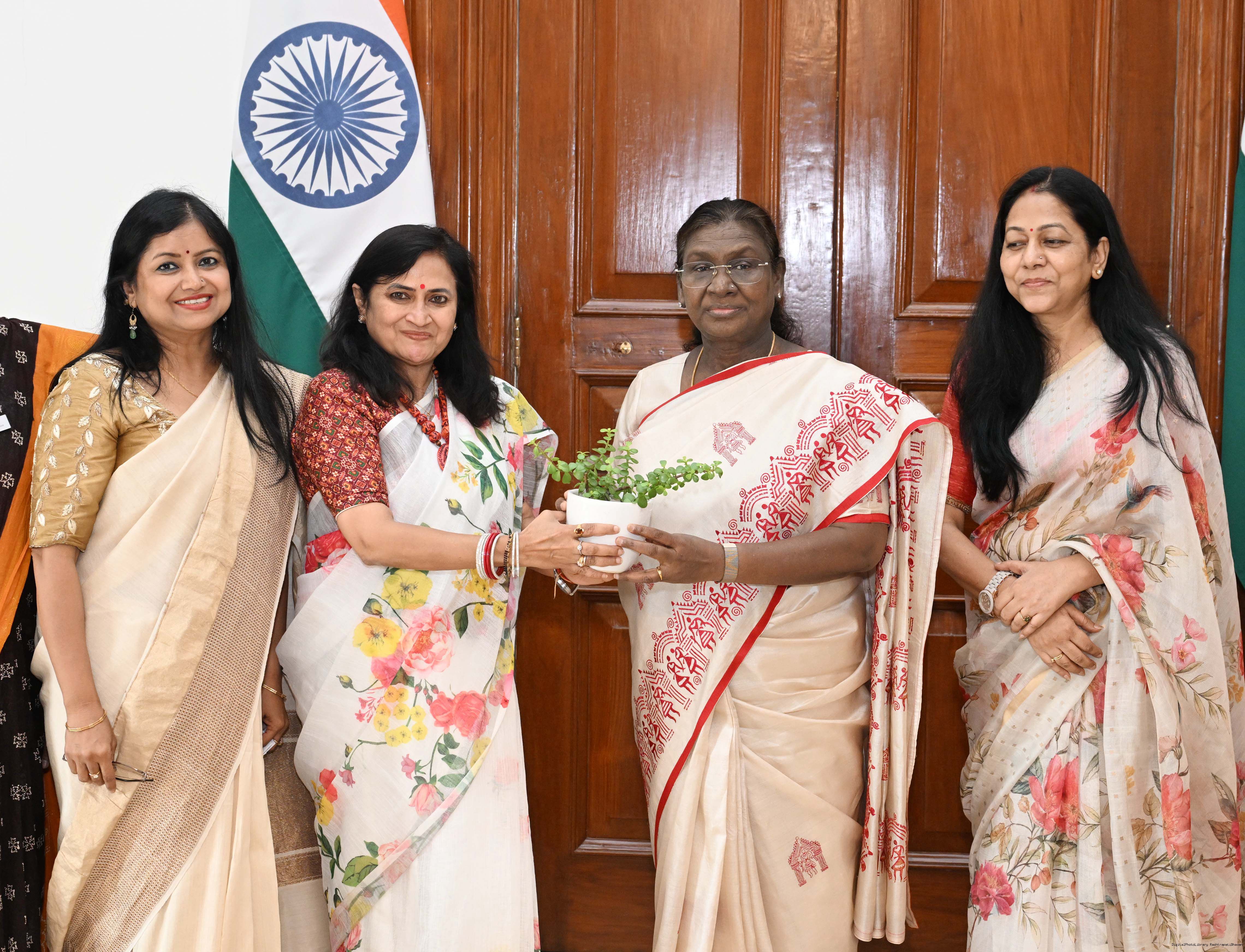 | Caption: | Dr. Rashmi Singh, President, Akanksha Samiti, Lucknow, UP, along with Smt. Pratibha Singh, and others meeting with the President of India, Smt Droupadi Murmu at Rashtrapati Bhavan on July 17, 2025. |