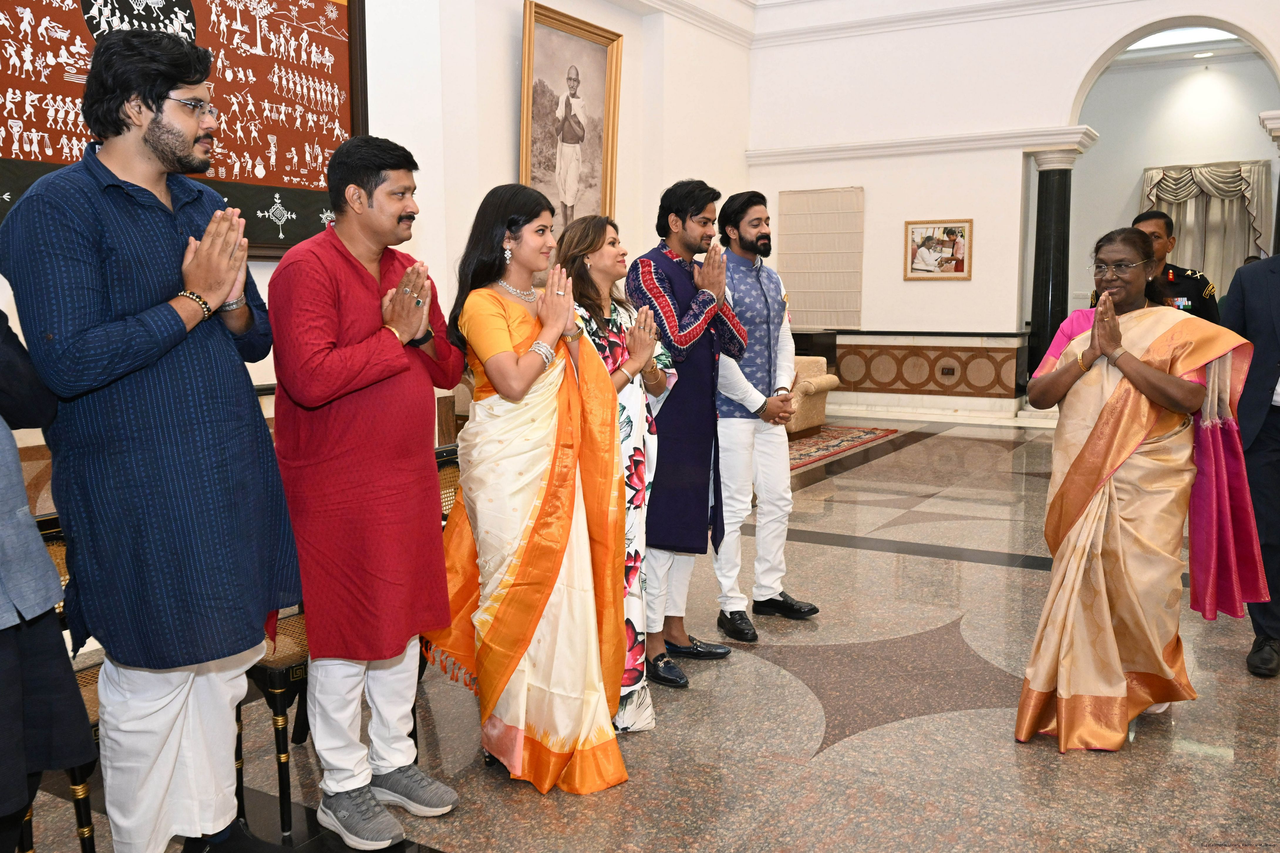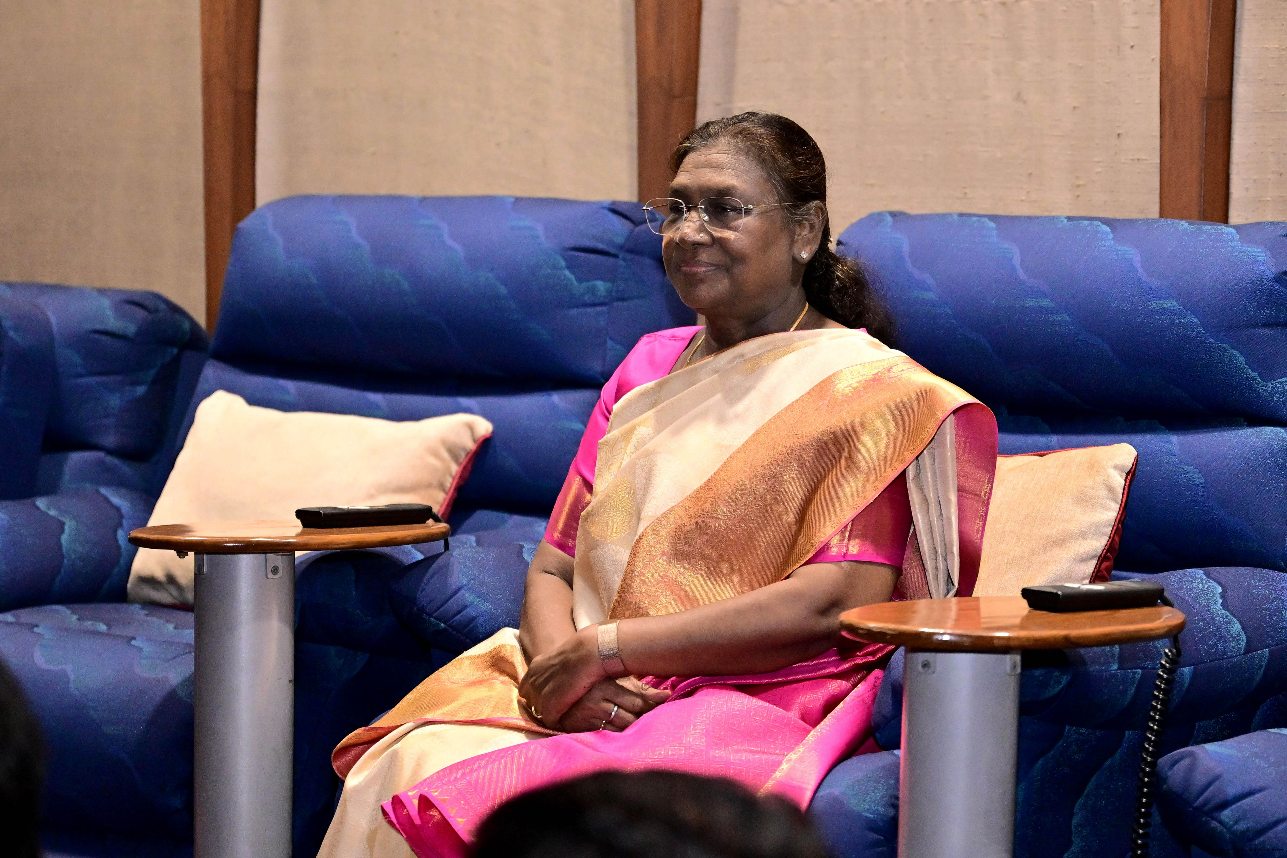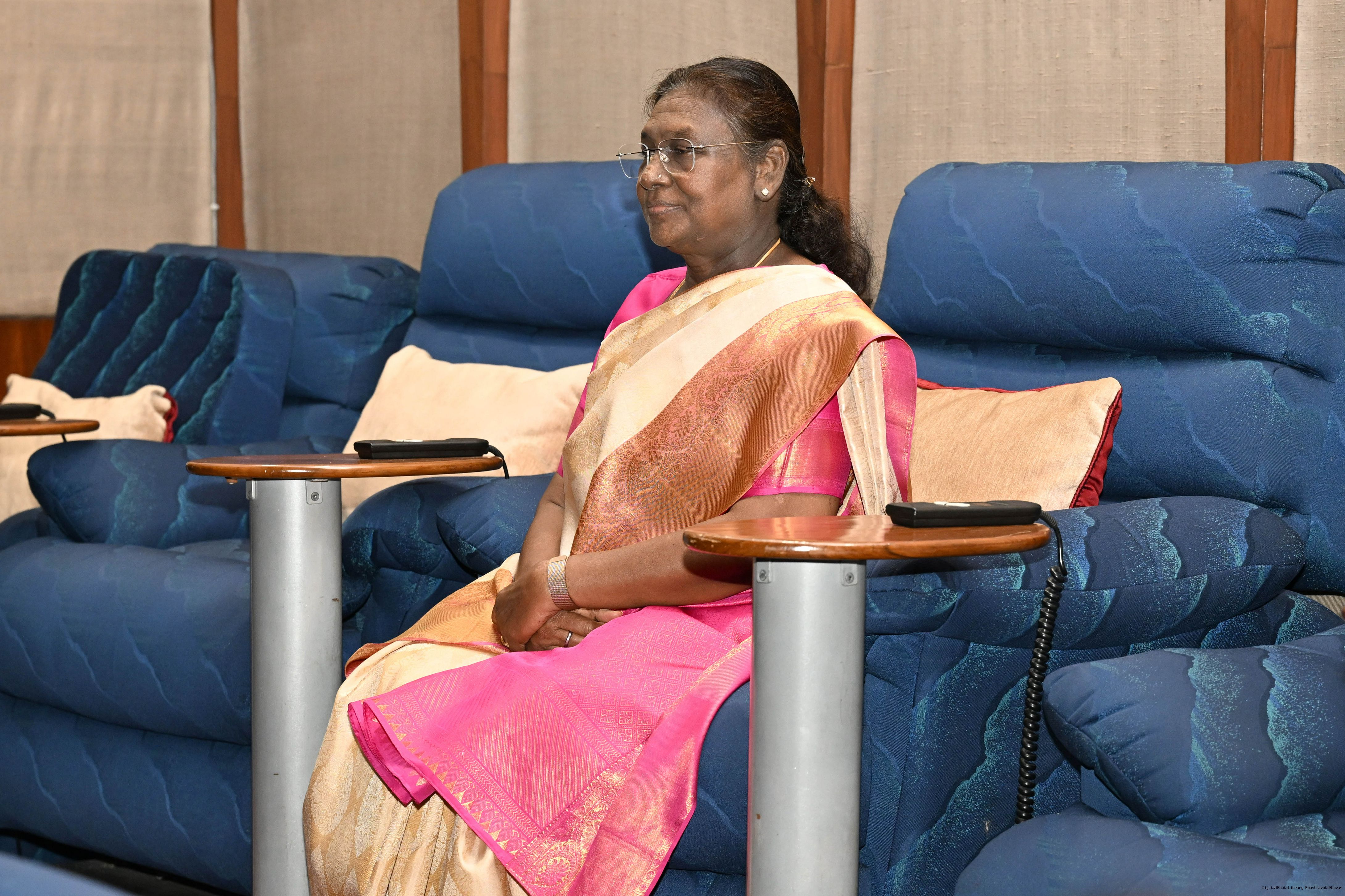 | Caption: | The President of India, Smt. Droupadi Murmu watched Odia movie ‘Shri Jagannath Nka Nabakalebara’ at the Rashtrapati Bhavan Cultural Centre on July 18, 2025. |