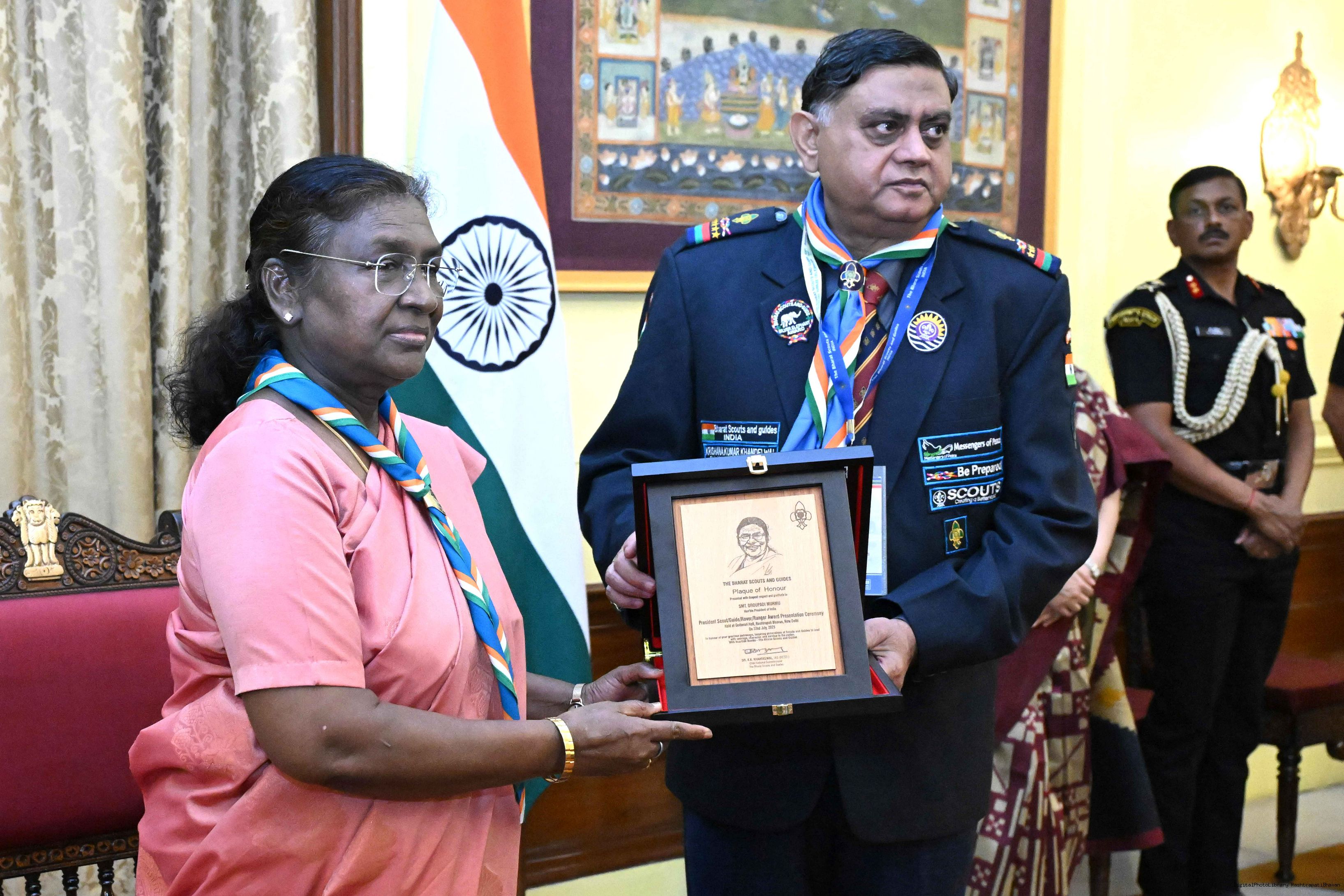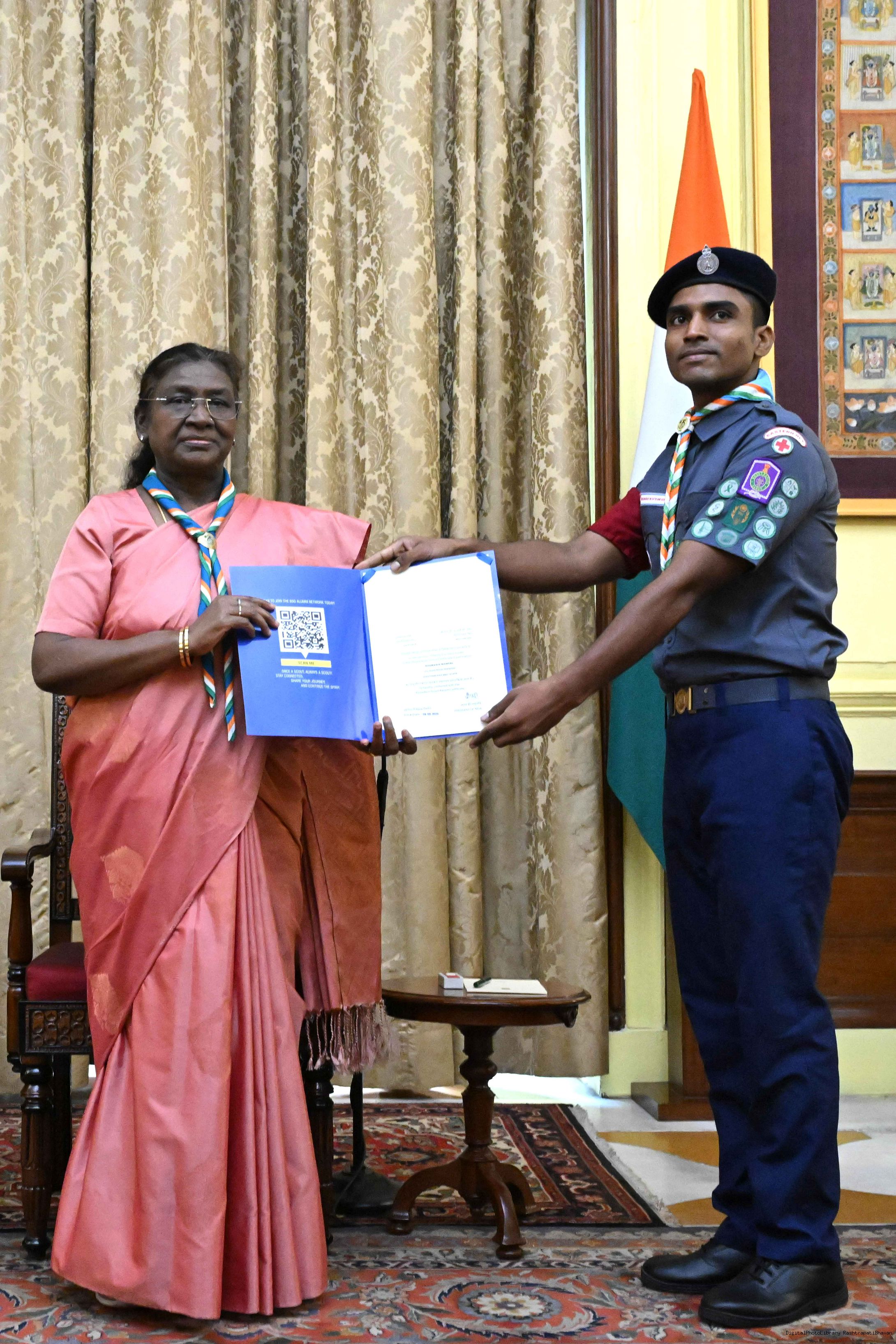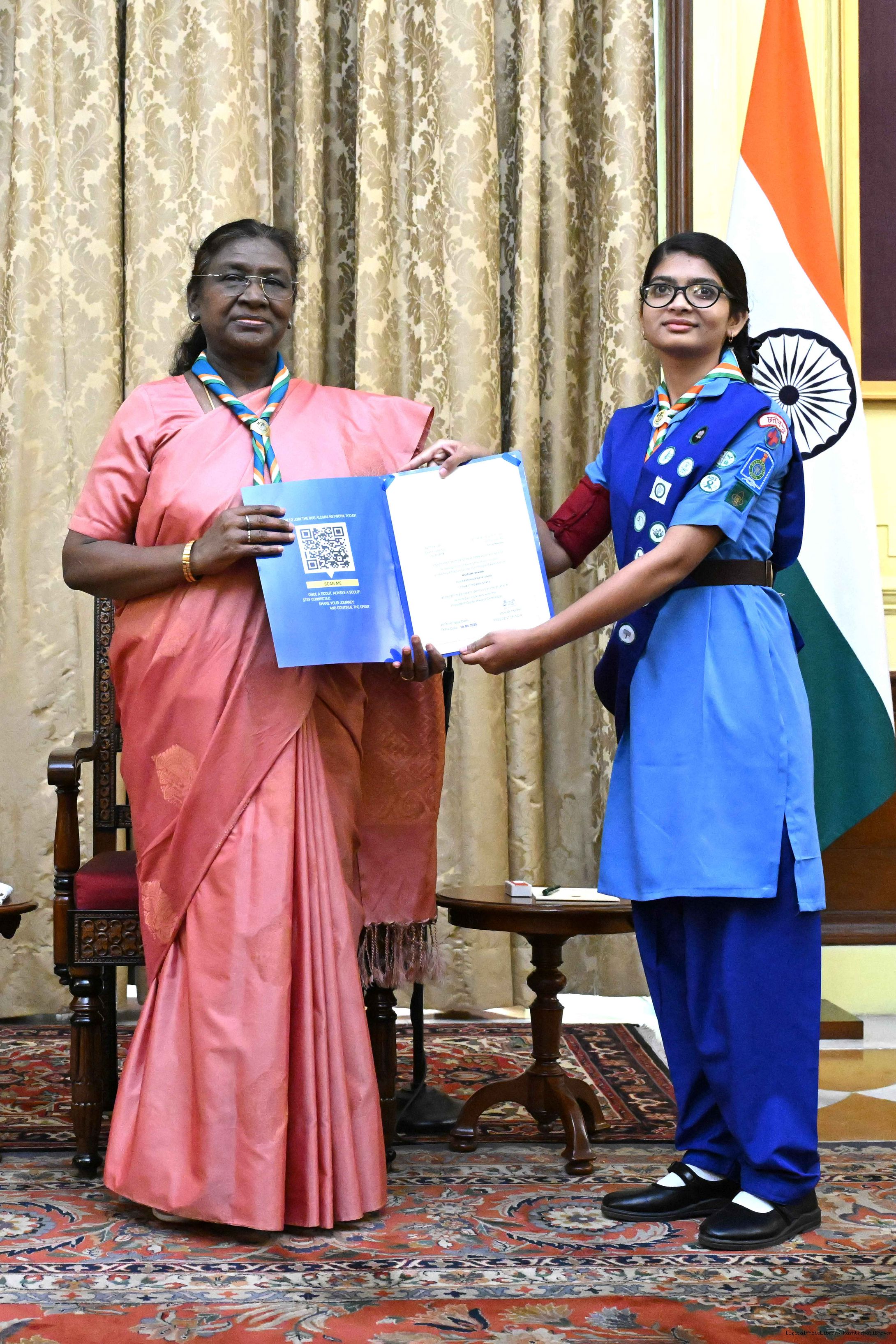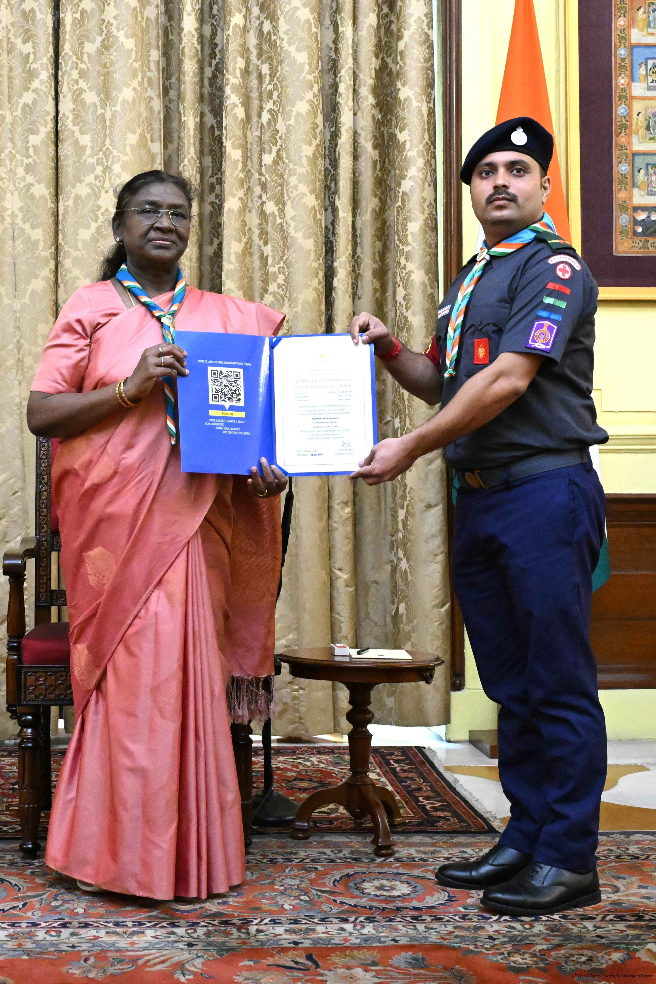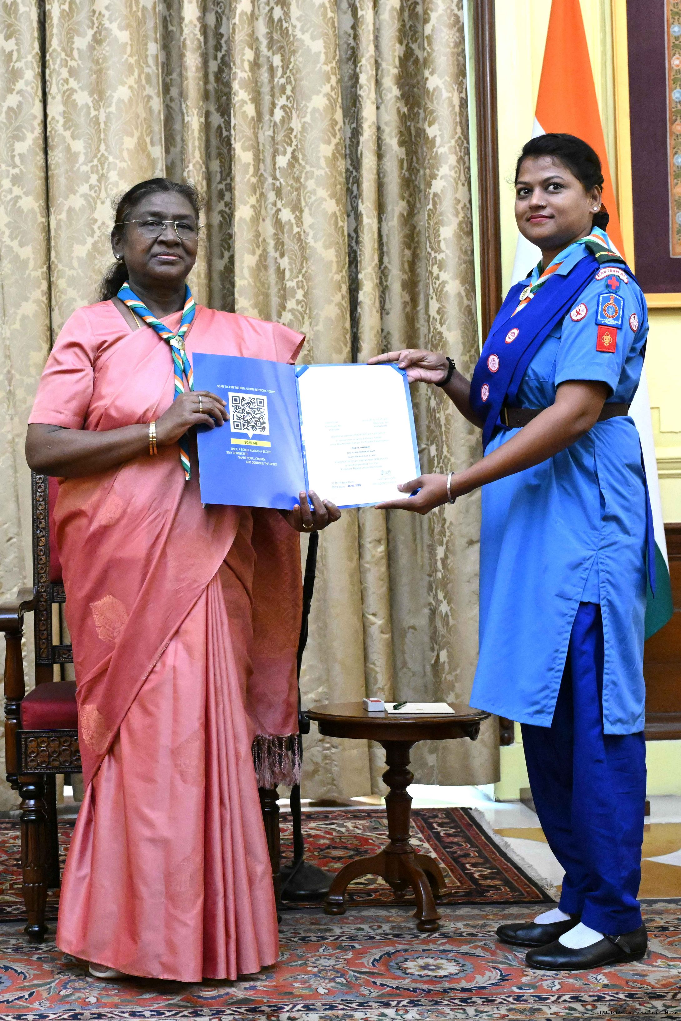 | Caption: | The President of India, Smt. Droupadi Murmu presented the Scouts/Guides/Rovers/Rangers Award Certificates for the years 2018-2021 at a function at Rashtrapati Bhavan on July 22, 2025. |