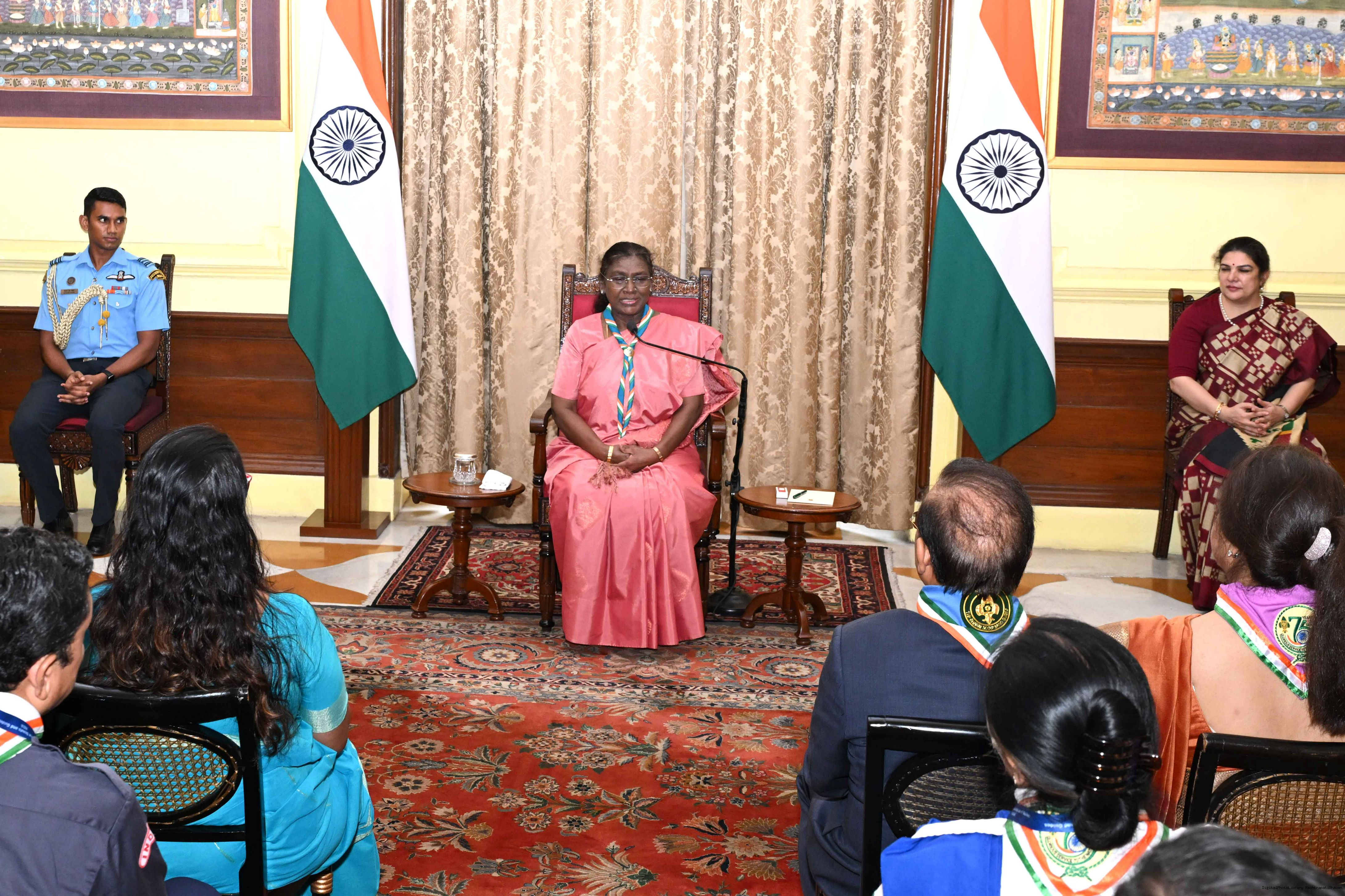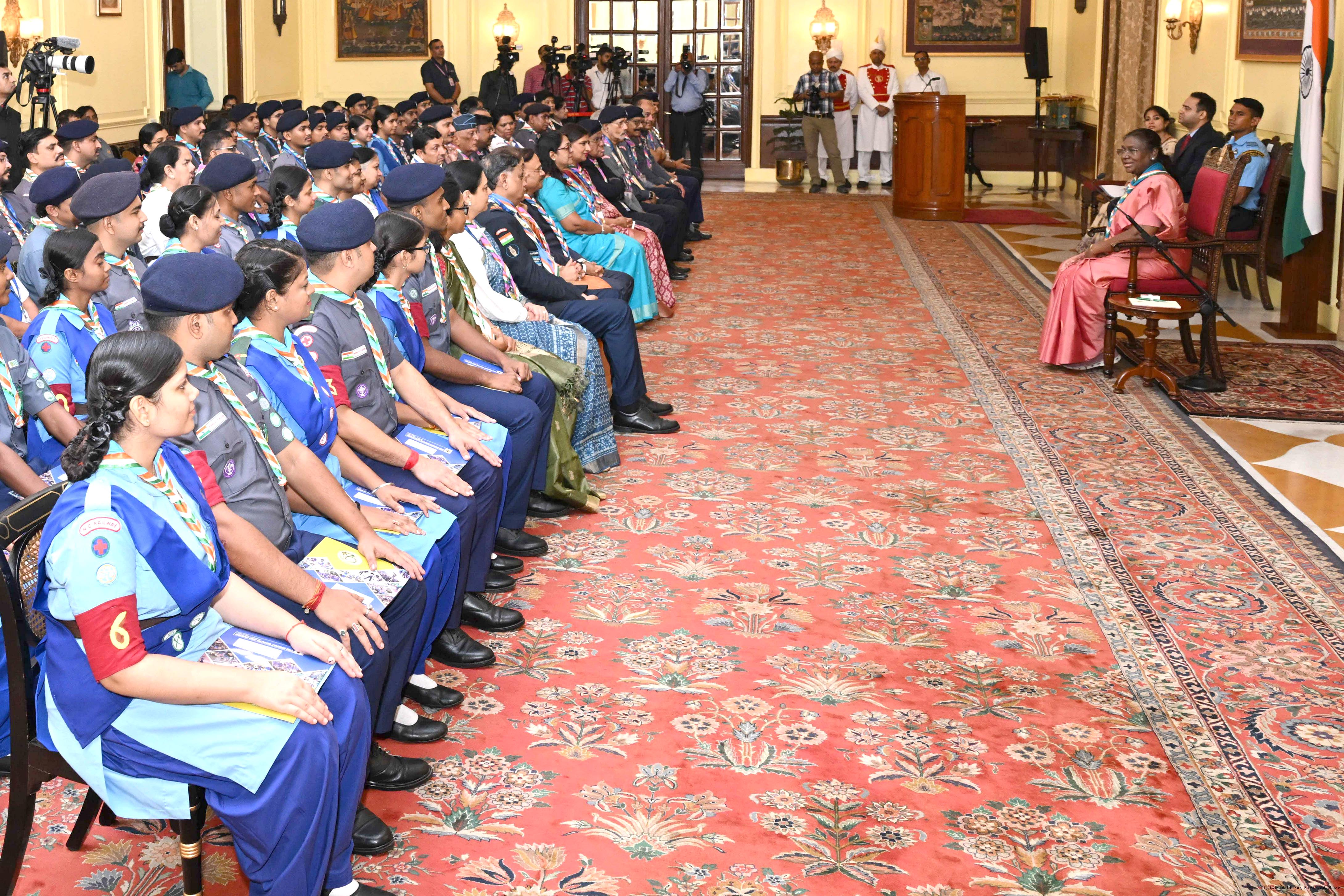| Caption: | The President of India, Smt. Droupadi Murmu presented the Scouts/Guides/Rovers/Rangers Award Certificates for the years 2018-2021 at a function at Rashtrapati Bhavan on July 22, 2025. |