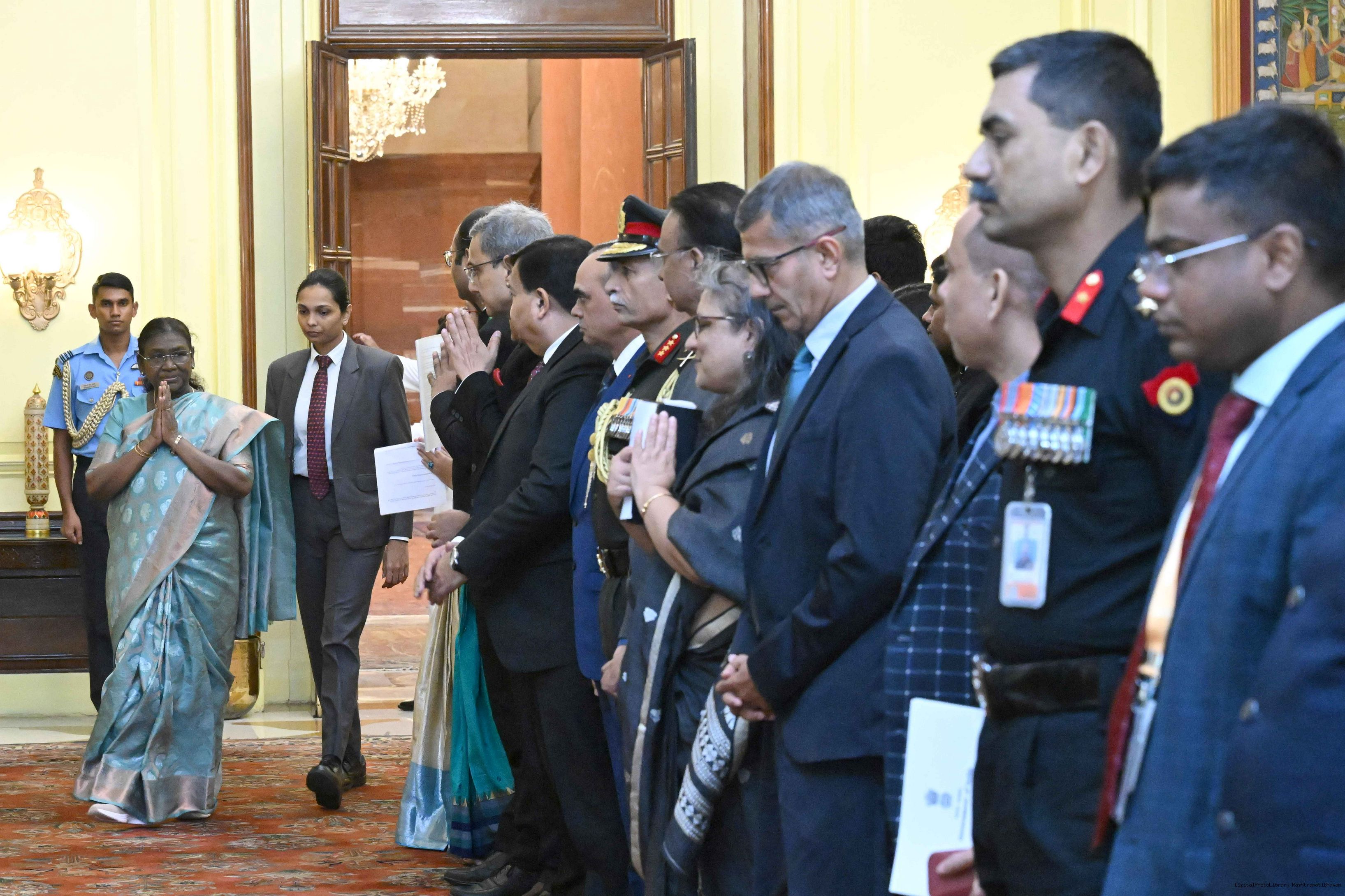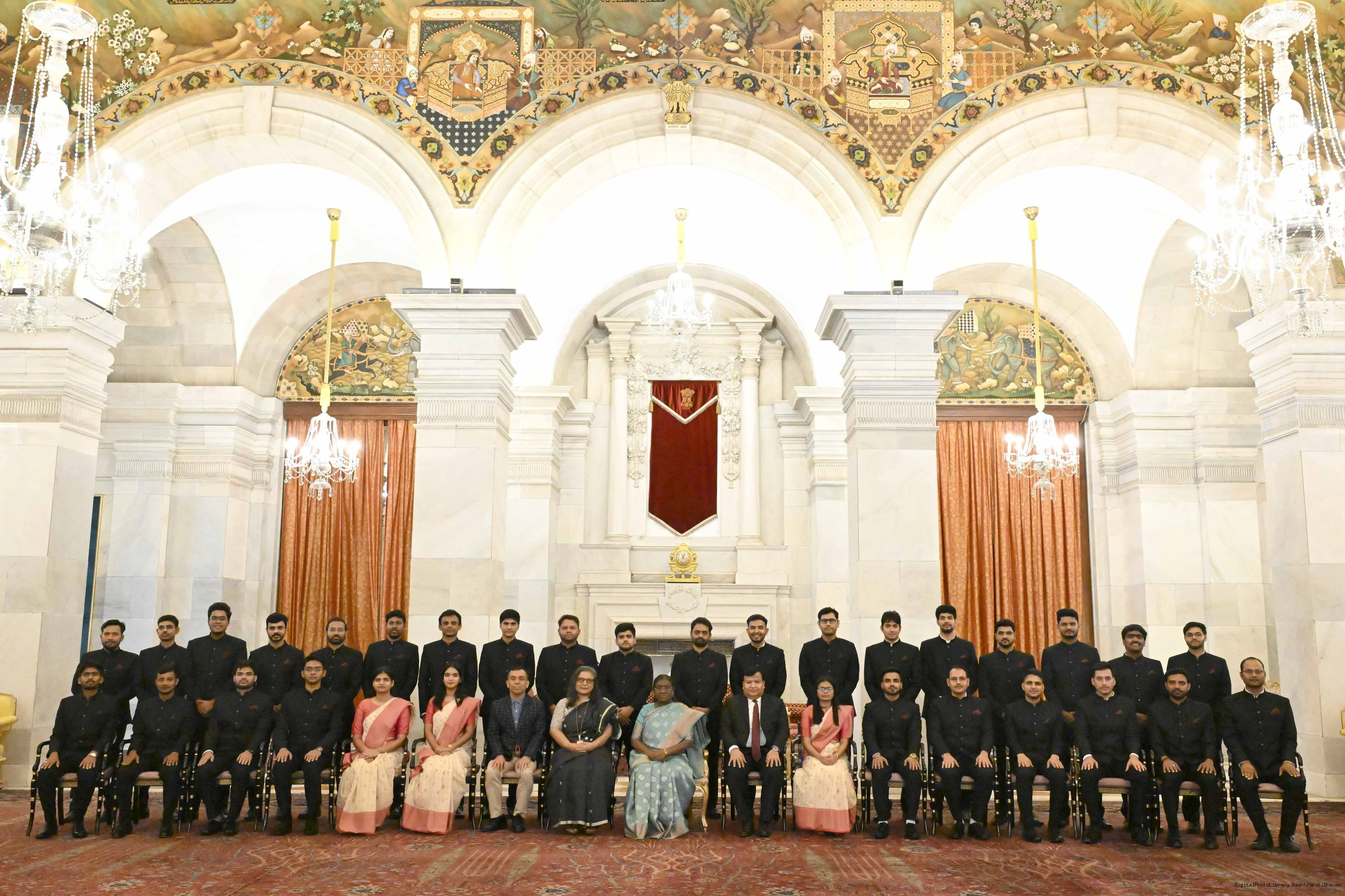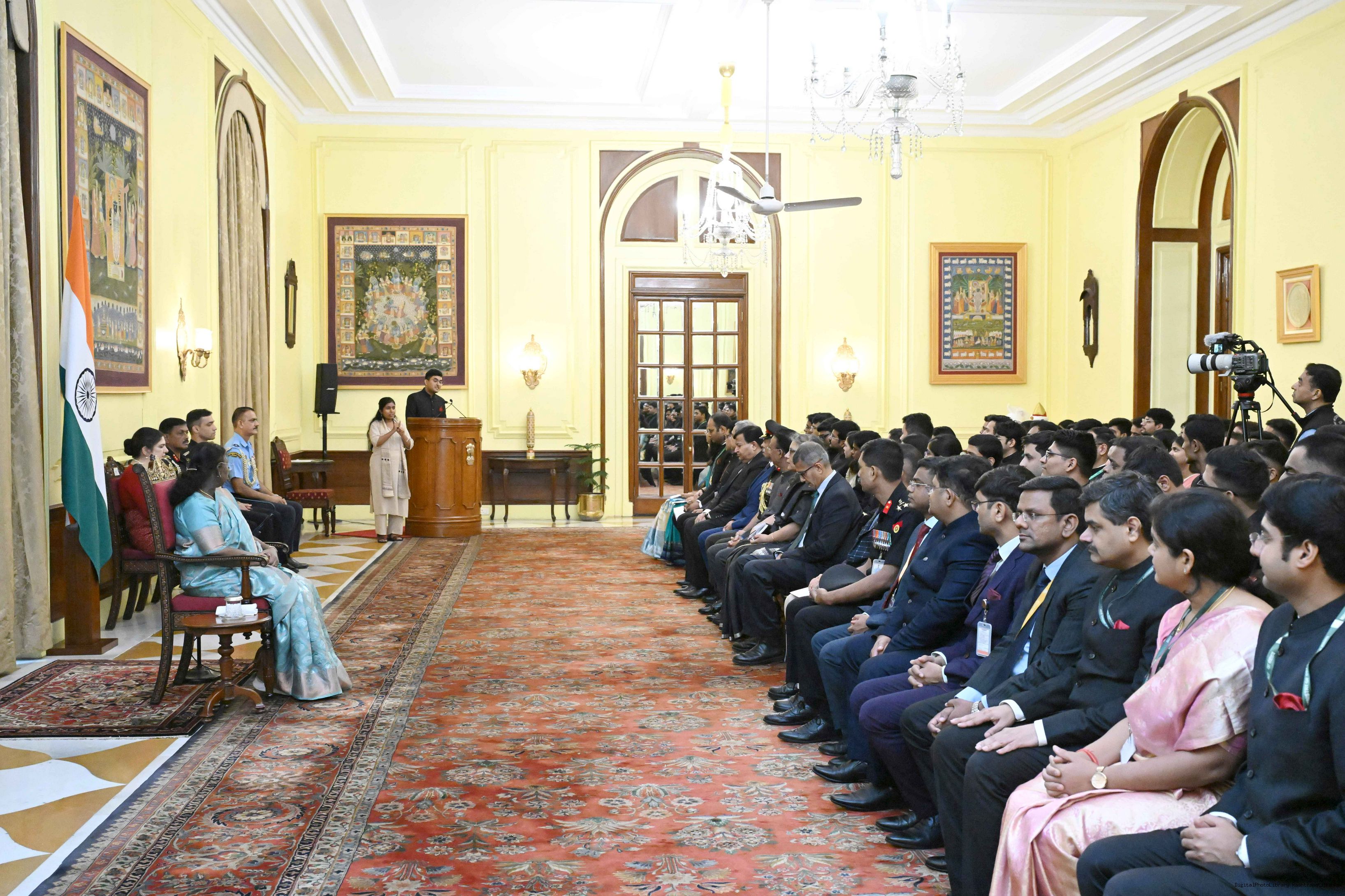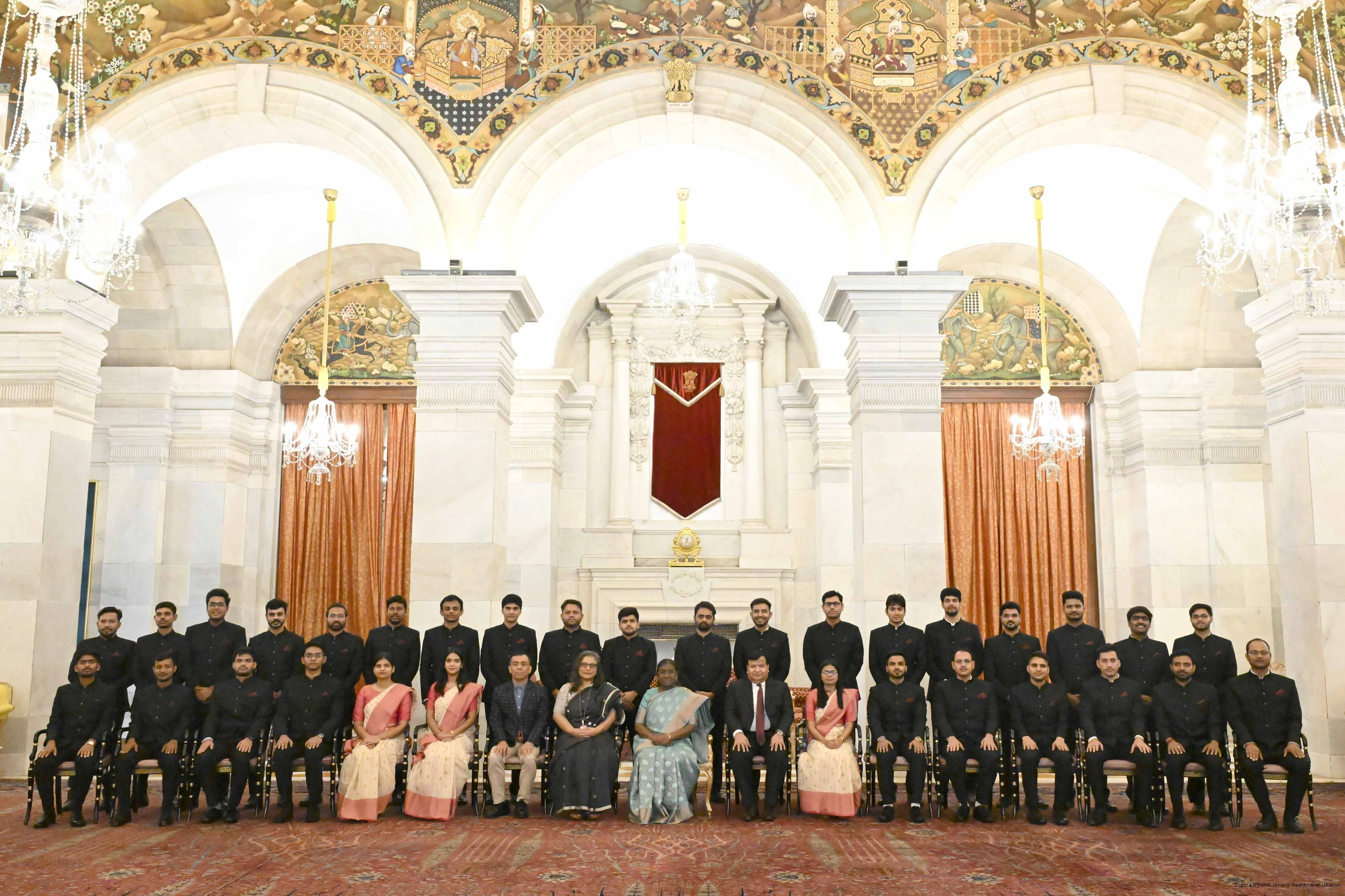 | Caption: | The probationers of the Indian Defence Estates Service, Military Engineer Services and Central Water Engineering Service called on the President of India, Smt Droupadi Murmu at Rashtrapati Bhavan on July 23, 2025. |