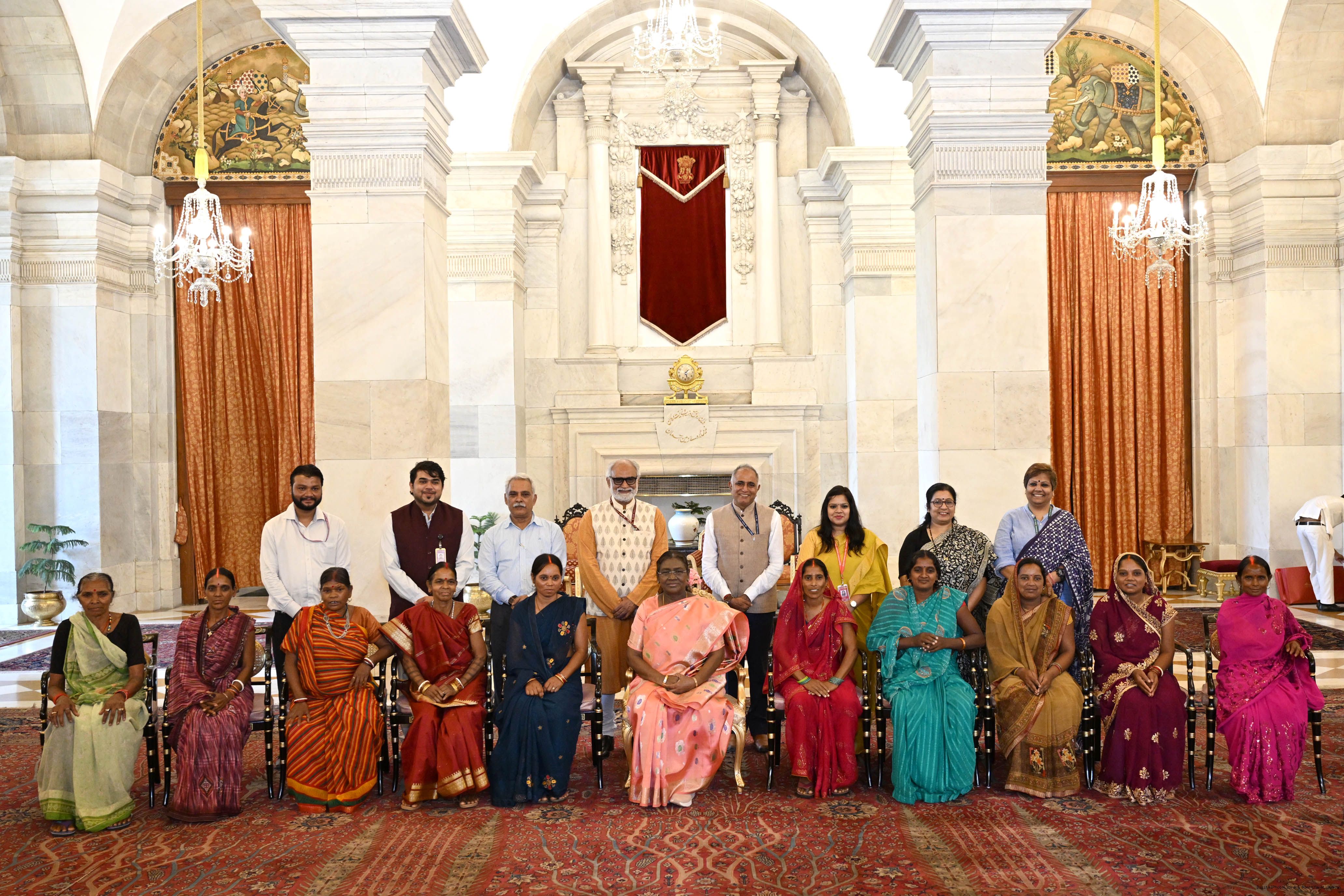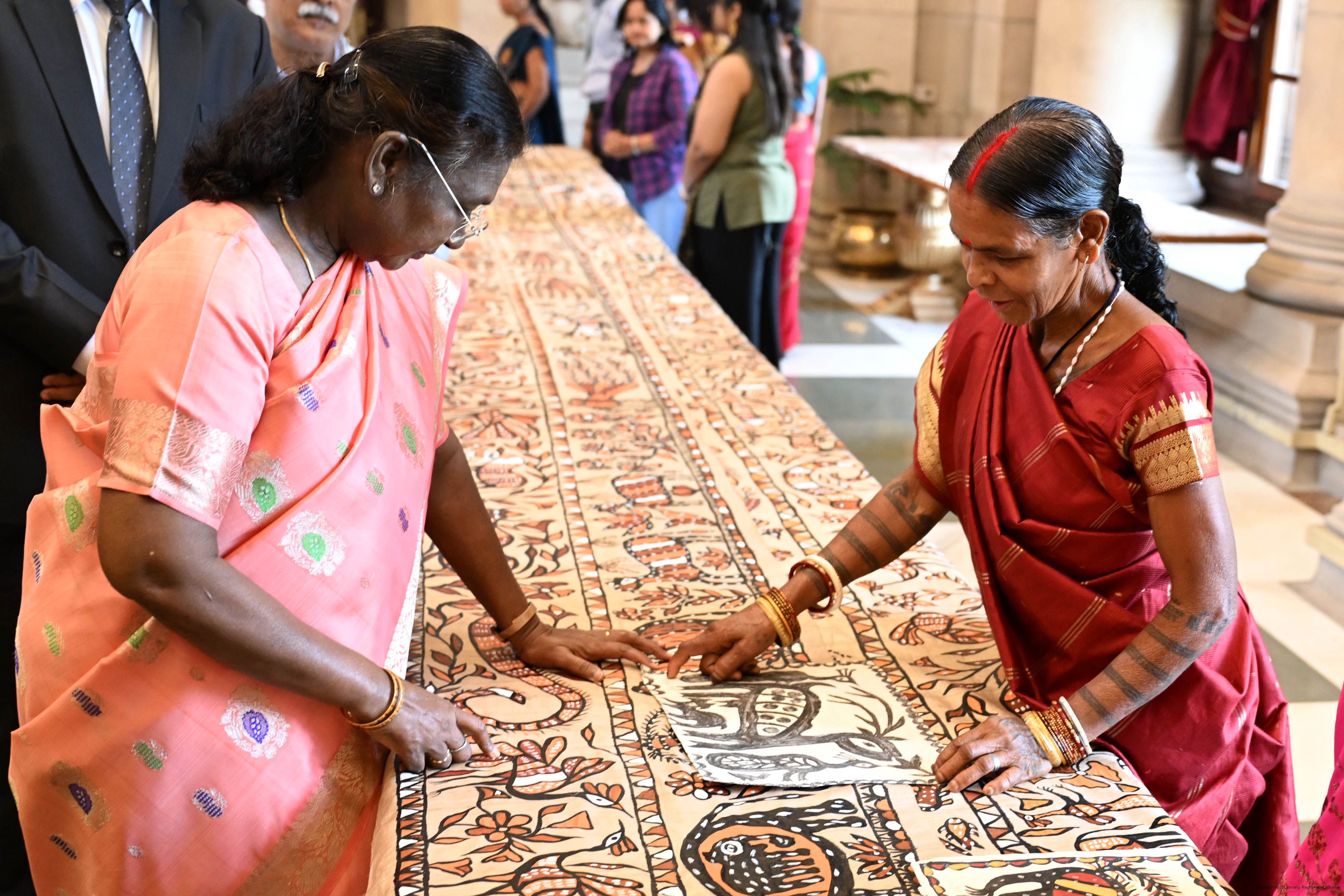 | Caption: | A group of Artists of Sohrai, Pattachitra and Patua art forms called on the President of India, Smt. Droupadi Murmu at Rashtrapati Bhavan on July 24, 2025. |