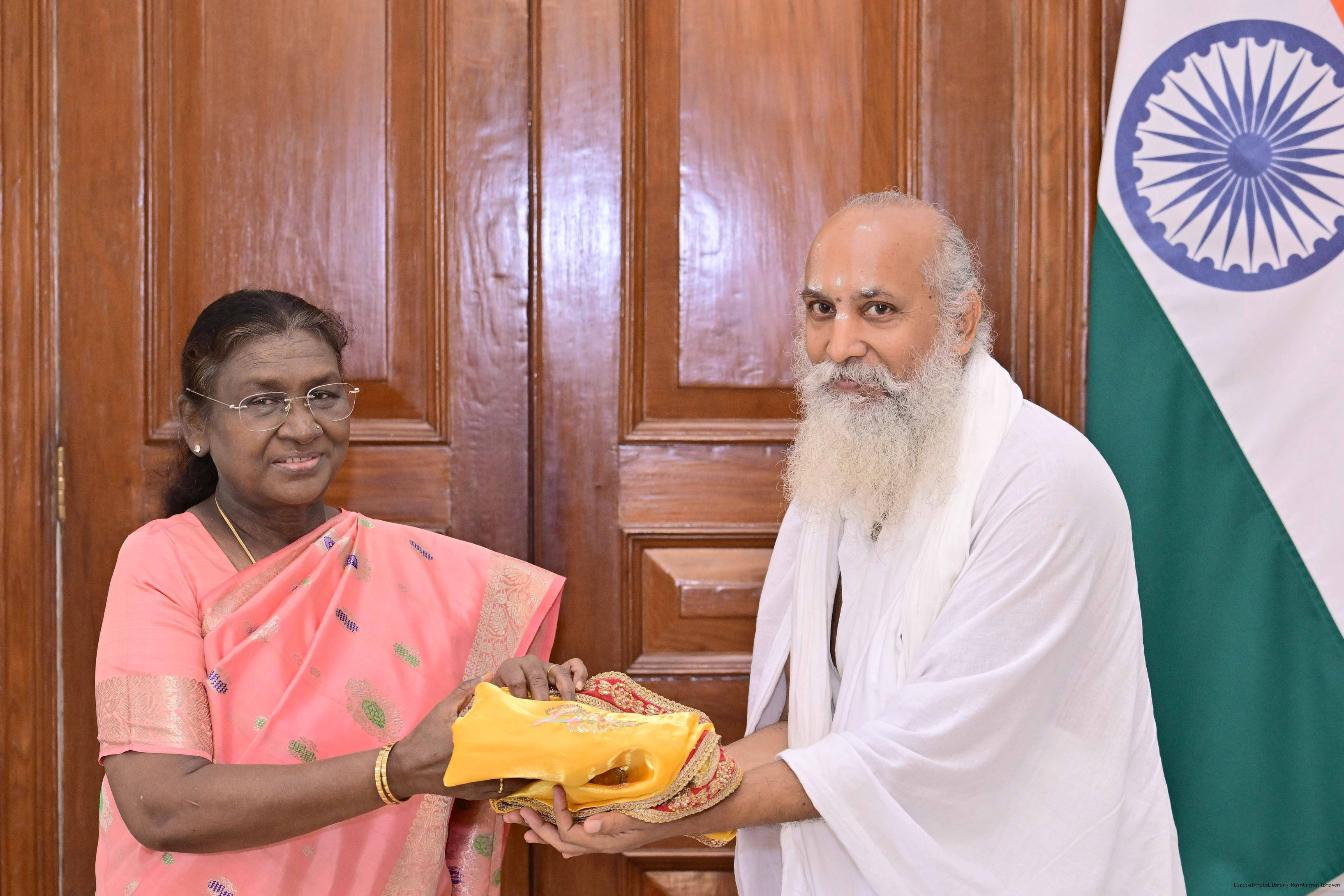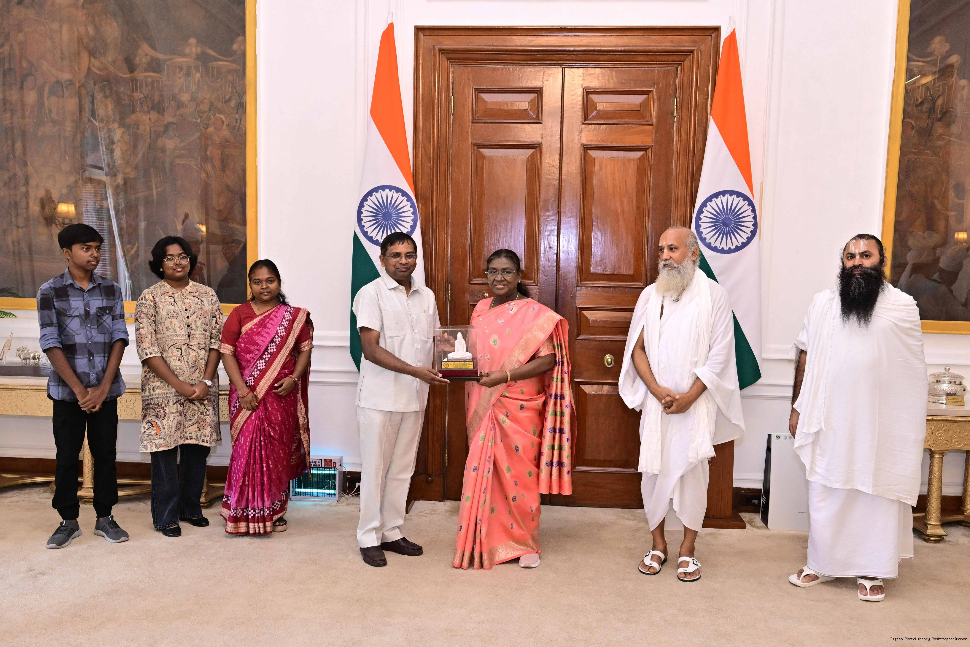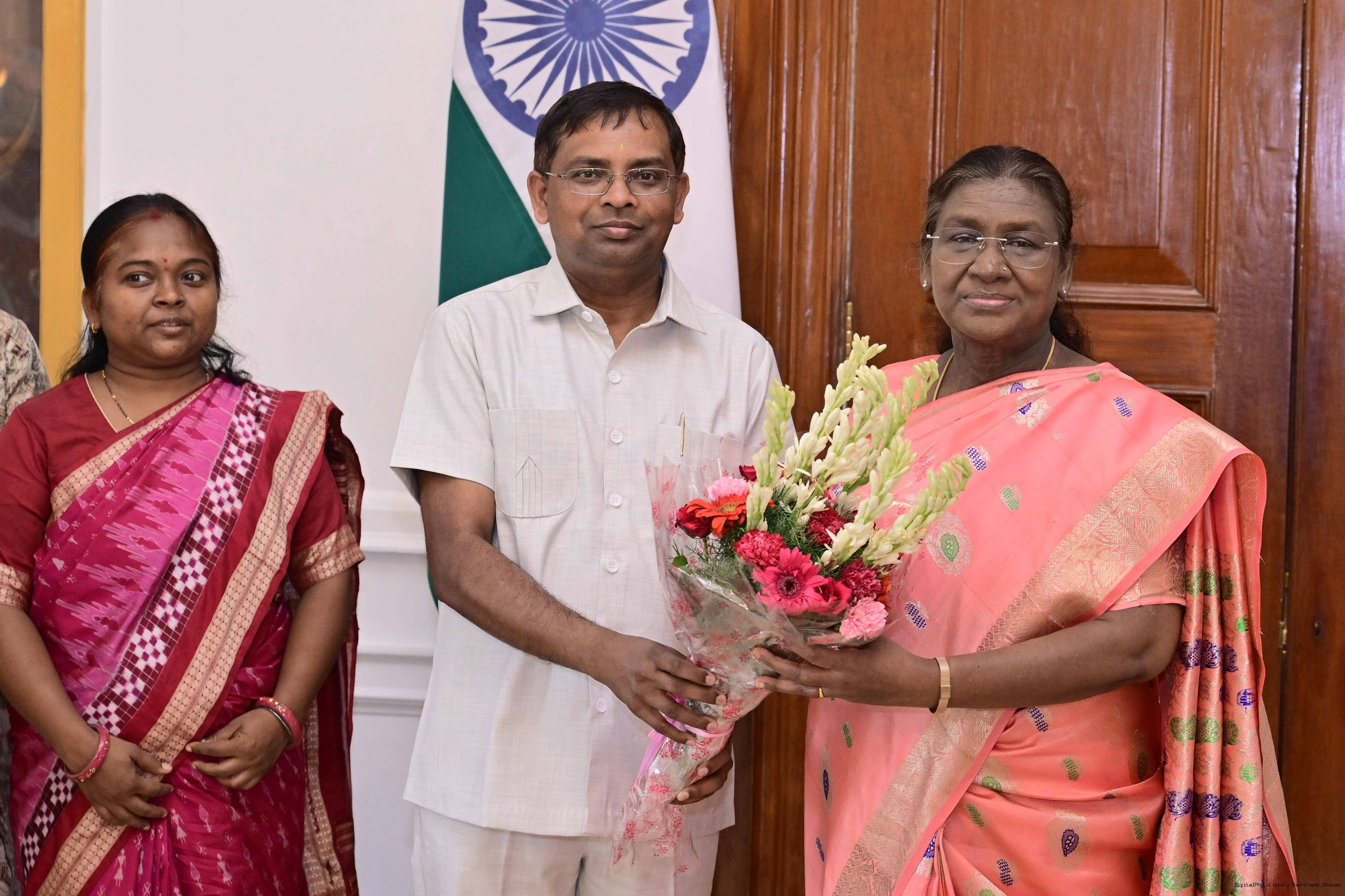| Caption: | Prof Dr. Vyasadeva Mahanta, Addl Medical Superintendent Dept Shalya Tantra, along with others meeting with the President of India, Smt Droupadi Murmu at Rashtrapati Bhavan on July 24, 2025. |