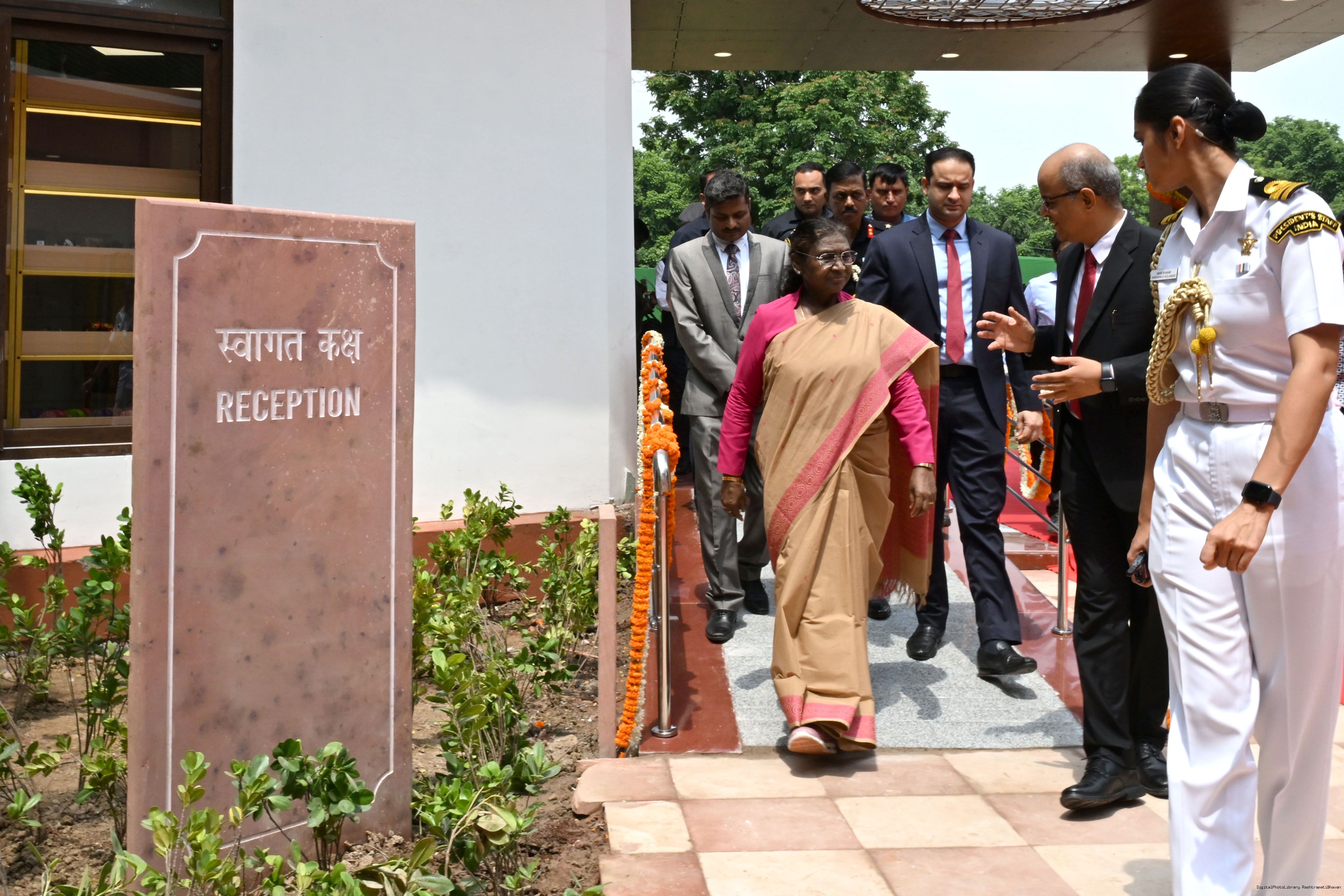 | Caption: | The President of India, Smt Droupadi Murmu inauguration on completion of Three years of Presidency of Visitor Facilitation Centre (VFC) at Rashtrapati Bhavan on July 25, 2025. |