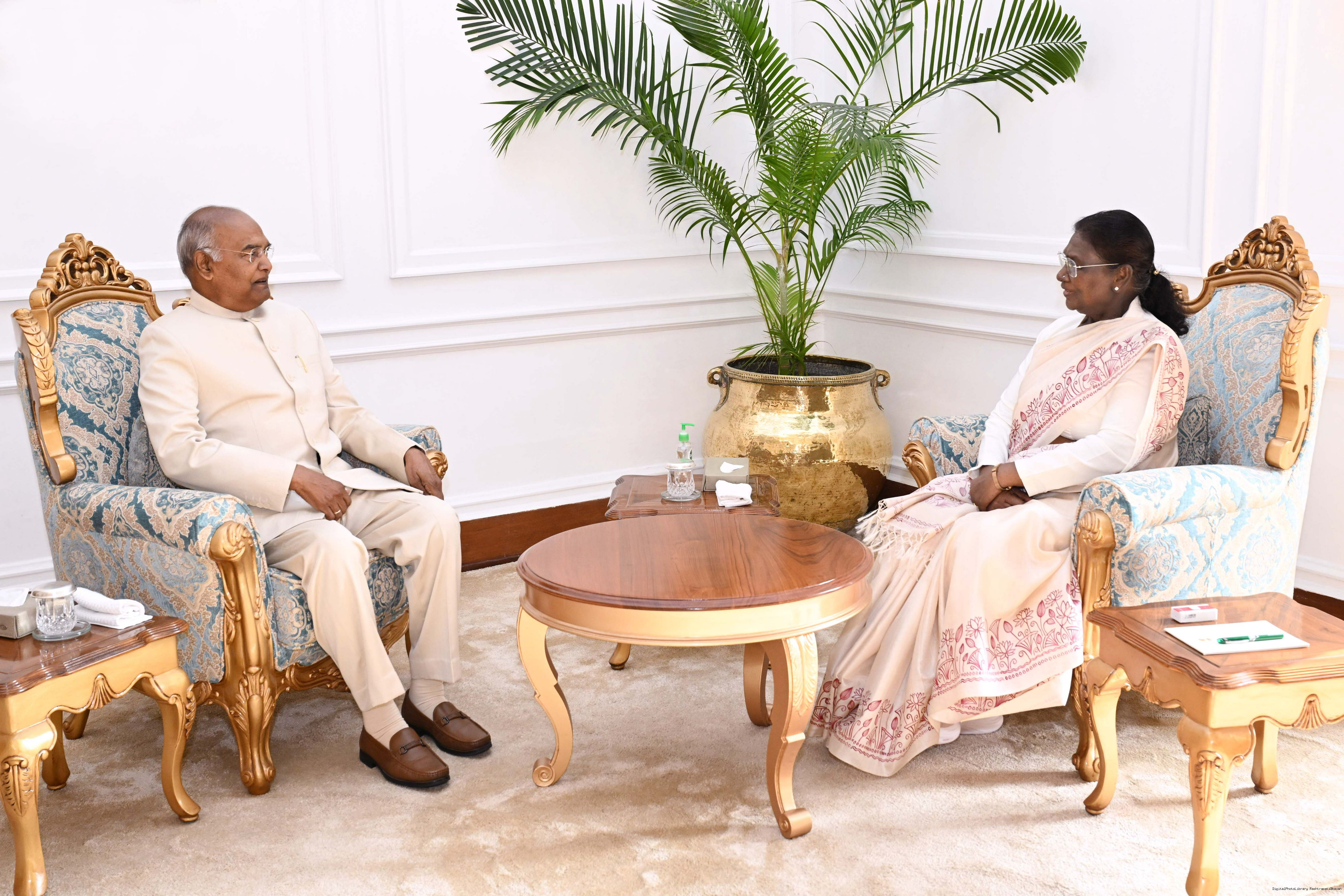 | Caption: | The Former President of India, Shri Ram Nath Kovind, called on the President of India, Smt Droupadi Murmu at Rashtrapati Bhavan on July 25, 2025. |