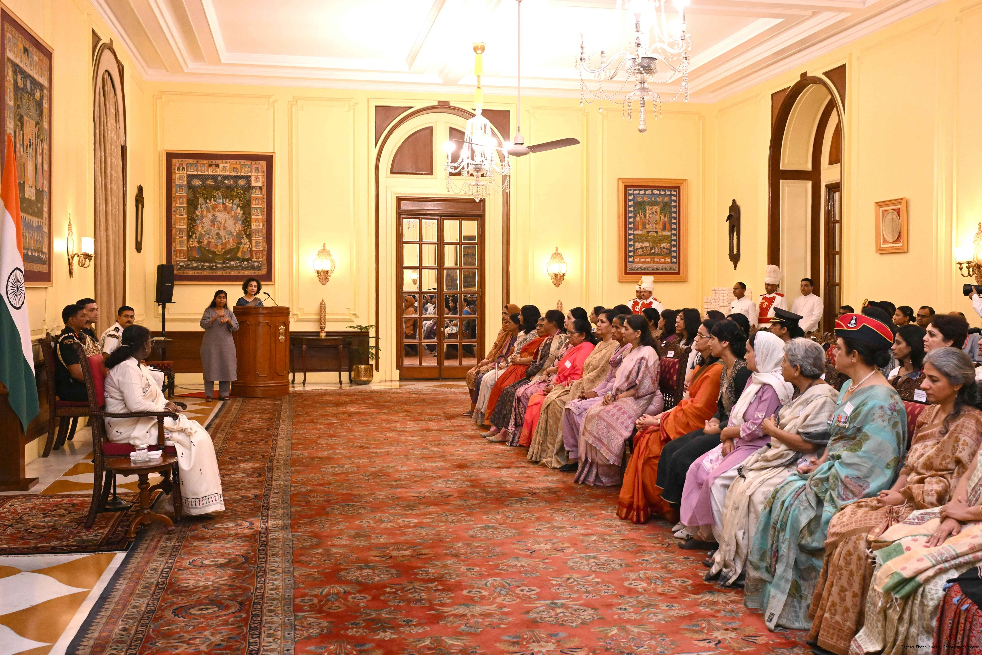 | Category: | The President met and interacted with Veer Naris and widows of martyred soldiers of AWWA on July 28, 2025. |