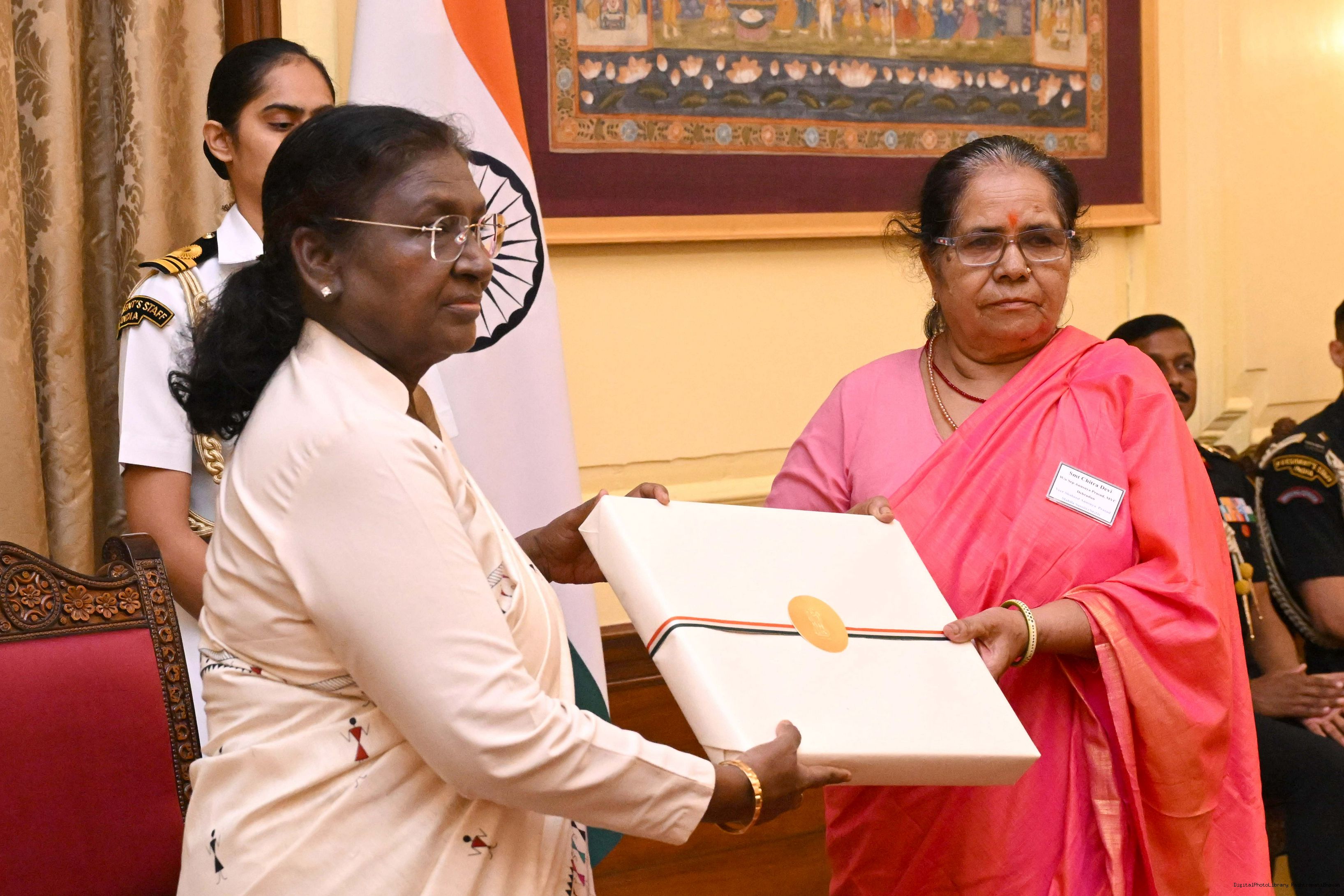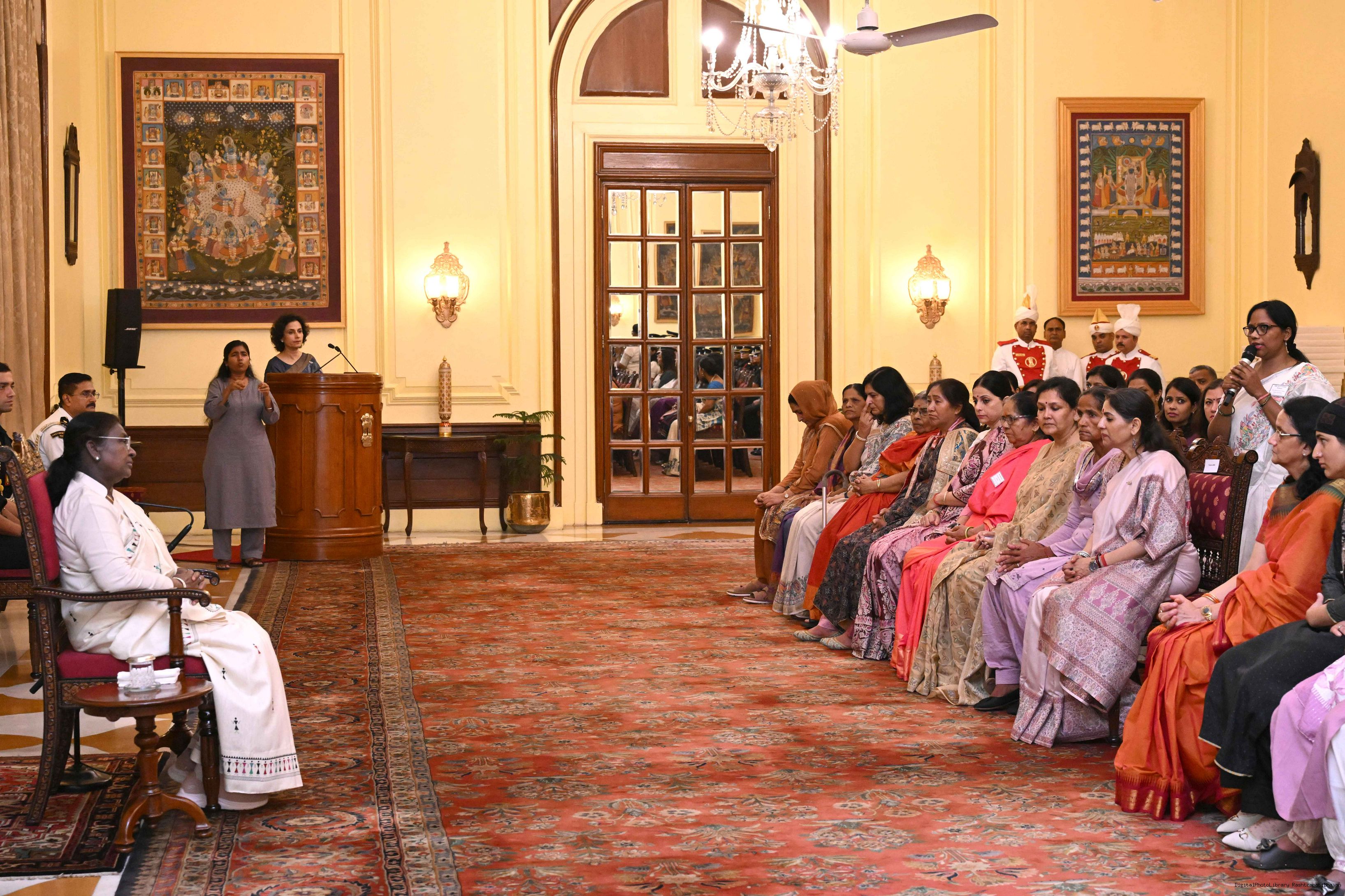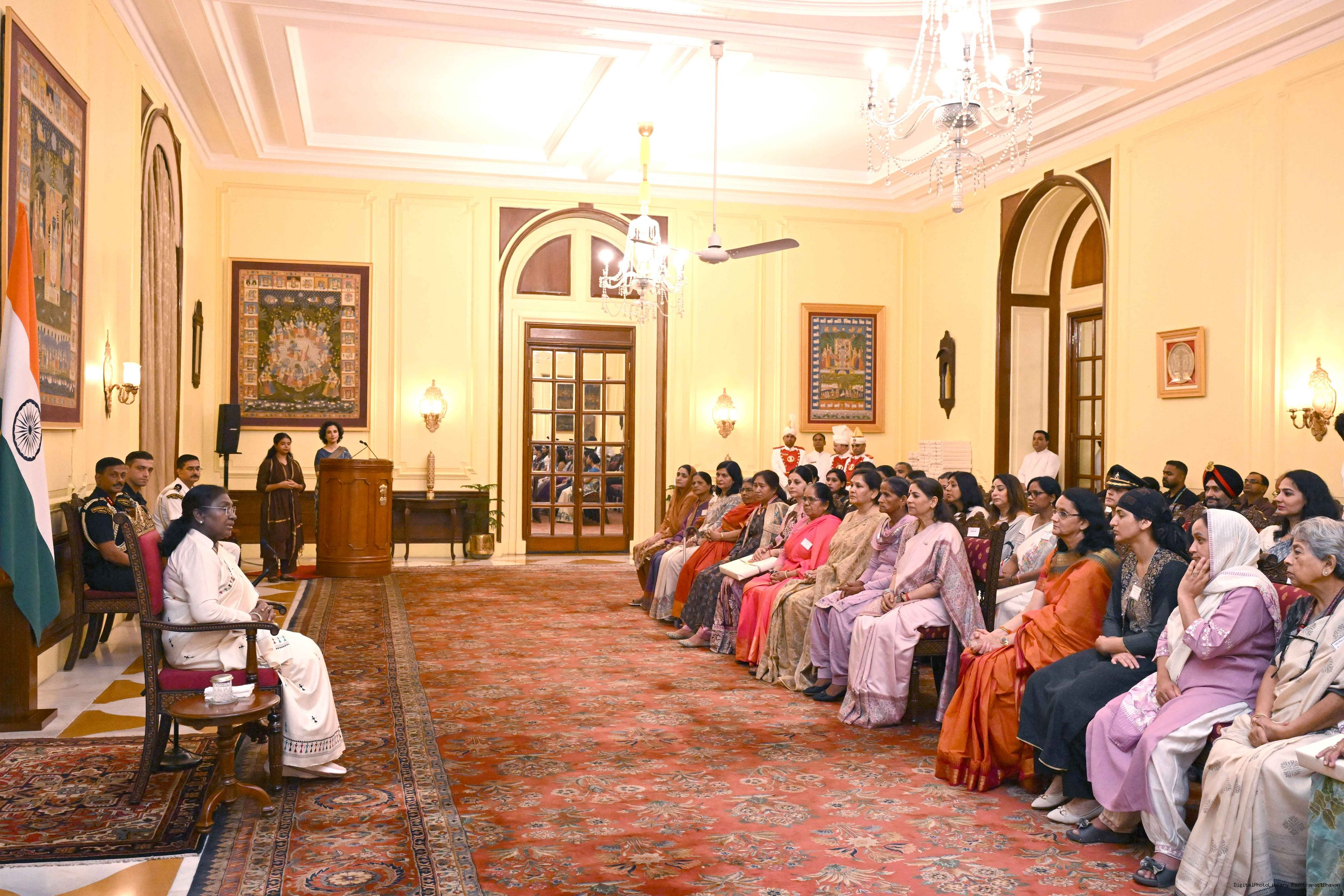 | Category: | The President met and interacted with Veer Naris and widows of martyred soldiers of AWWA on July 28, 2025. |