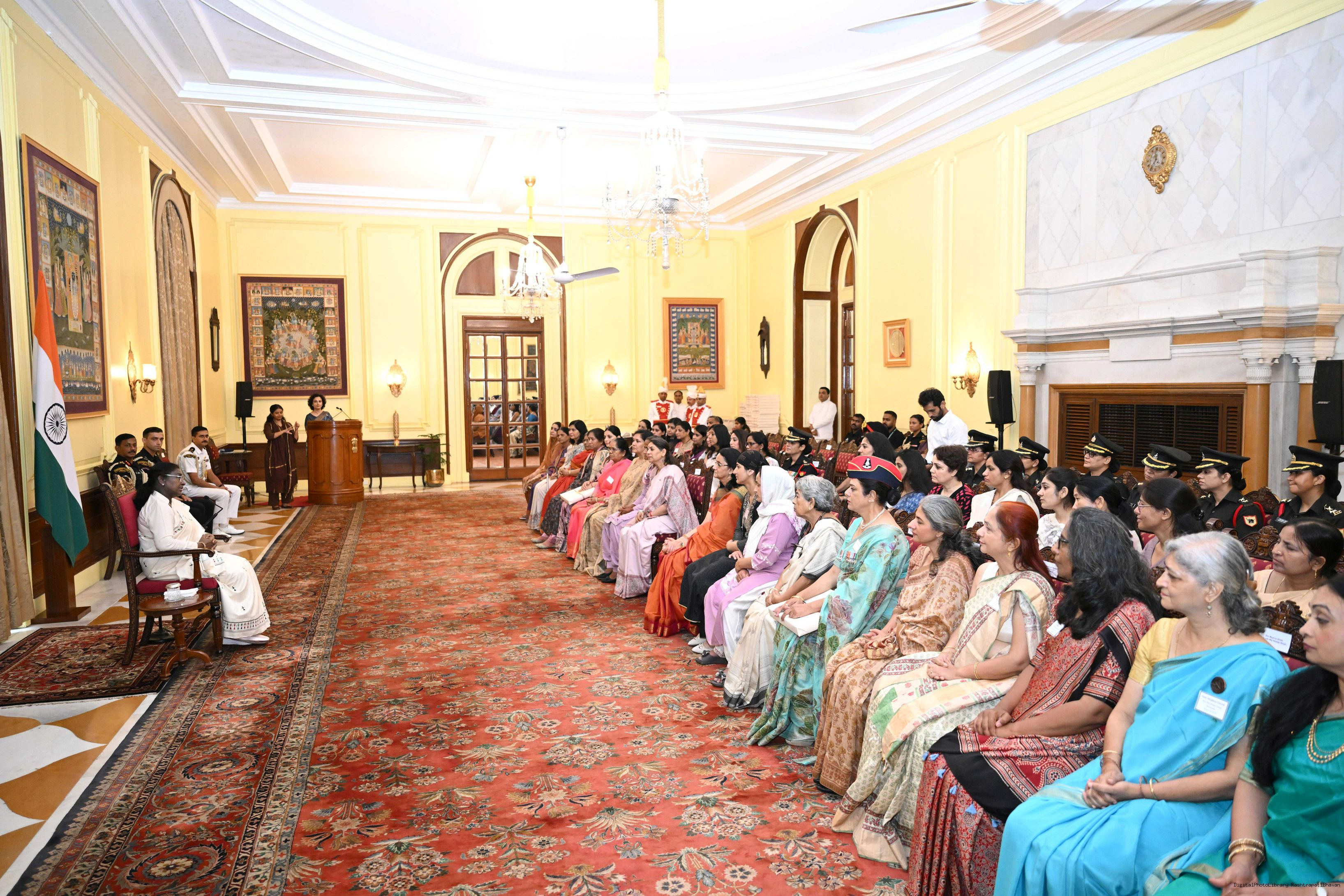 | Category: | The President met and interacted with Veer Naris and widows of martyred soldiers of AWWA on July 28, 2025. |