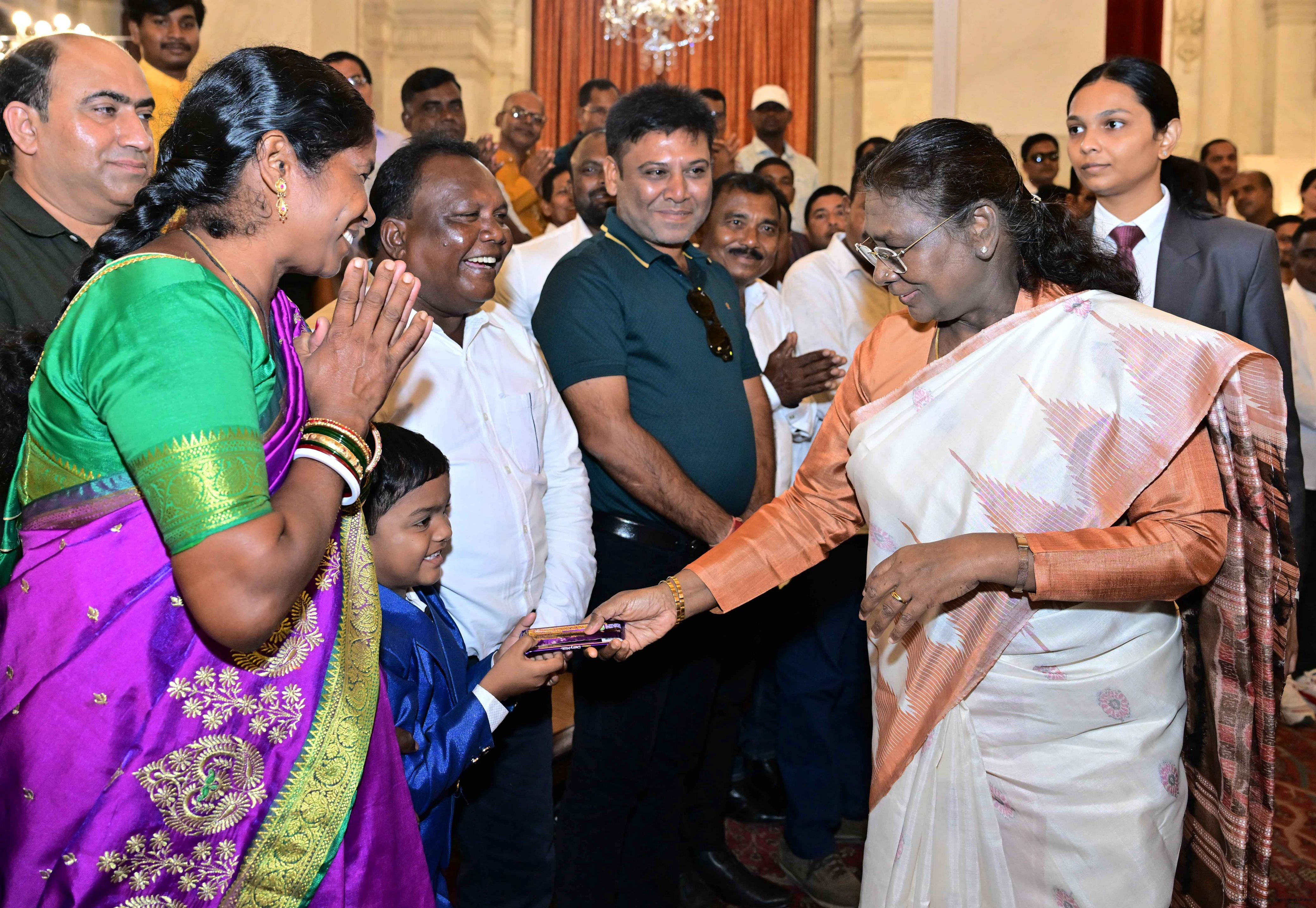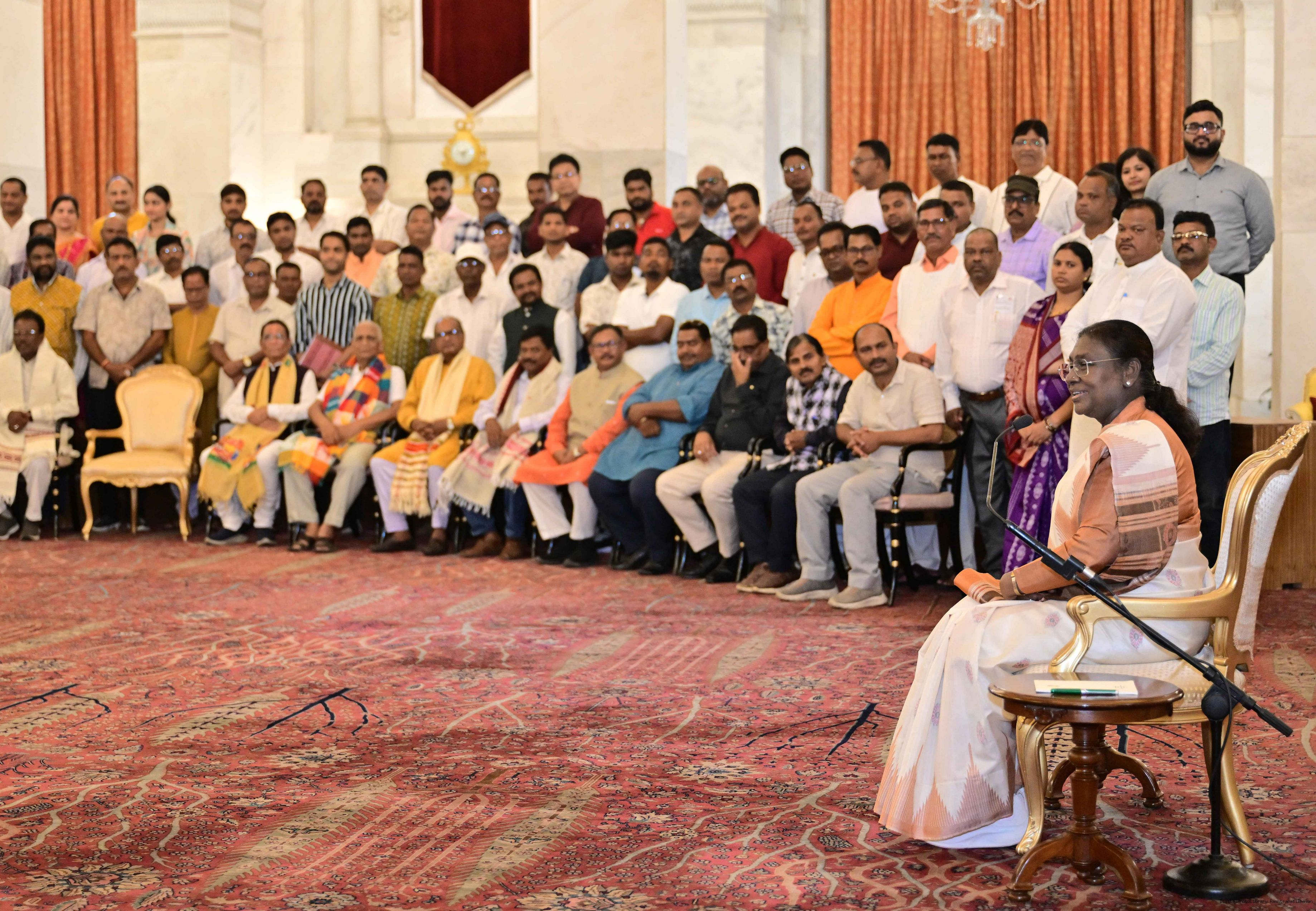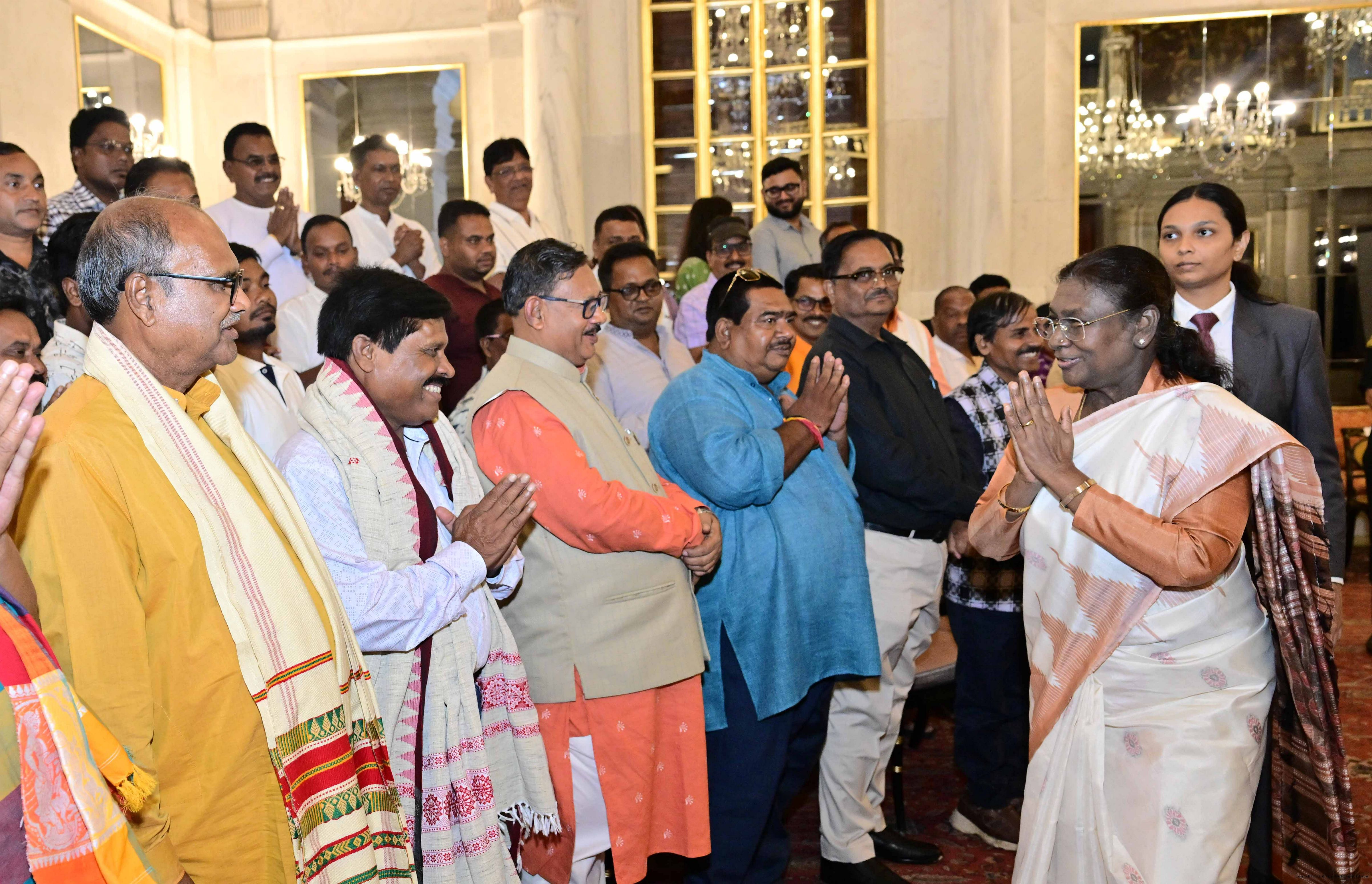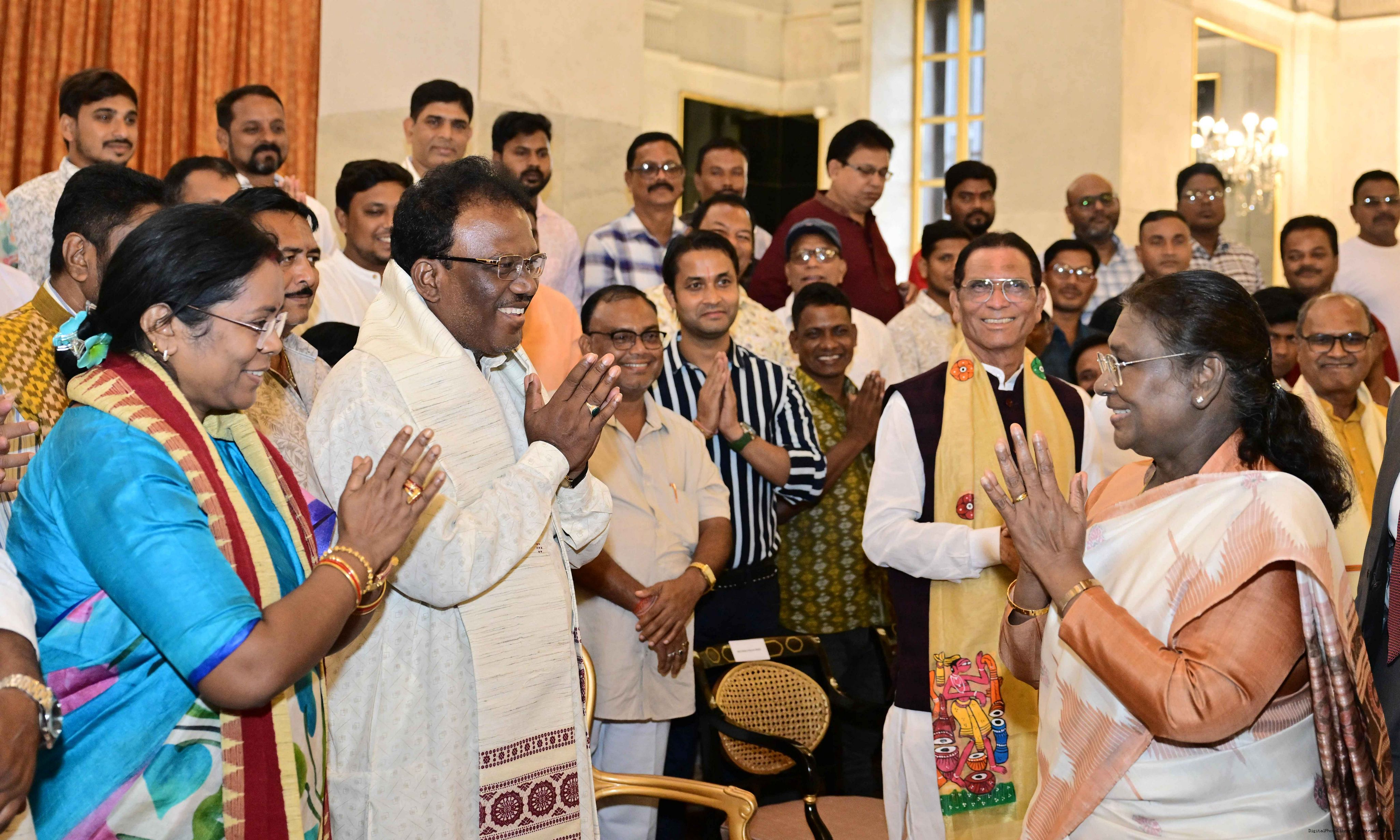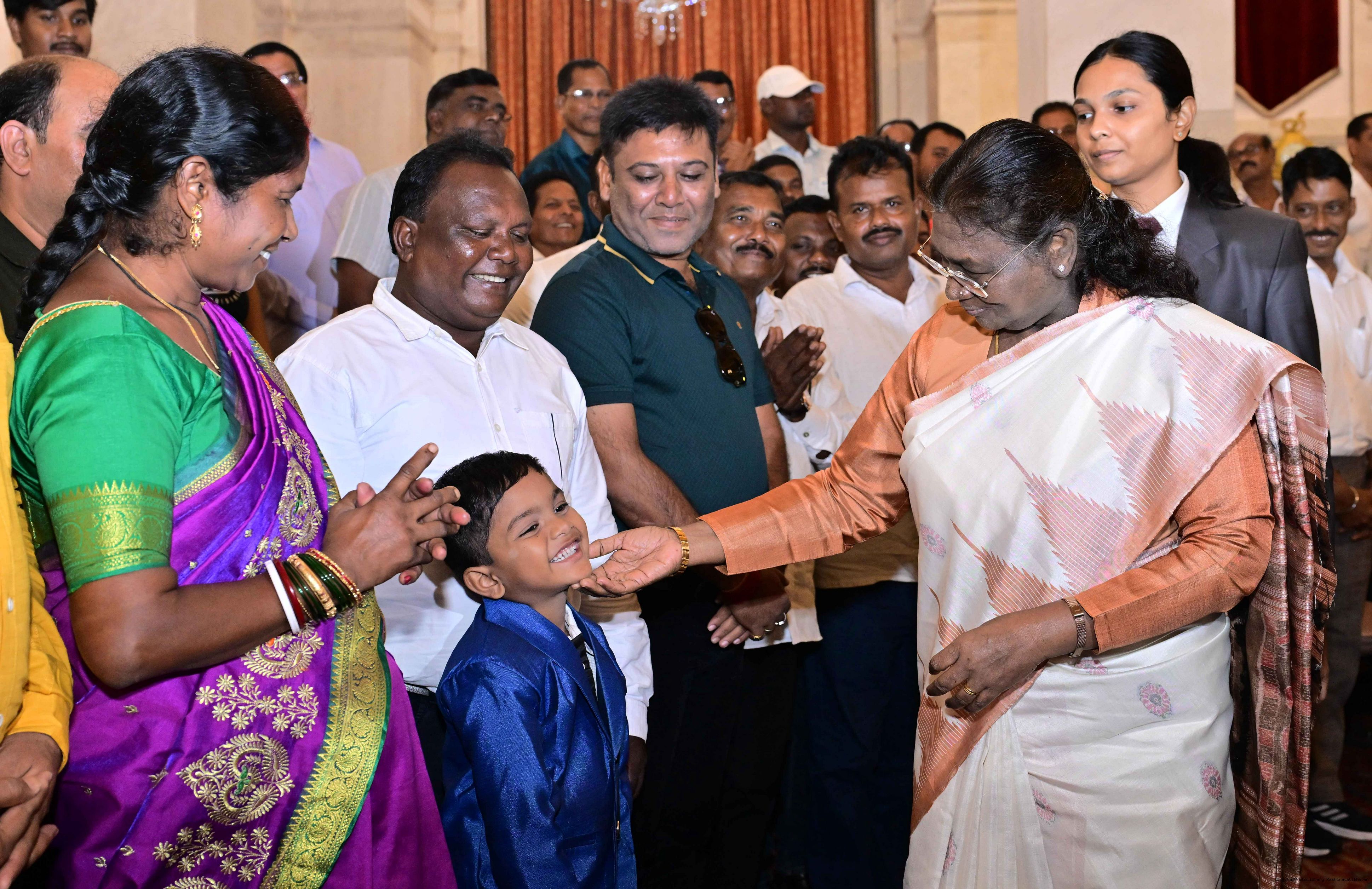 | Caption: | The President of India, Smt. Droupadi Murmu met and interacted a group of persons from Mayurbhanj Odisha including Shri Naba Charan Majhi, MP(LS), Smt. Mamata Mohanta, MP (RS) along with others Rashtrapati Bhavan on July 29, 2025. |