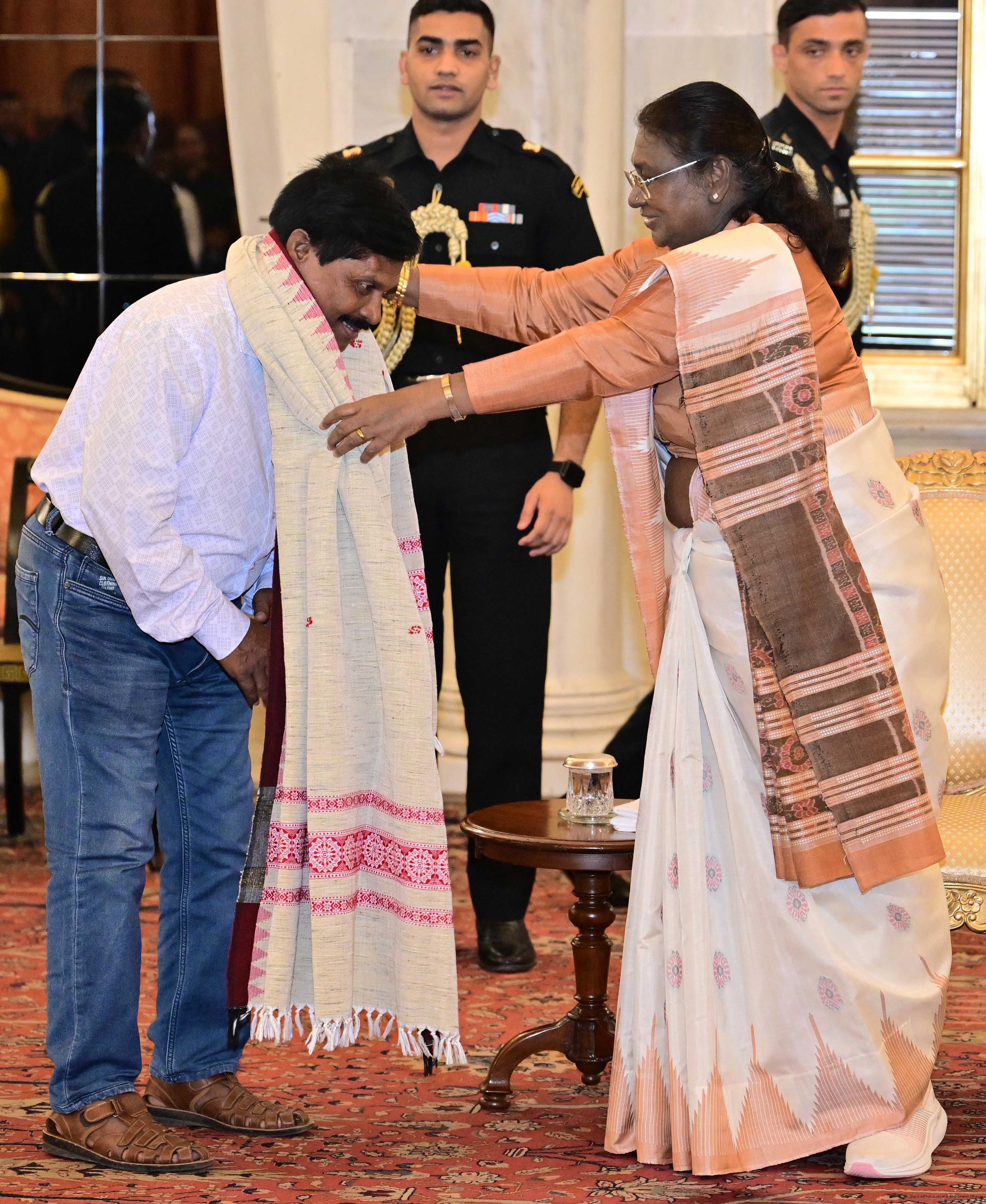 | Category: | The President met and interacted a group of persons from Mayurbhanj Odisha including Shri Naba Charan Majhi on July 29, 2025. |
