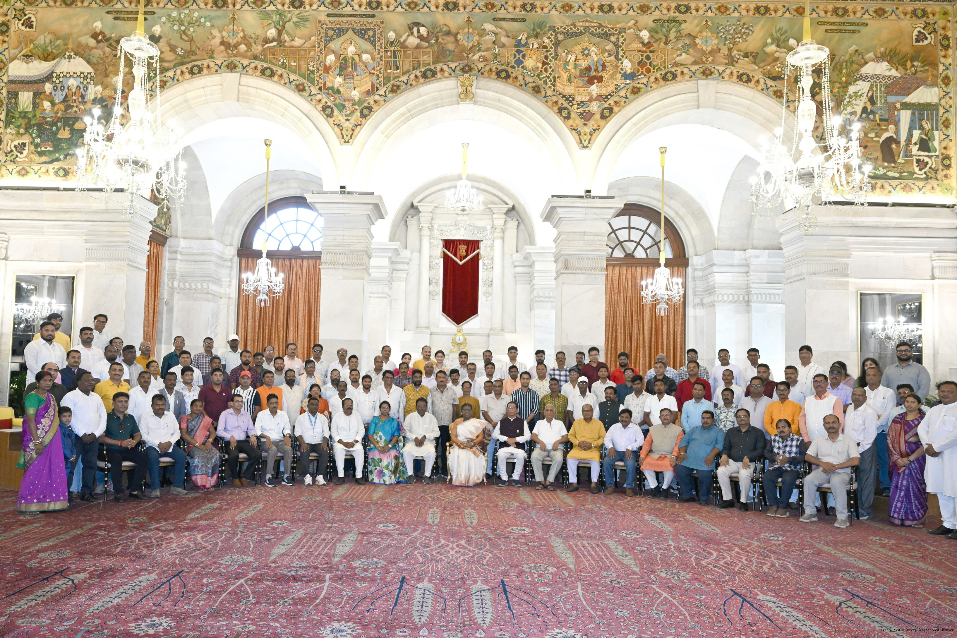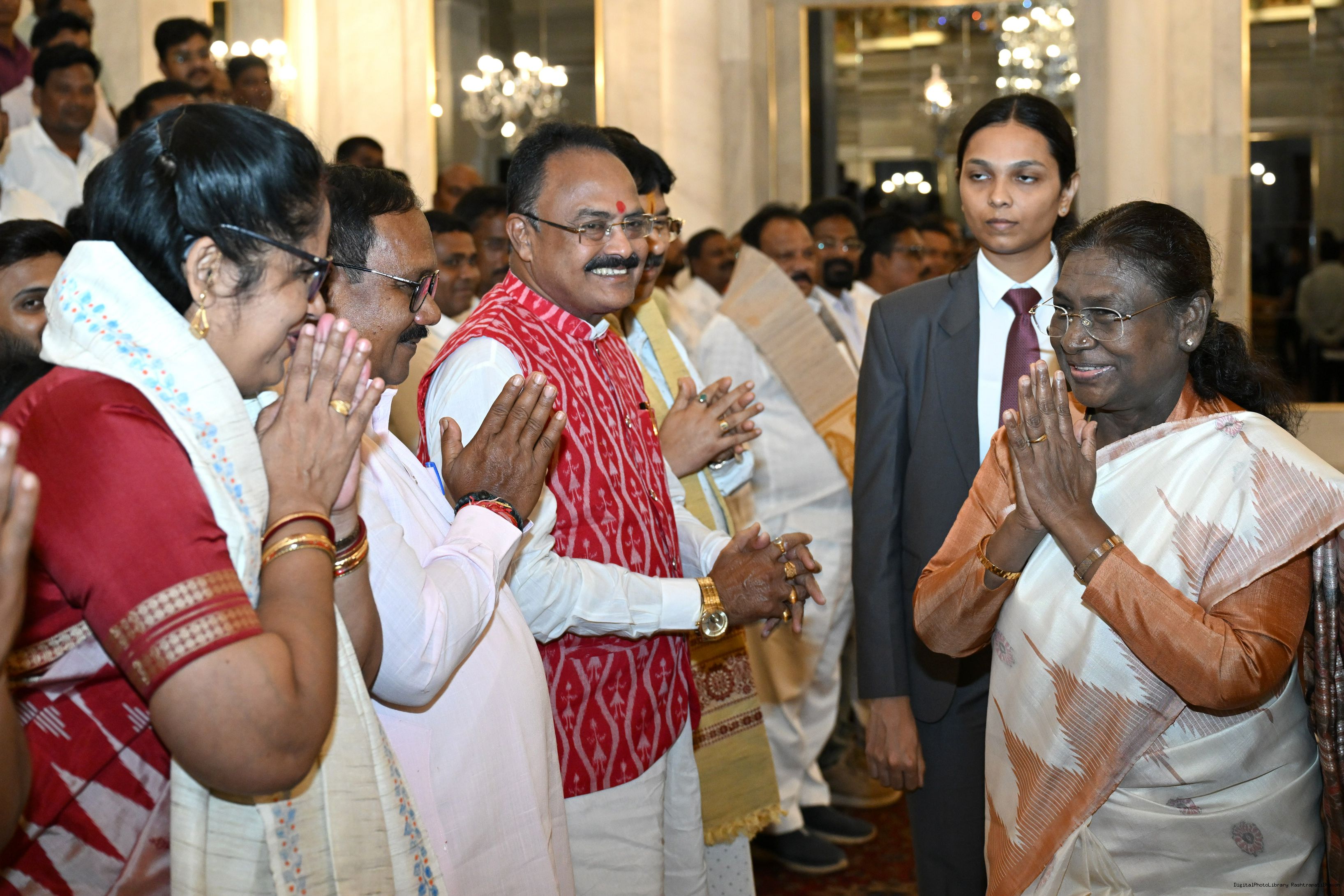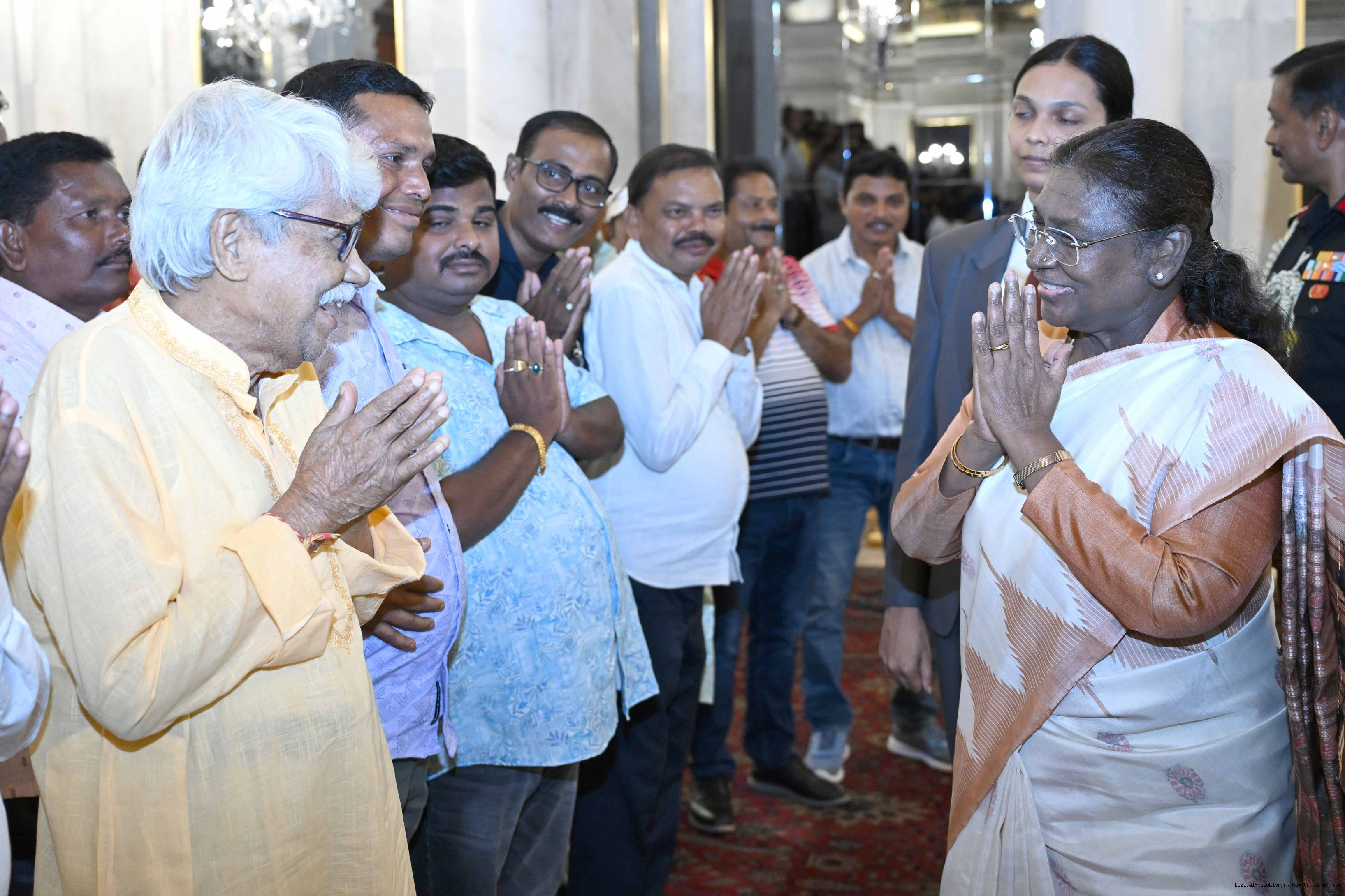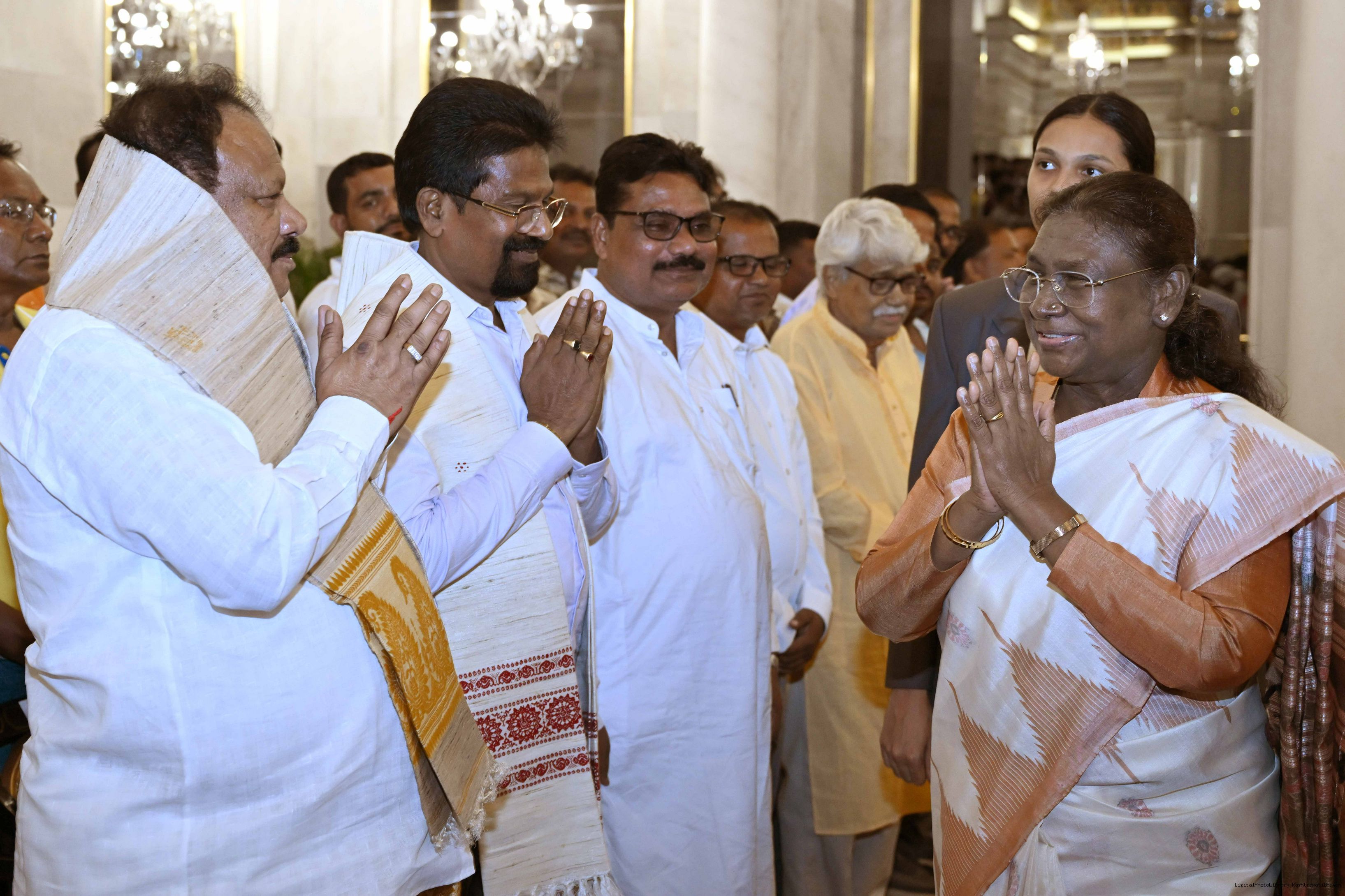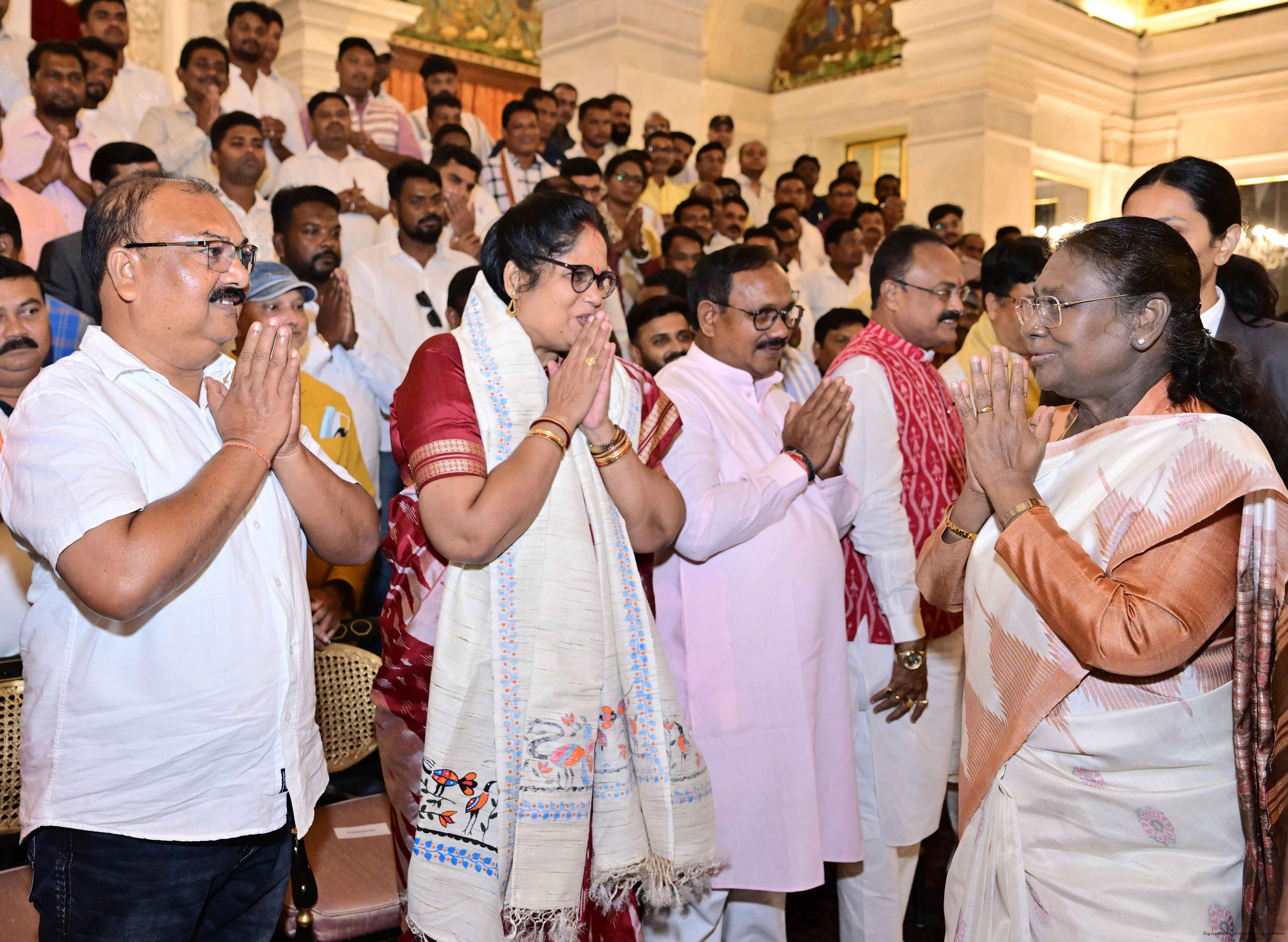 | Caption: | The President of India, Smt. Droupadi Murmu met and interacted a group of persons from Mayurbhanj Odisha including Shri Naba Charan Majhi, MP(LS), Smt. Mamata Mohanta, MP (RS) along with others Rashtrapati Bhavan on July 29, 2025. |