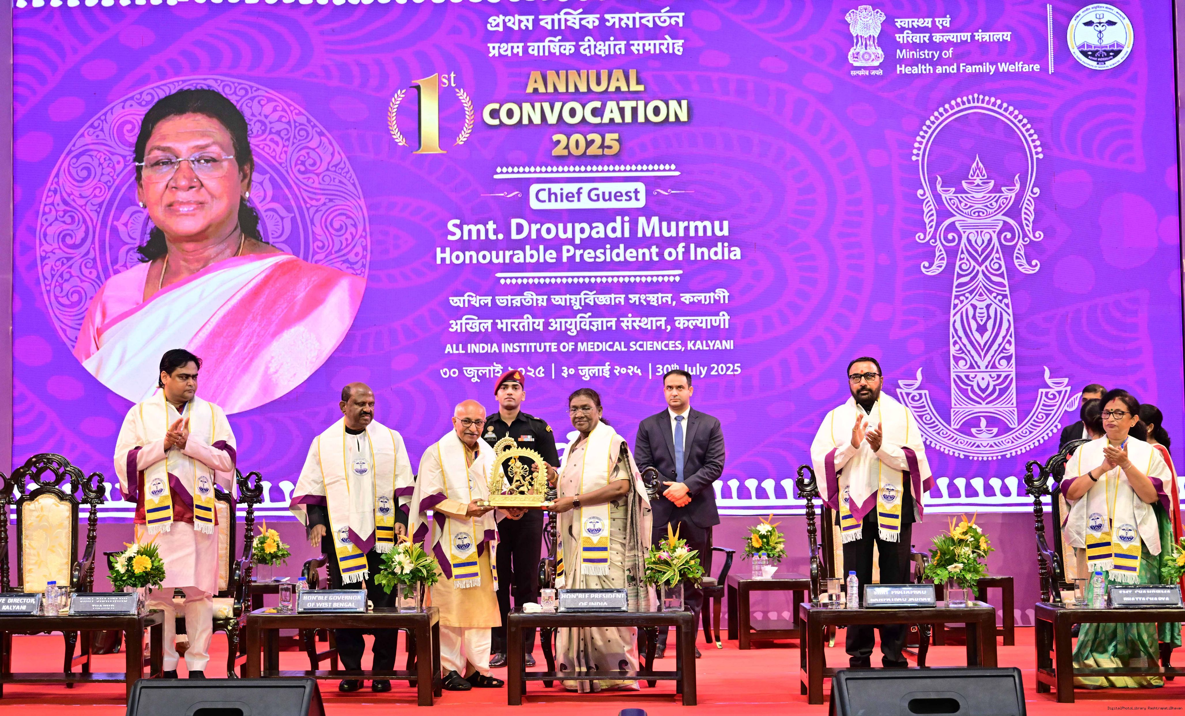 | Caption: | The President of India, Smt Droupadi Murmu, graced the first convocation ceremony of AIIMS, Kalyani in West Bengal on July 30, 2025. |