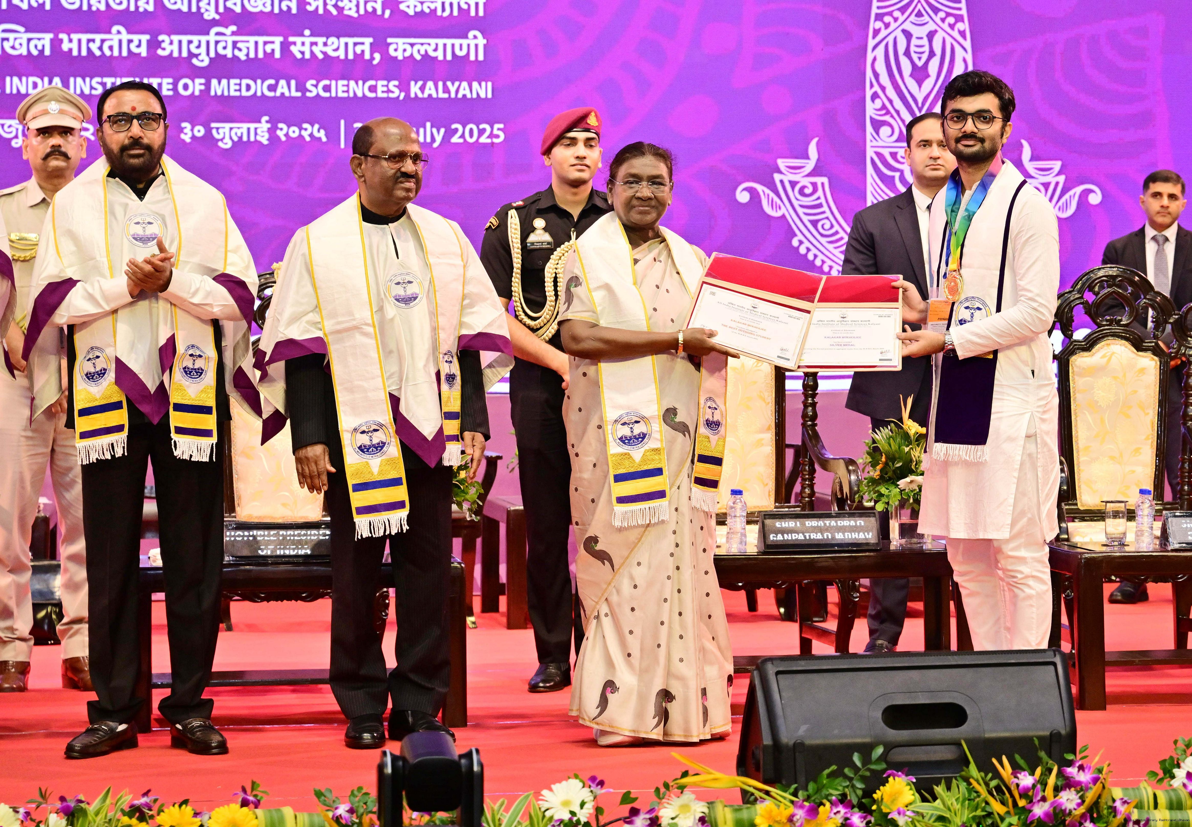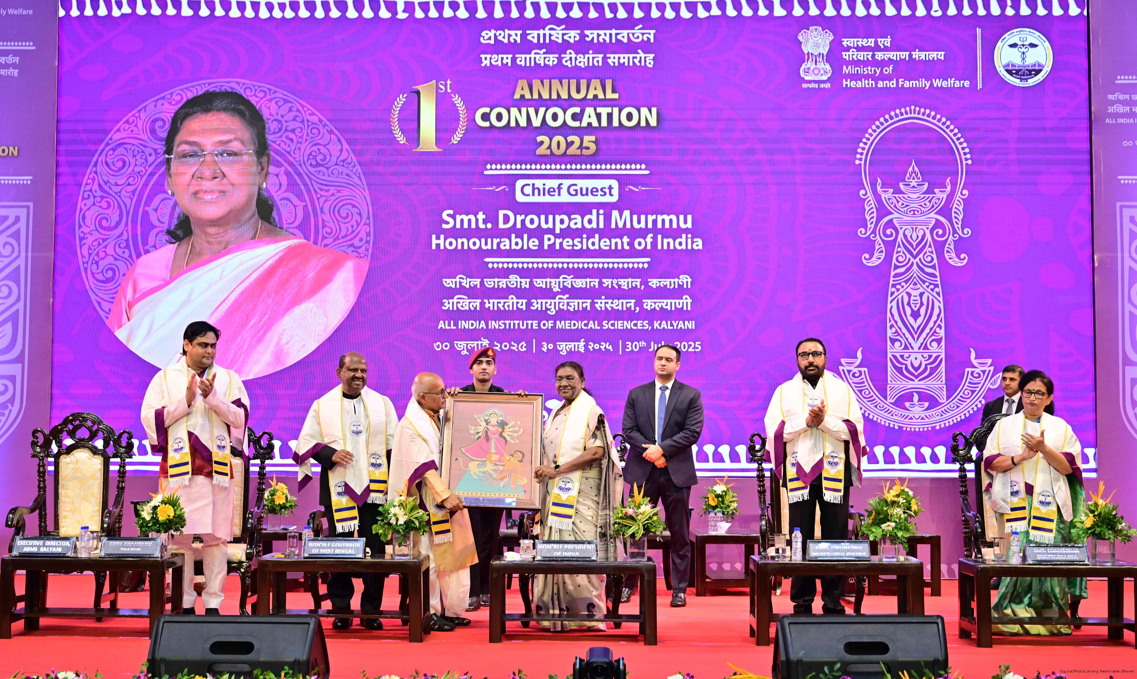 | Caption: | The President of India, Smt Droupadi Murmu, graced the first convocation ceremony of AIIMS, Kalyani in West Bengal on July 30, 2025. |