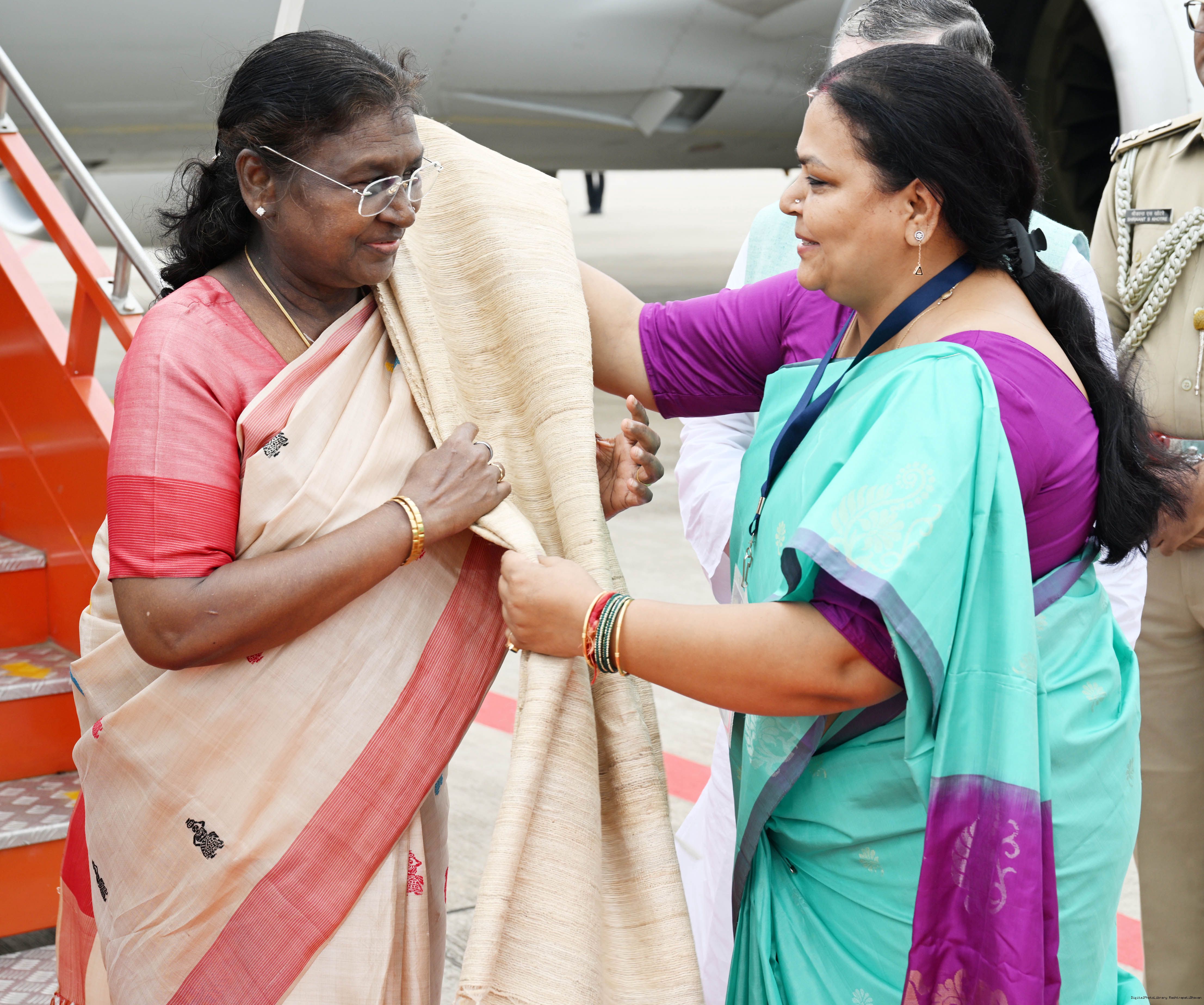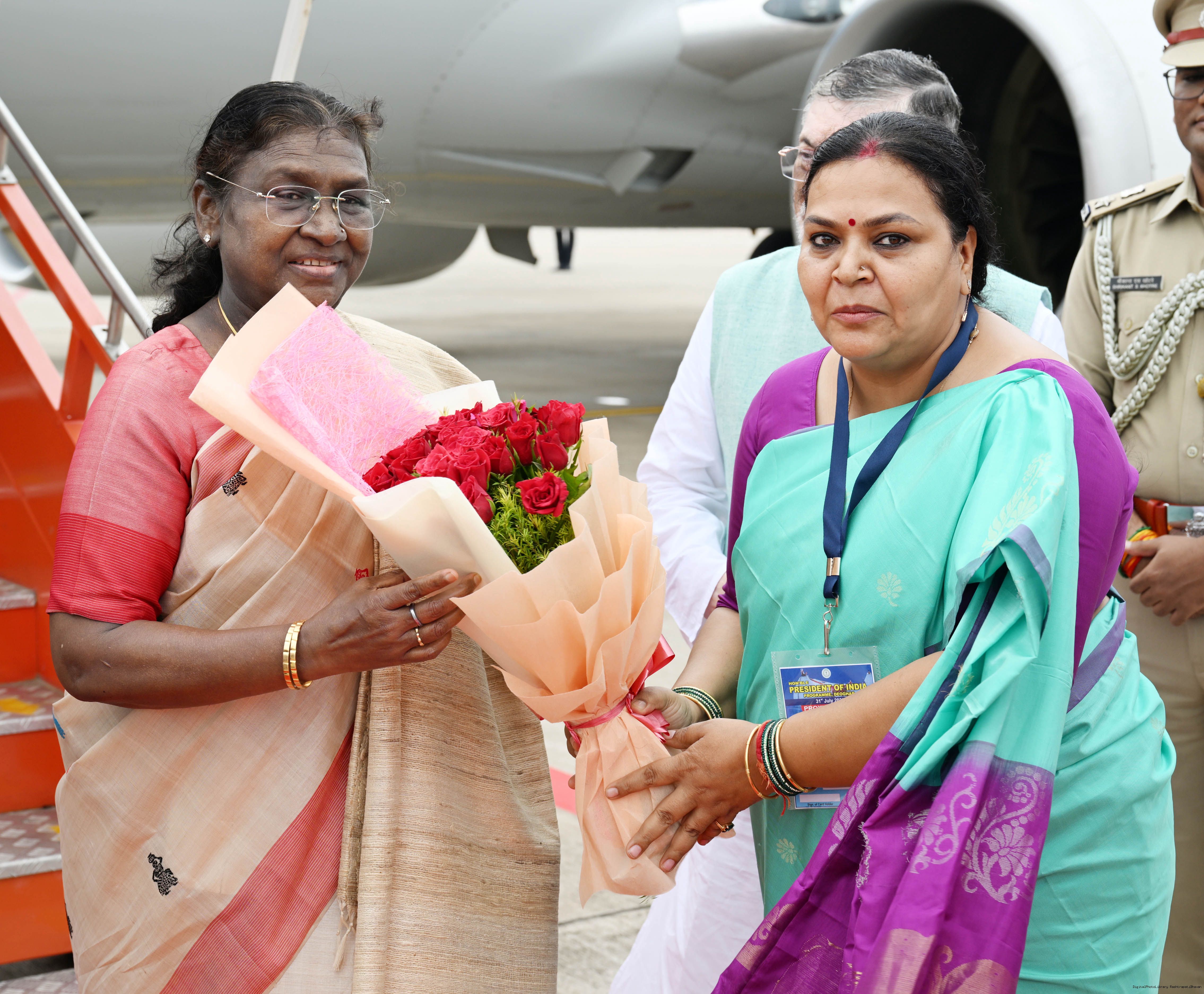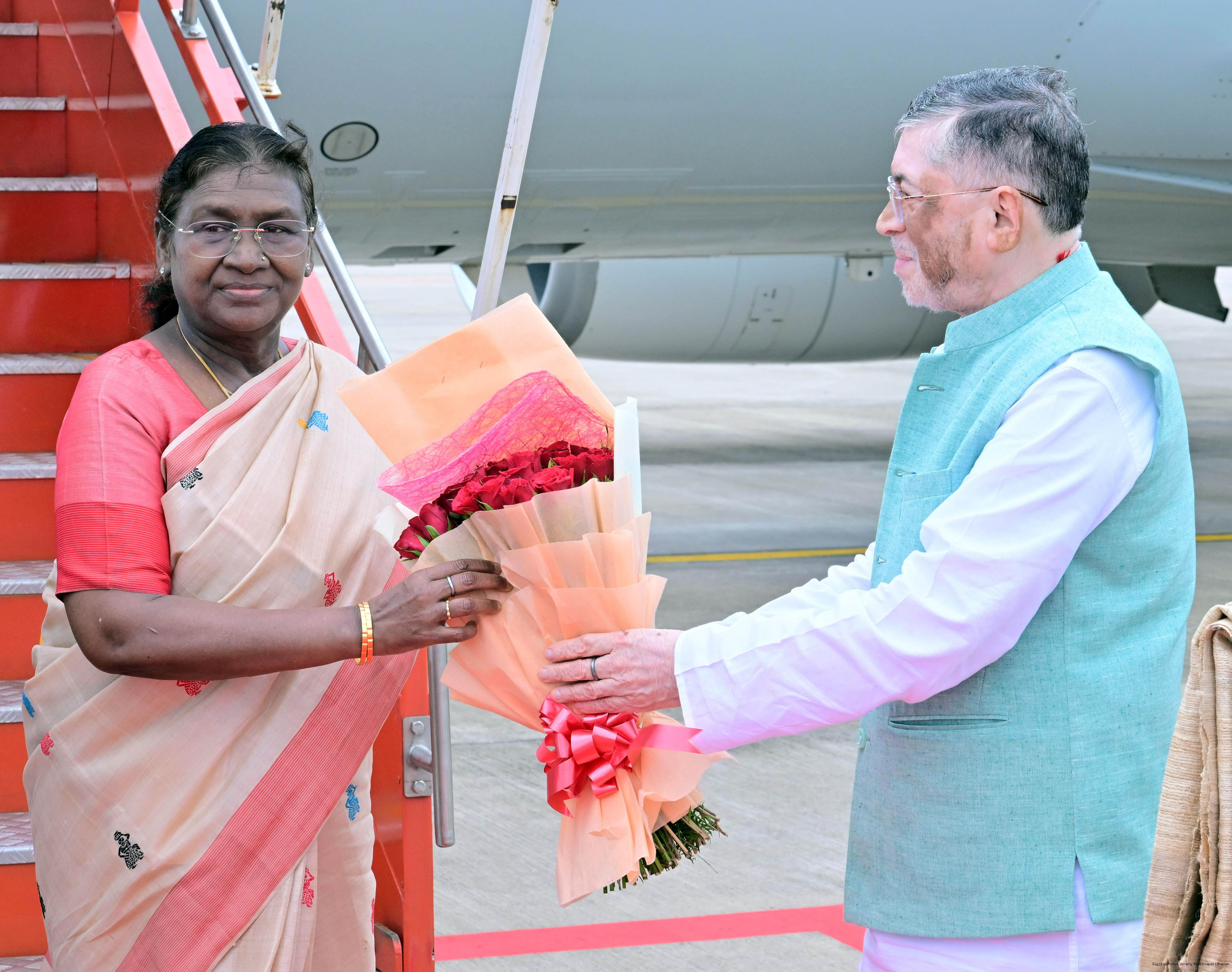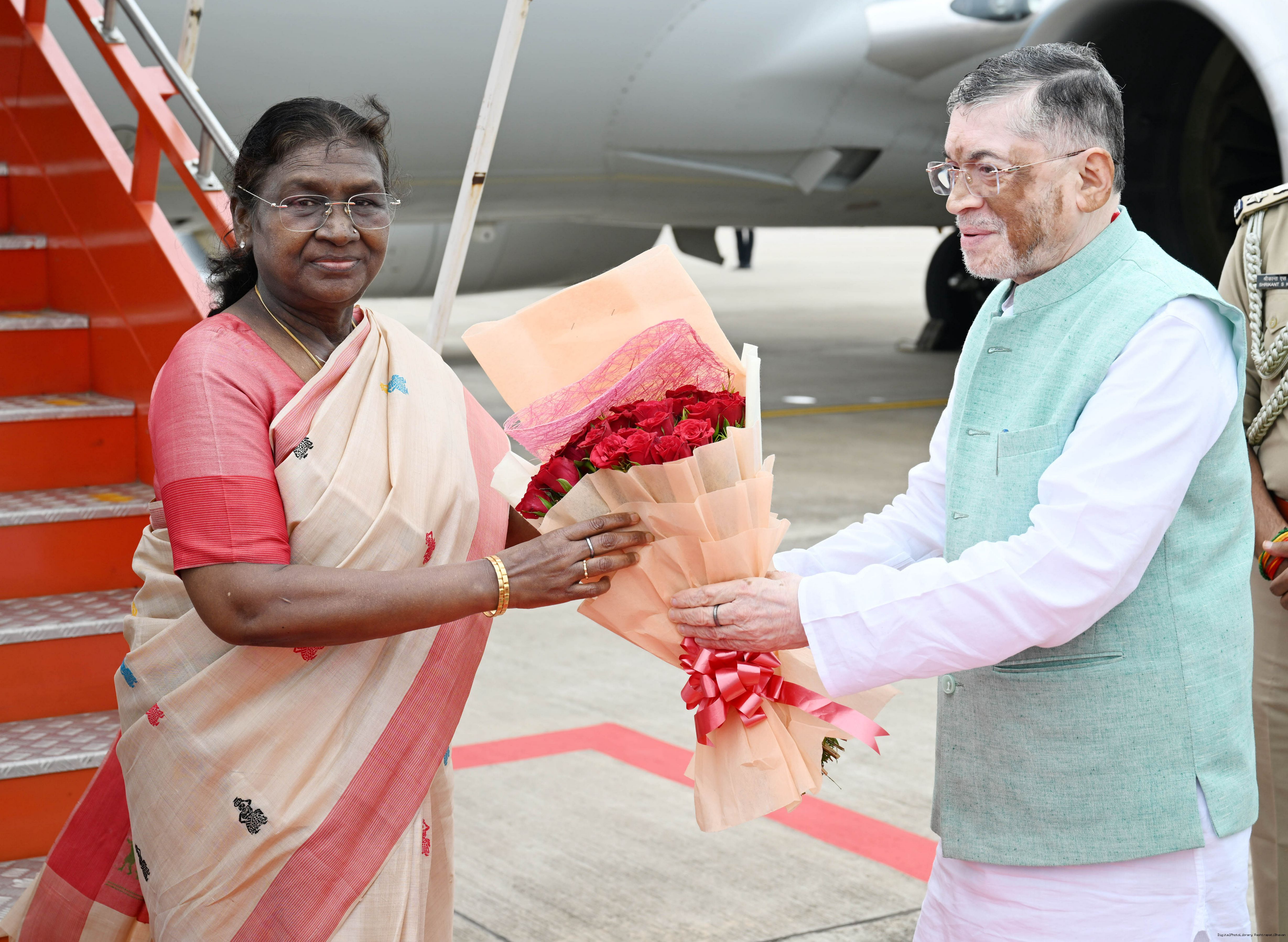 | Caption: | The Governor of Jharkhand, Shri Santosh Kumar Gangwar received the President of India, Smt.Droupadi Murmu on her arrival at Deoghar, Jharkhand on July 31, 2025. |