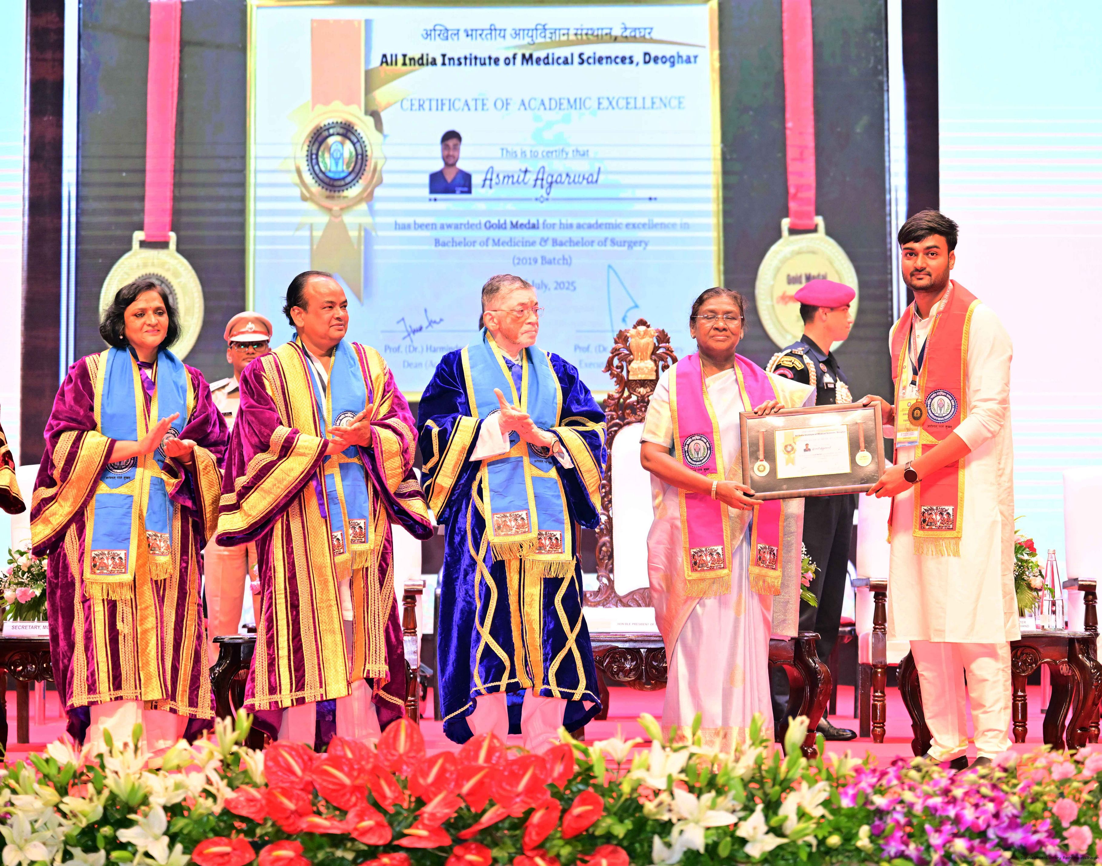 | Caption: | The President of India, Smt Droupadi Murmu, graced the first convocation ceremony of AIIMS, Deoghar at Deoghar, Jharkhand on July 31, 2025. |