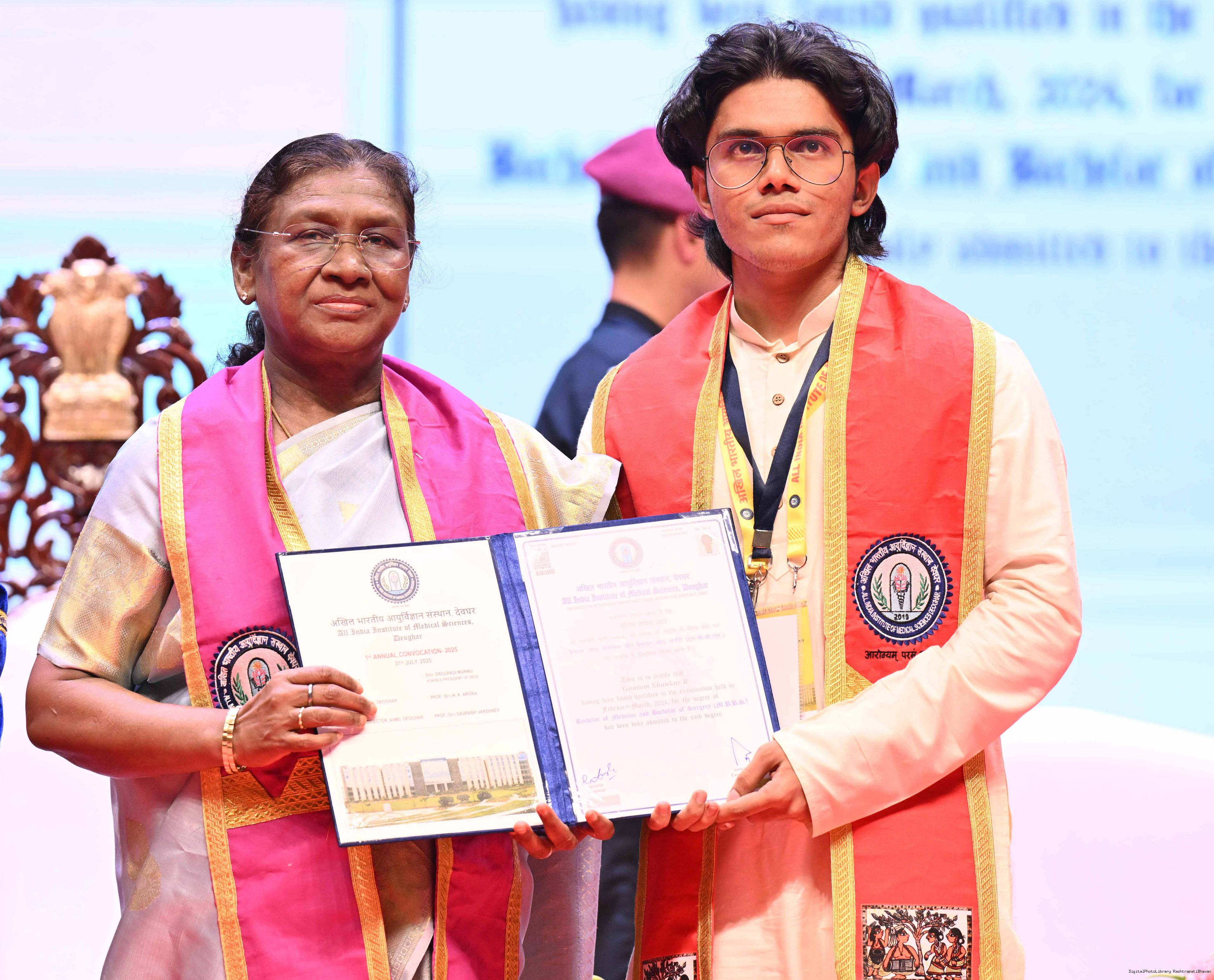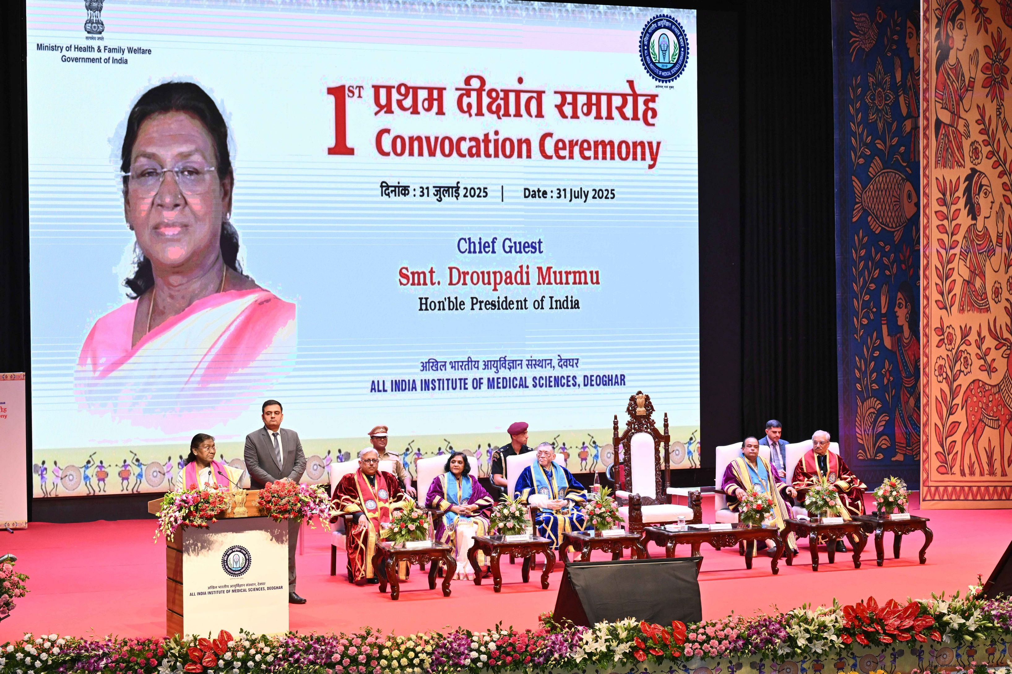 | Caption: | The President of India, Smt Droupadi Murmu, graced the first convocation ceremony of AIIMS, Deoghar at Deoghar, Jharkhand on July 31, 2025. |