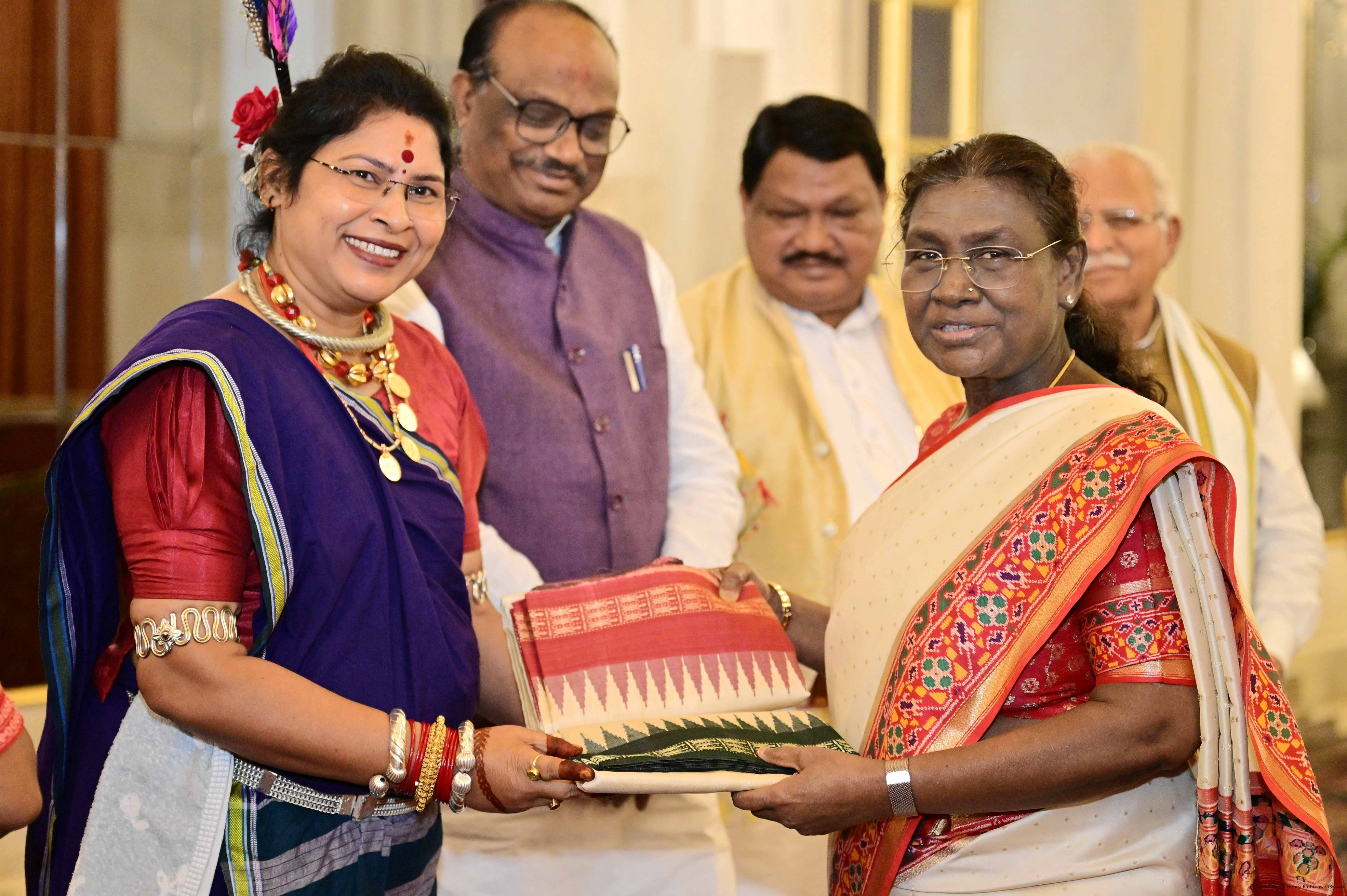 | Caption: | A group of eminent tribal people from various states representing different sectors called on the President of India, Smt. Droupadi Murmu at Rashtrapati Bhavan on August 4, 2025. |