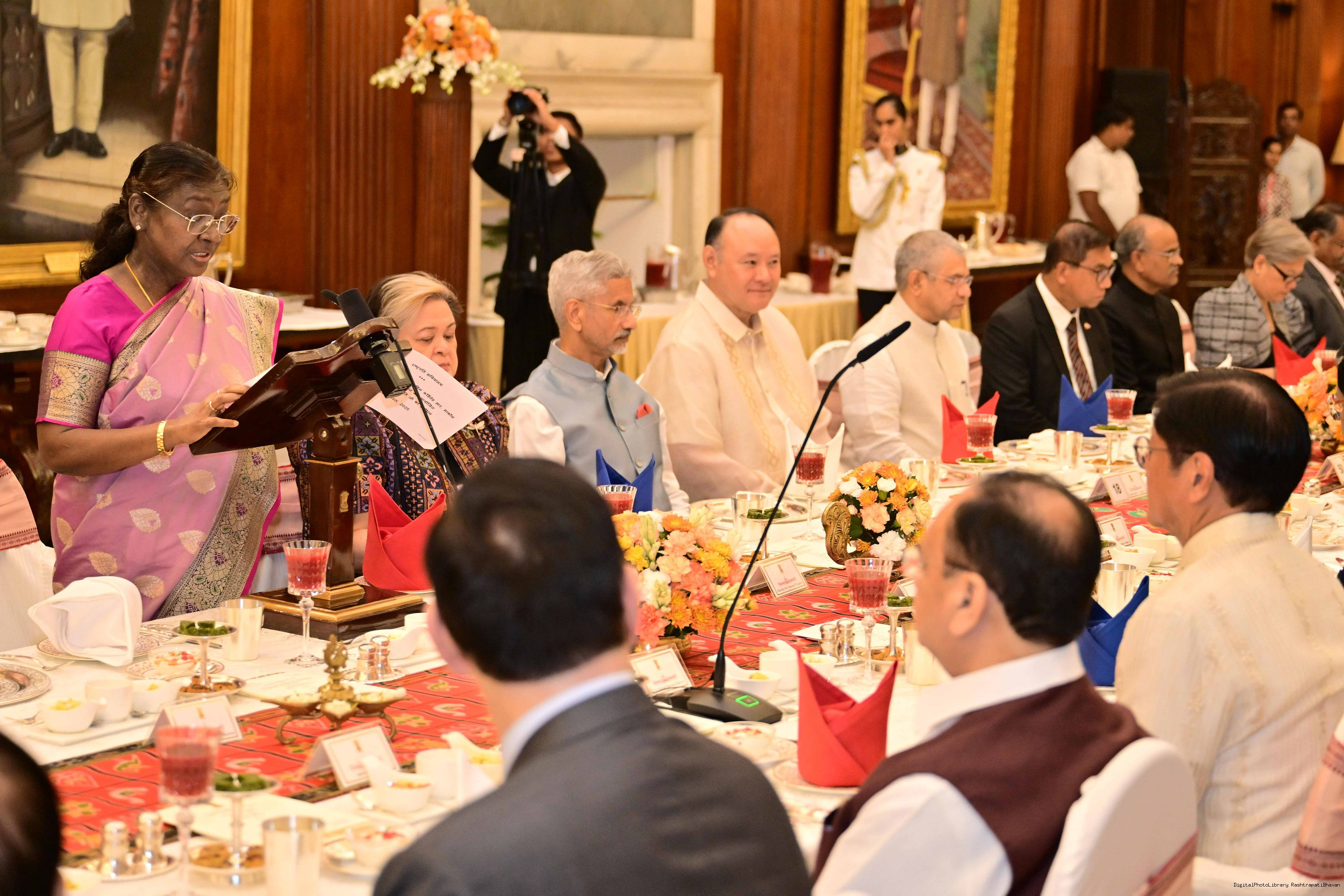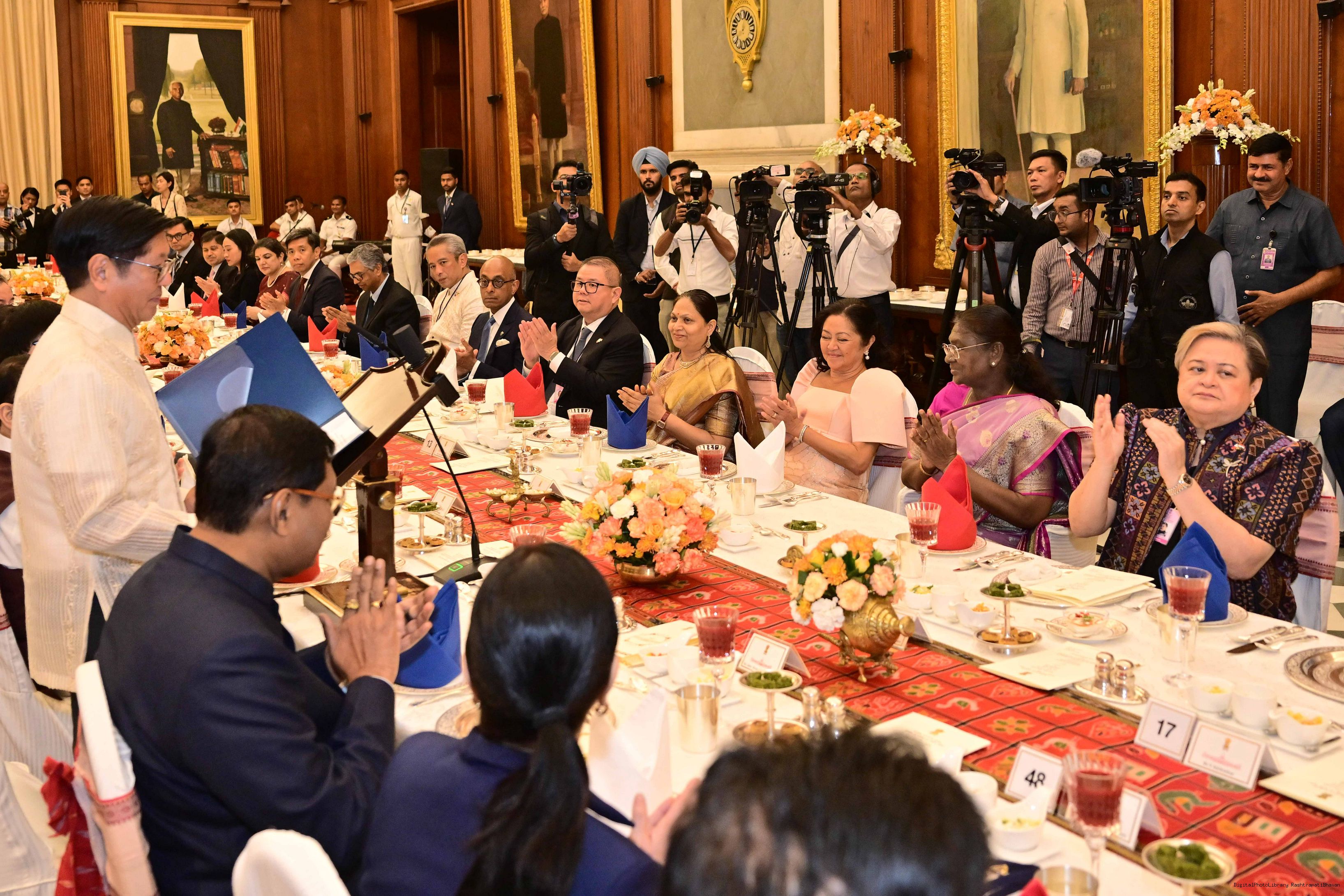 | Caption: | The President of India, Smt Droupadi Murmu hosted a banquet in the honour H.E. Mr Ferdinand Romualdez Marcos Jr., President of the Republic of the Philippines at Rashtrapati Bhavan on August 5, 2025. |