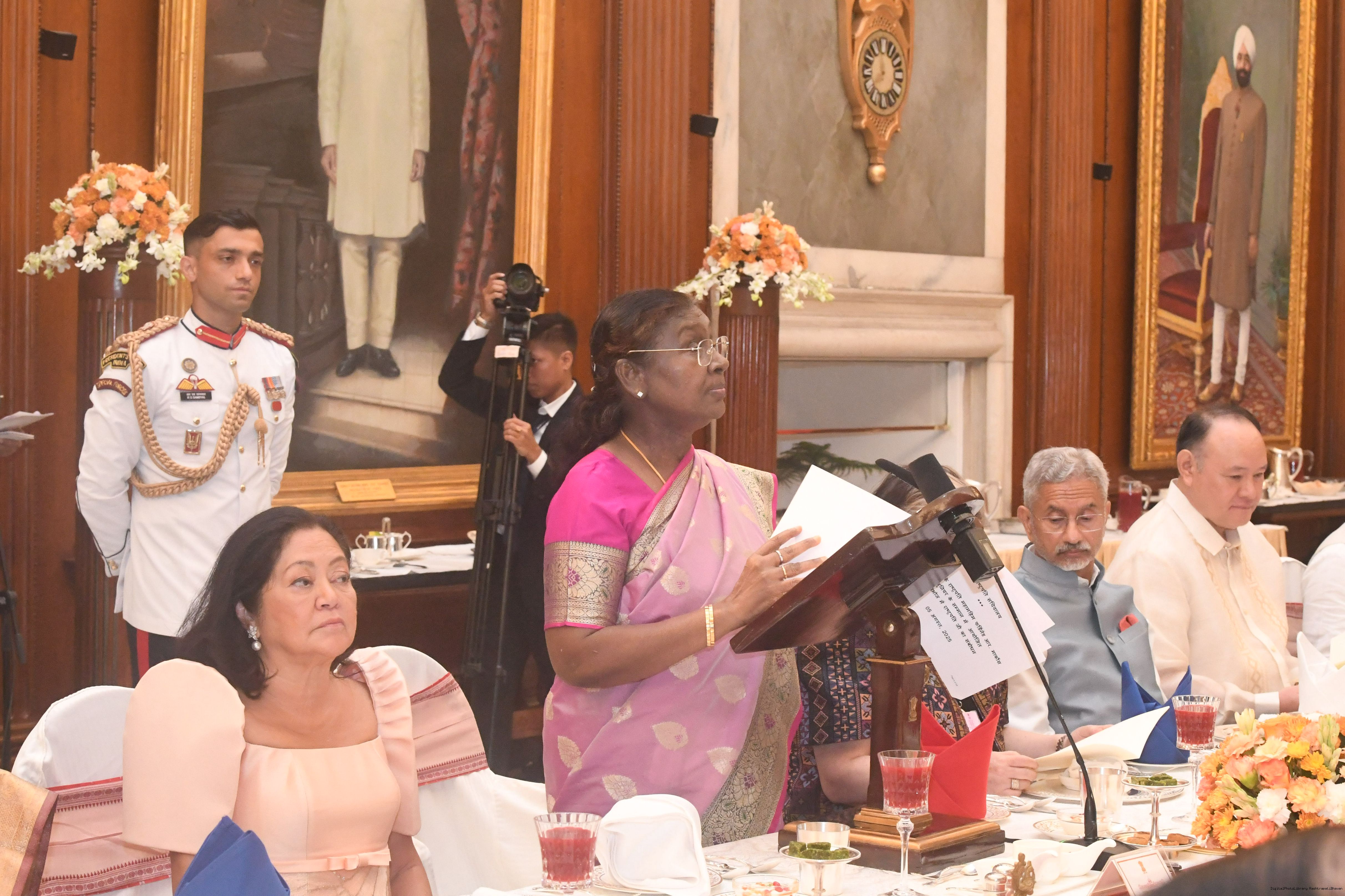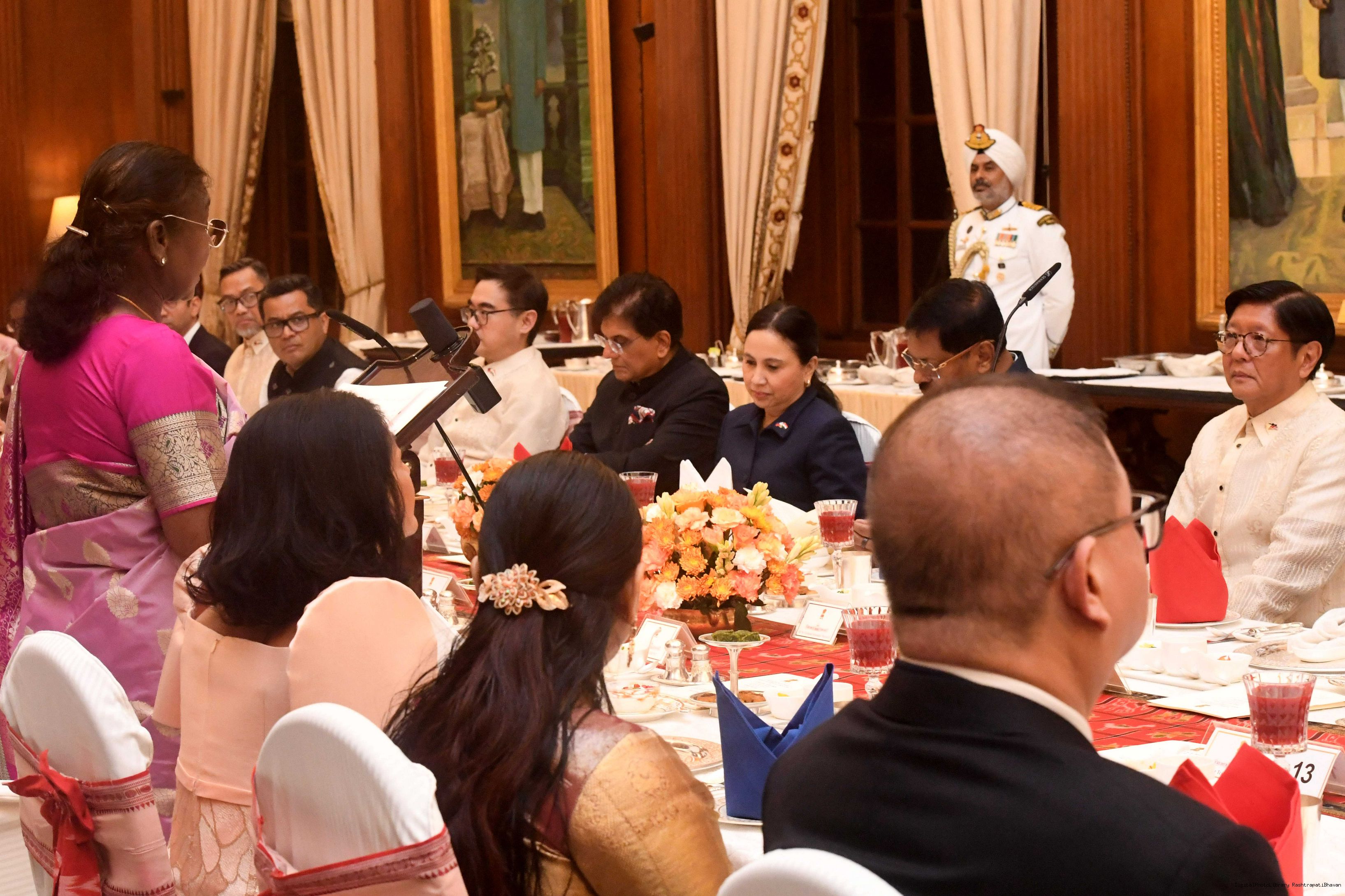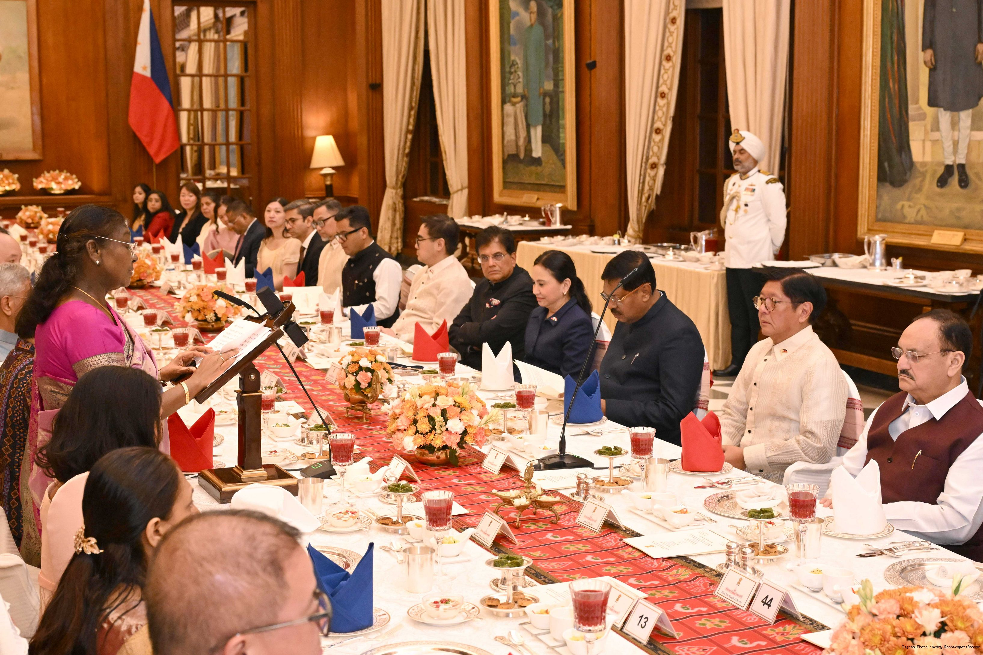 | Caption: | The President of India, Smt Droupadi Murmu hosted a banquet in the honour H.E. Mr Ferdinand Romualdez Marcos Jr., President of the Republic of the Philippines at Rashtrapati Bhavan on August 5, 2025. |