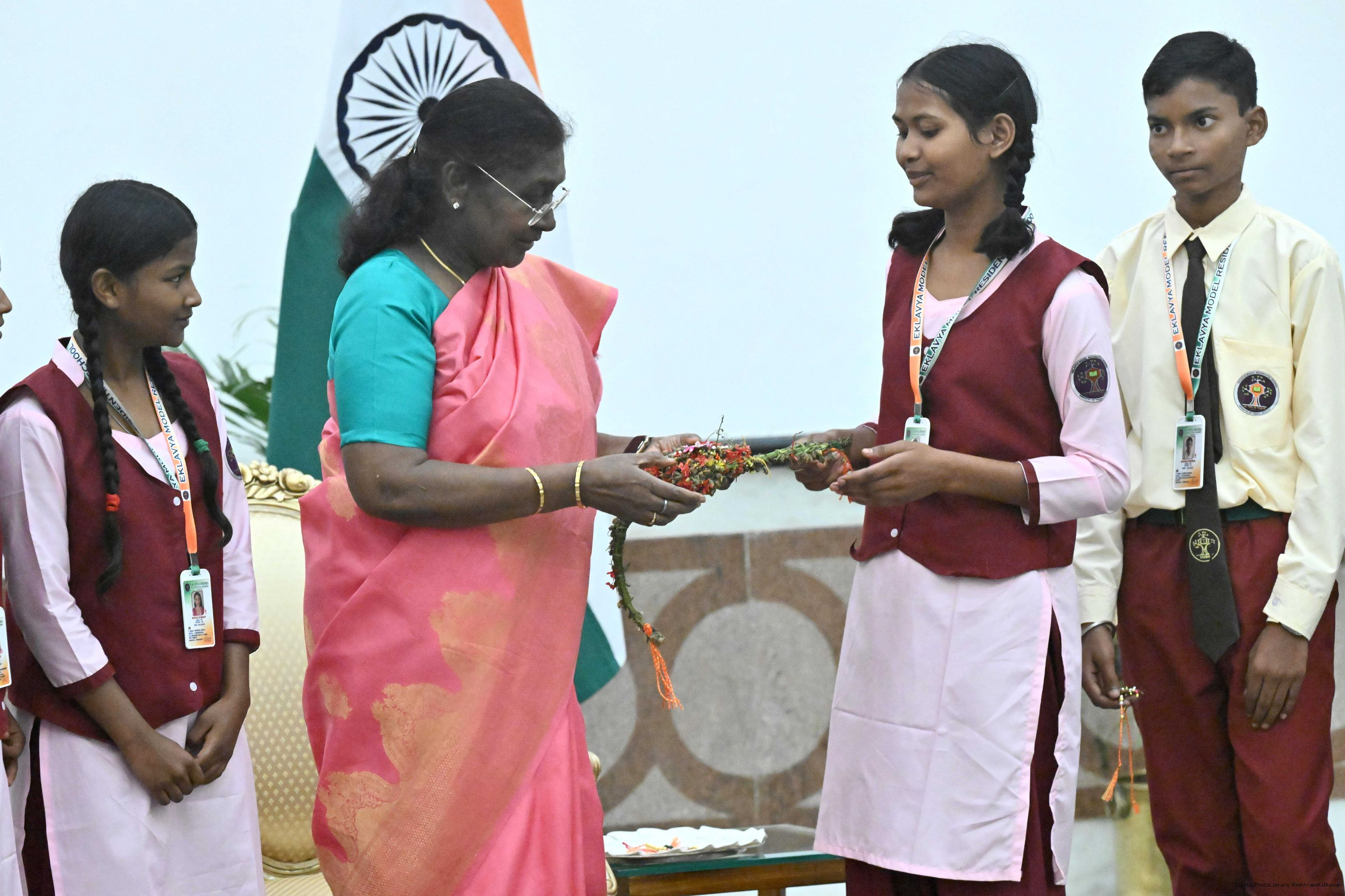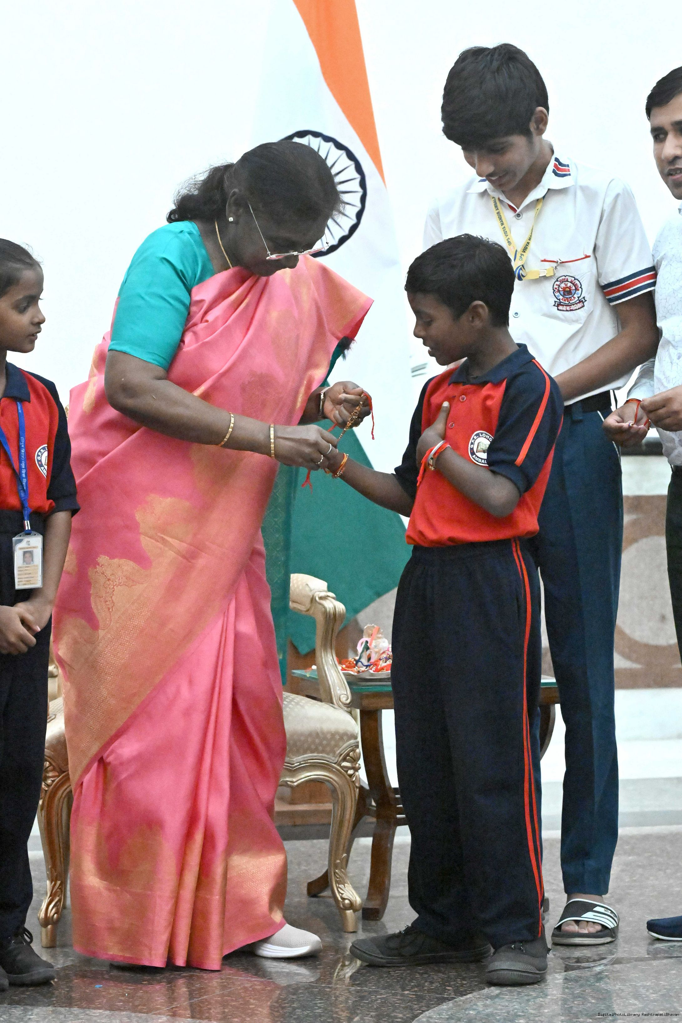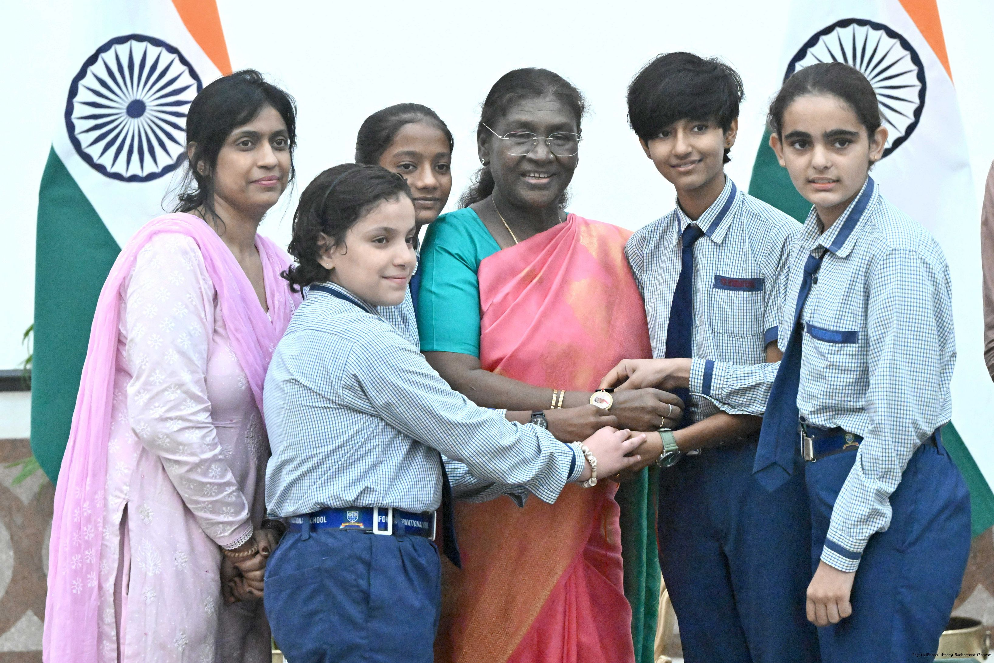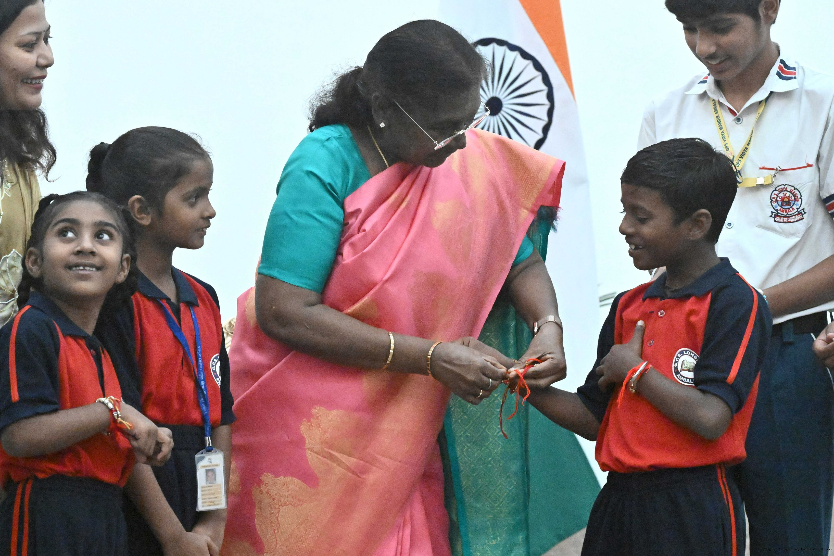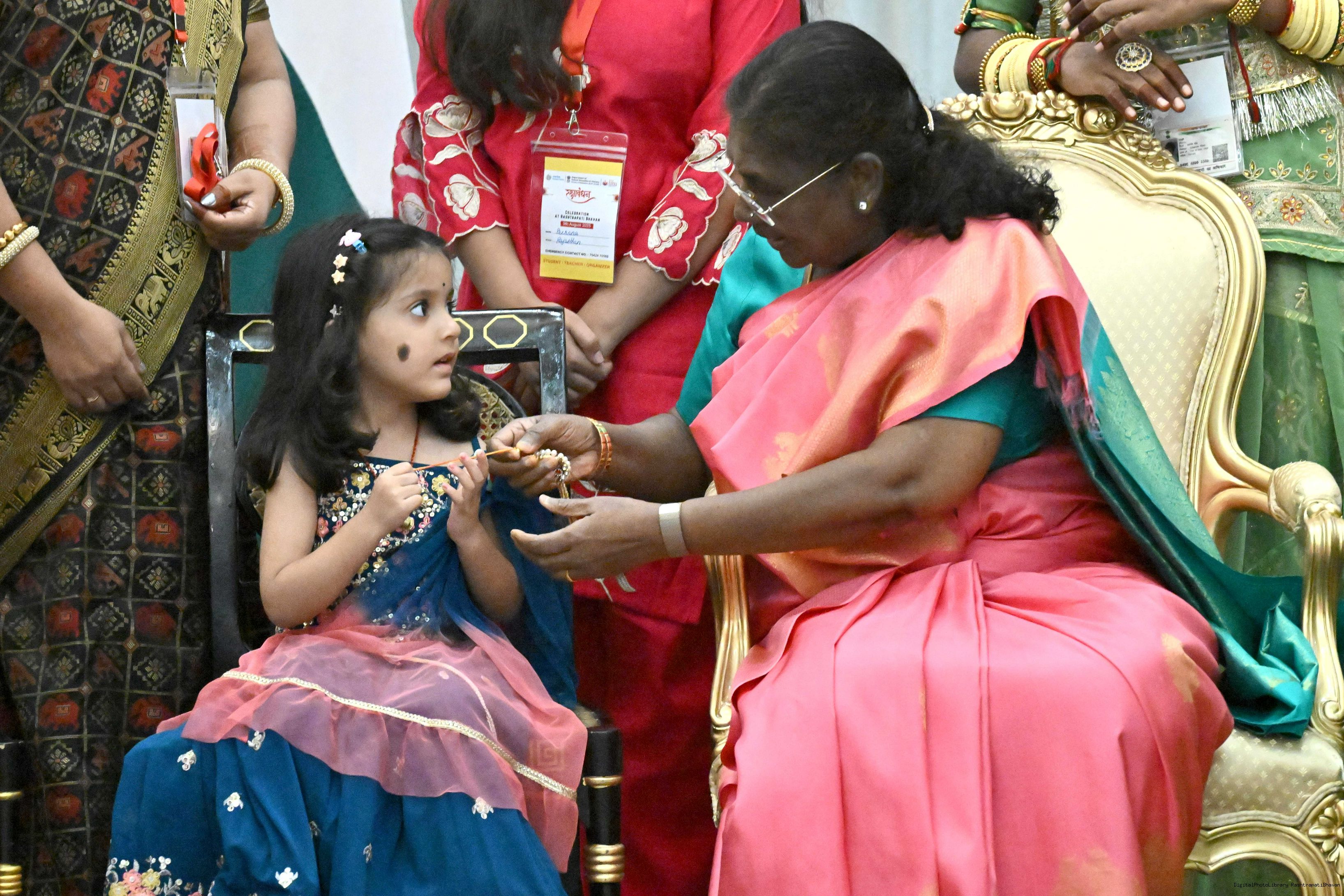 | Caption: | The President of India, Smt. Droupadi Murmu celebrated Raksha Bandhan with children and students at various schools and organizations at Rashtrapati Bhavan on August 9, 2025. |