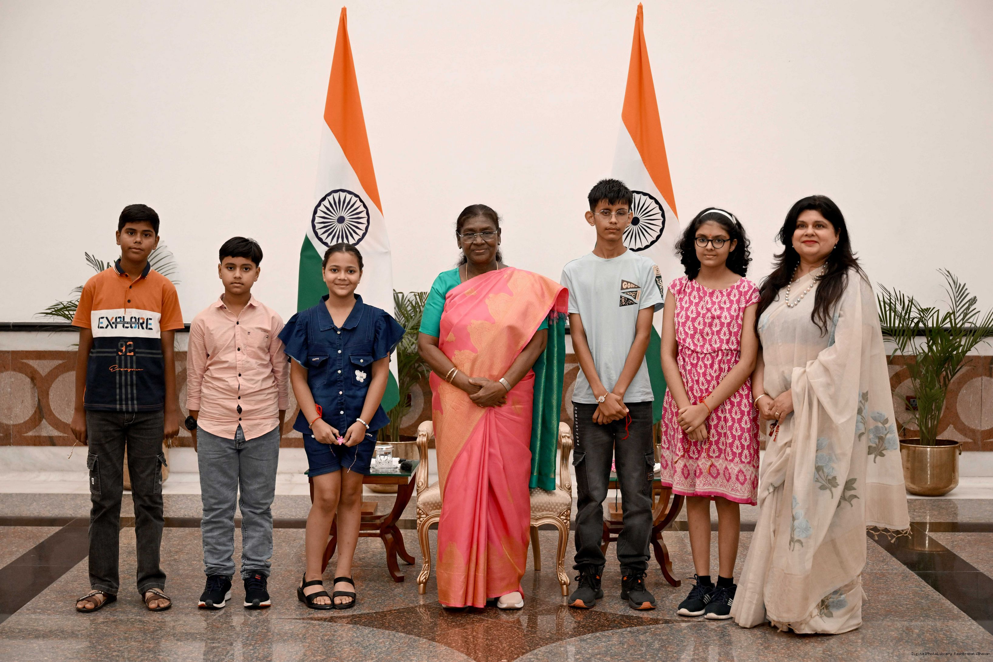 | Caption: | The President of India, Smt. Droupadi Murmu celebrated Raksha Bandhan with children and students at various schools and organizations at Rashtrapati Bhavan on August 9, 2025. |