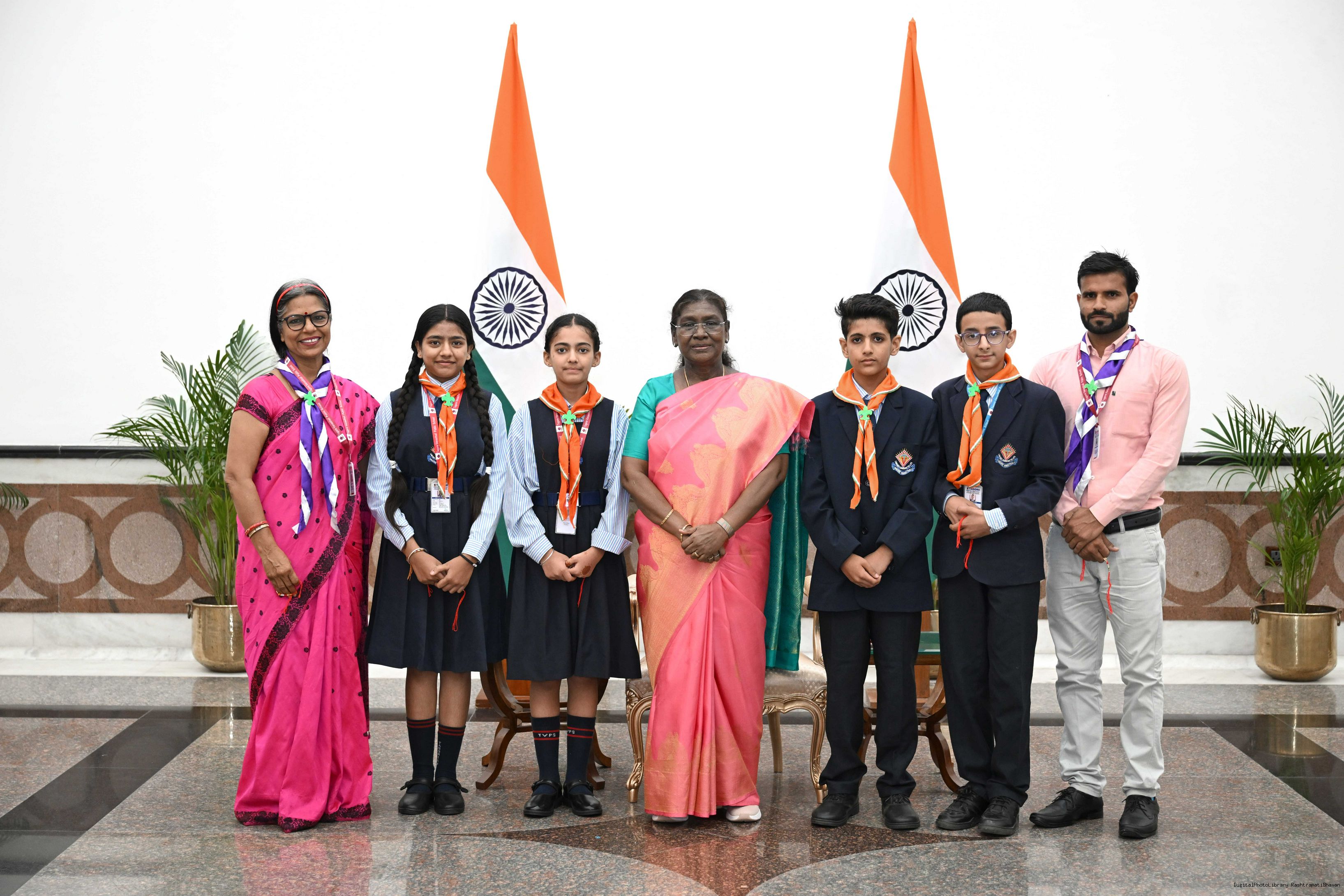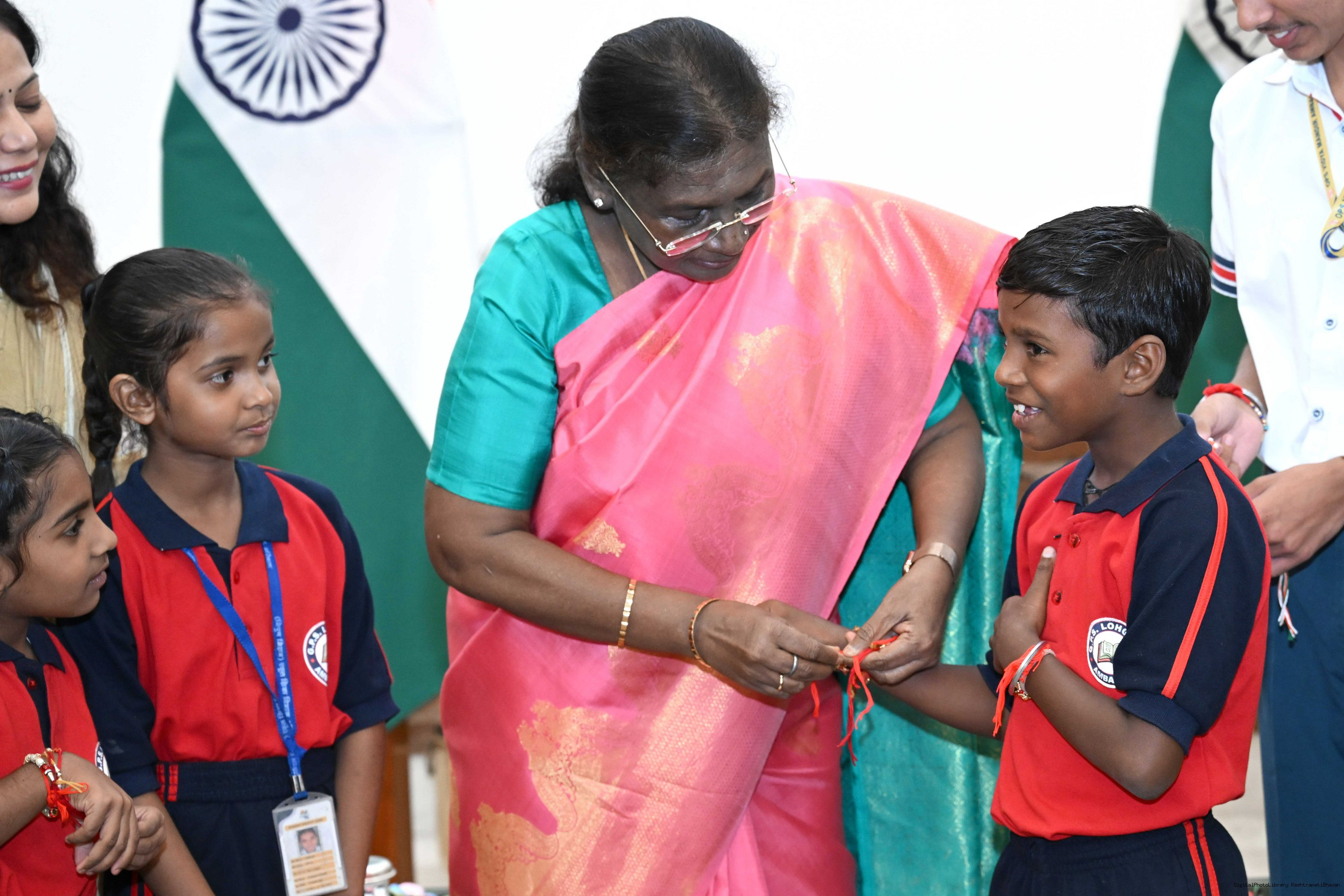 | Caption: | The President of India, Smt. Droupadi Murmu celebrated Raksha Bandhan with children and students at various schools and organizations at Rashtrapati Bhavan on August 9, 2025. |
