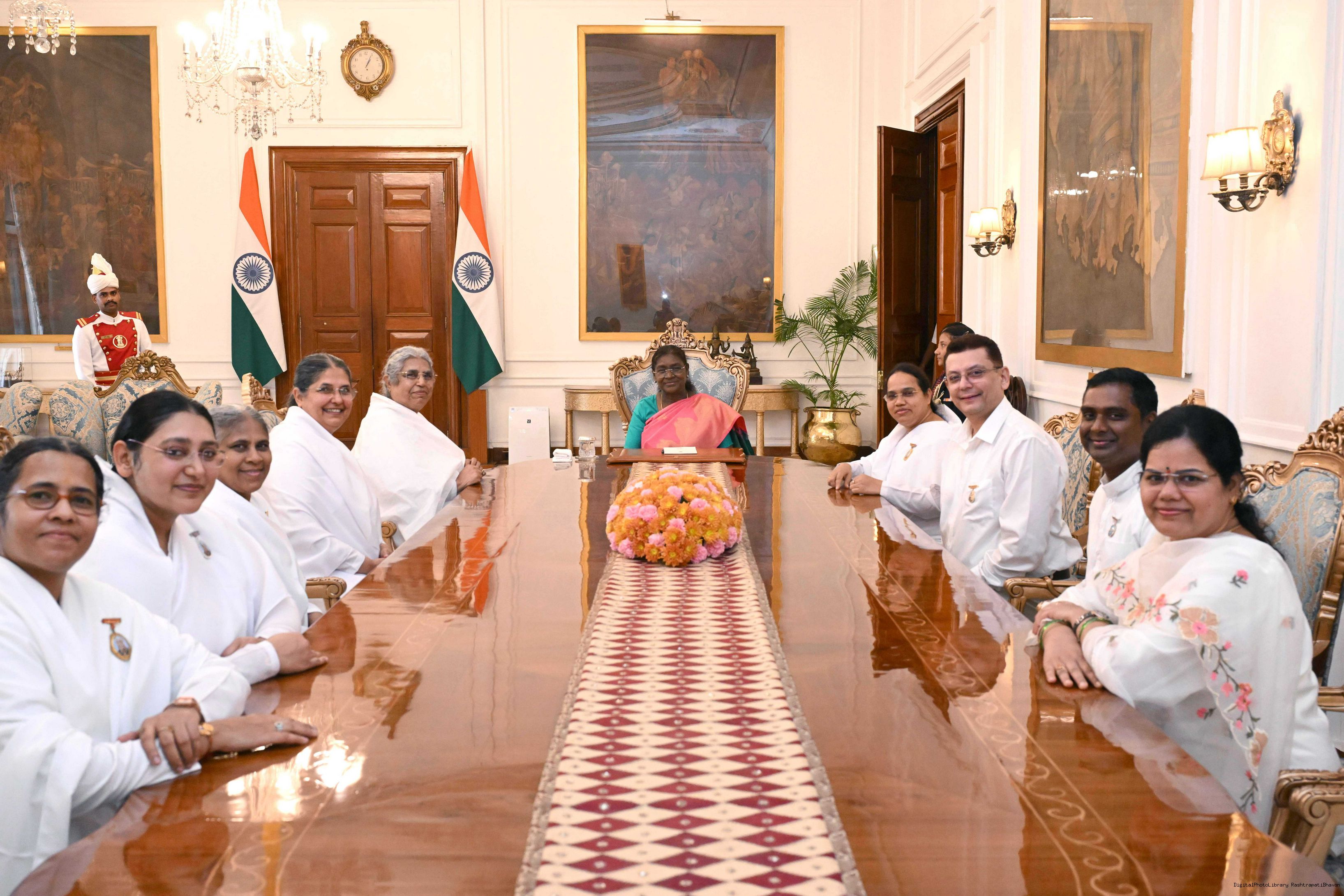 | Caption: | BK Asha, Member, Management Committee of Brahma Kumaris Mount Abu and Director Delhi Zone Service along with others meeting with the President of India, Smt. Droupadi Murmu at Rashtrapati Bhavan on August 9, 2025. |