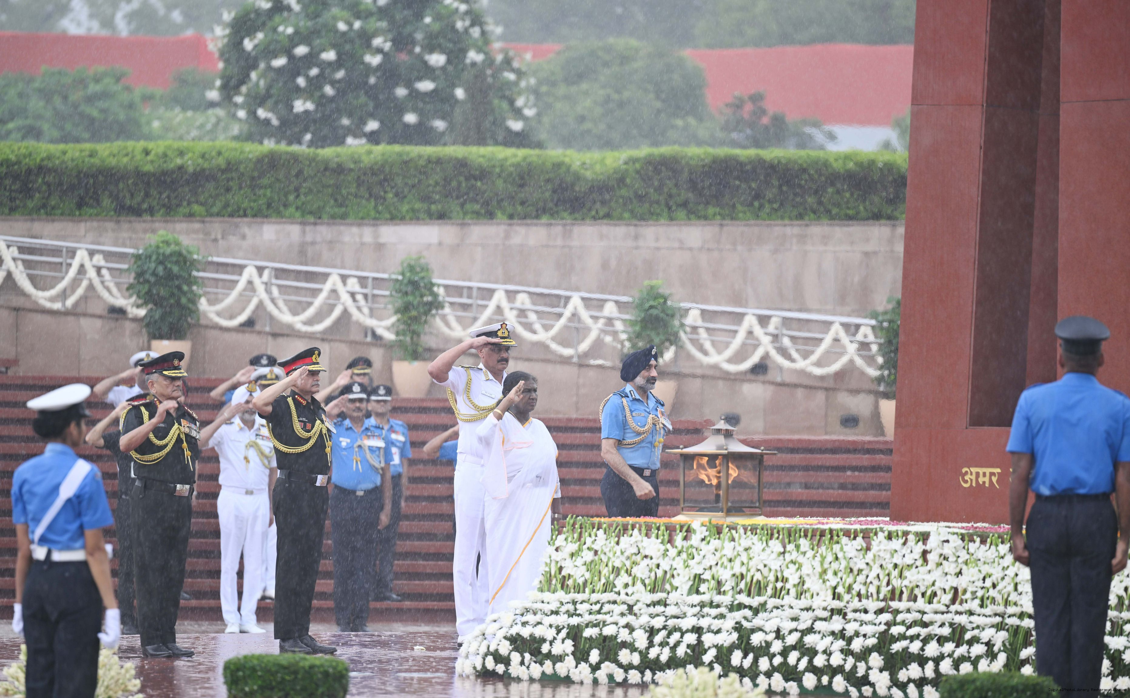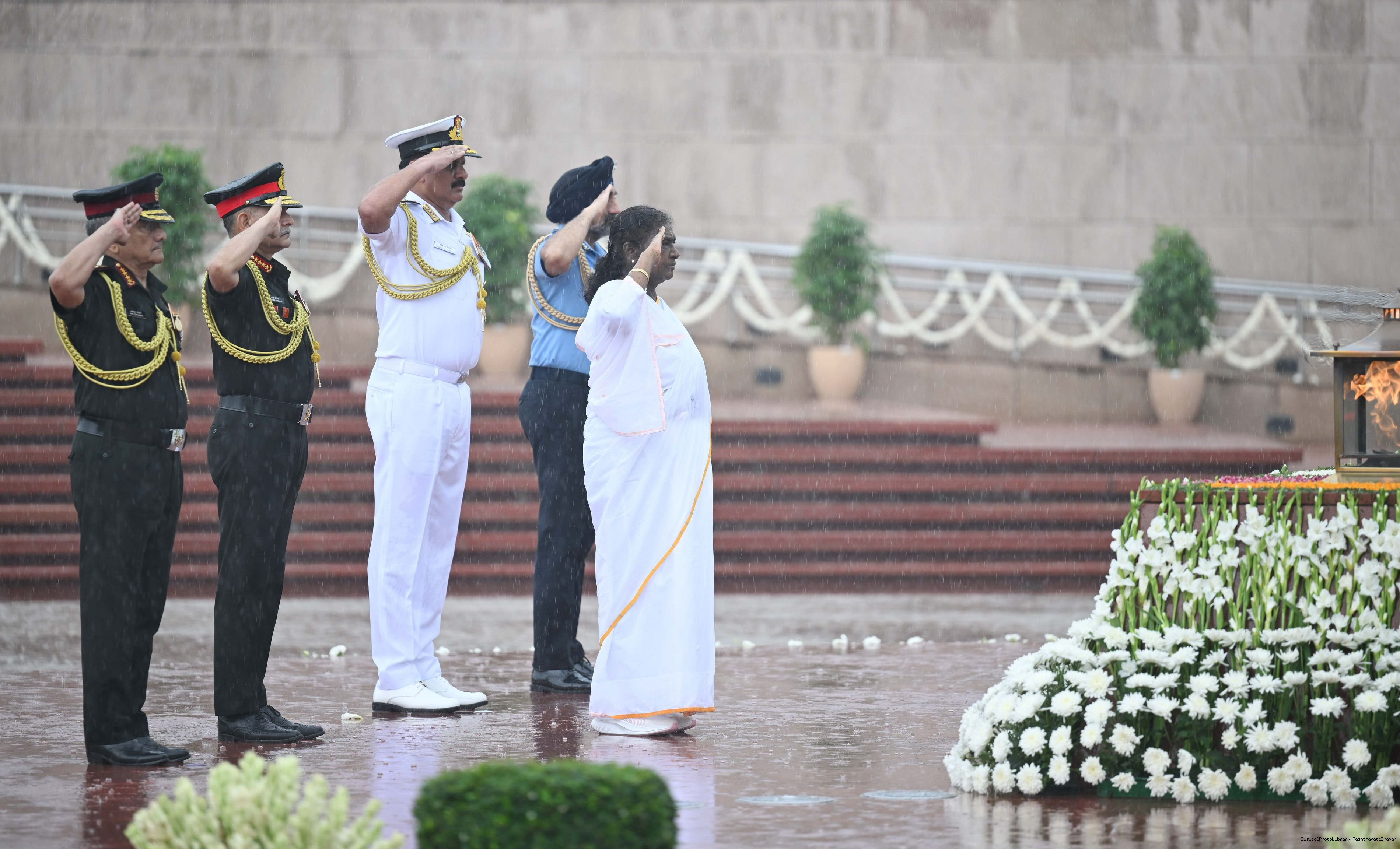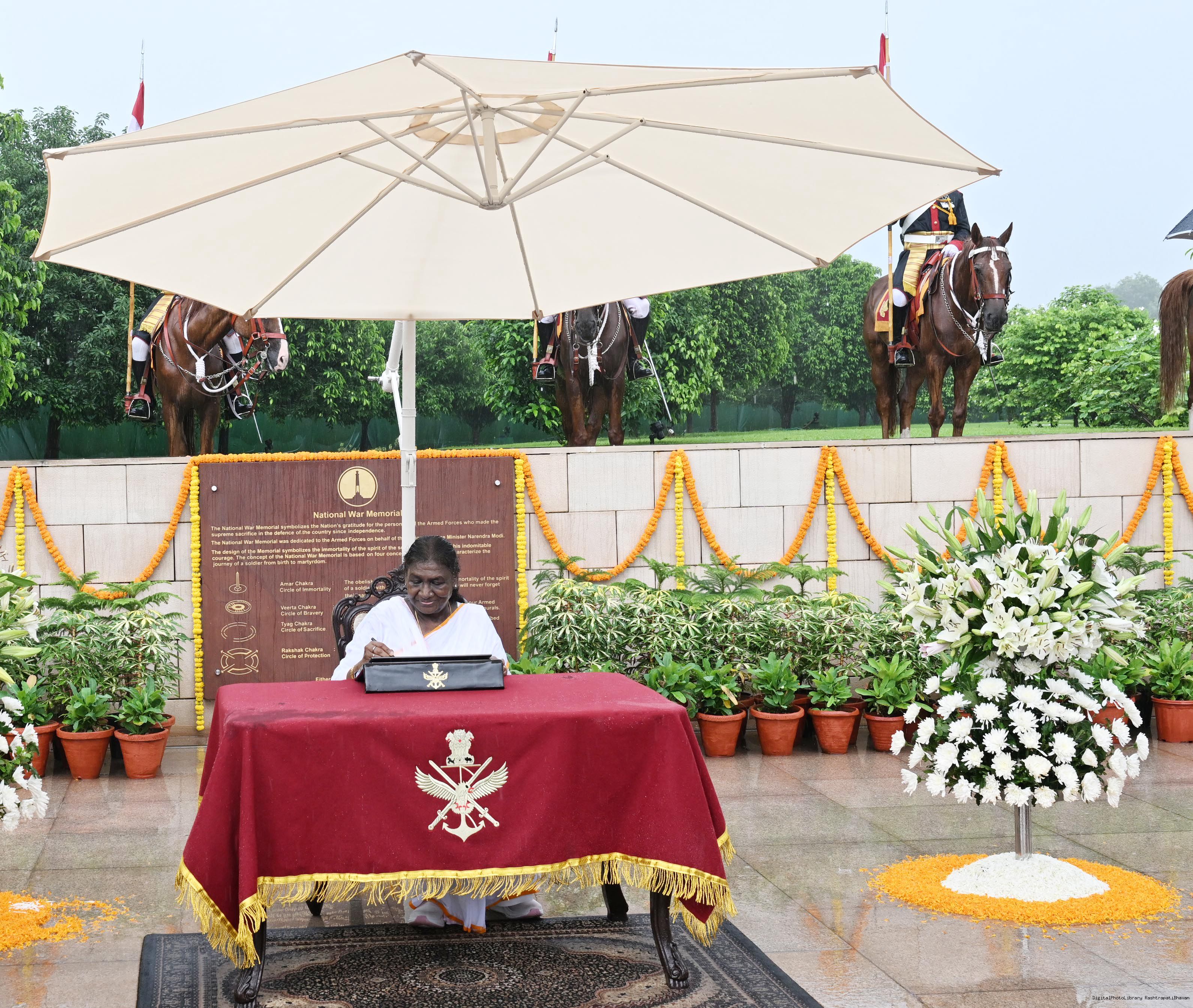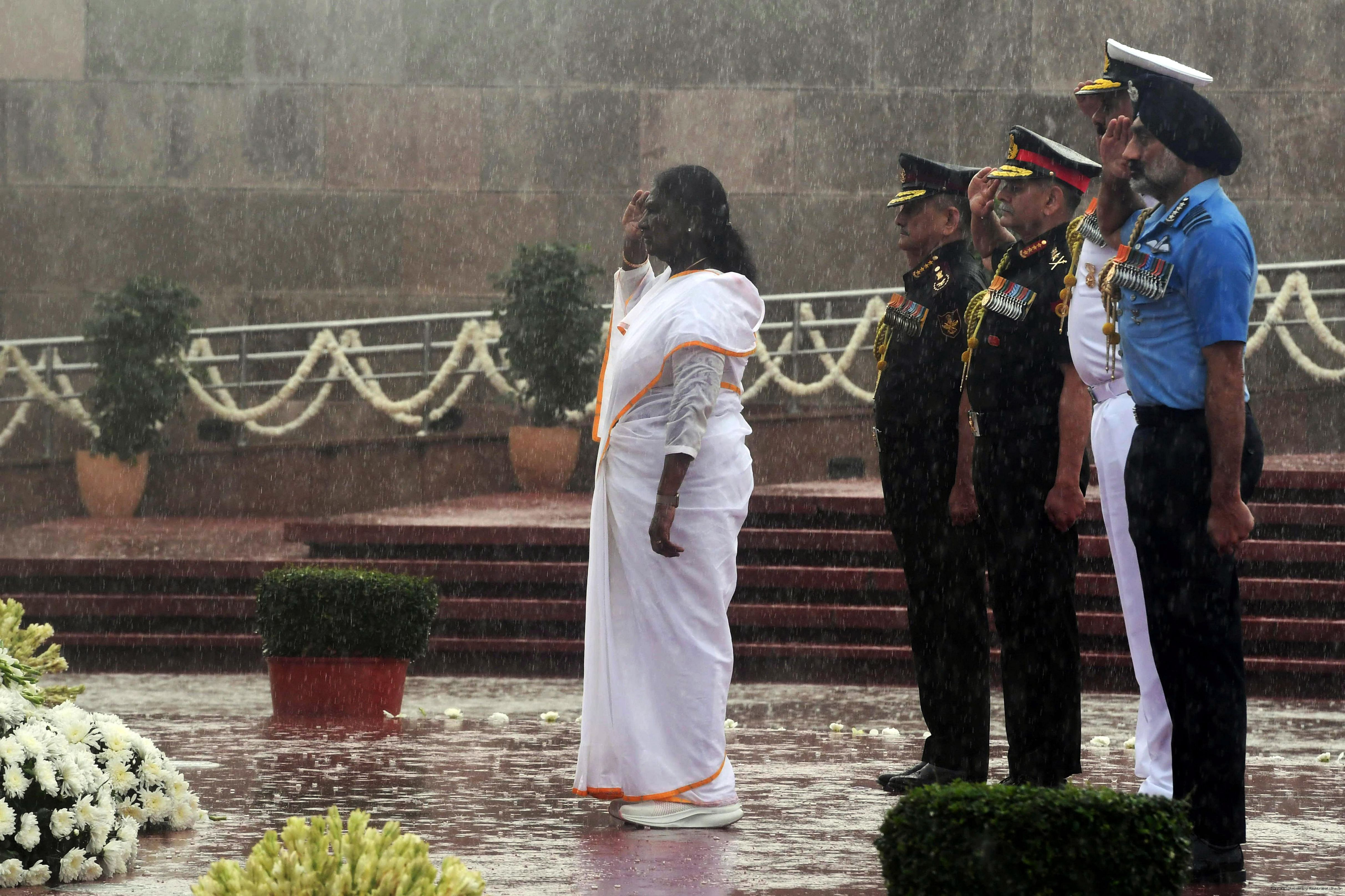 | Caption: | The President of India, Smt. Droupadi wreath laid the National War Memorial and paid homage to the martyrs, on the occasion of 79th Independence Day, in New Delhi on August 15, 2025. |