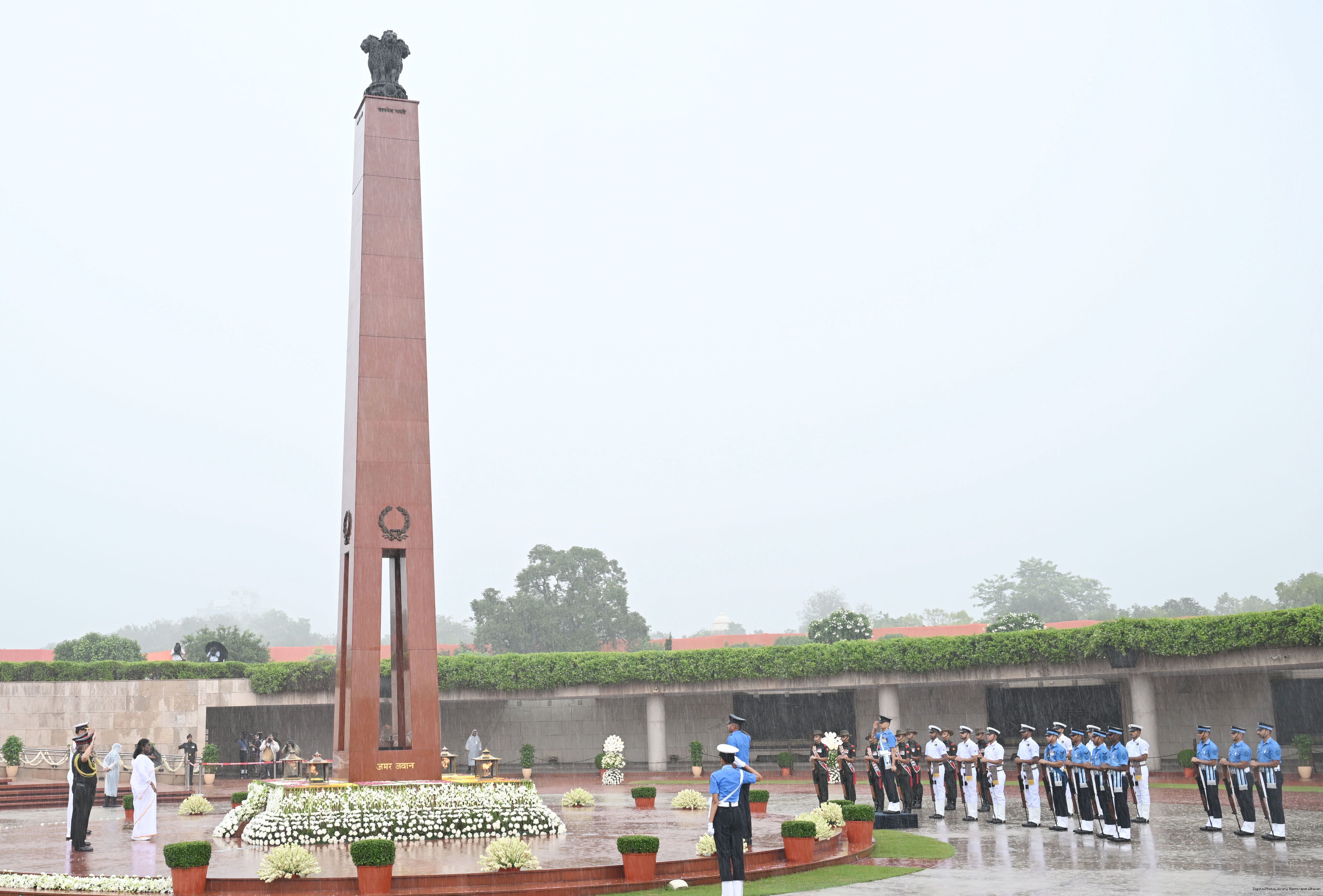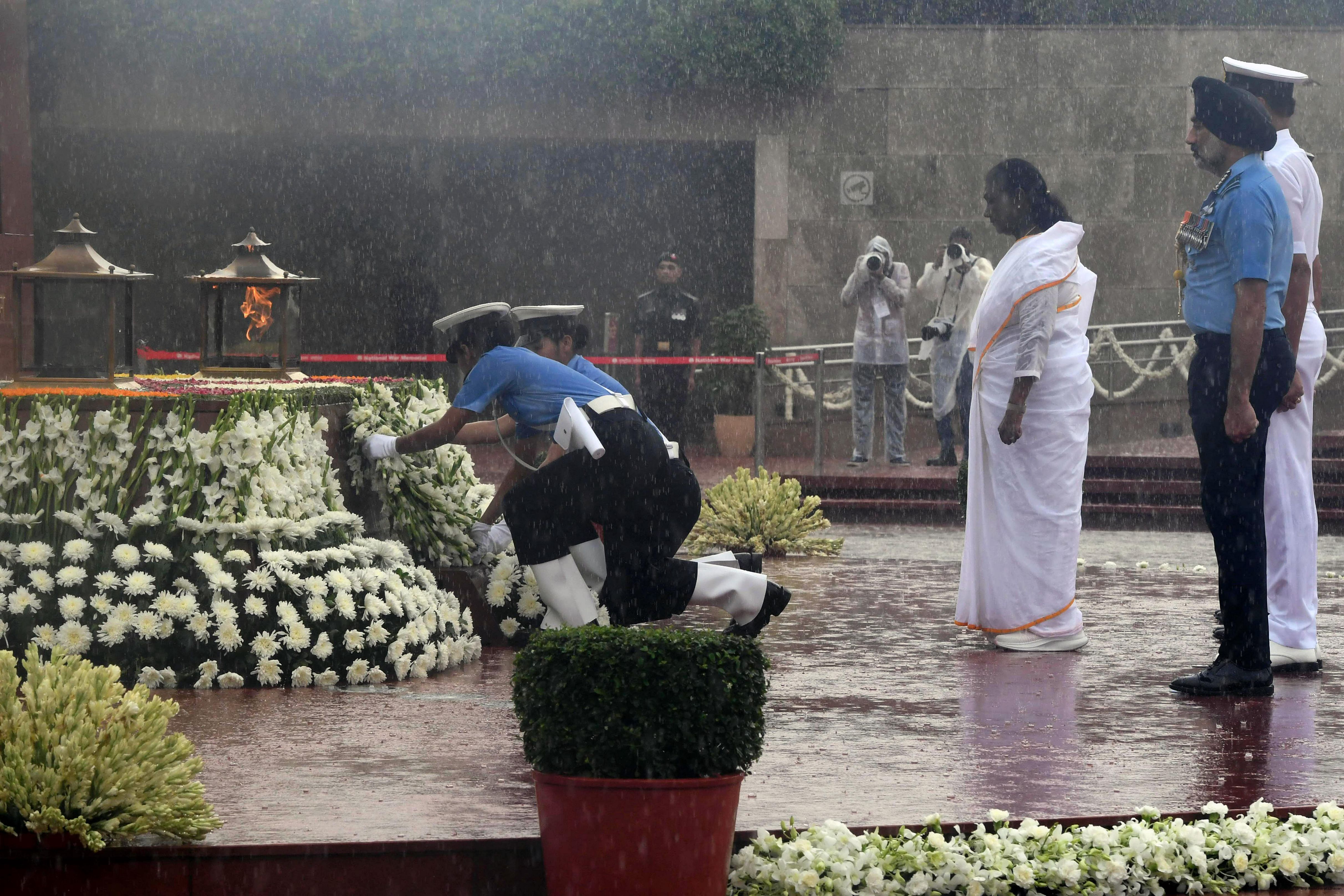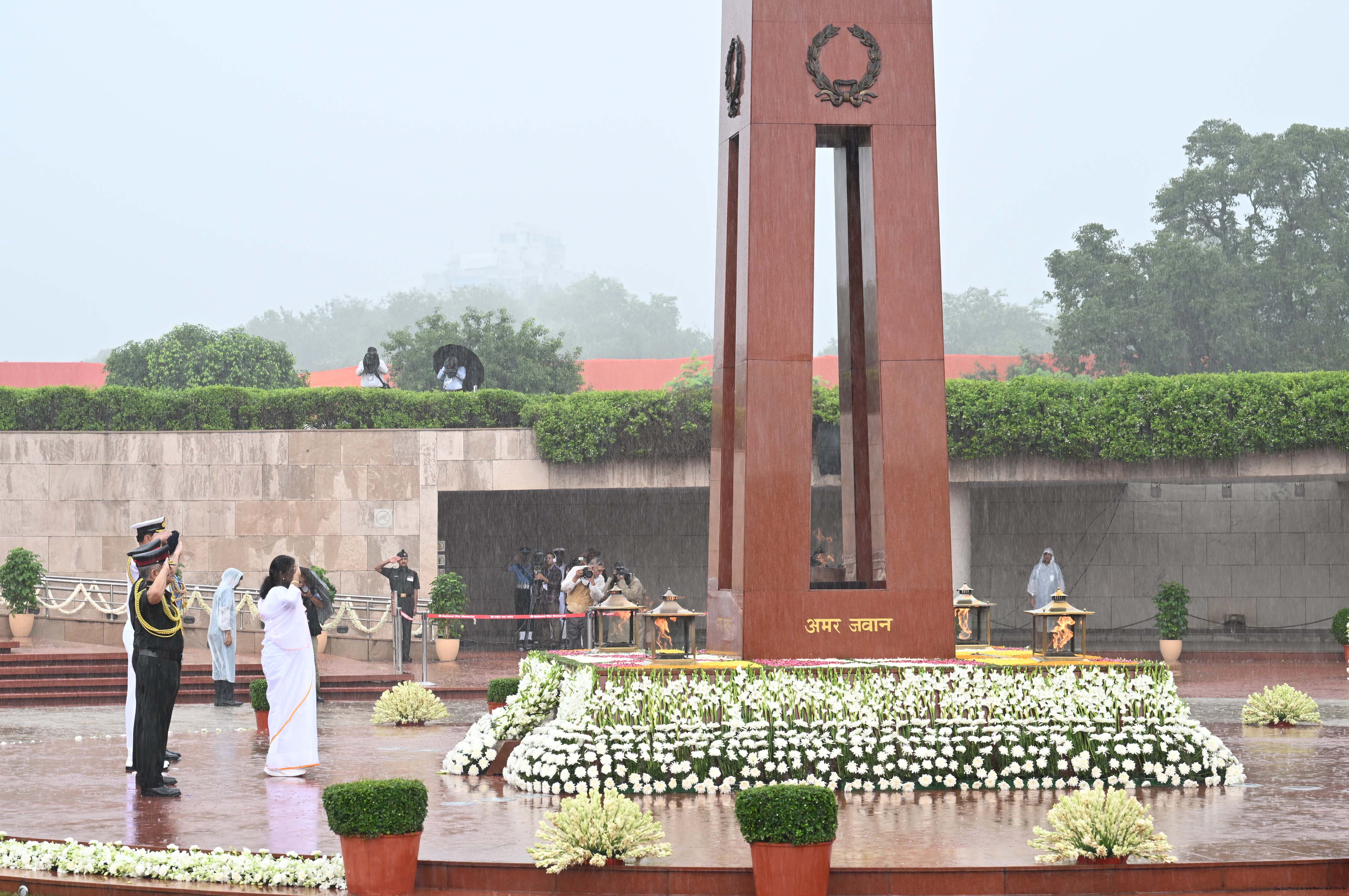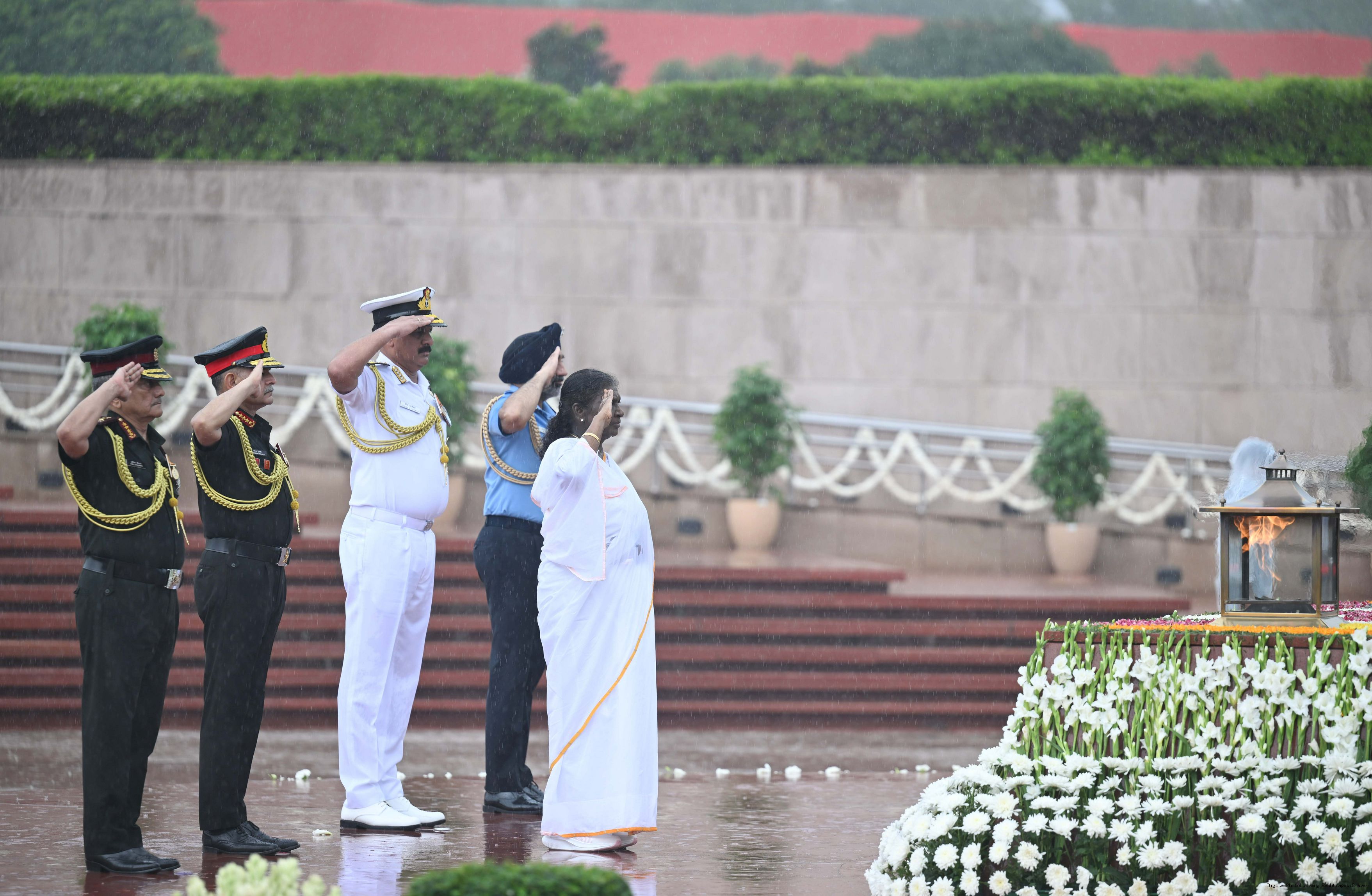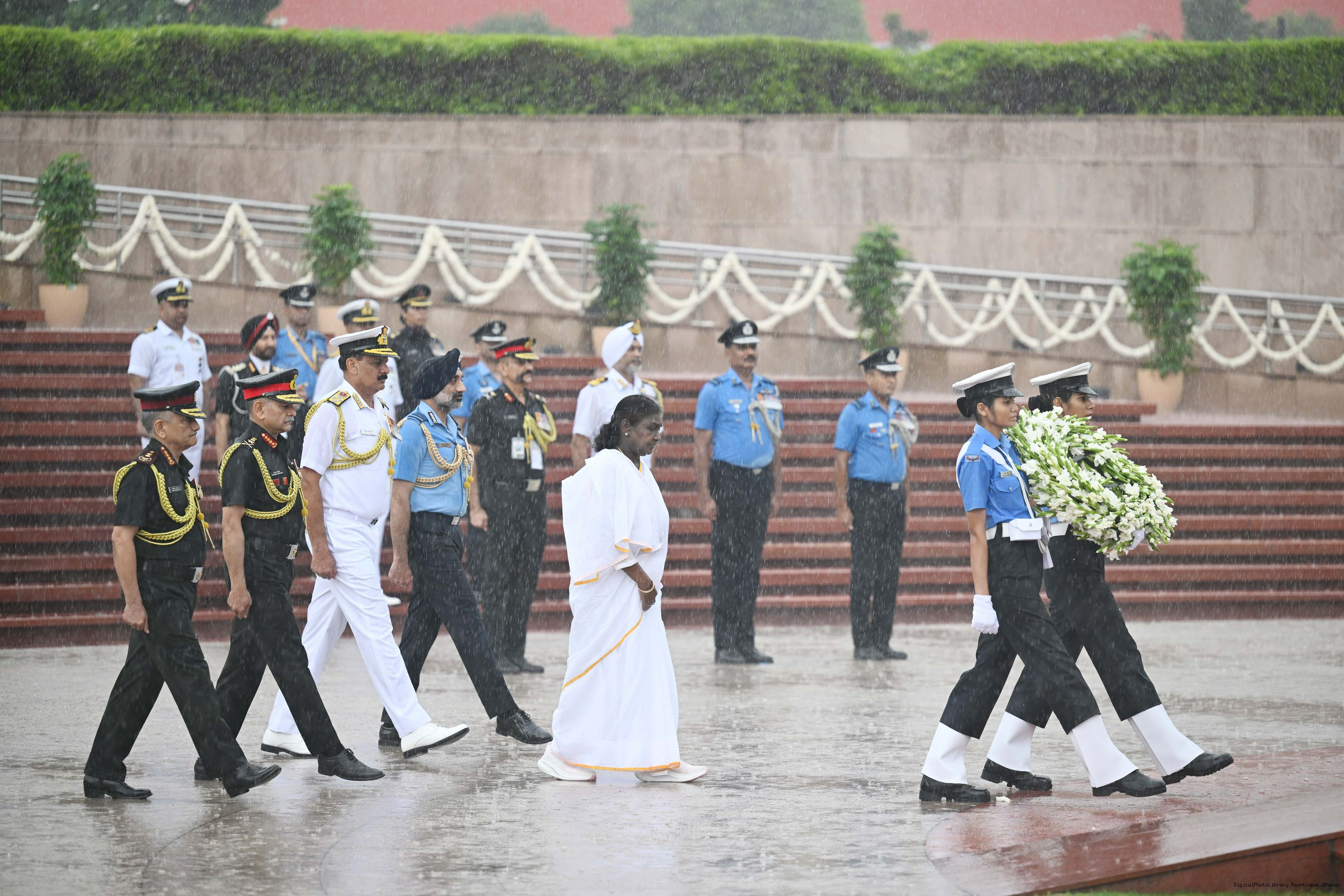 | Caption: | The President of India, Smt. Droupadi wreath laid the National War Memorial and paid homage to the martyrs, on the occasion of 79th Independence Day, in New Delhi on August 15, 2025. |