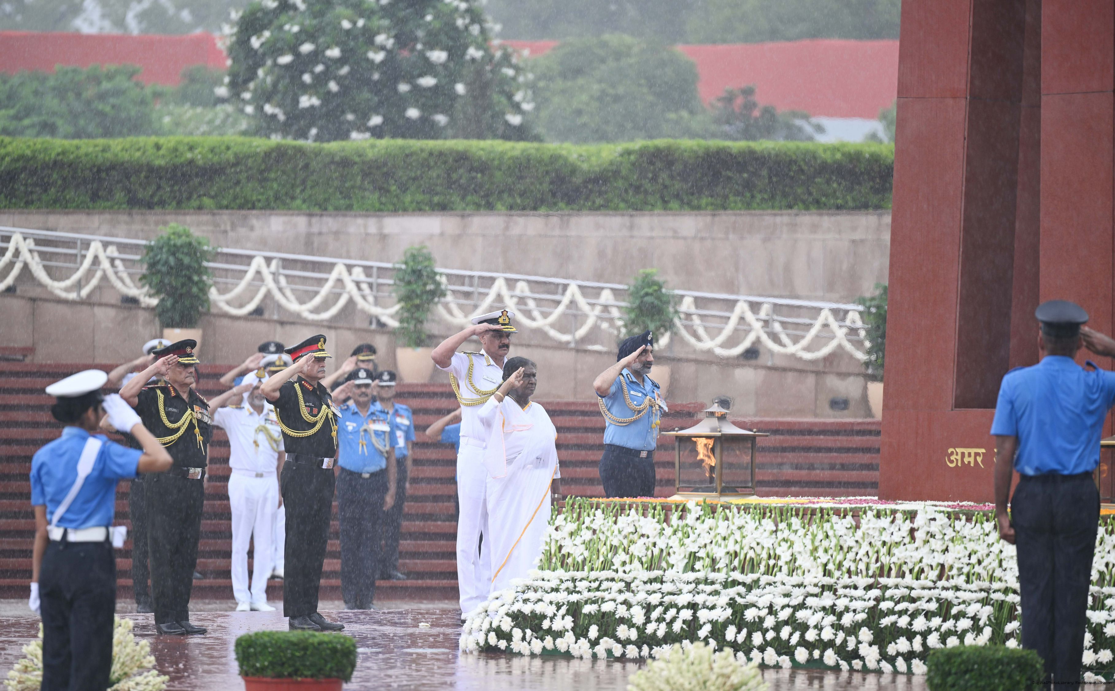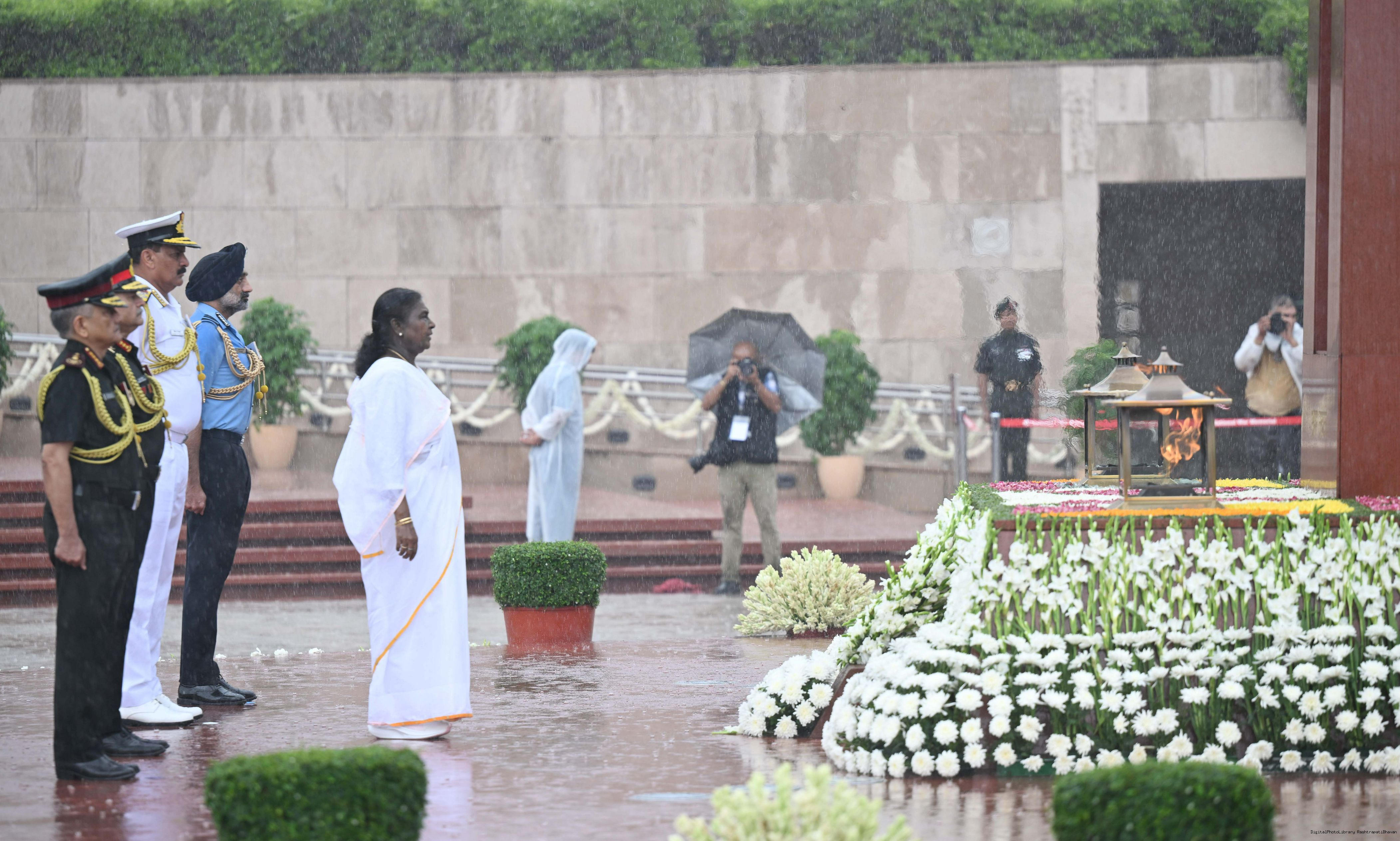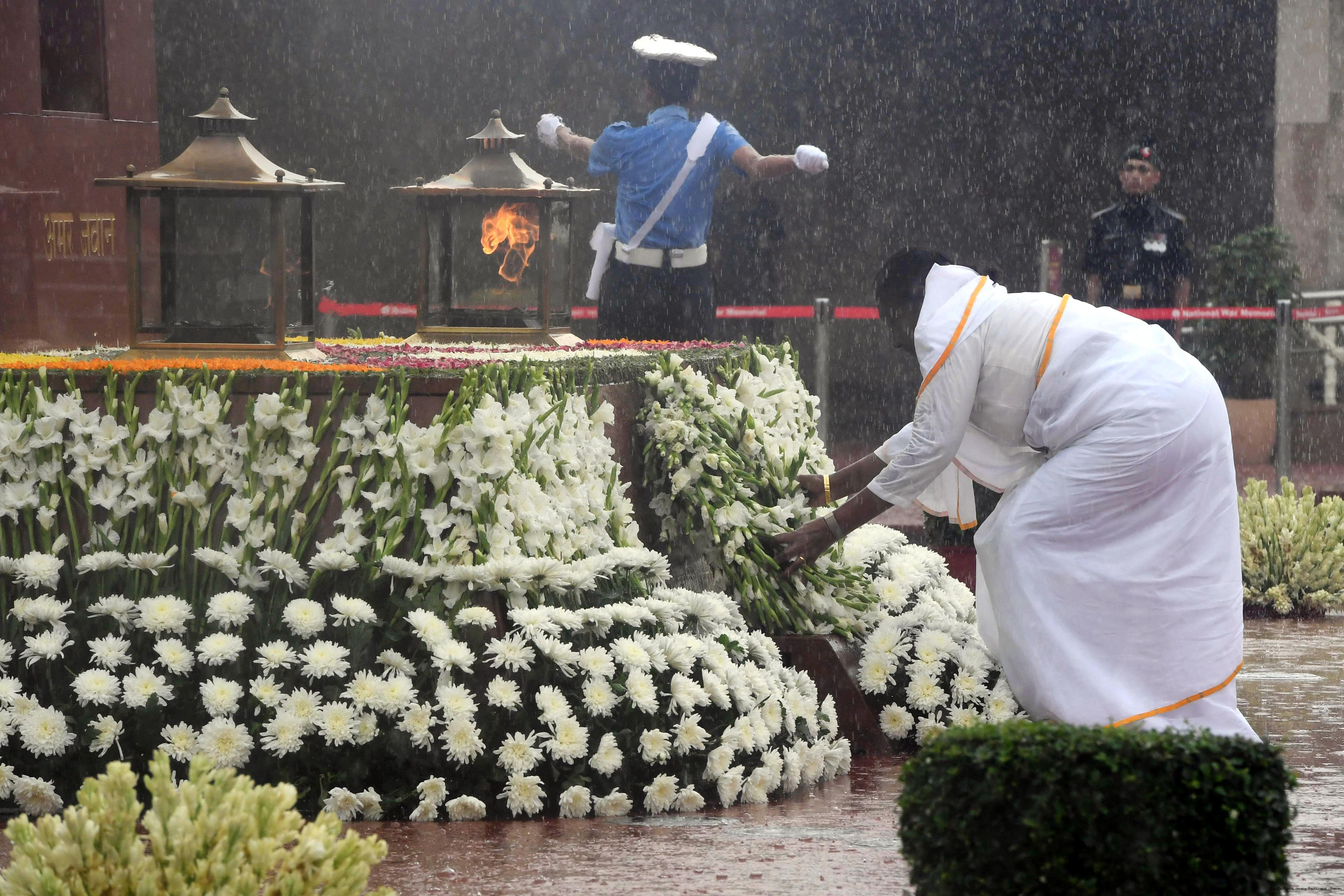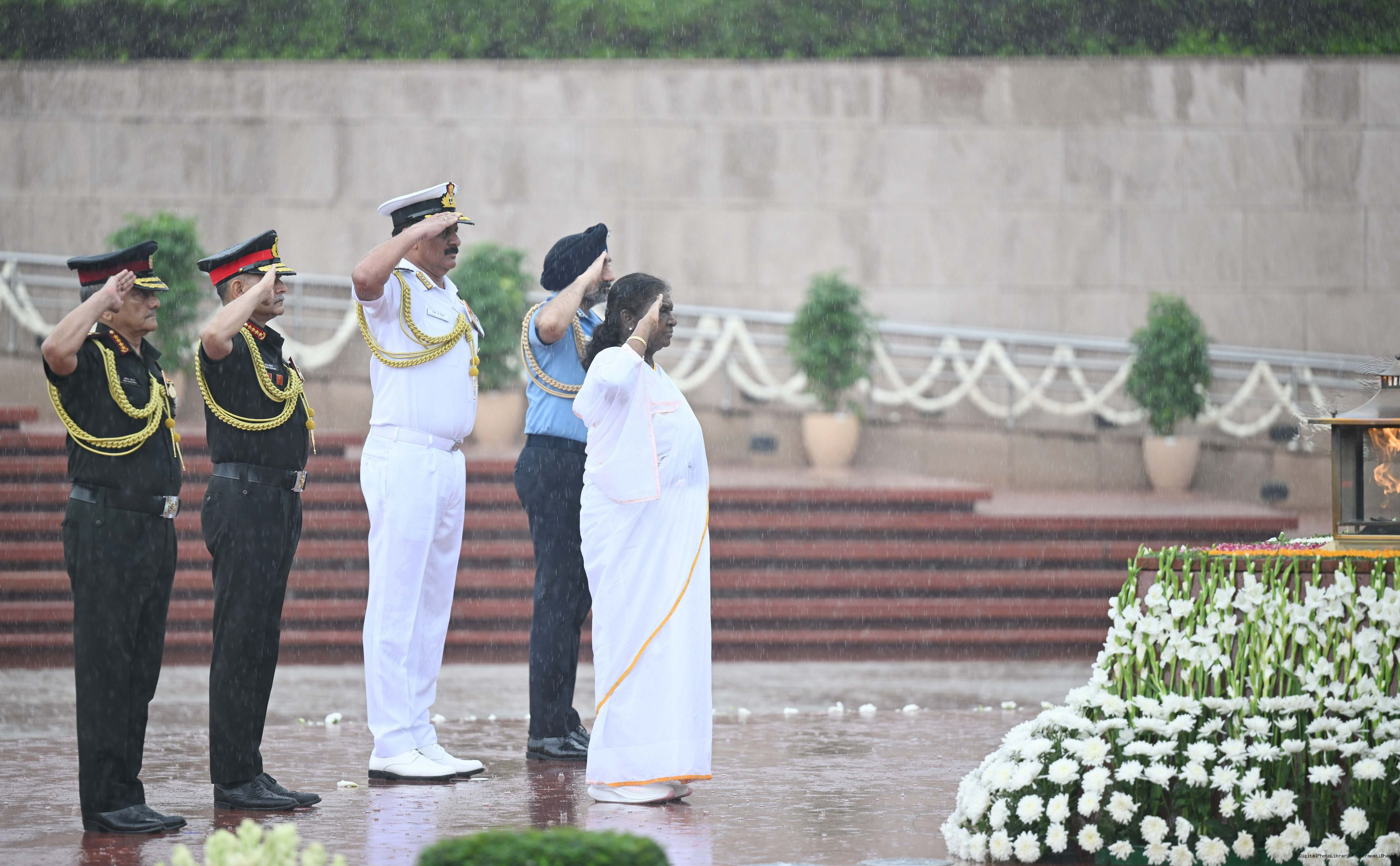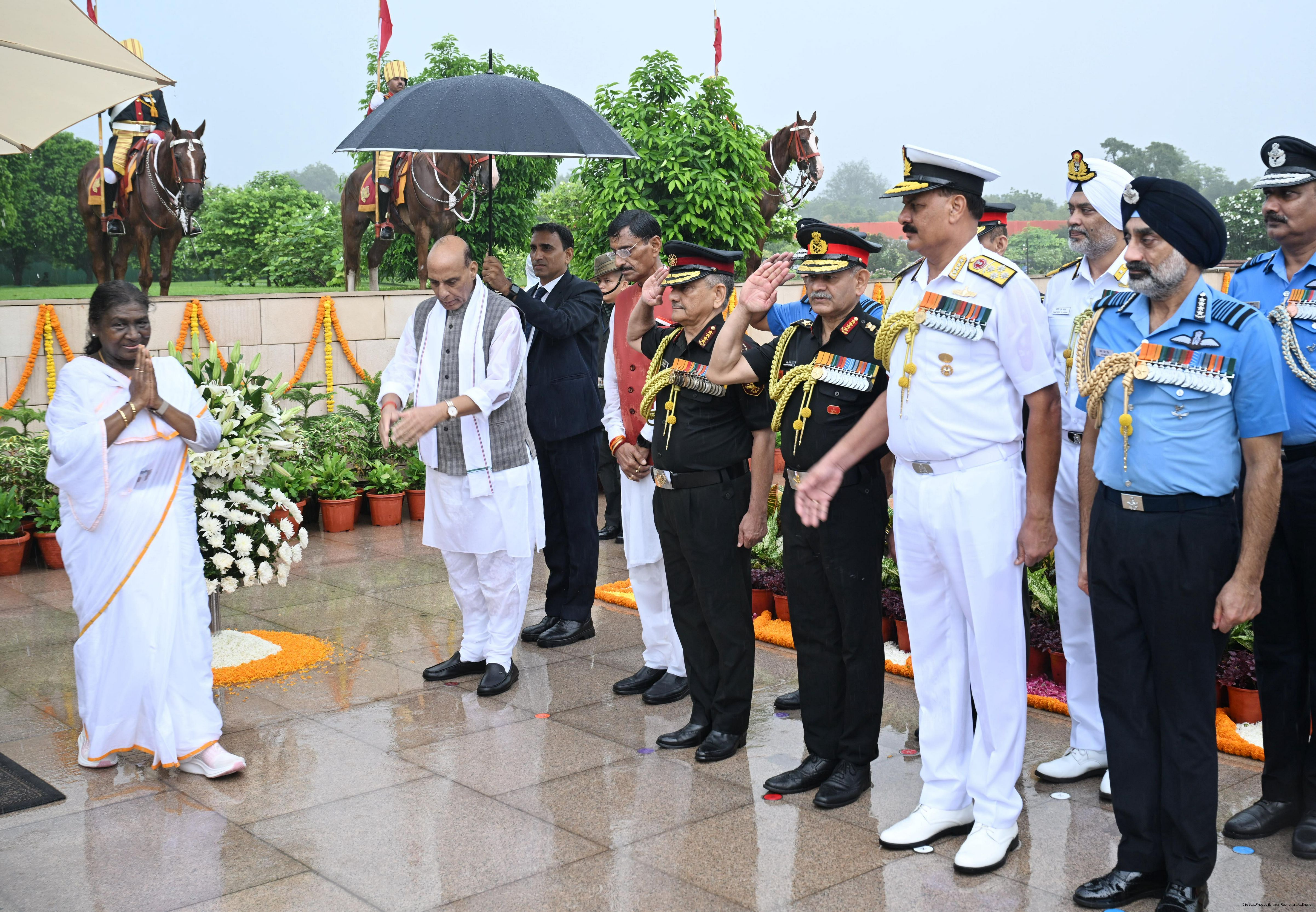 | Caption: | The President of India, Smt. Droupadi wreath laid the National War Memorial and paid homage to the martyrs, on the occasion of 79th Independence Day, in New Delhi on August 15, 2025. |