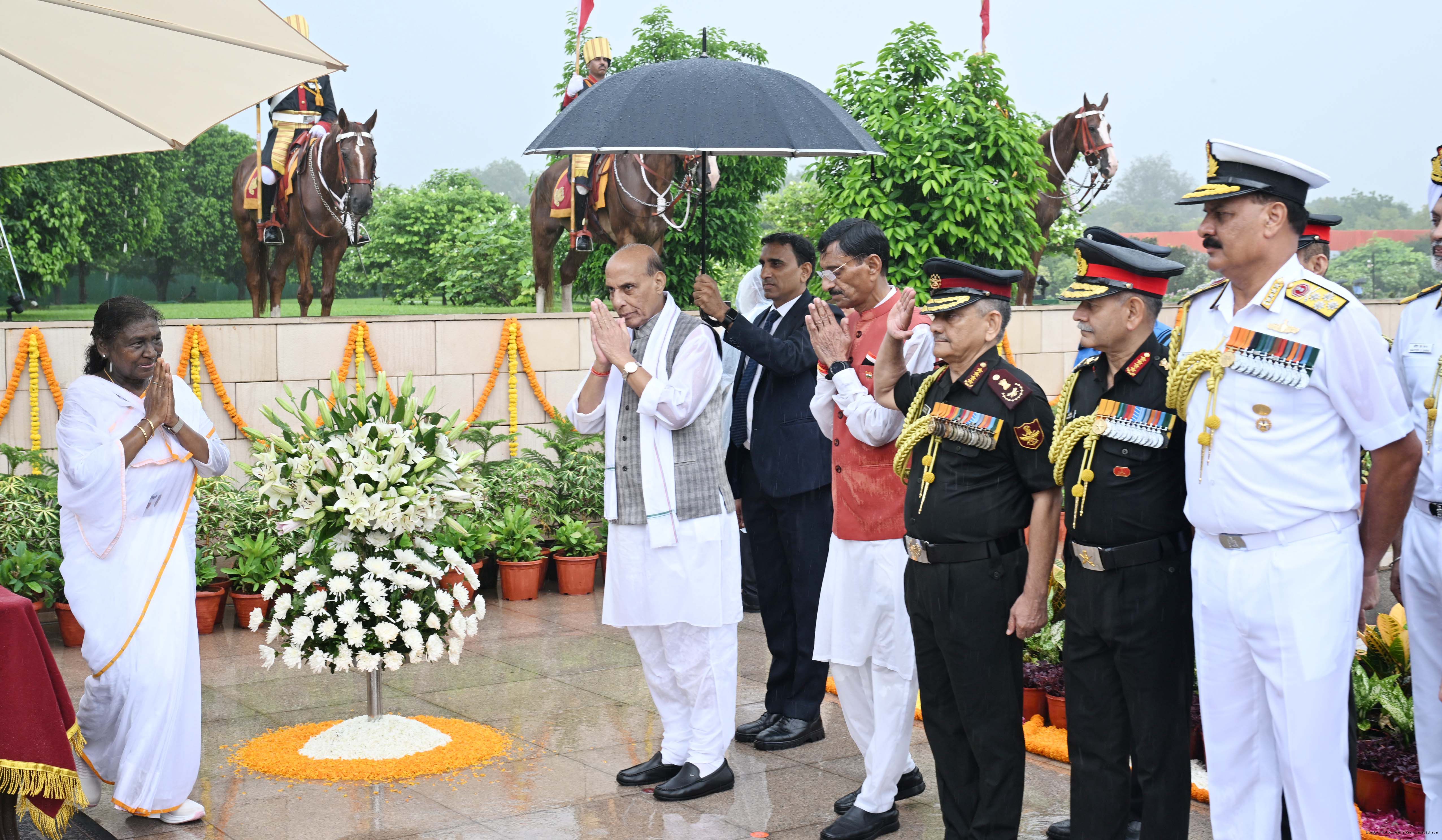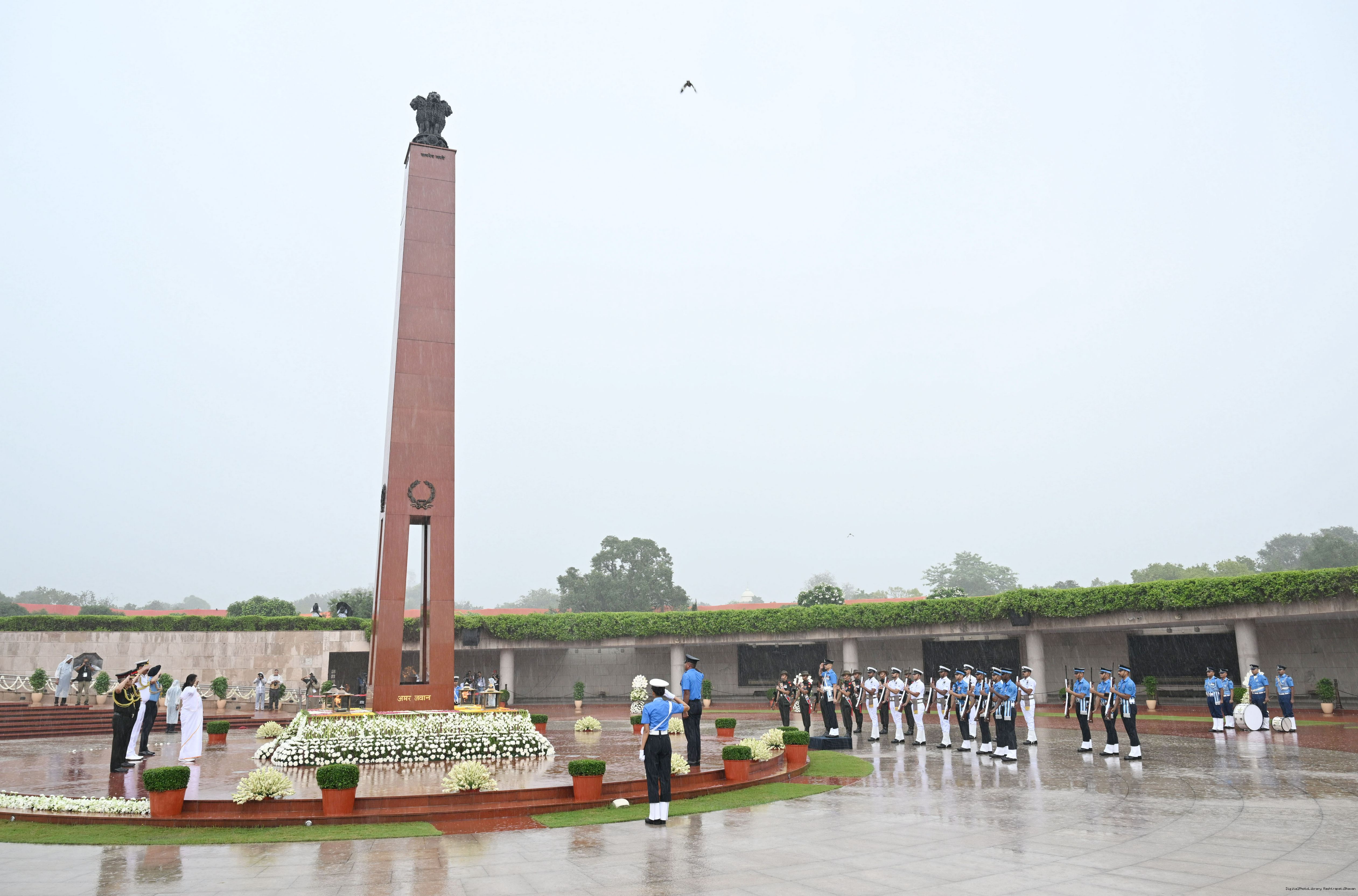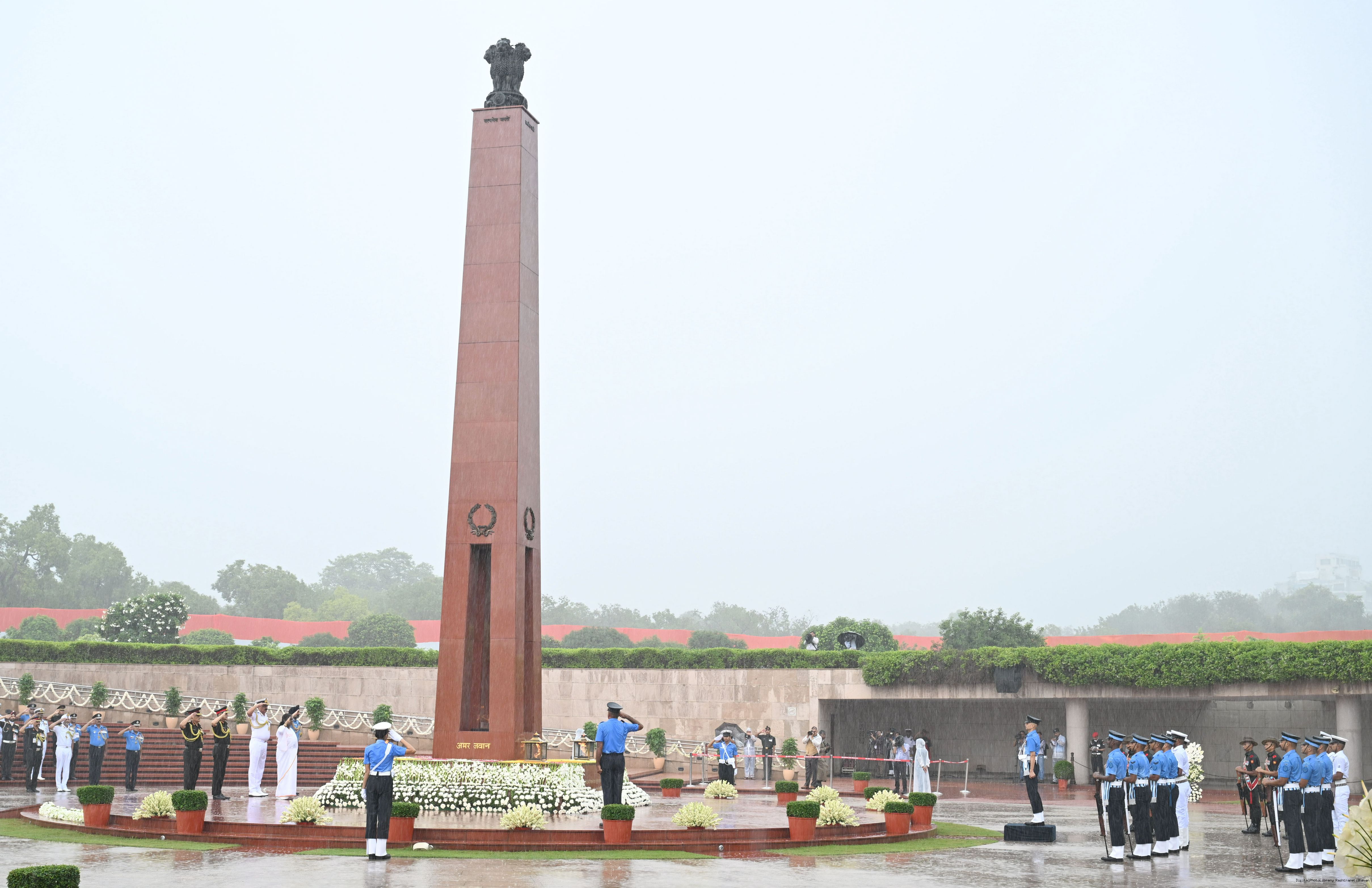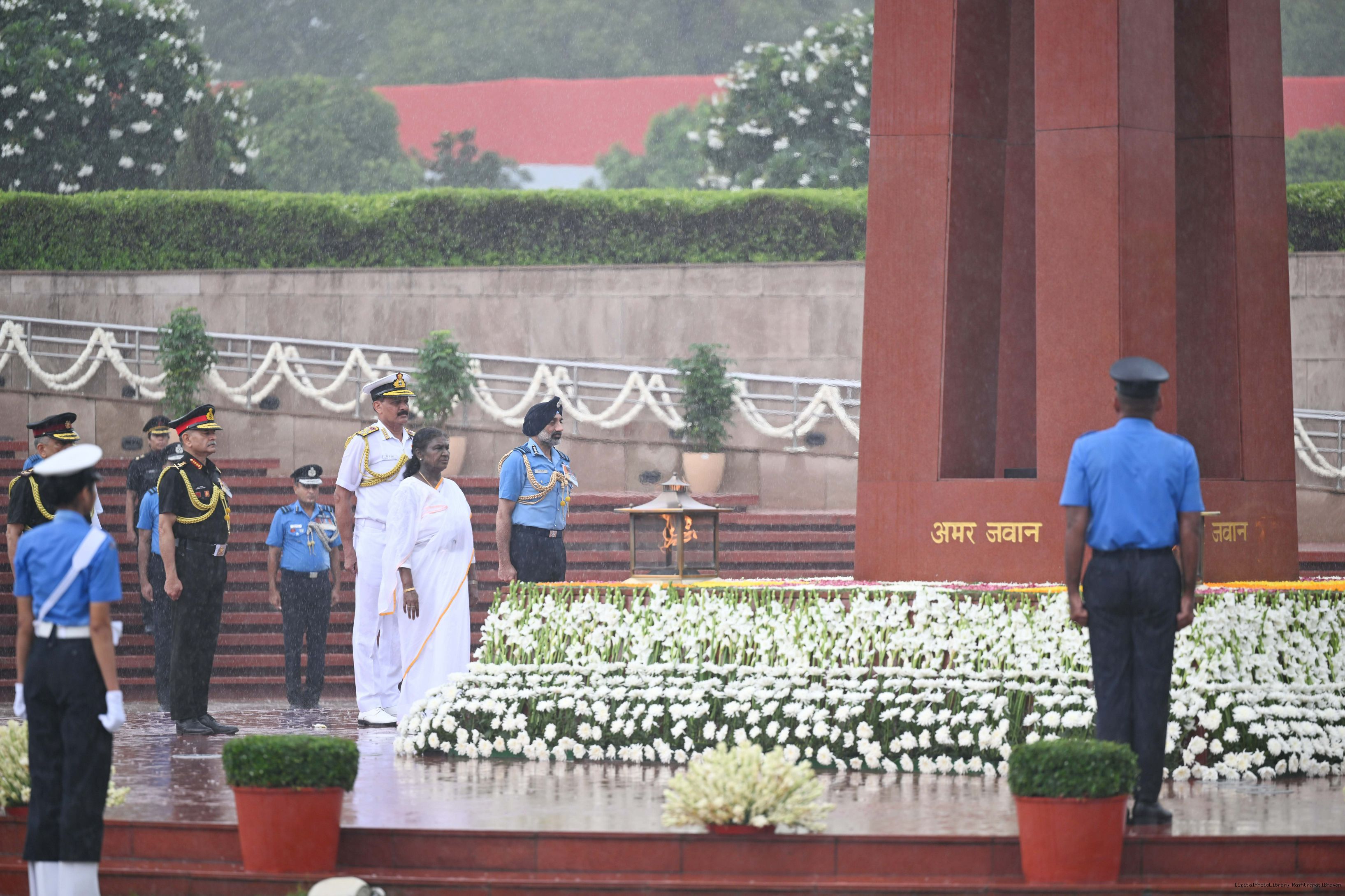 | Caption: | The President of India, Smt. Droupadi wreath laid the National War Memorial and paid homage to the martyrs, on the occasion of 79th Independence Day, in New Delhi on August 15, 2025. |