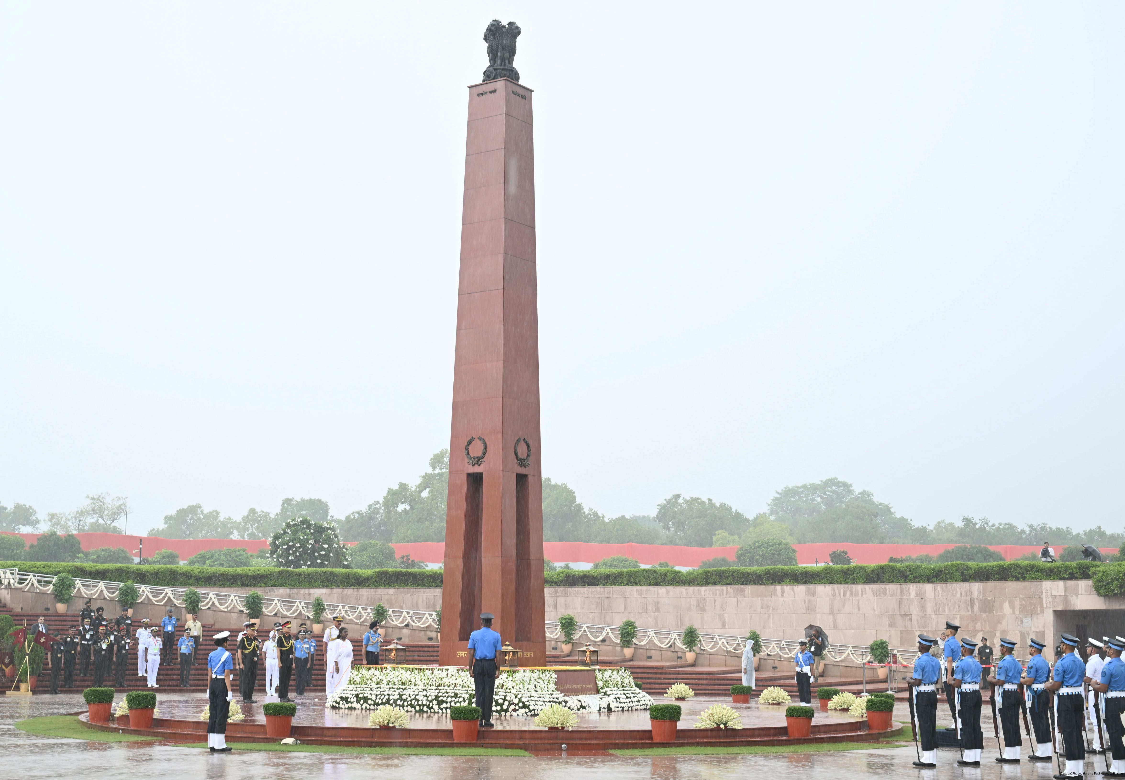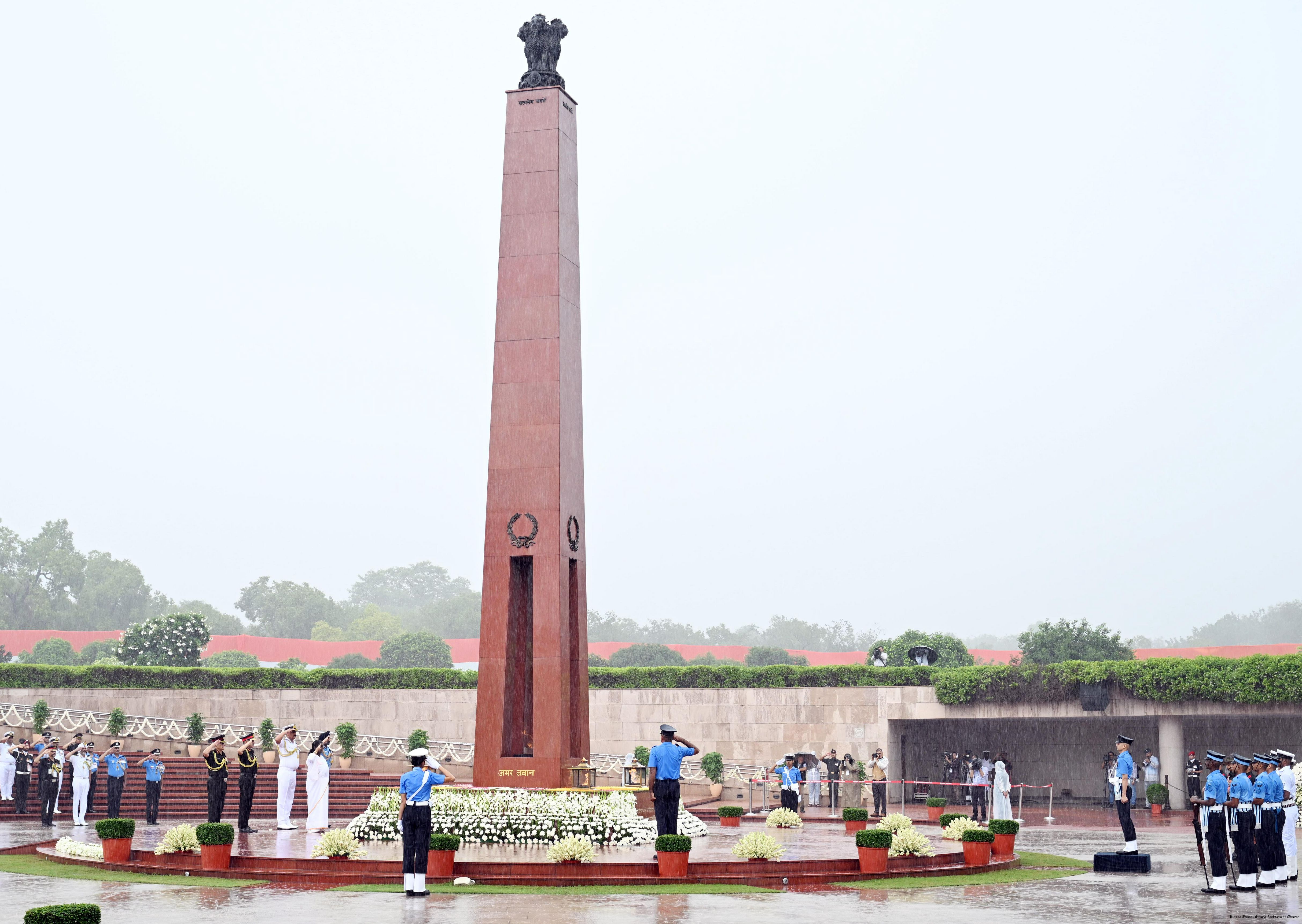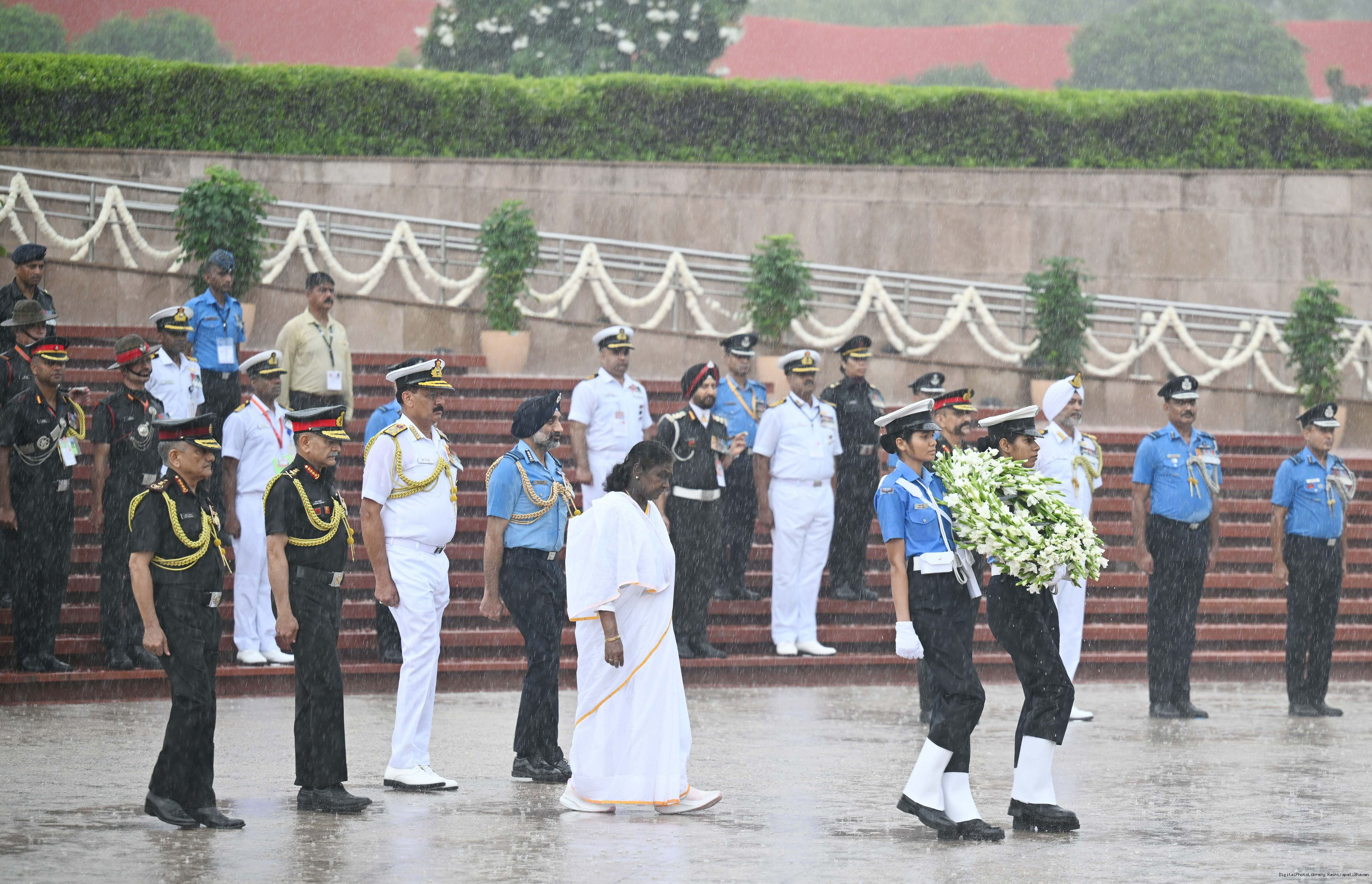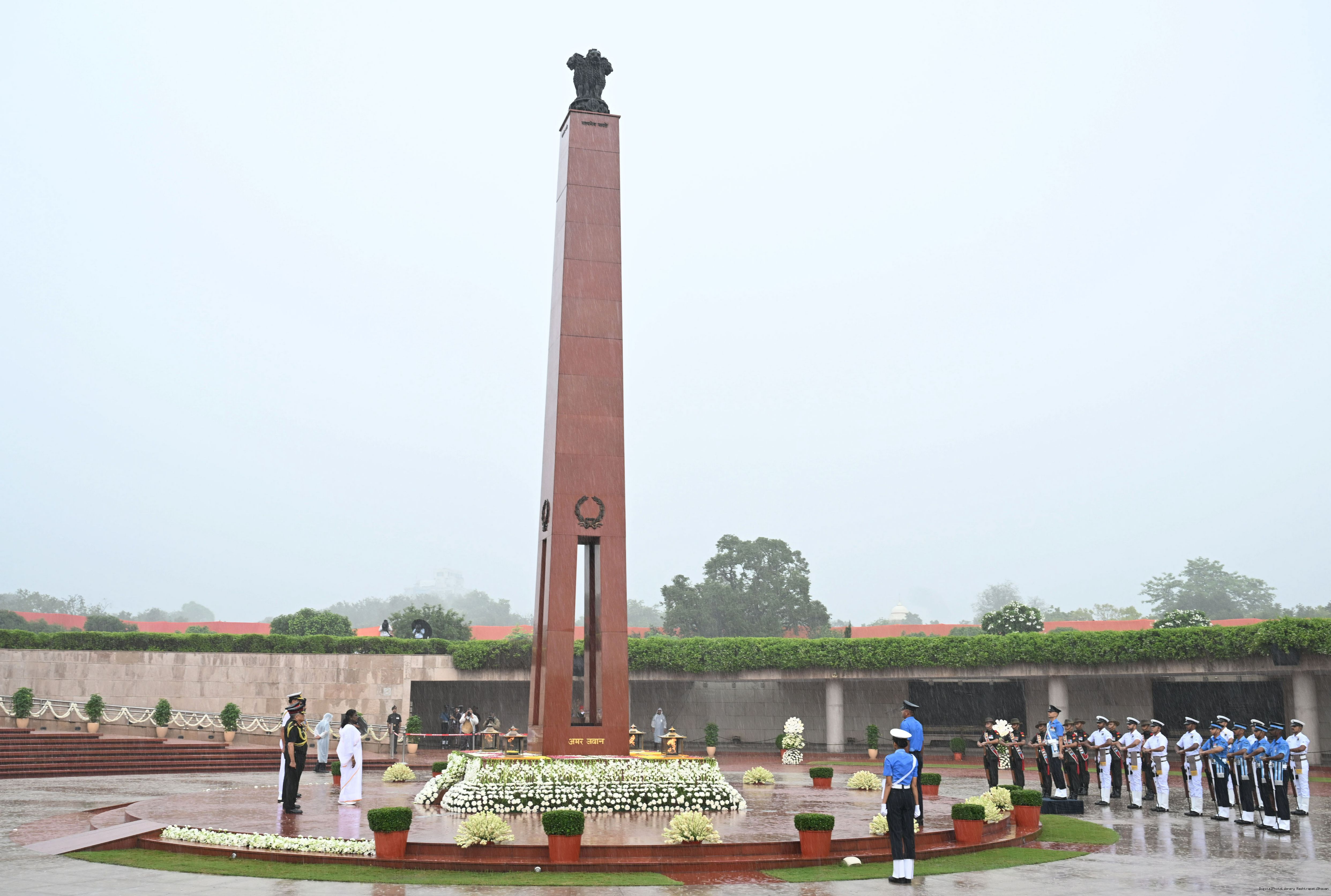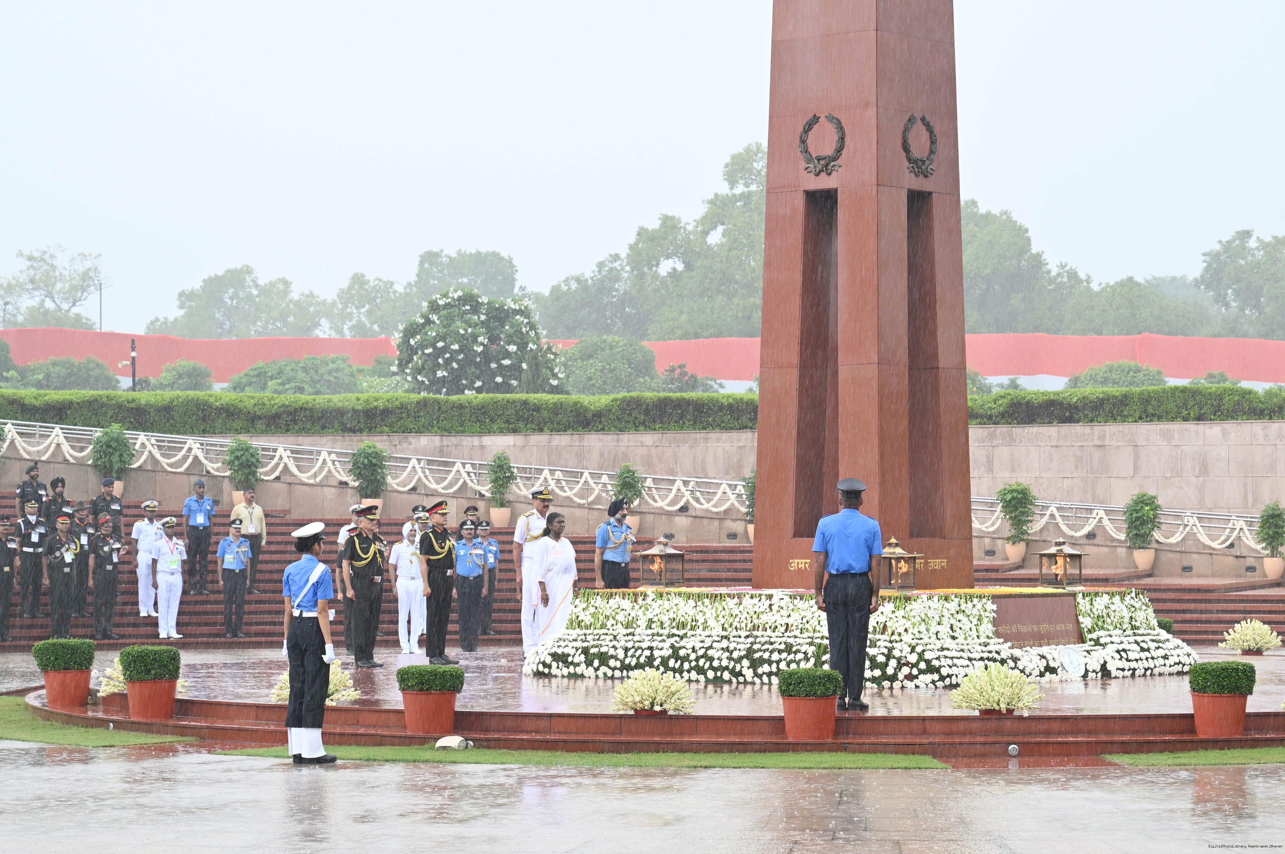 | Caption: | The President of India, Smt. Droupadi wreath laid the National War Memorial and paid homage to the martyrs, on the occasion of 79th Independence Day, in New Delhi on August 15, 2025. |
