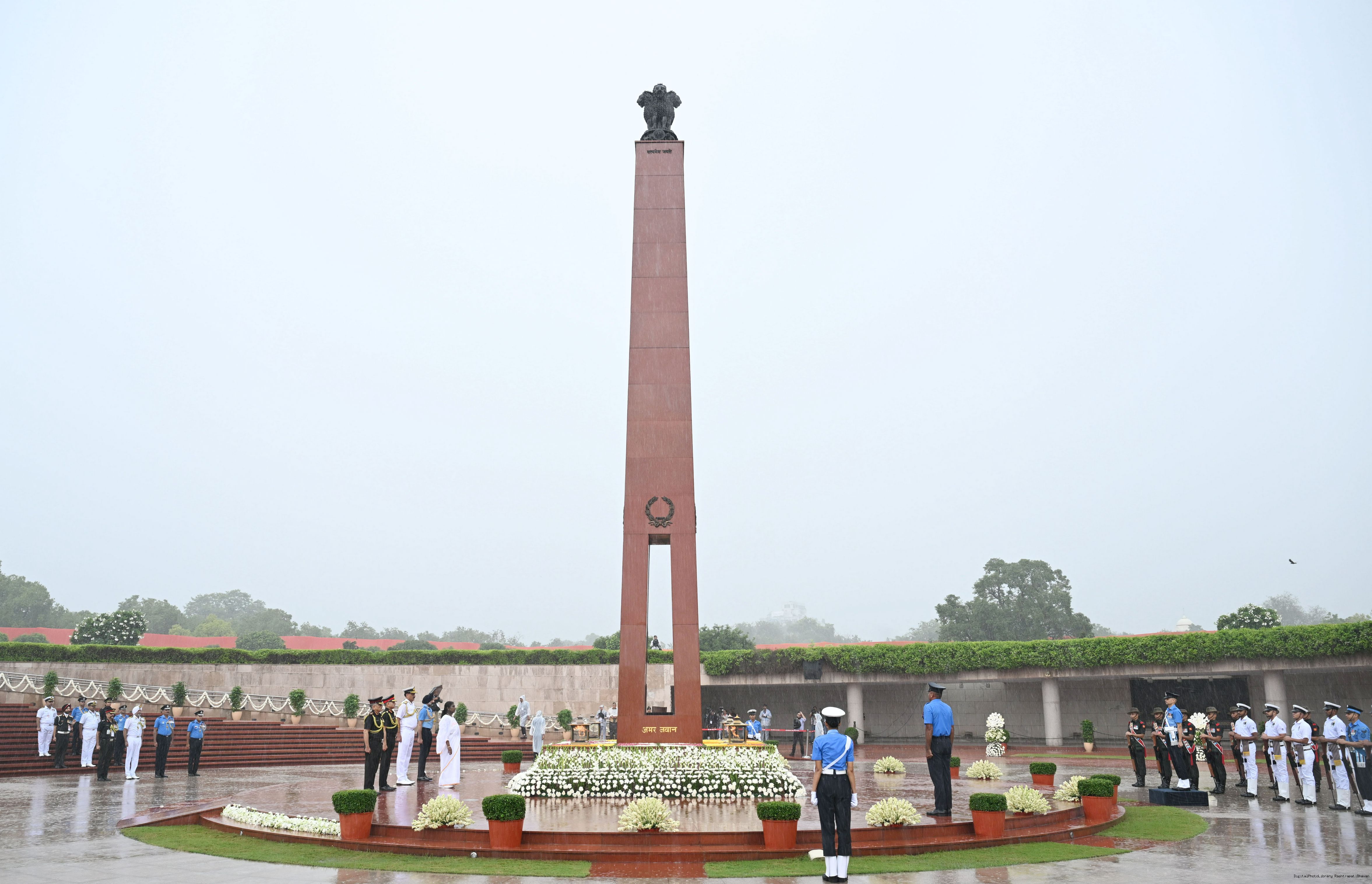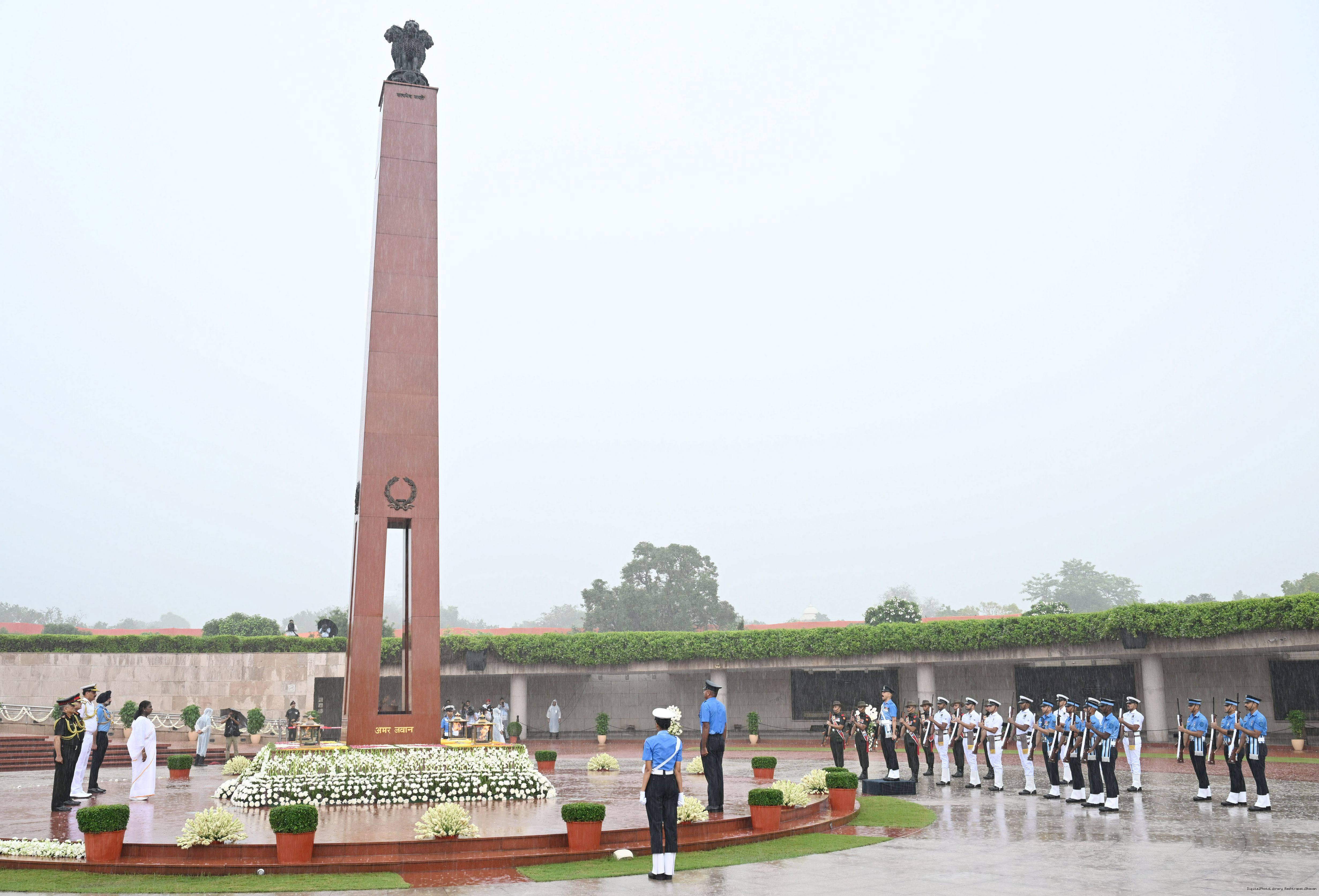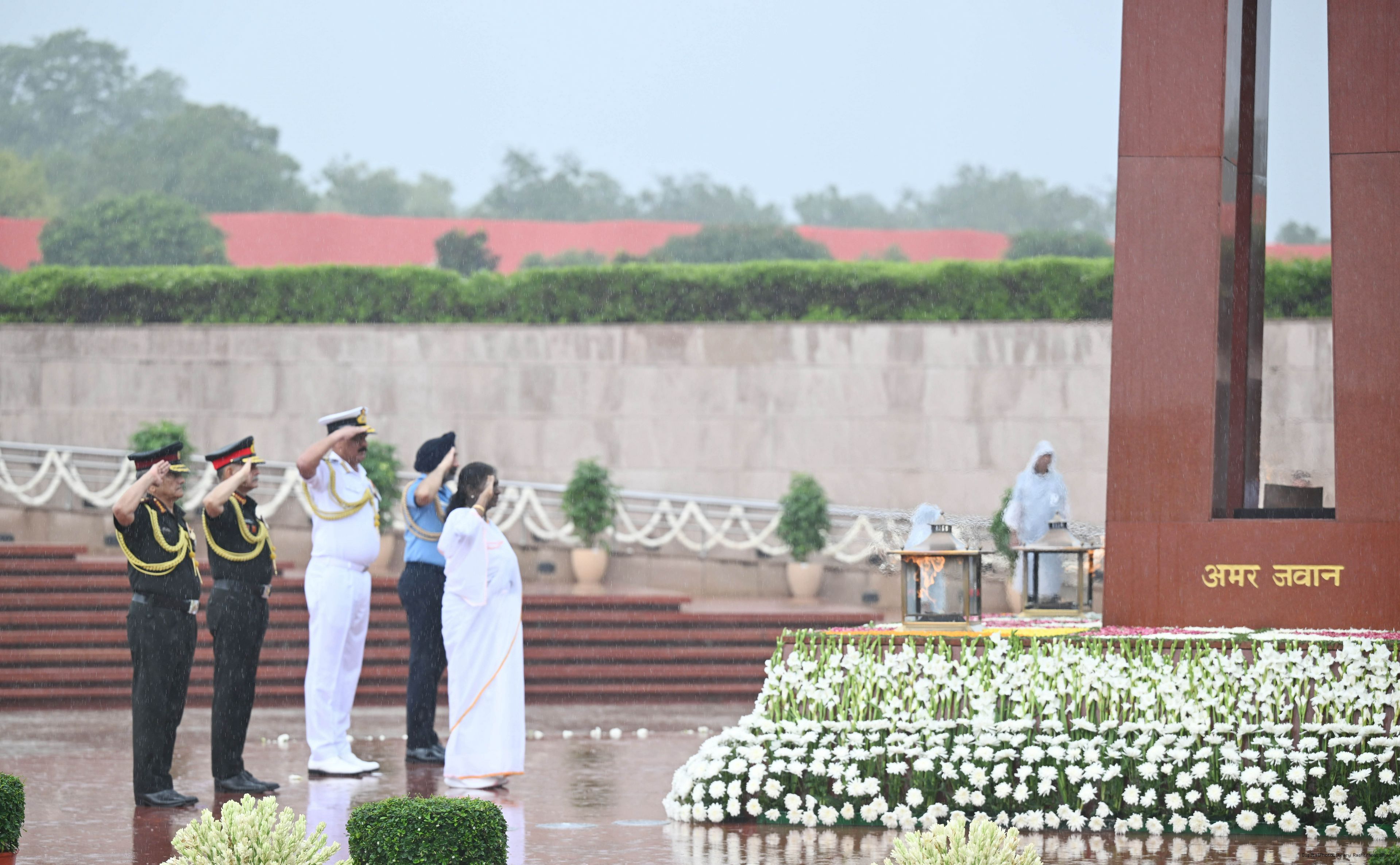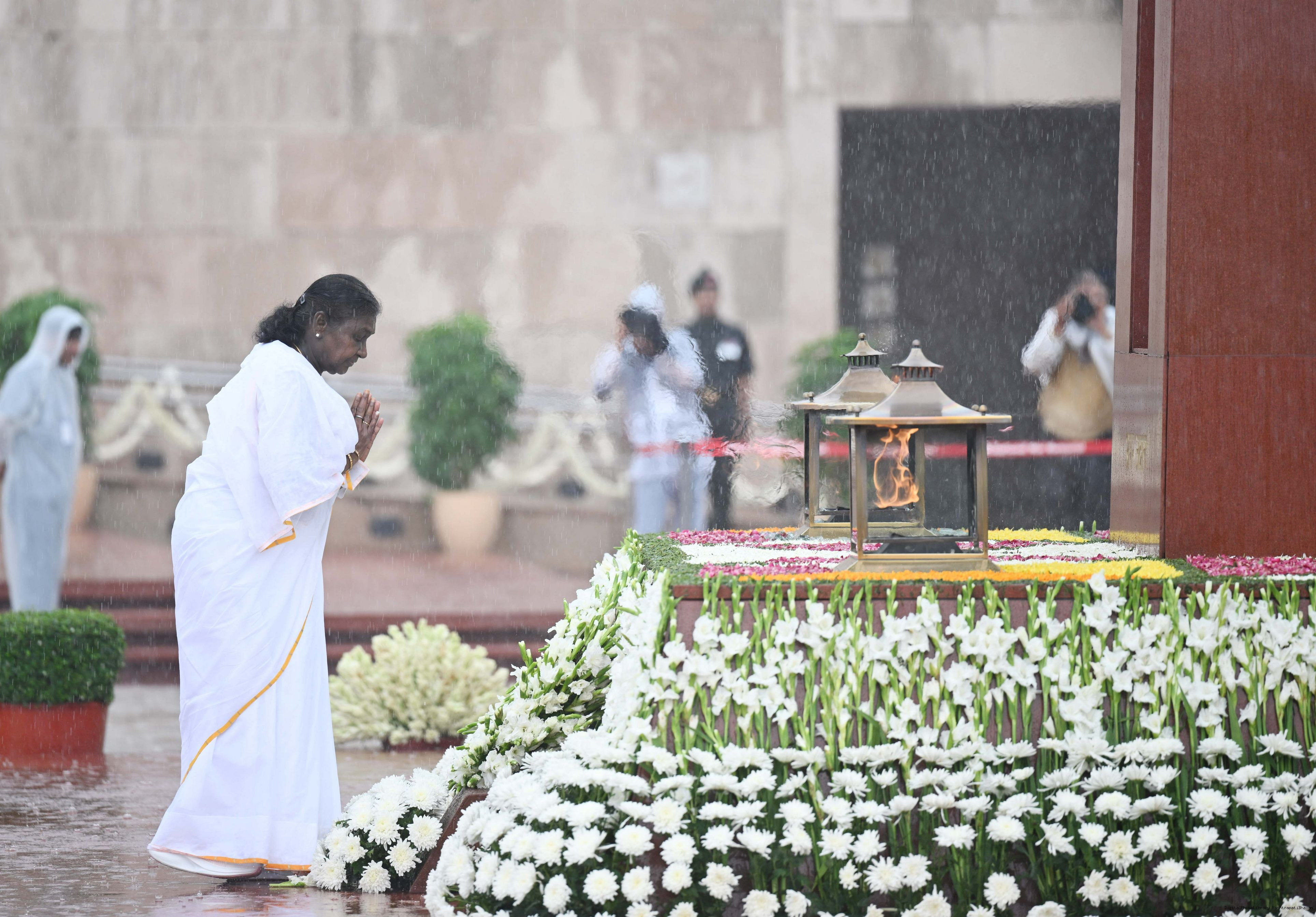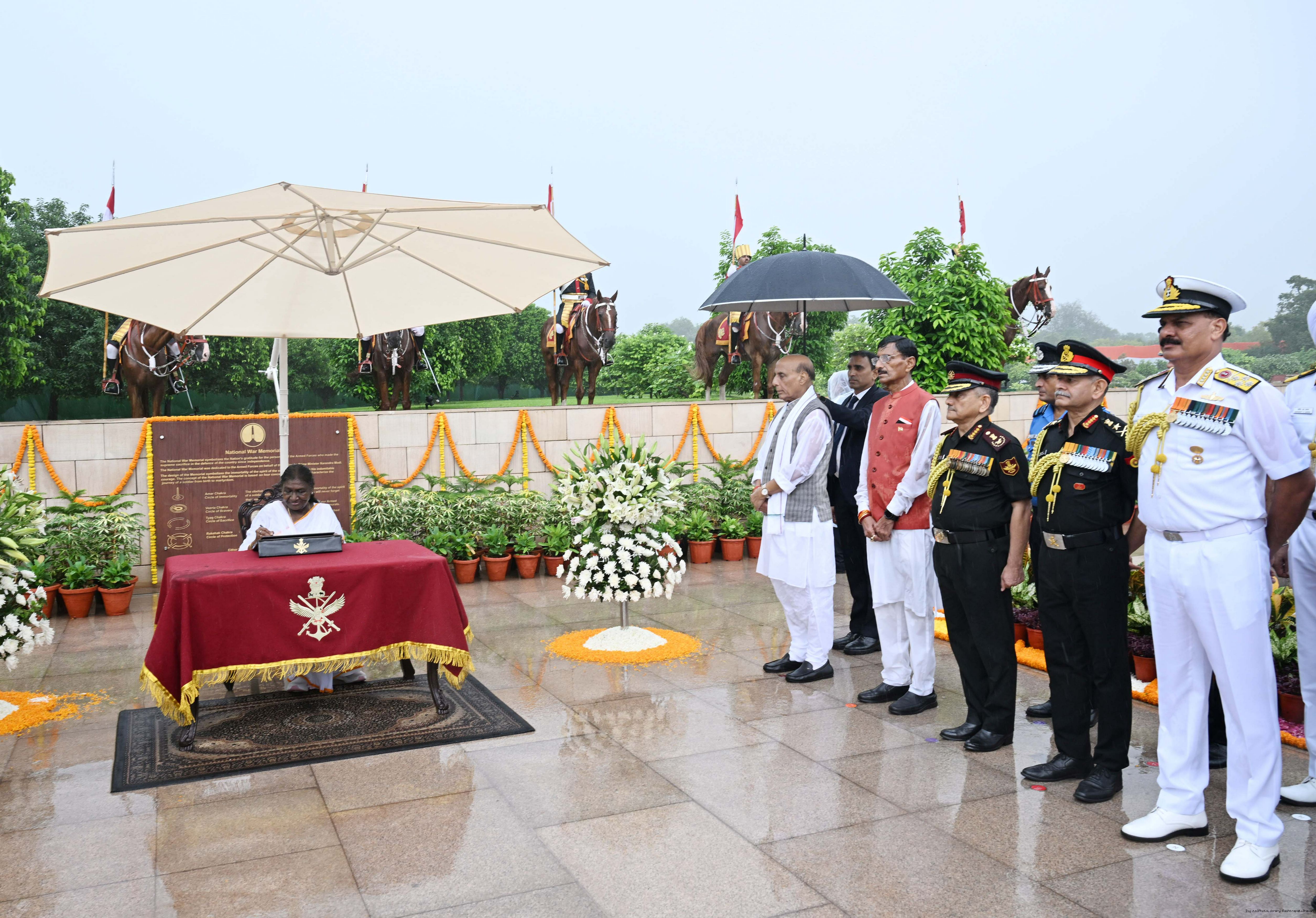 | Caption: | The President of India, Smt. Droupadi wreath laid the National War Memorial and paid homage to the martyrs, on the occasion of 79th Independence Day, in New Delhi on August 15, 2025. |
