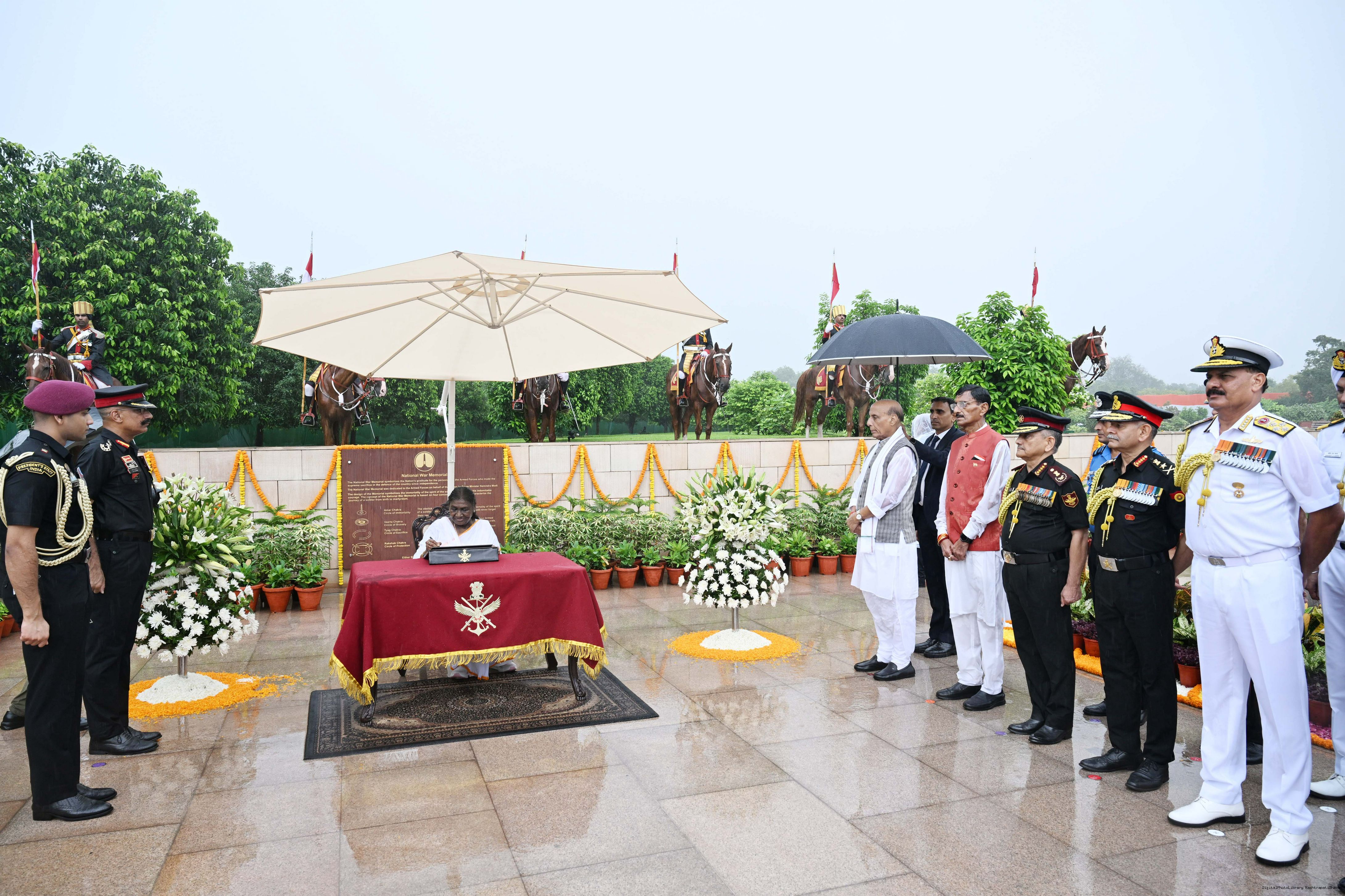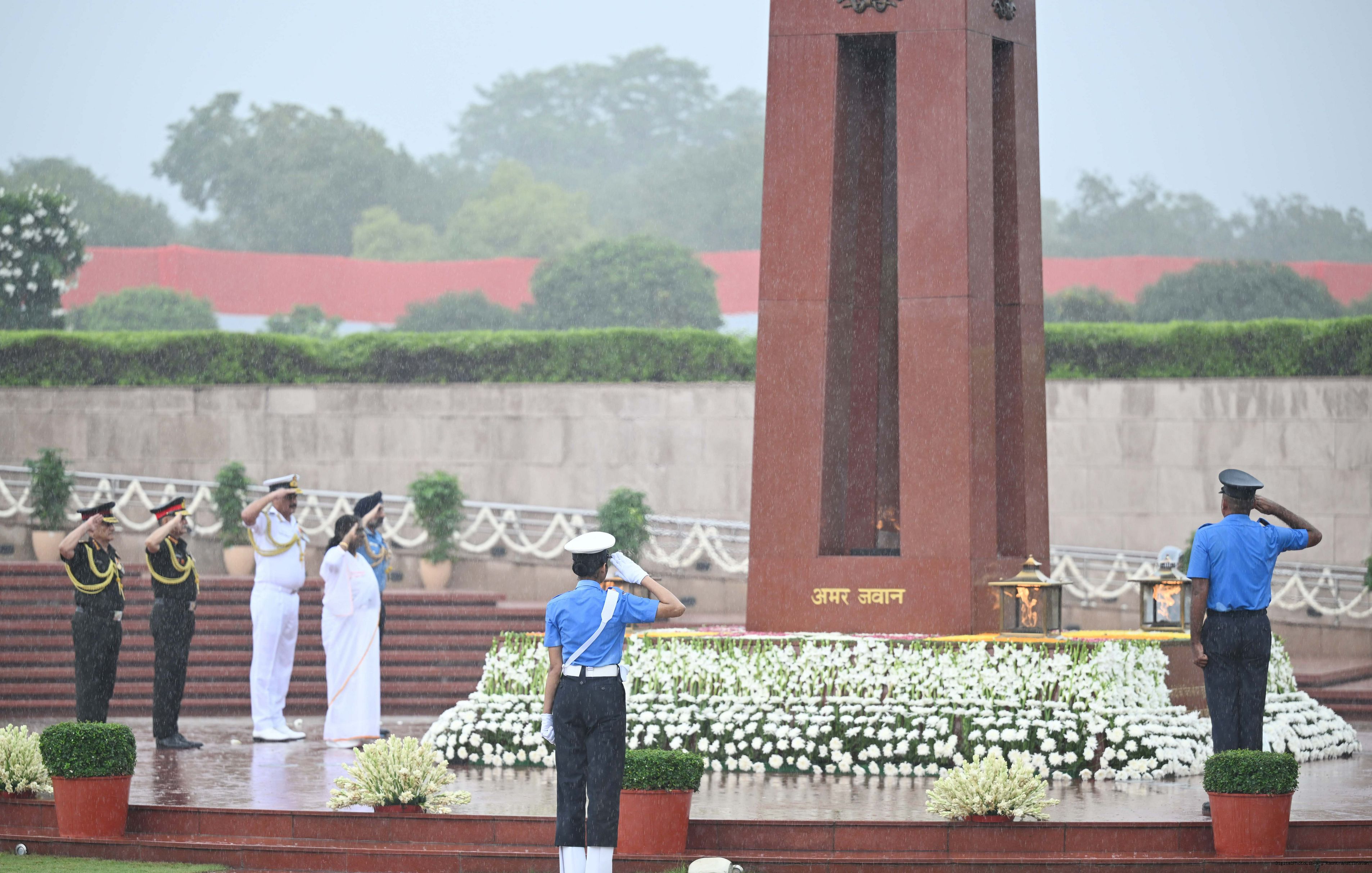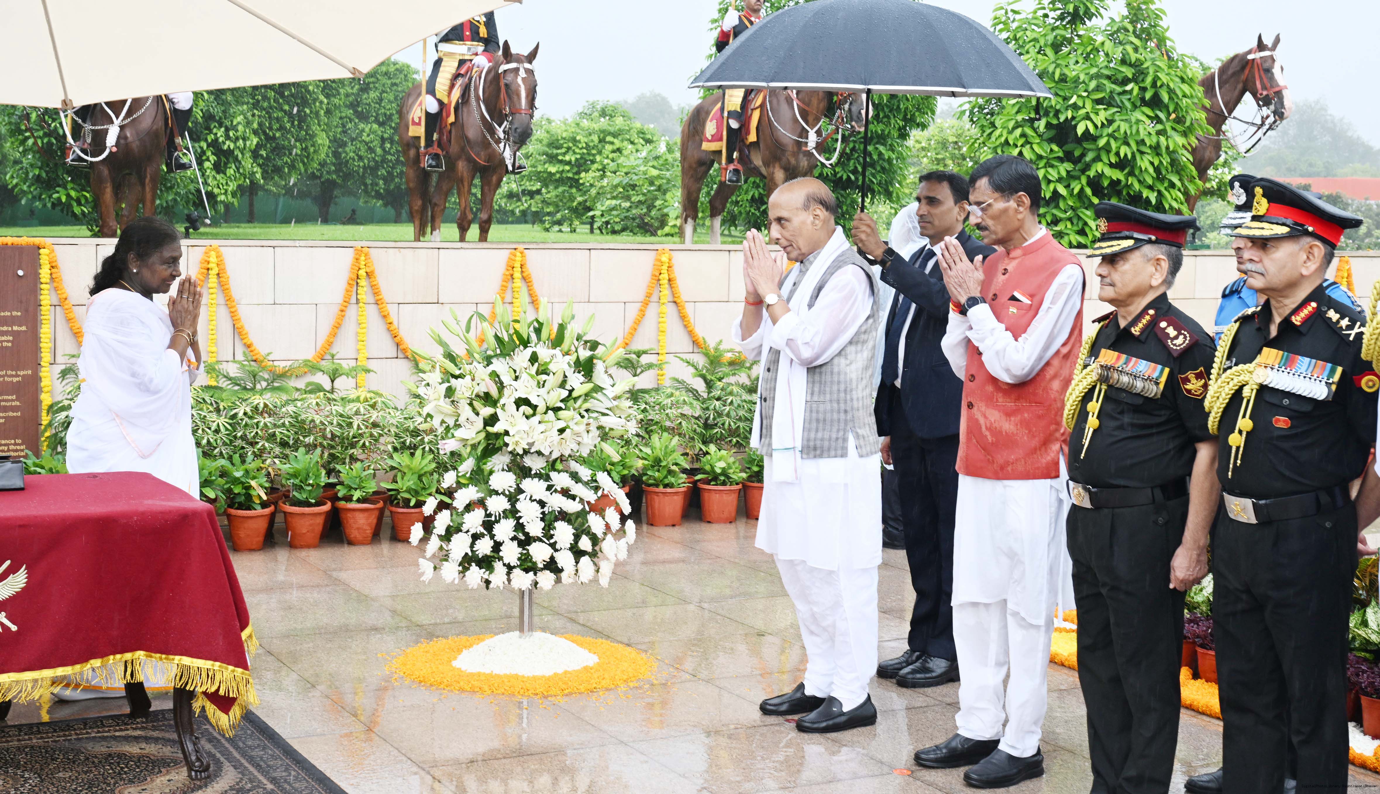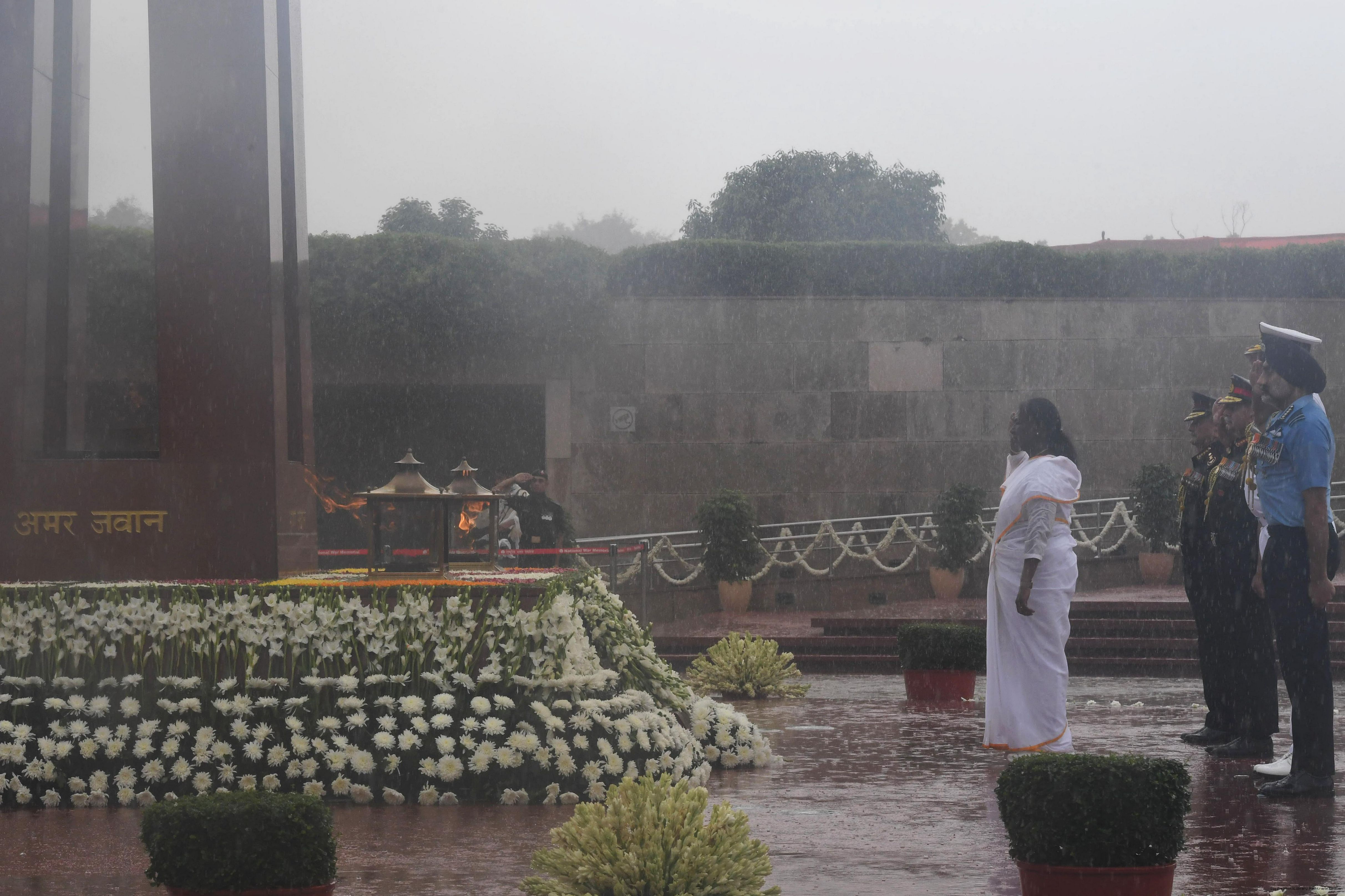 | Caption: | The President of India, Smt. Droupadi wreath laid the National War Memorial and paid homage to the martyrs, on the occasion of 79th Independence Day, in New Delhi on August 15, 2025. |