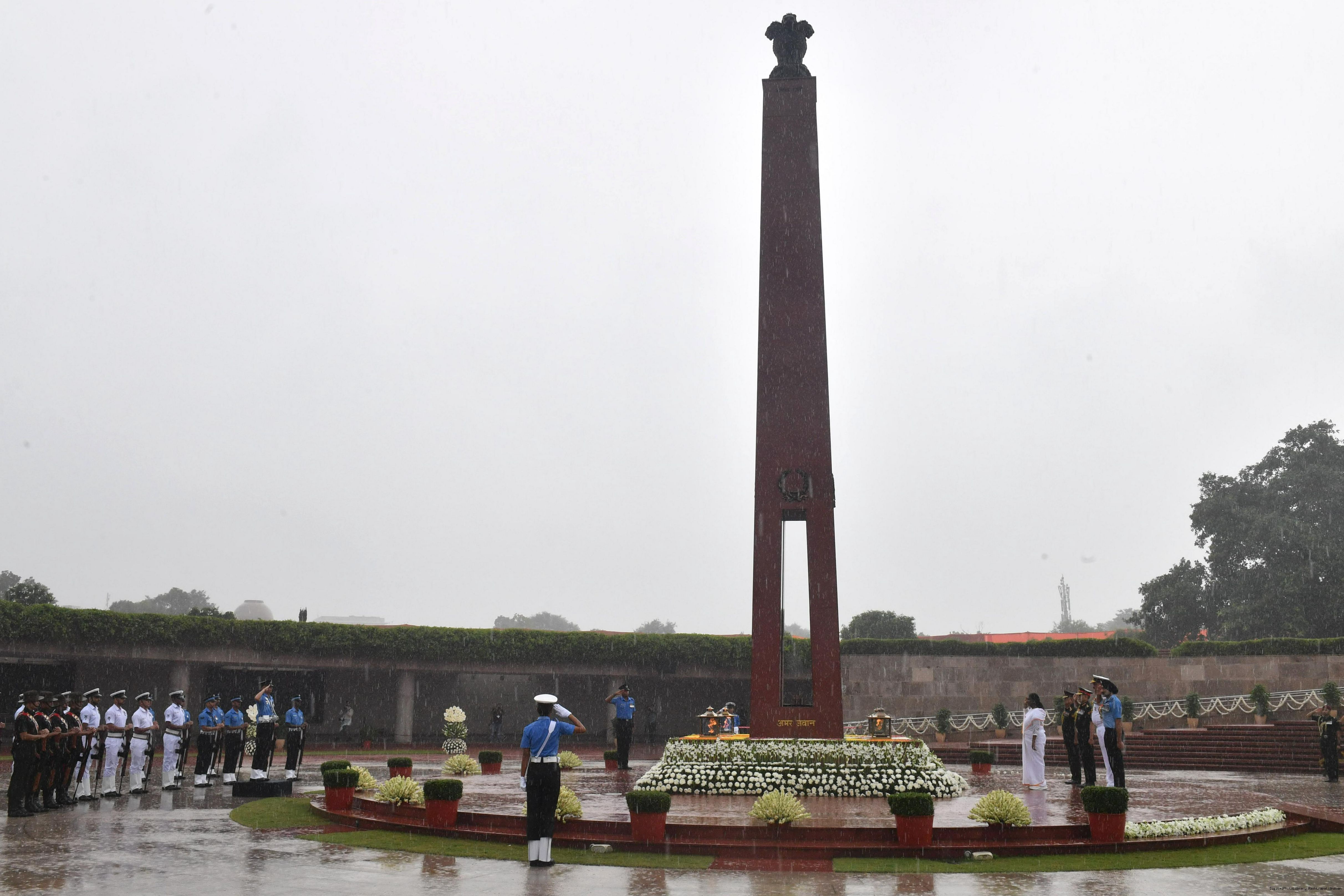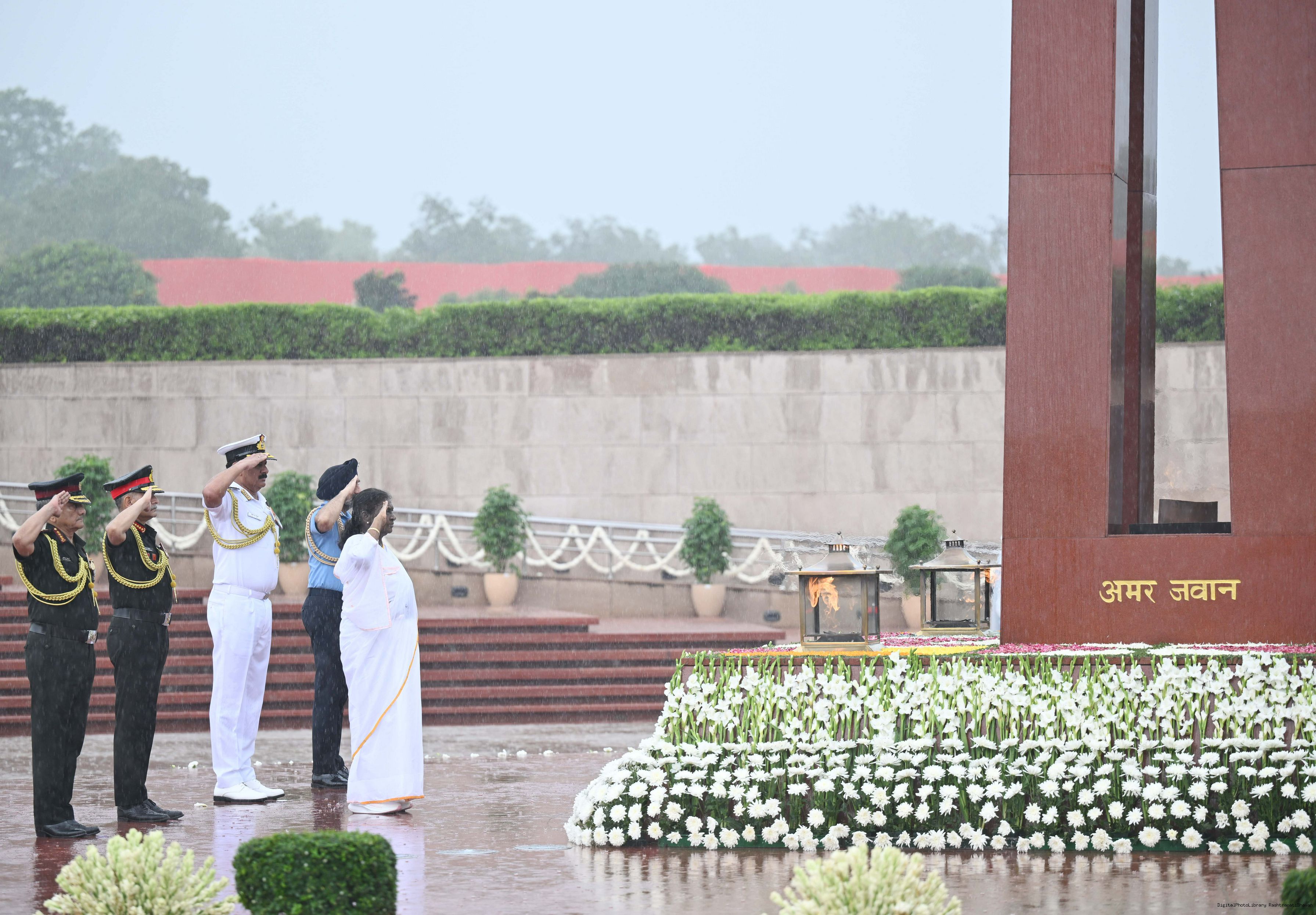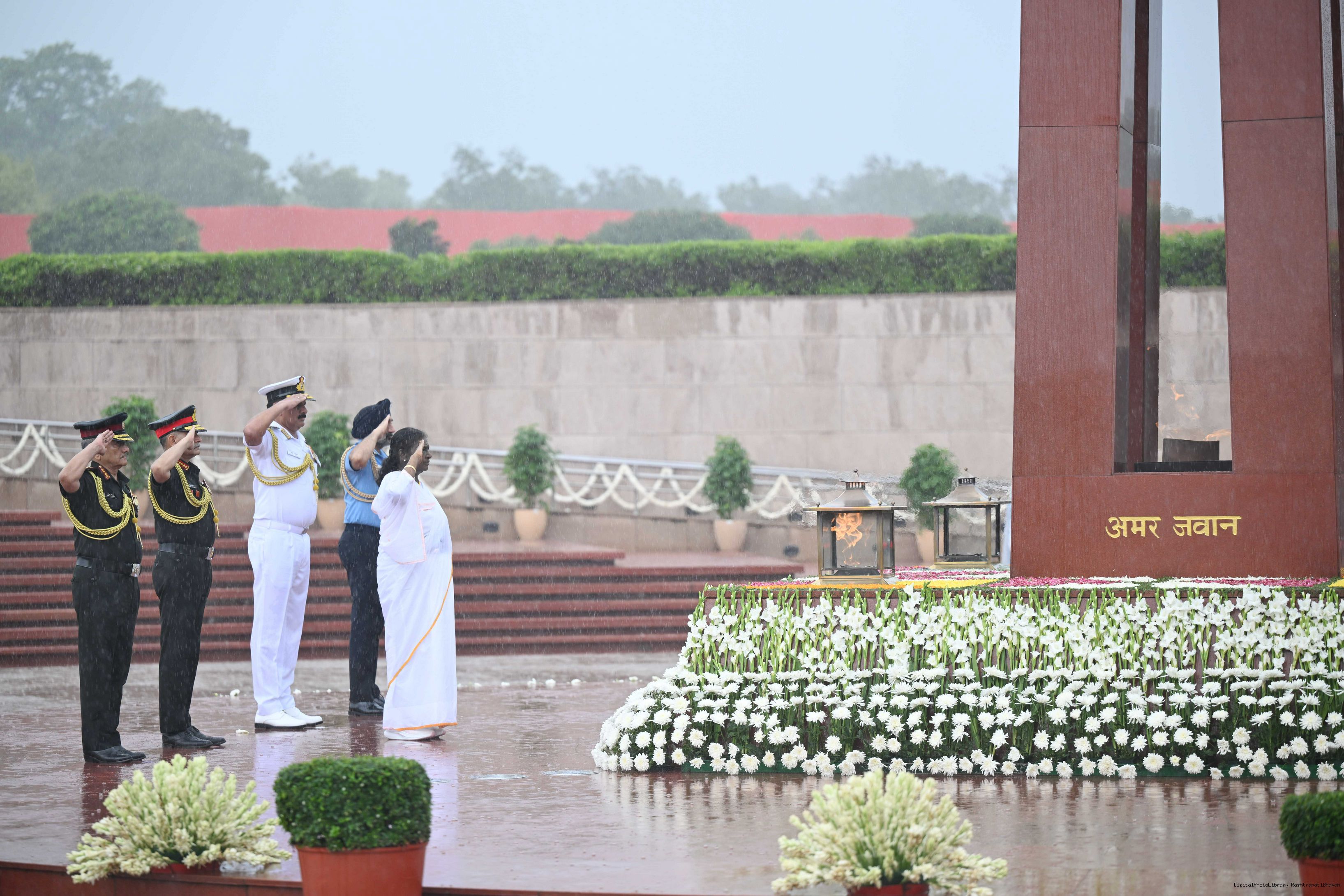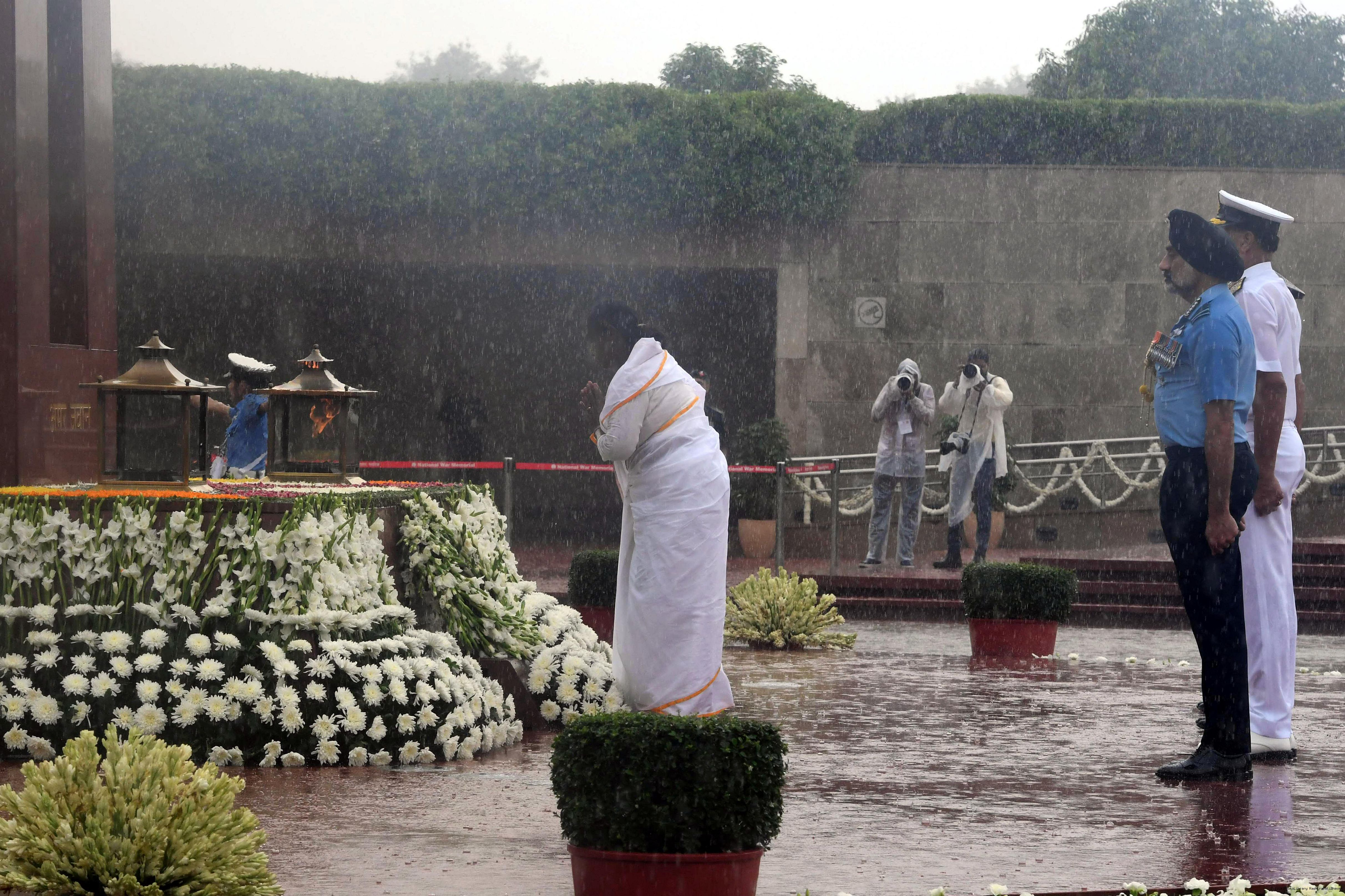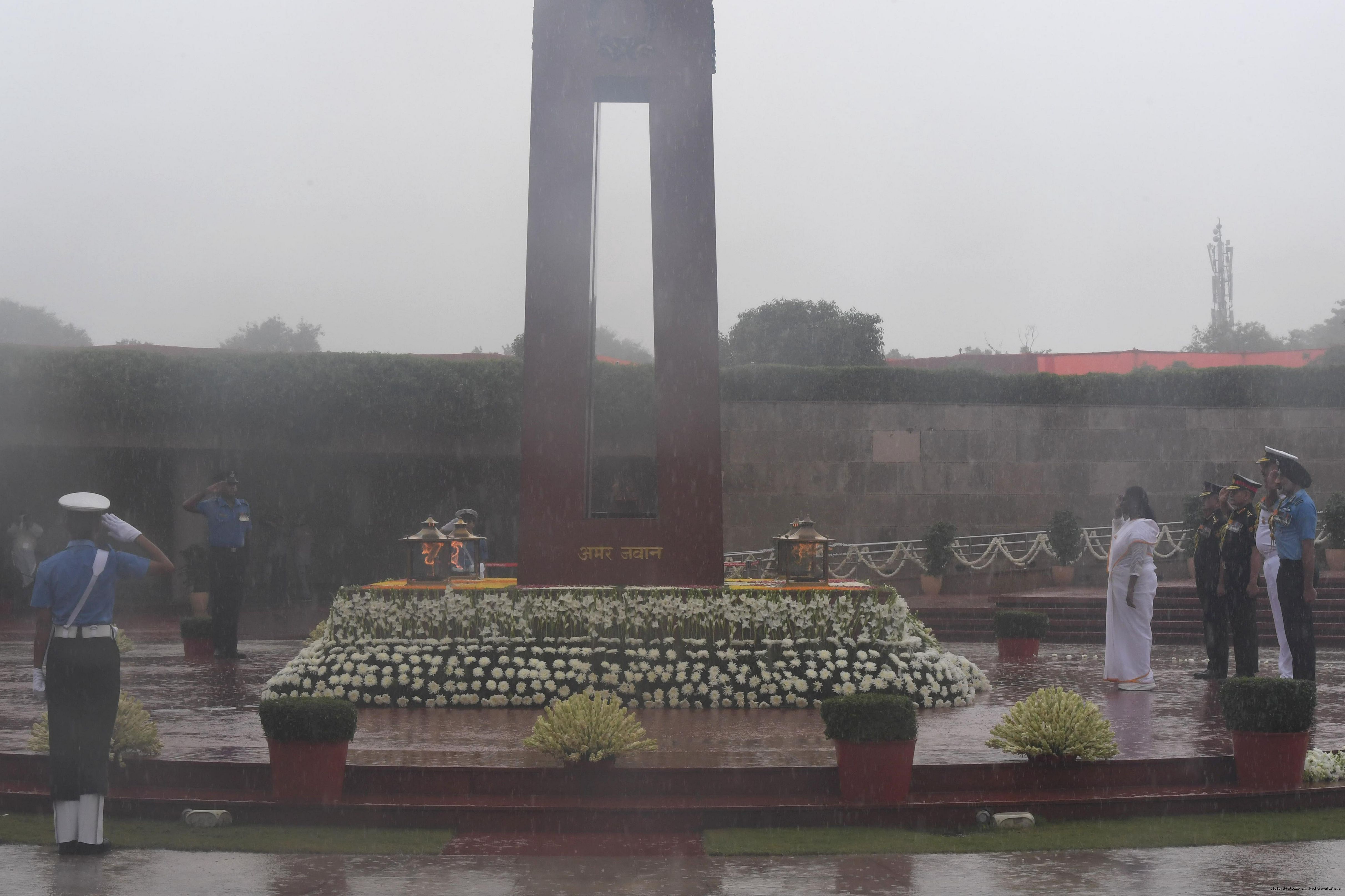 | Caption: | The President of India, Smt. Droupadi wreath laid the National War Memorial and paid homage to the martyrs, on the occasion of 79th Independence Day, in New Delhi on August 15, 2025. |