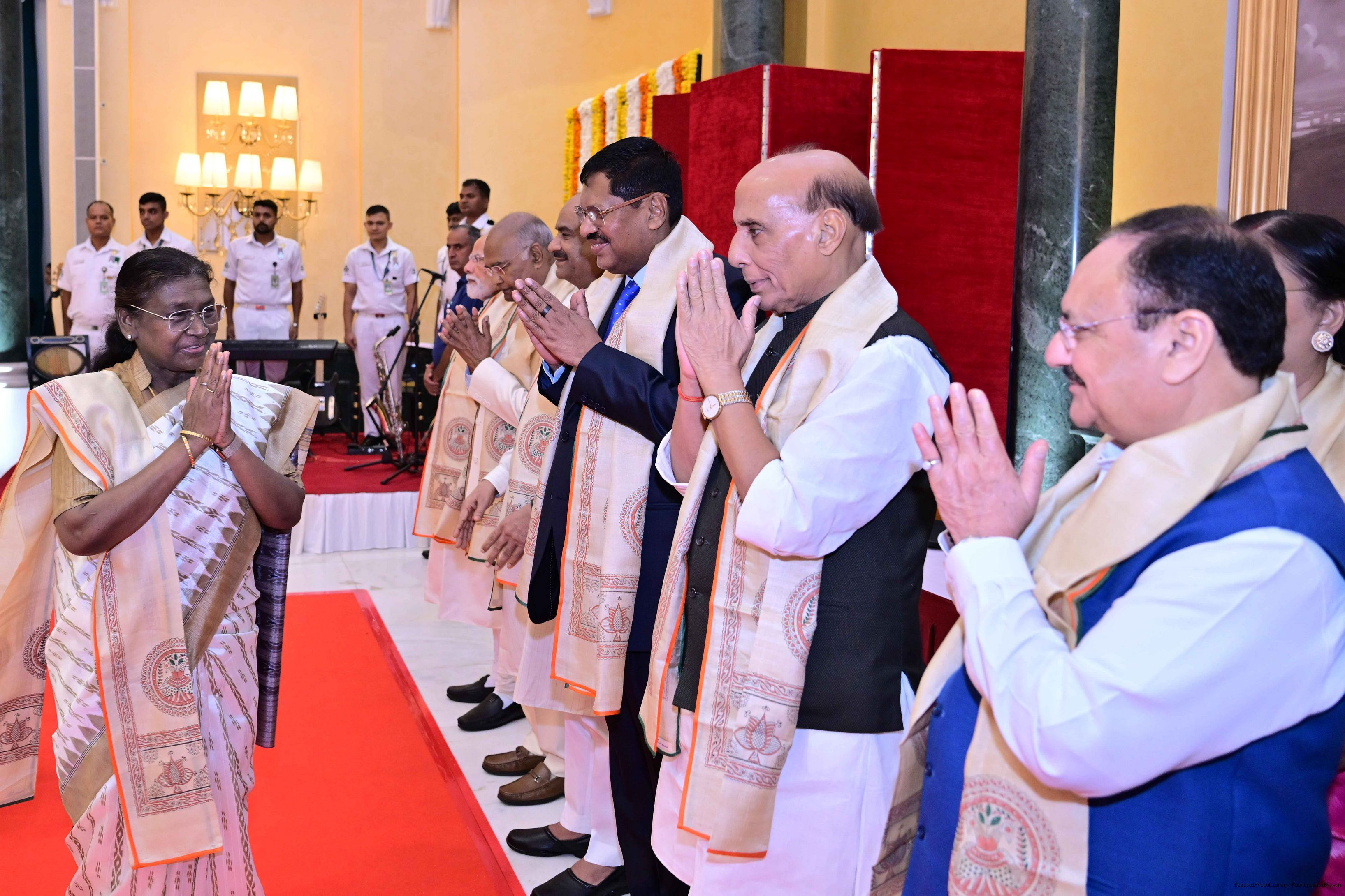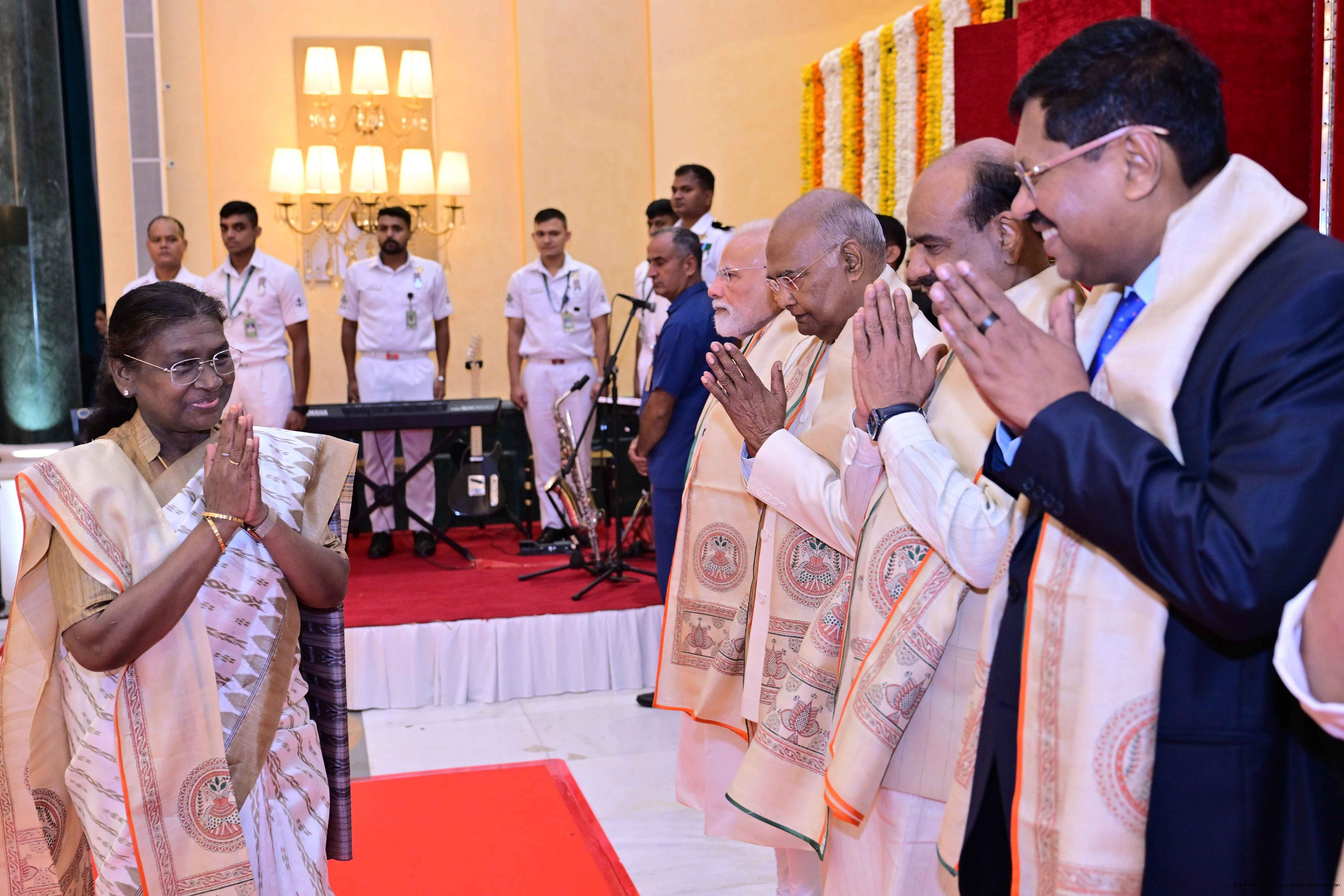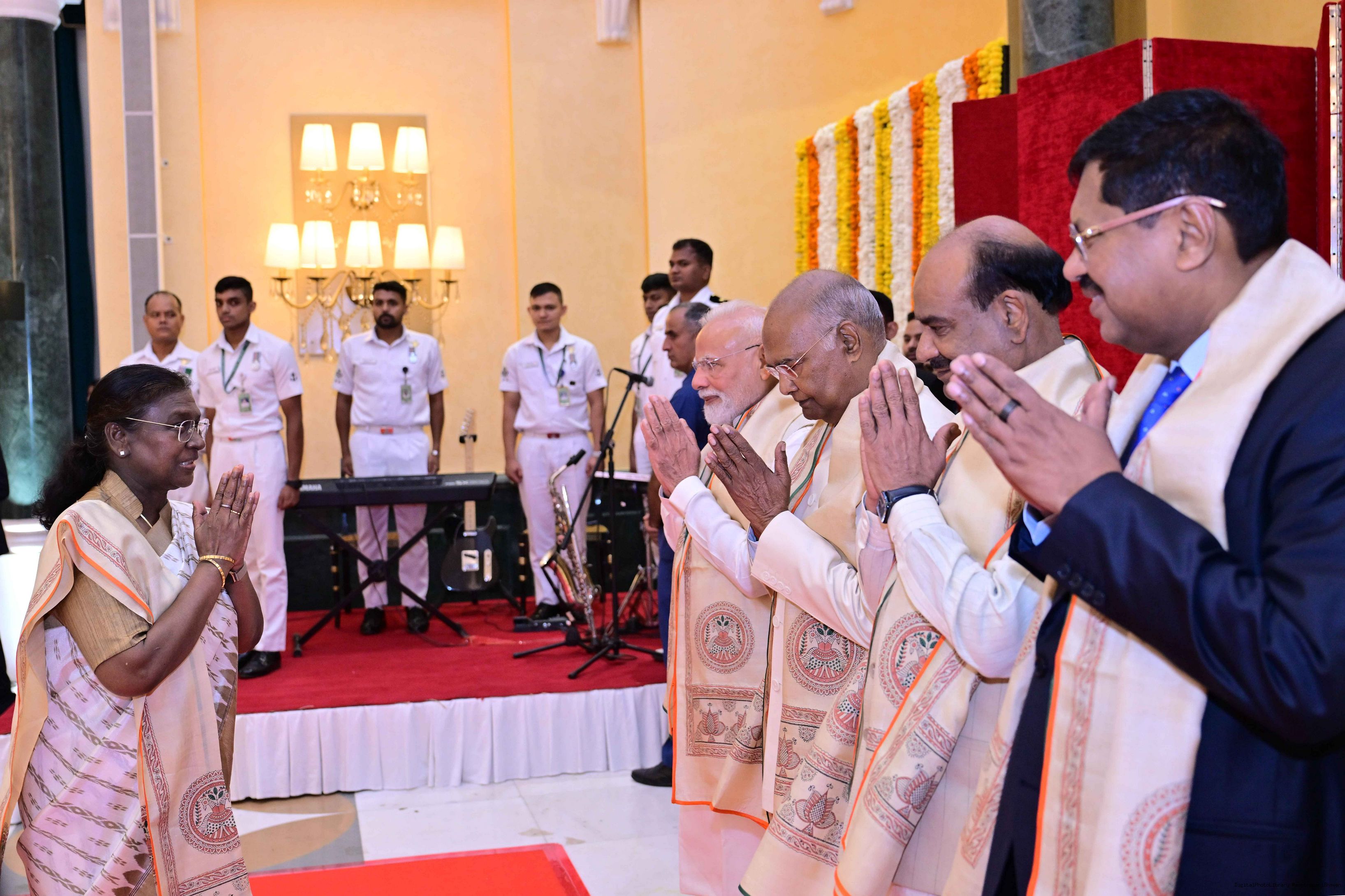 | Caption: | The President of India, Smt Droupadi Murmu hosting 'At Home' Reception on the occasion of 79nd Independence Day, at Rashtrapati Bhavan Cultural Centre on August 15, 2025. |