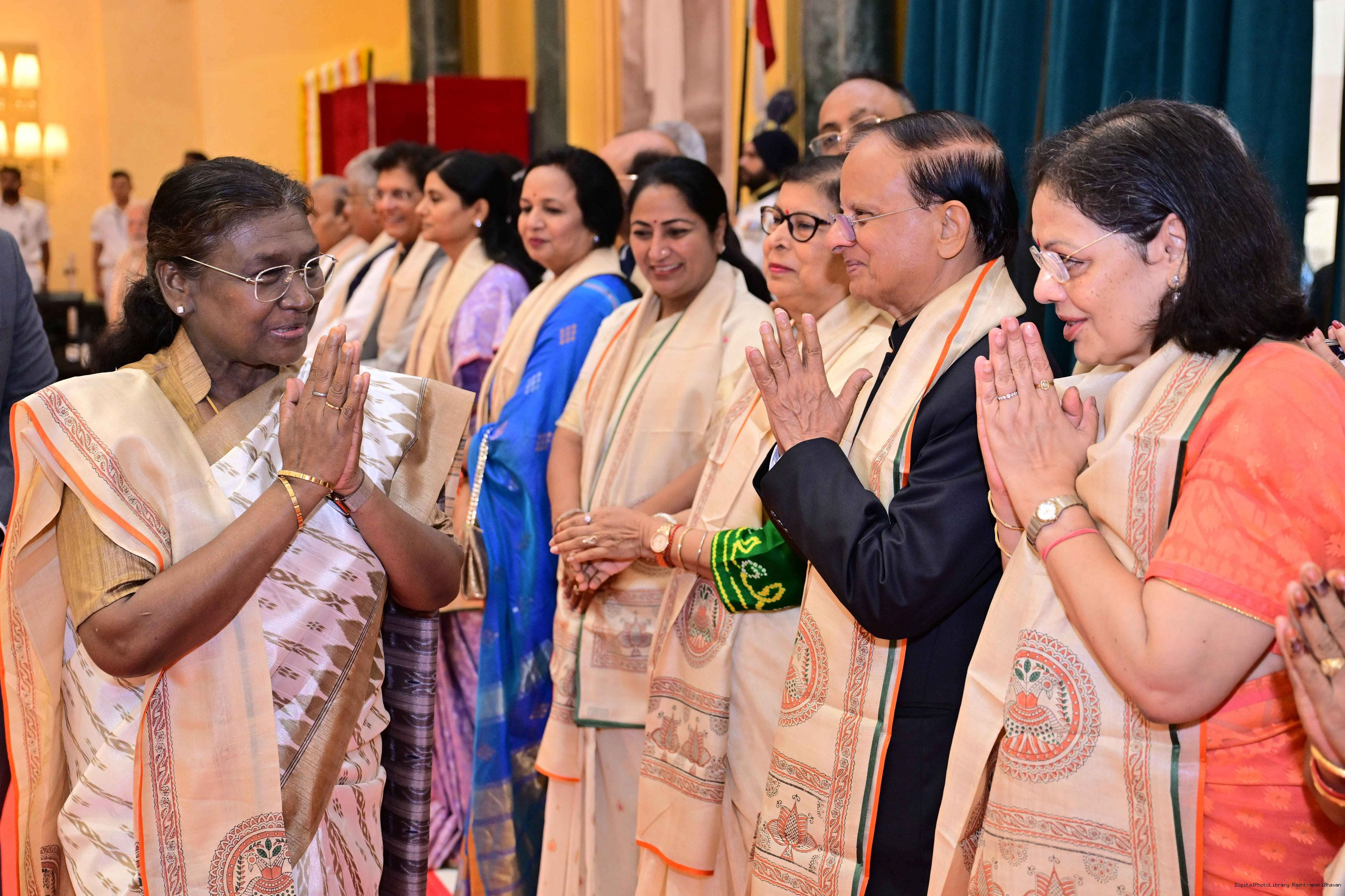 | Caption: | The President of India, Smt Droupadi Murmu hosting 'At Home' Reception on the occasion of 79nd Independence Day, at Rashtrapati Bhavan Cultural Centre on August 15, 2025. |