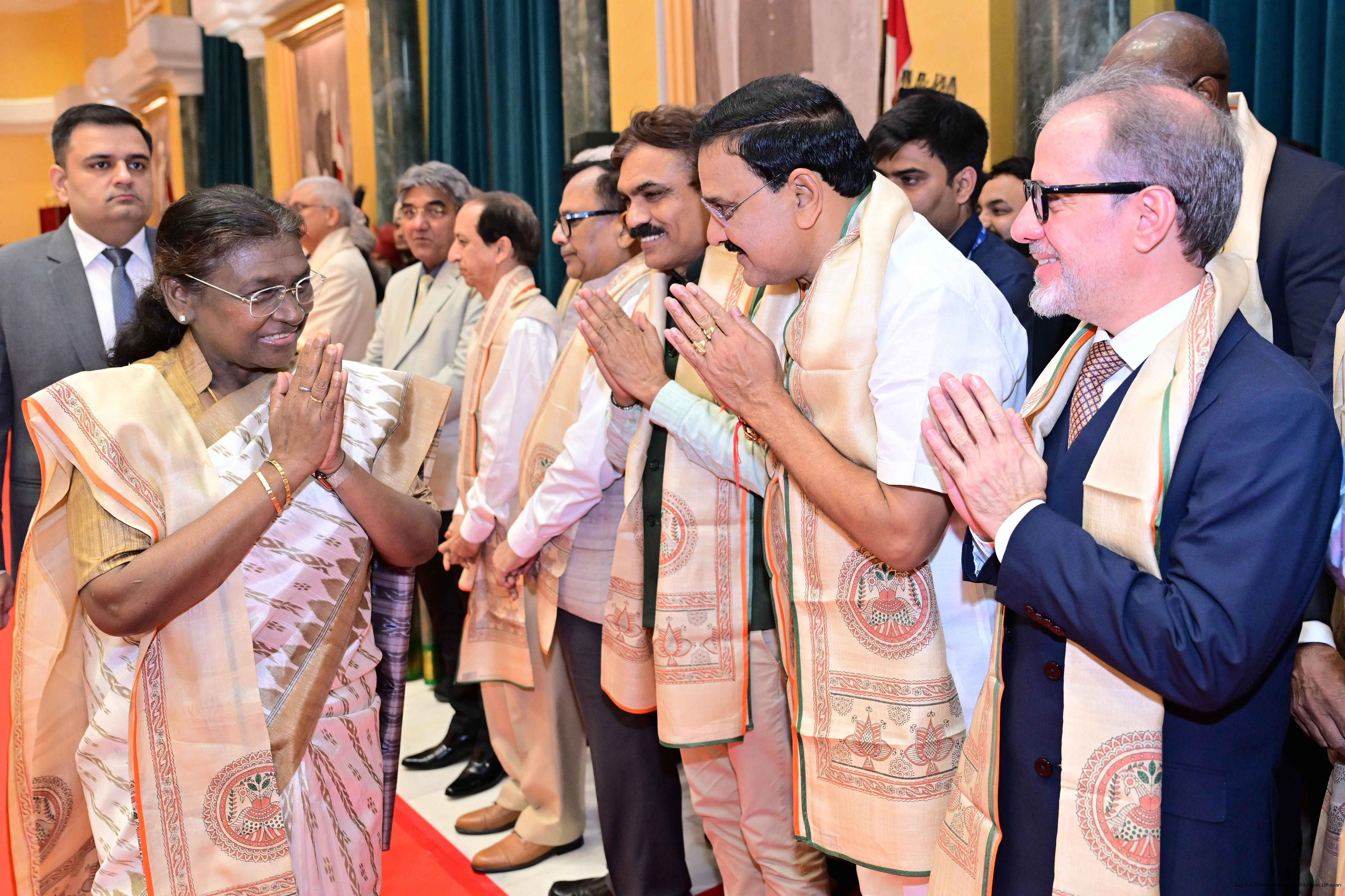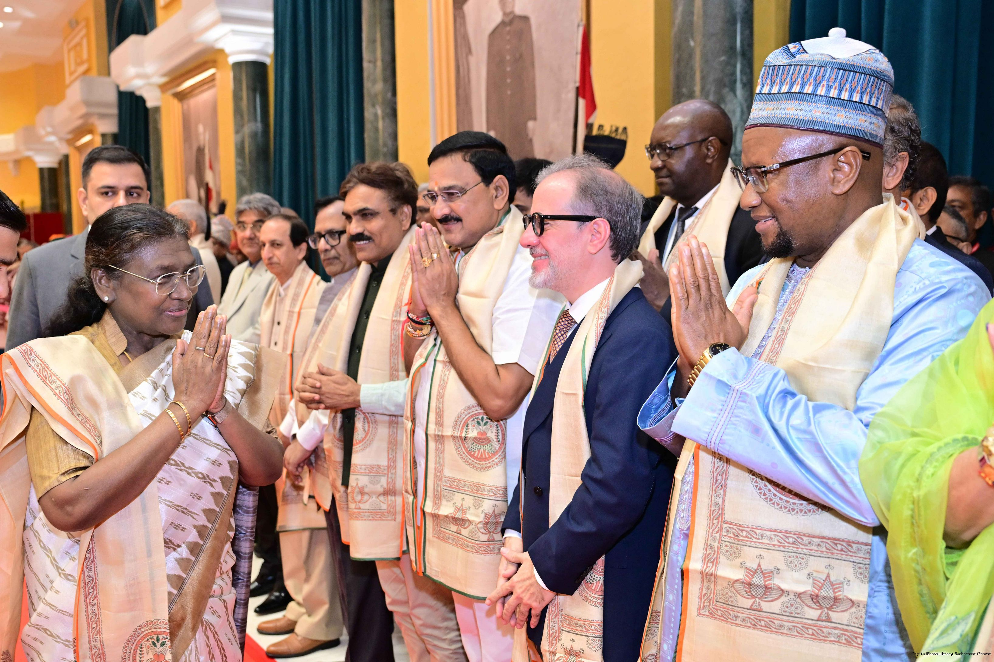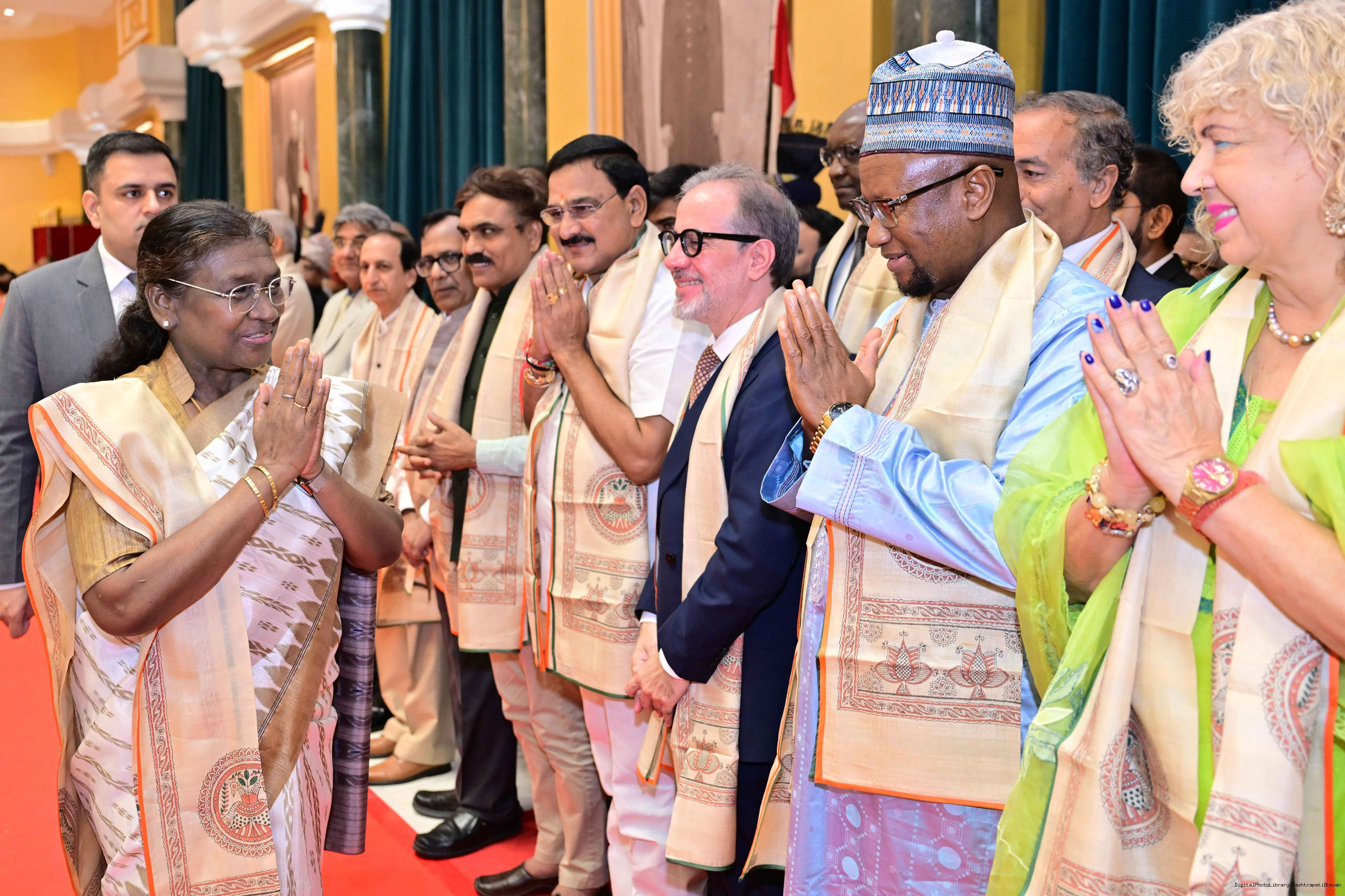 | Caption: | The President of India, Smt Droupadi Murmu hosting 'At Home' Reception on the occasion of 79nd Independence Day, at Rashtrapati Bhavan Cultural Centre on August 15, 2025. |