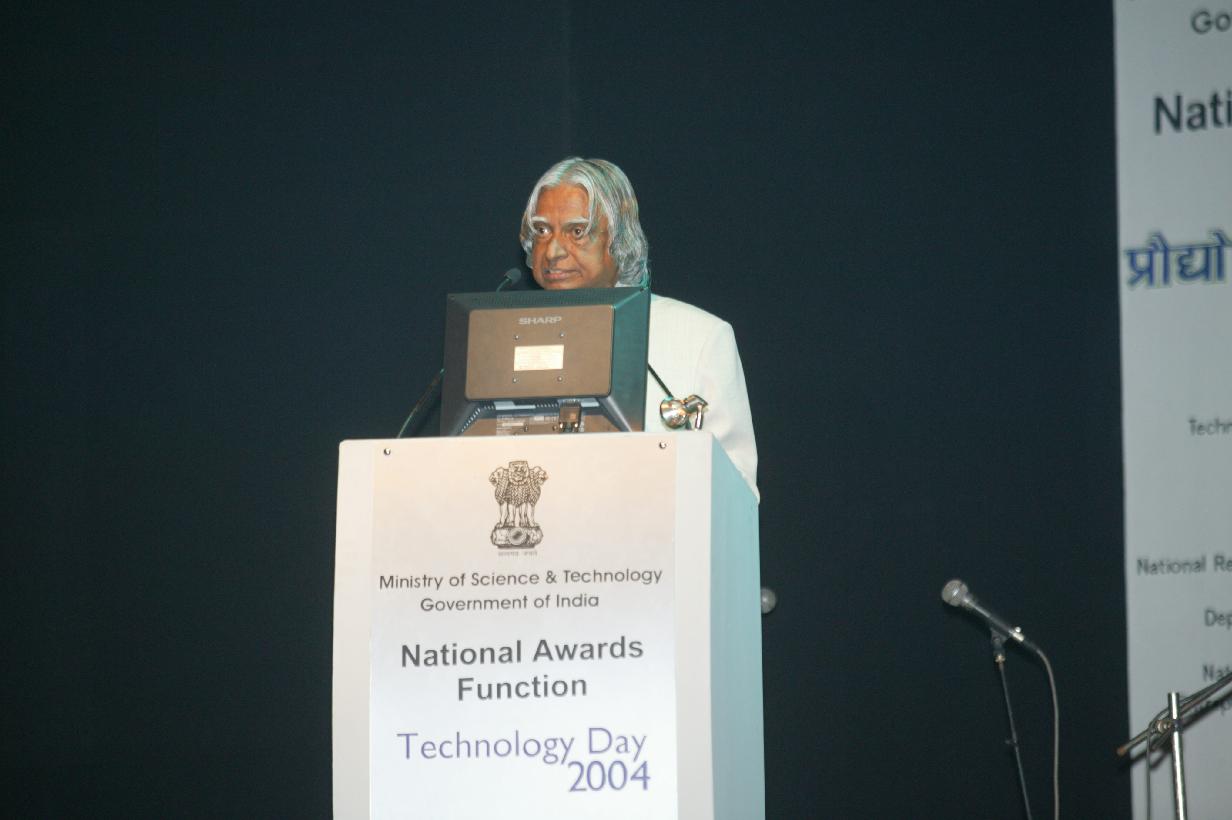 | Caption: | The President of India, Dr A P J Abdul Kalam participating in the Technology Day Awards Function at Pragati Maidan in New Delhi on June 30, 2004 |