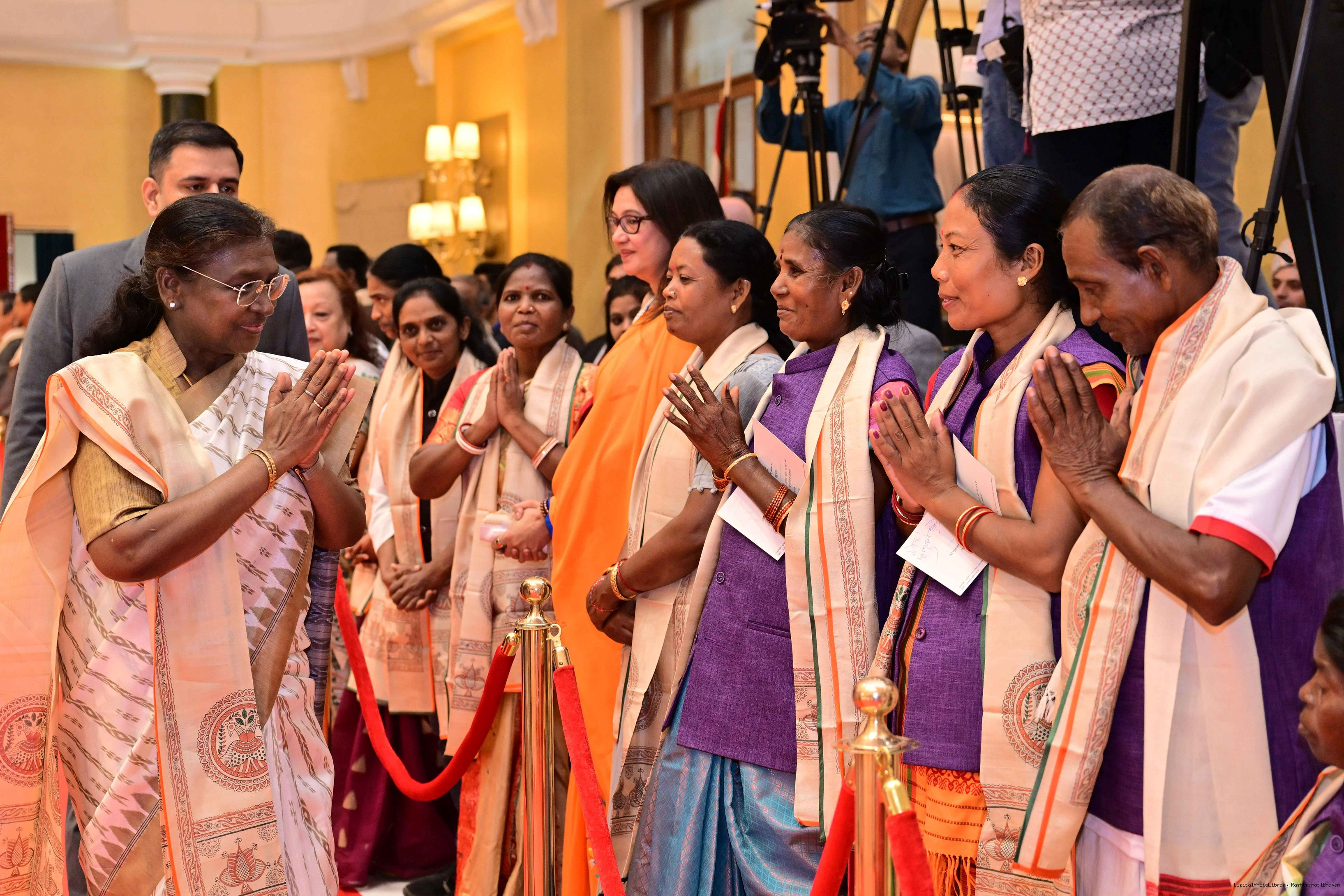 | Caption: | The President of India, Smt Droupadi Murmu hosting 'At Home' Reception on the occasion of 79nd Independence Day, at Rashtrapati Bhavan Cultural Centre on August 15, 2025. |