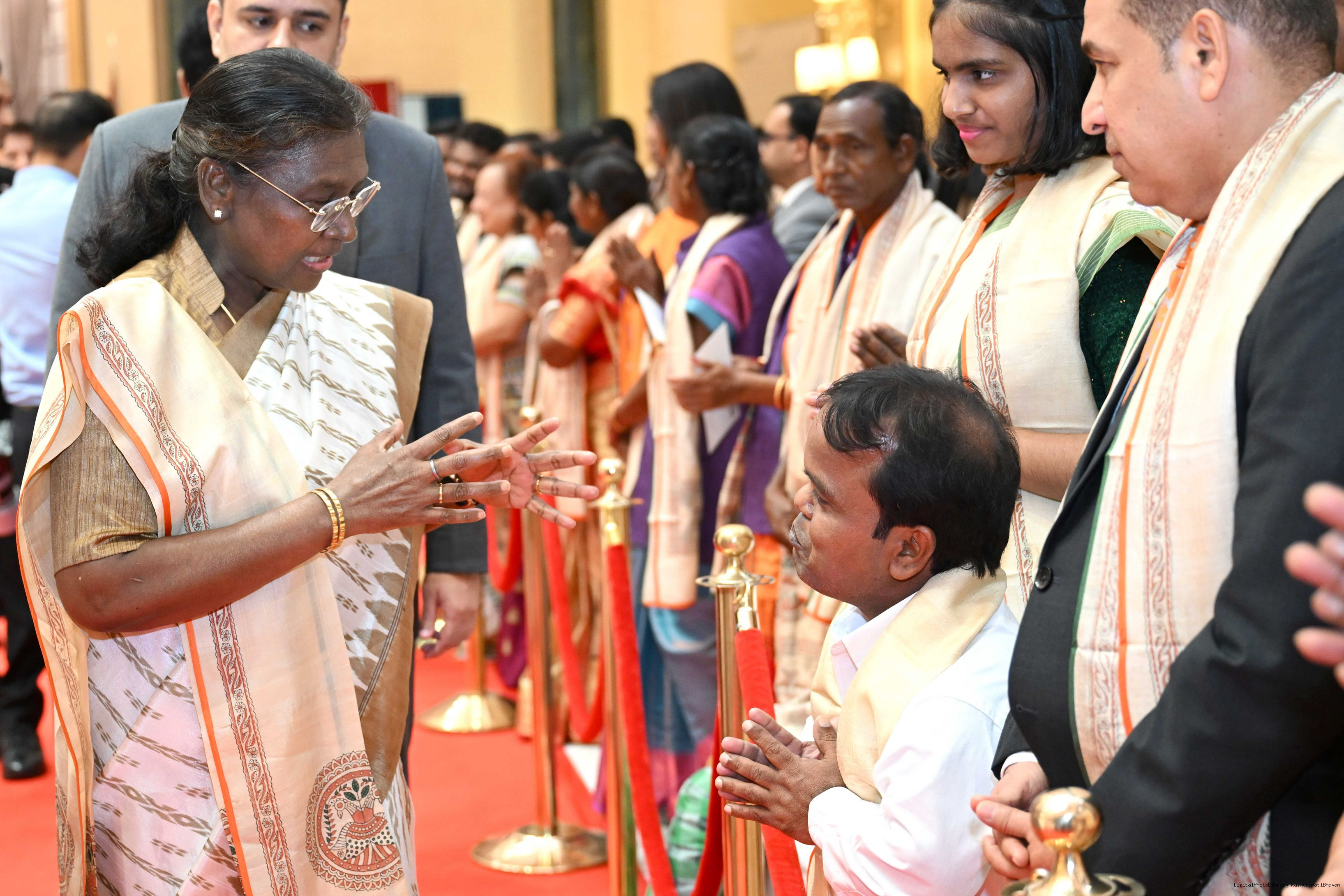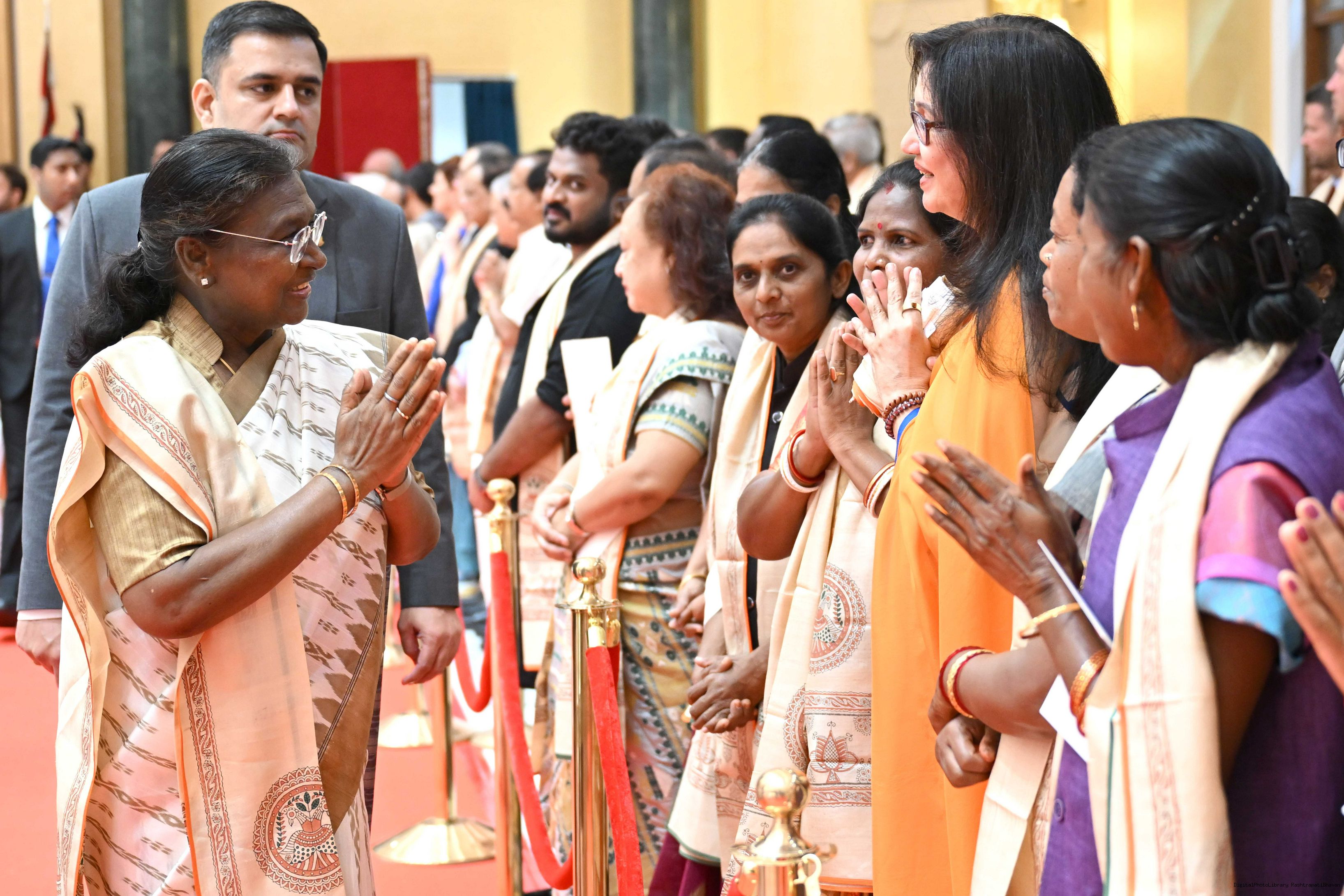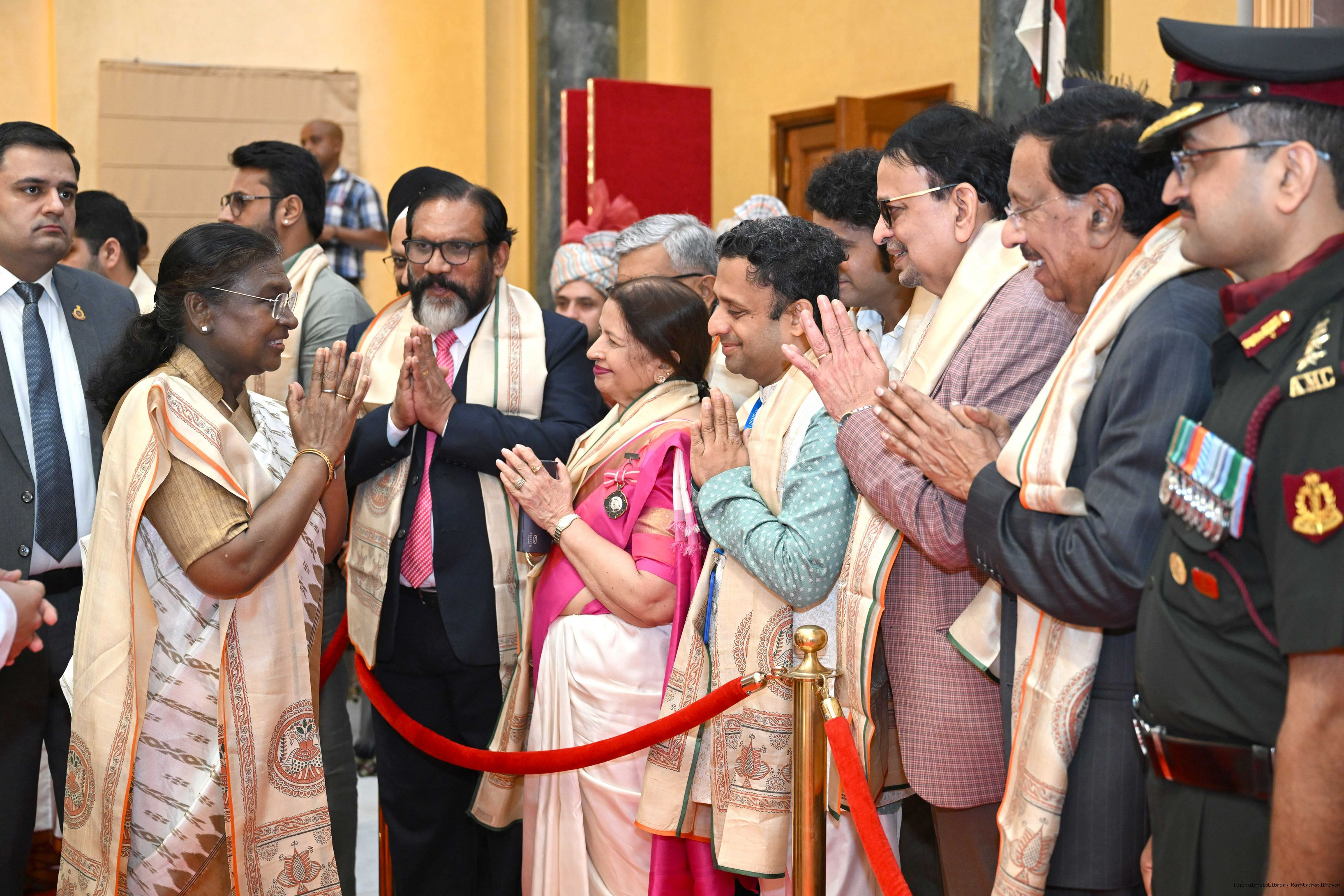 | Caption: | The President of India, Smt Droupadi Murmu hosting 'At Home' Reception on the occasion of 79nd Independence Day, at Rashtrapati Bhavan Cultural Centre on August 15, 2025. |