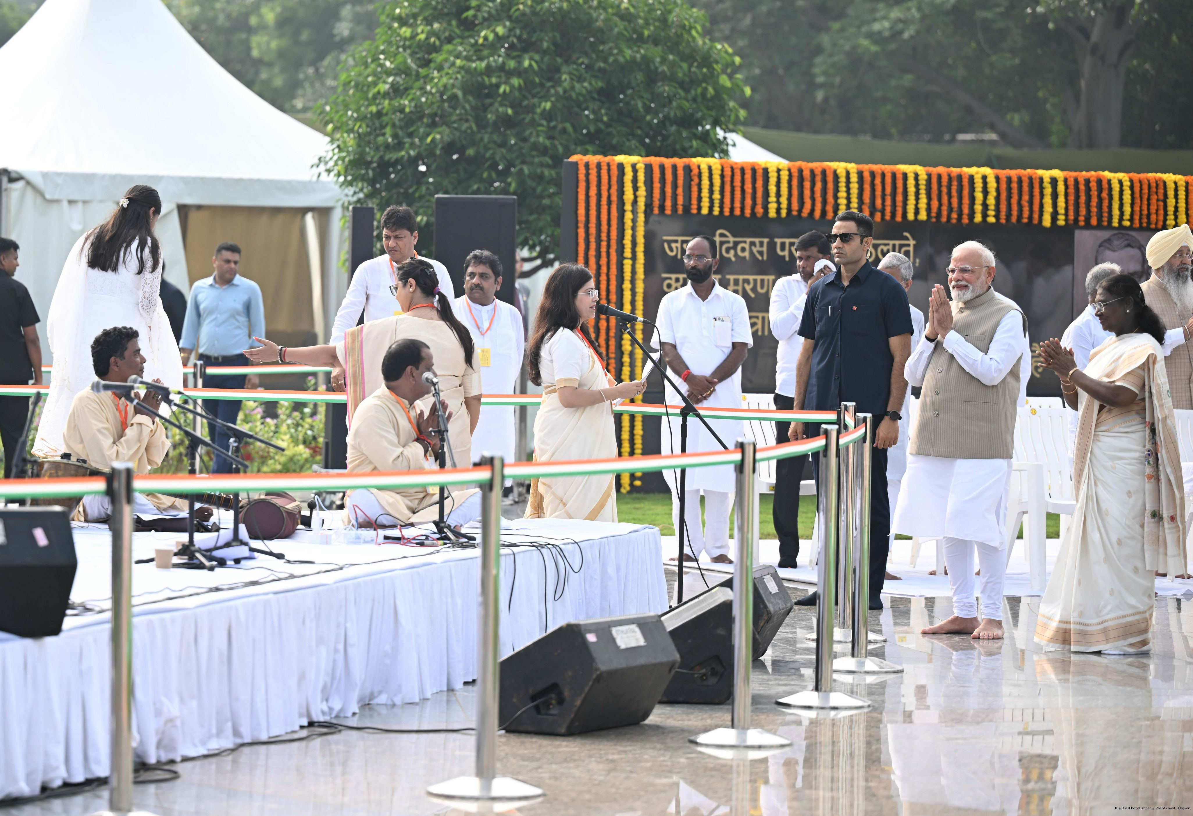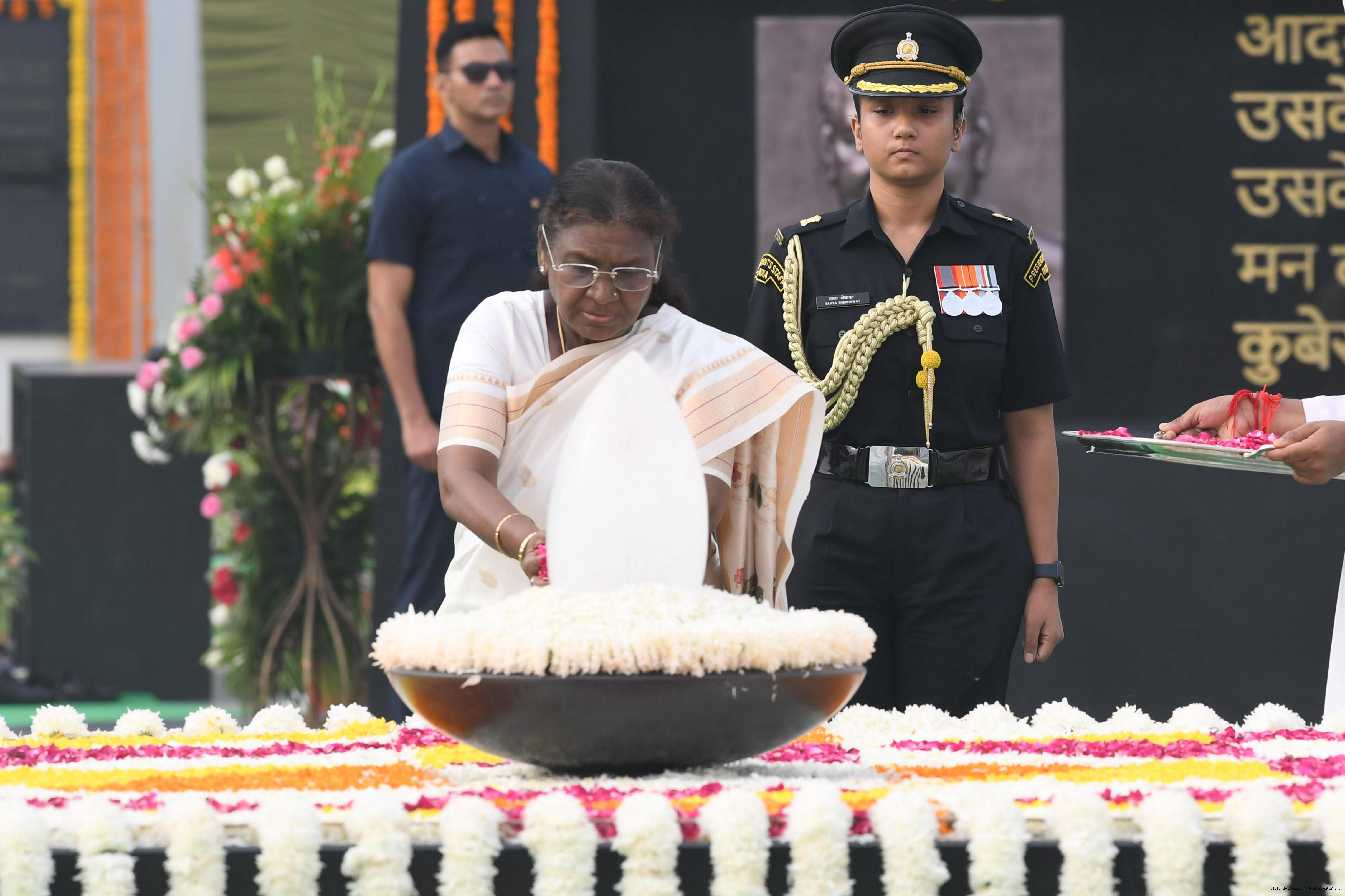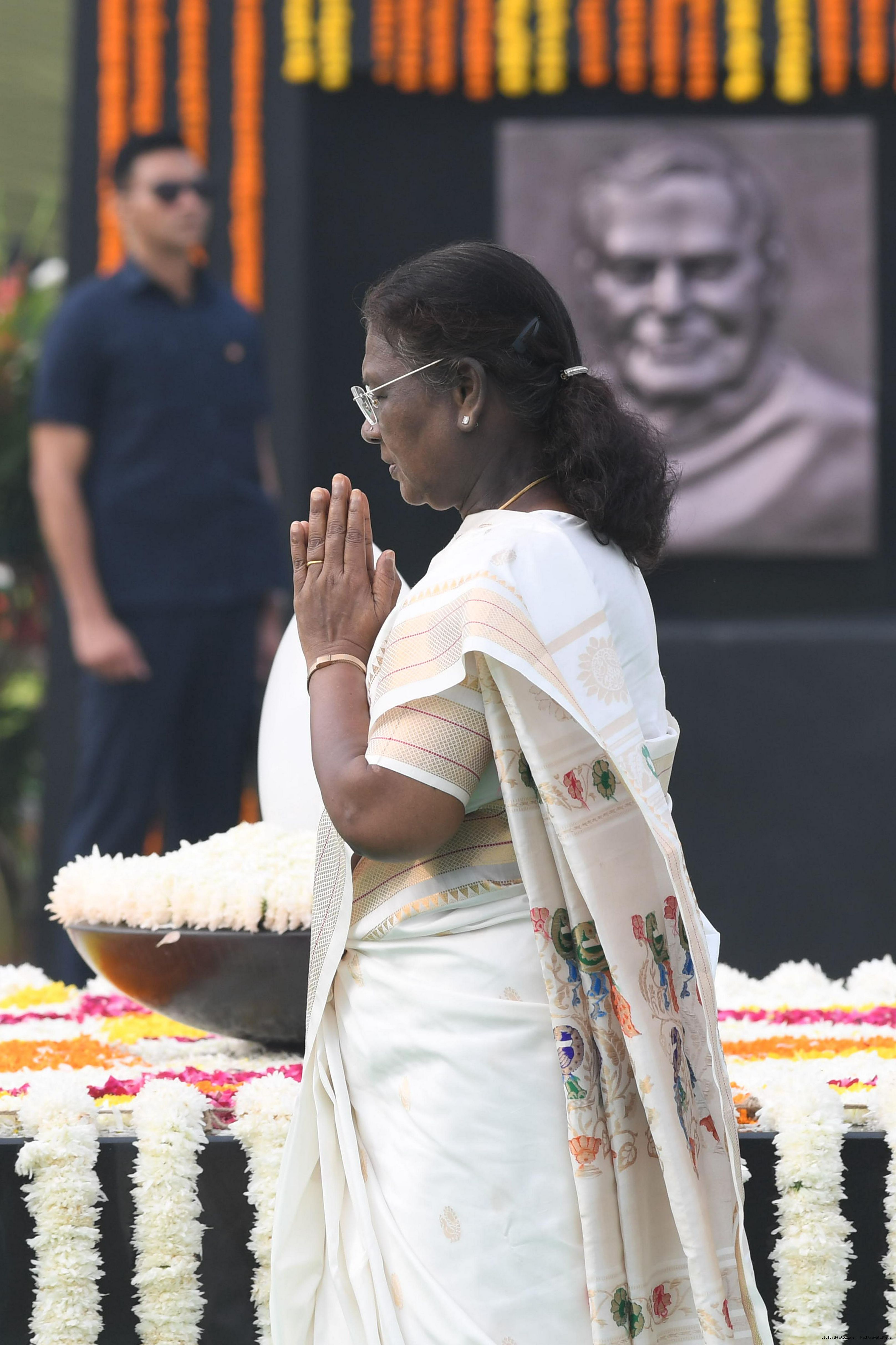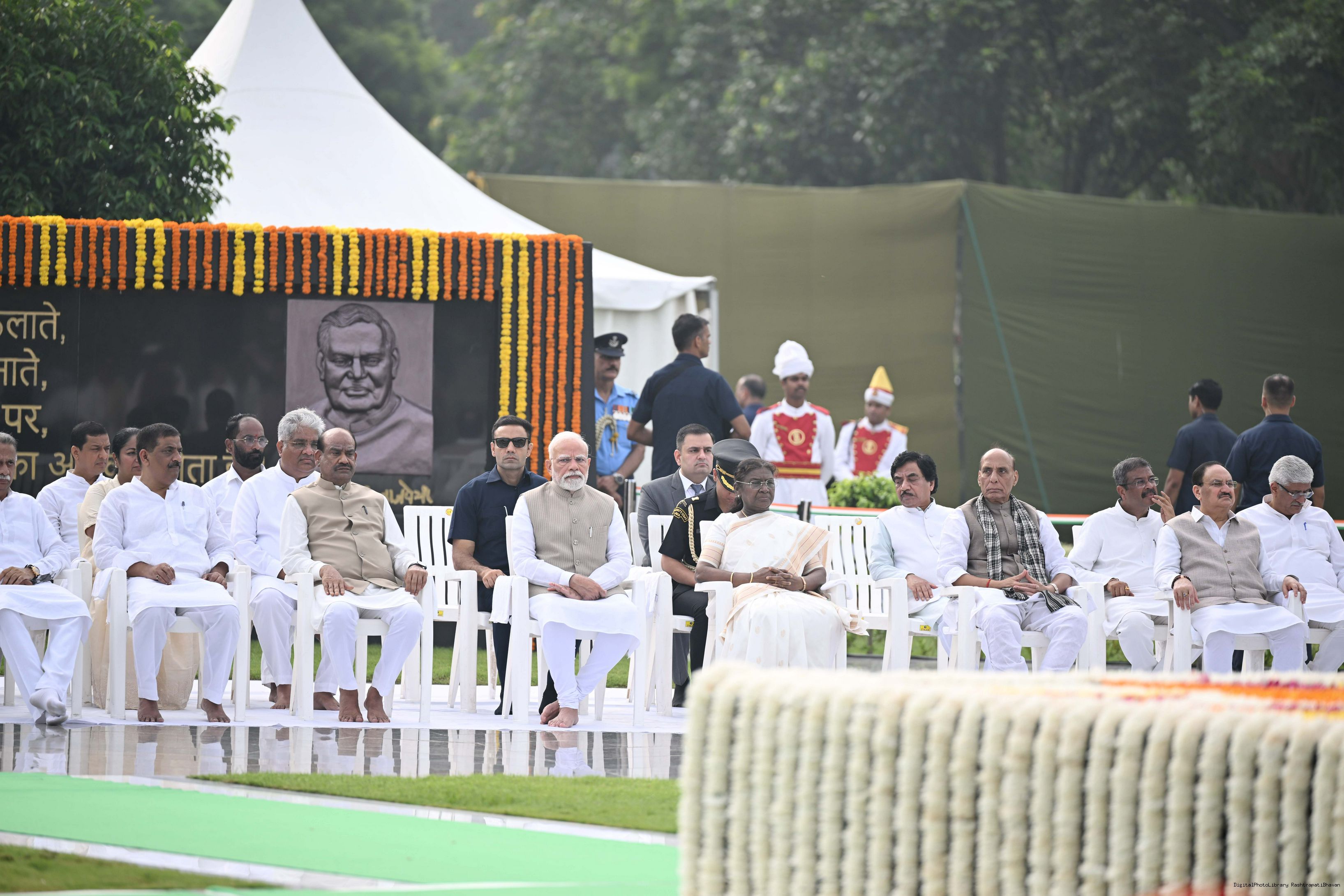 | Caption: | The President of India, Smt Droupadi Murmu paid homage to former Prime Minister of India, Shri Atal Bihari Vajpayee on his death anniversary at his Samadhi 'Sadaiv Atal' in New Delhi on August 16, 2025. |