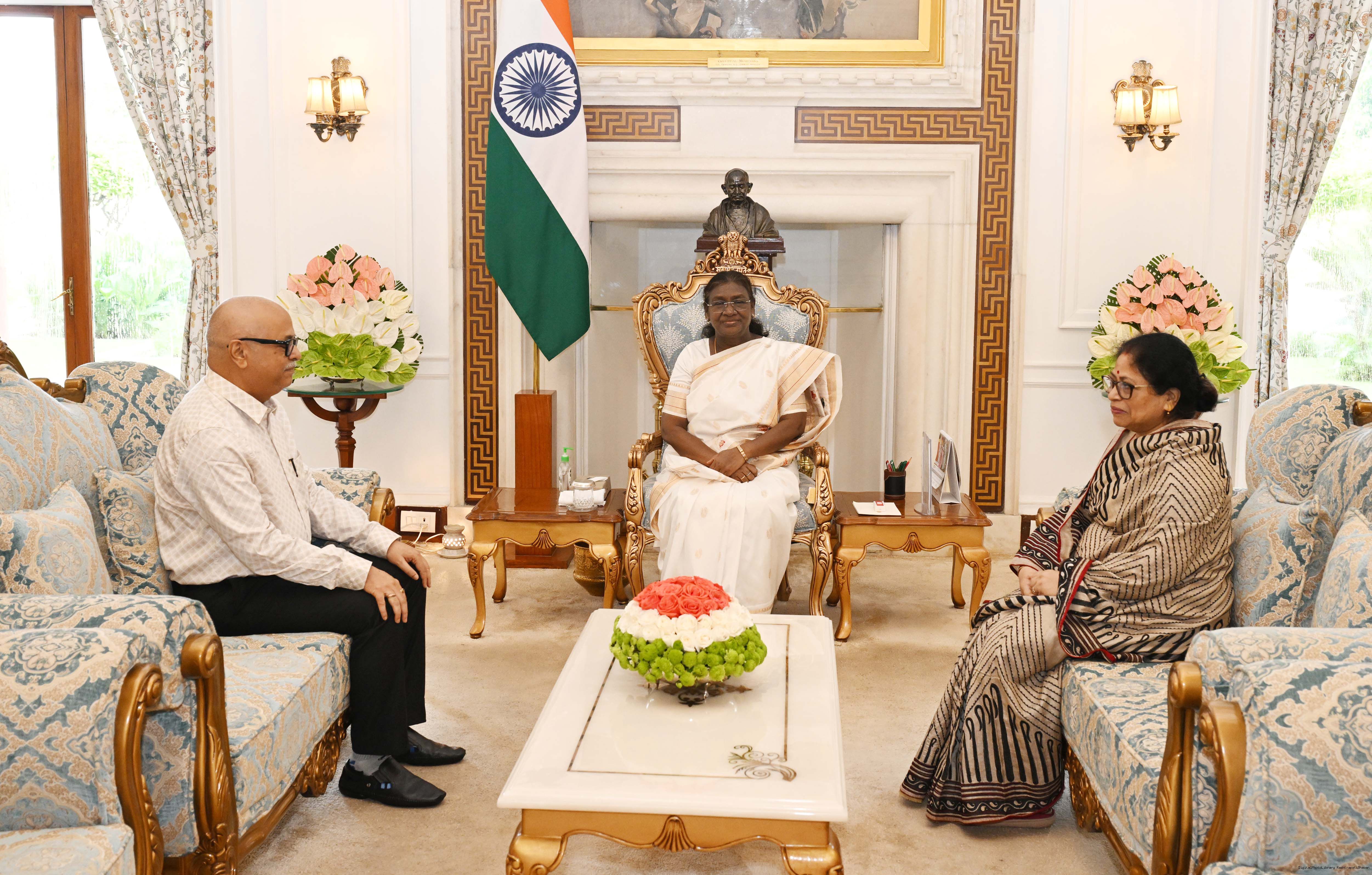 | Caption: | Shri Nabin Das, Editor Nirbhay a vernacular Odiya along with spouse Smt. Mamata Das meeting with the President of India, Smt Droupadi Murmu at Rashtrapati Bhavan on August 16, 2025. |