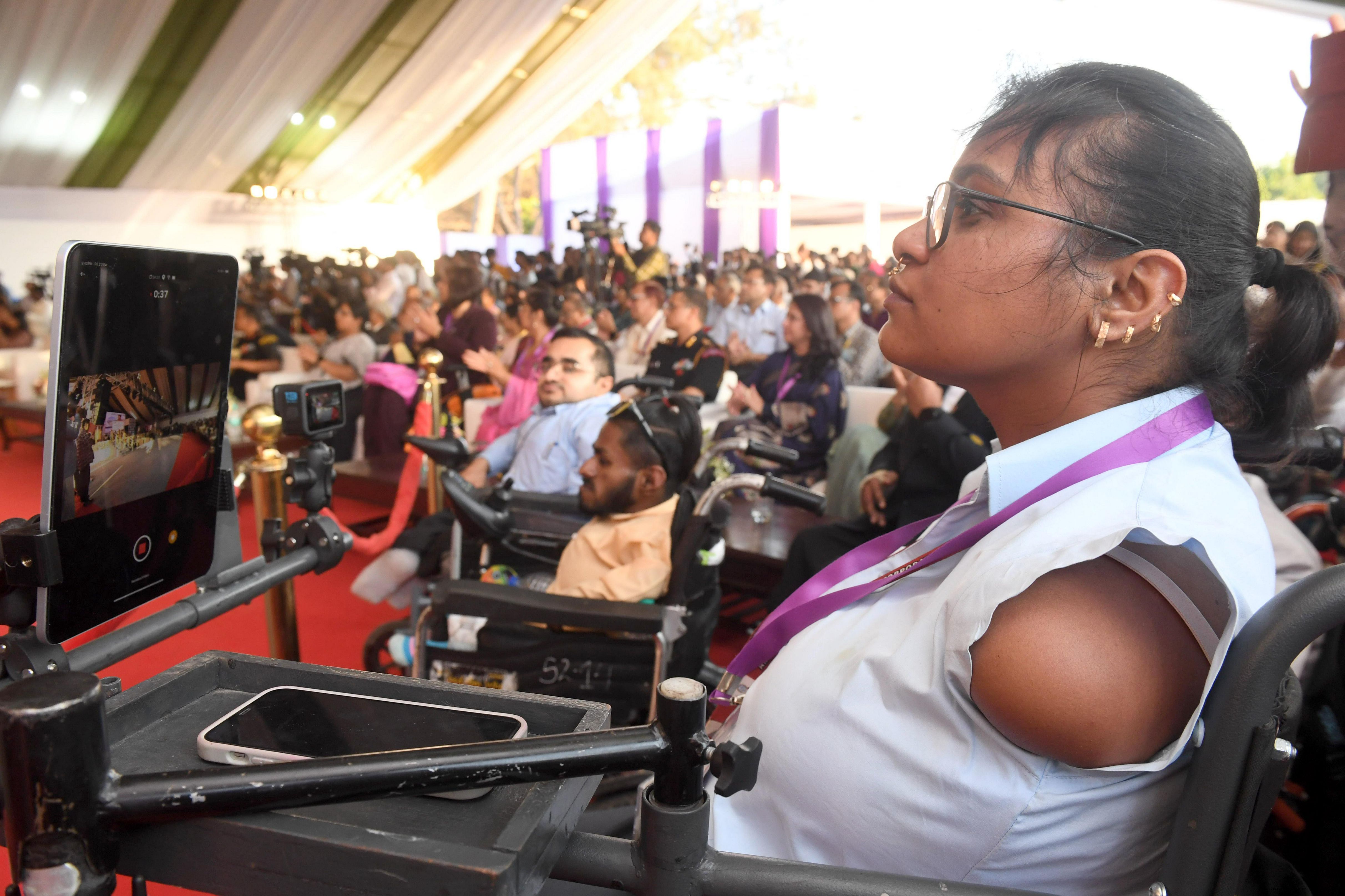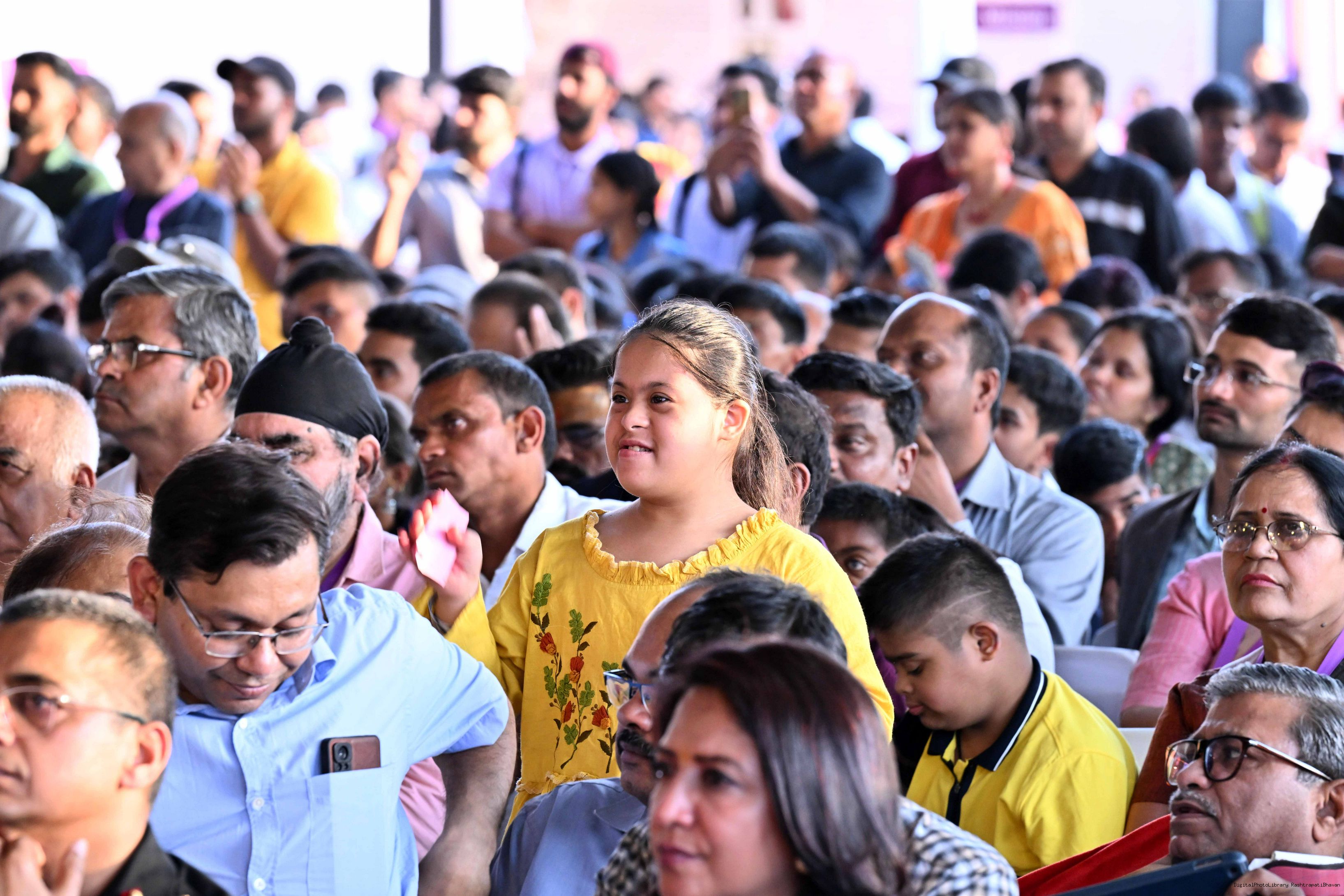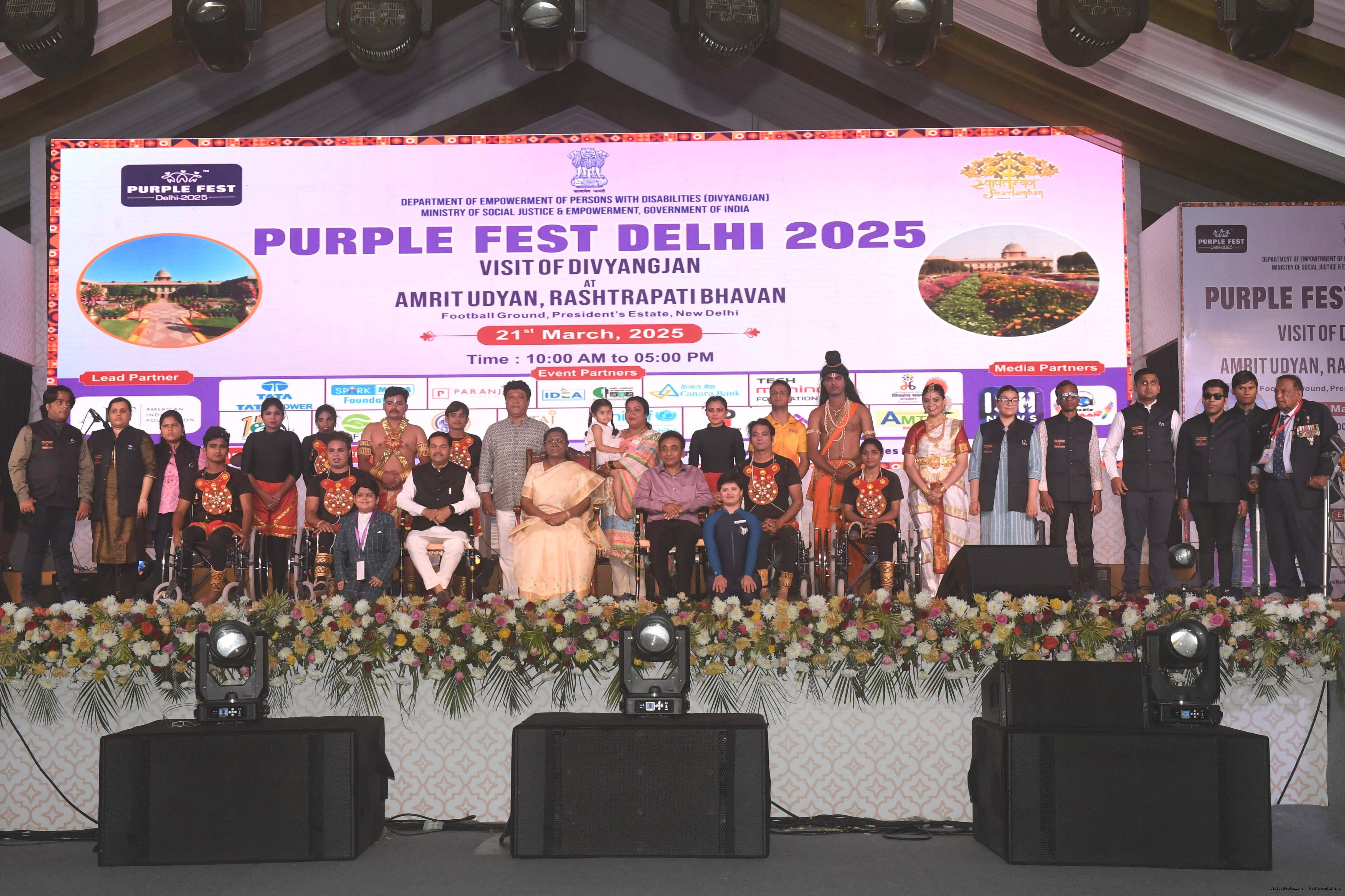 | Caption: | The President of India, Smt Droupadi Murmu witnessed the cultural performances by Divyangjan organised as part of the 'Purple Fest, Celebration organized by the Ministry of Social Justice Empowerment, GOI at Rashtrapati Bhavan on March 21, 2025. |